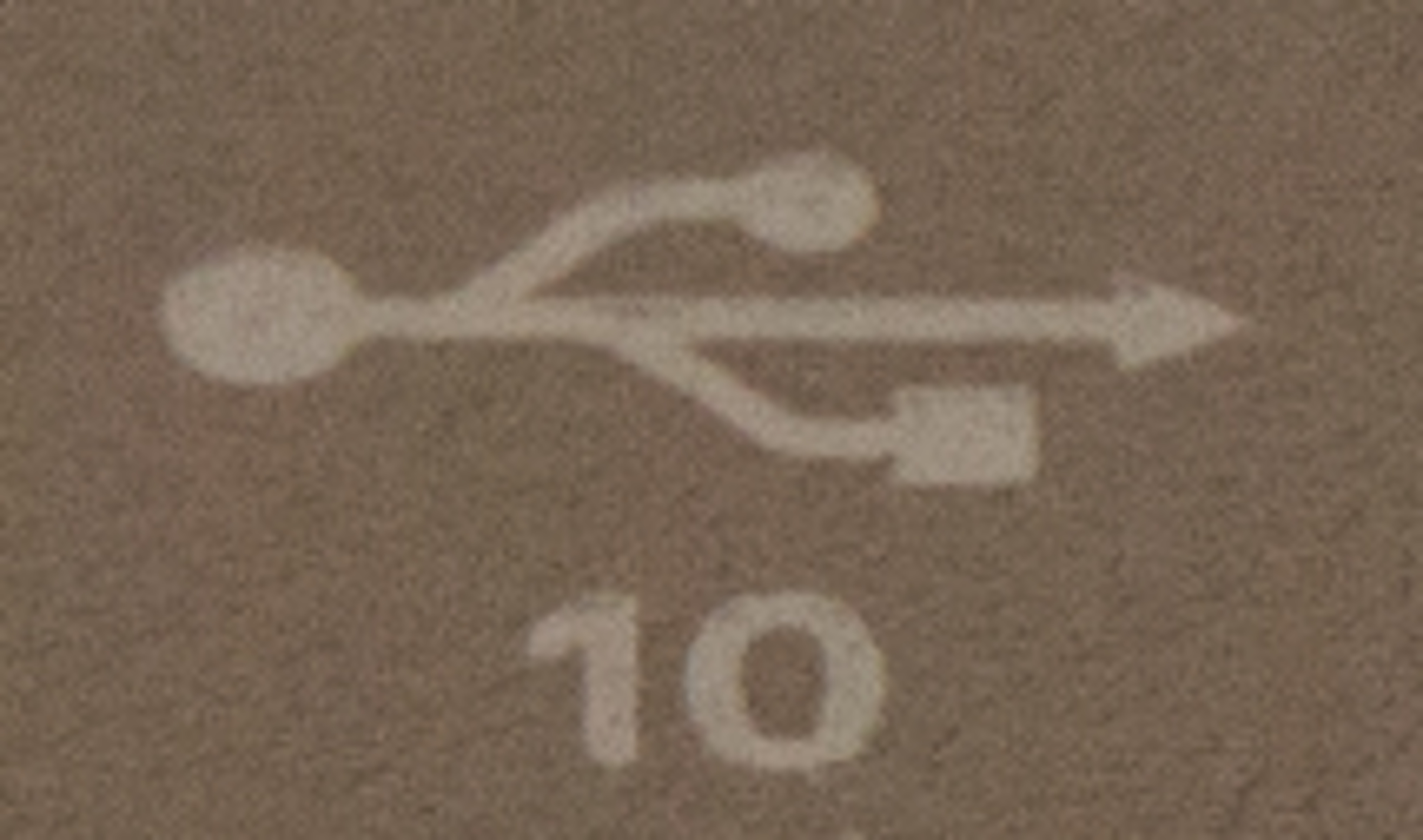 The color of the USB port is supposed to specify which version it has, but this isn't always 100% accurate. Monitors that support USB 3.0 or newer are generally blue, whereas USB 2.0 ports are usually black. However, there are symbols indicating which type of SuperSpeed data transfer it supports: SuperSpeed supports 5Gbps, and SuperSpeed+ supports 10Gbps. As mentioned above, a USB-C port can go up to 20Gbps with SuperSpeed+. You can see examples of each symbol on a monitor below: