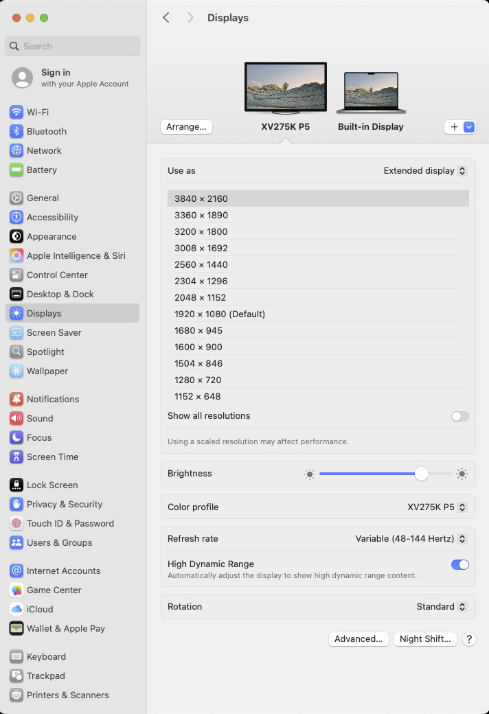For the most part, the Acer Nitro XV275K P5 works well with macOS. The only main problem is that you can't get VRR and HDR at the same time over USB-C in the 4k mode. You're limited to fixed signals of 120Hz or below in HDR.