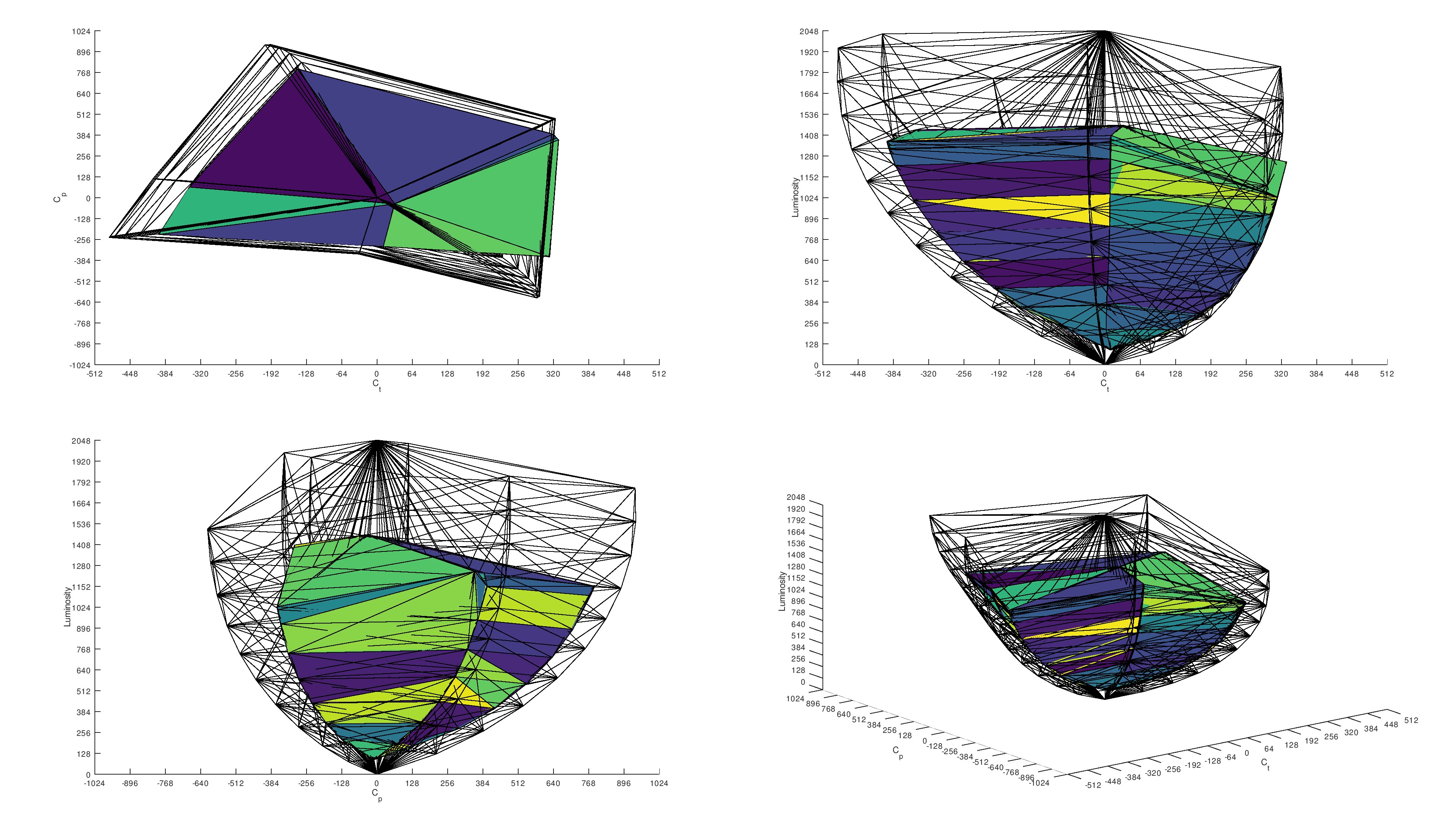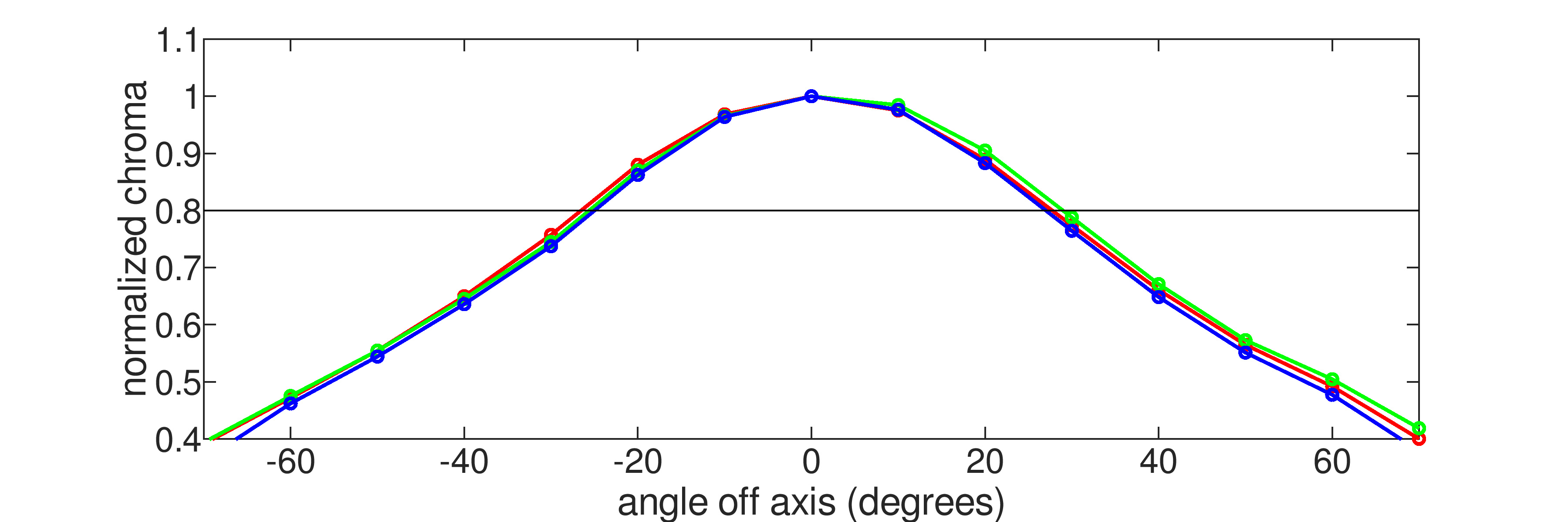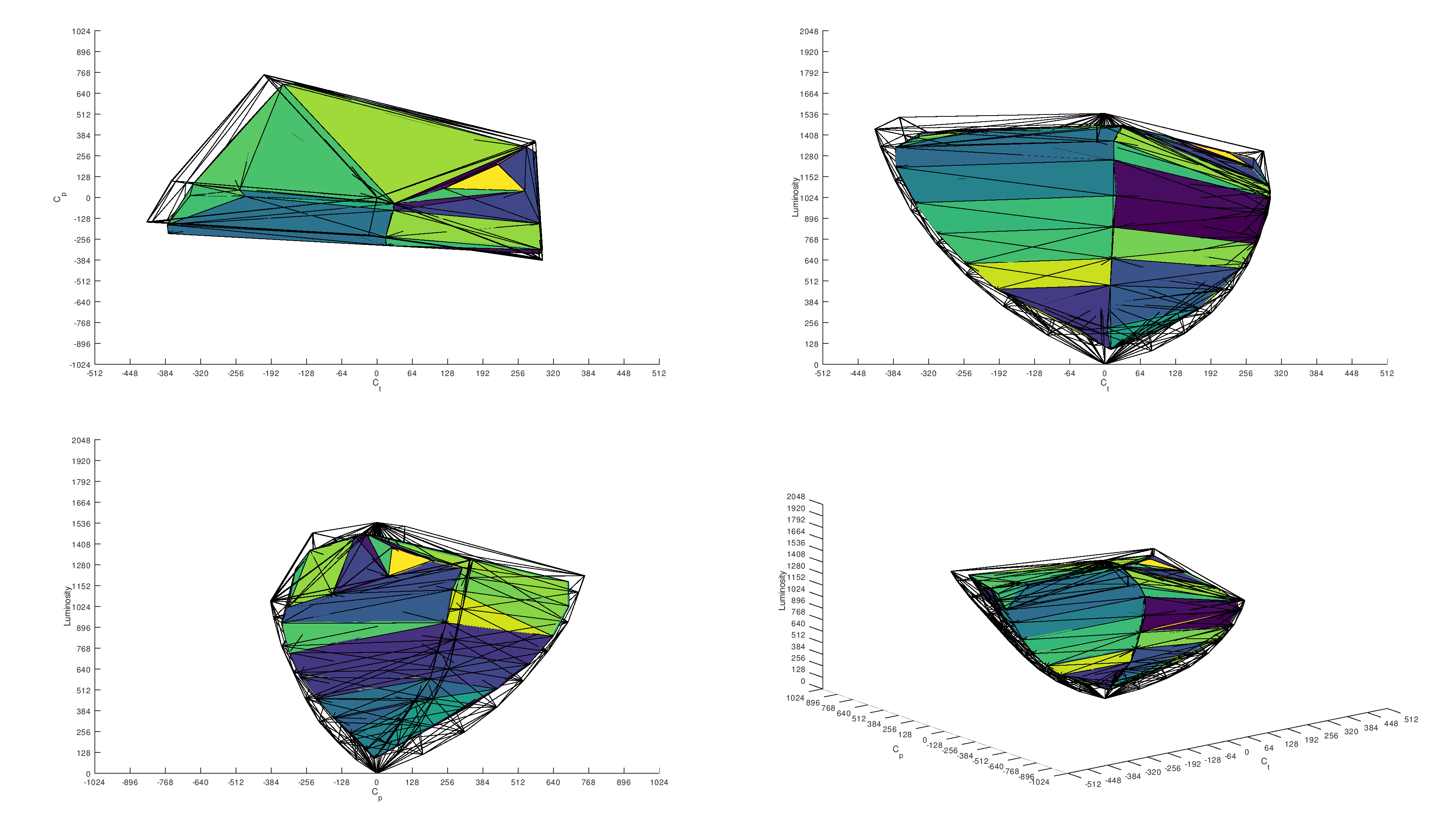 The HDR color volume is excellent. It displays bright colors well in the DCI-P3 color space, but struggles with darker colors and in the Rec. 2020 color space.