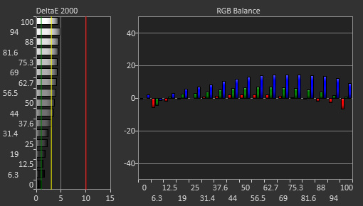 The accuracy after calibration is fantastic. Calibrating it fixes most issues from its sRGB mode, including having properly saturated colors and improved gamma tracking. The monitor includes RGBCMY hue and saturation settings to fine-tune it during calibration.