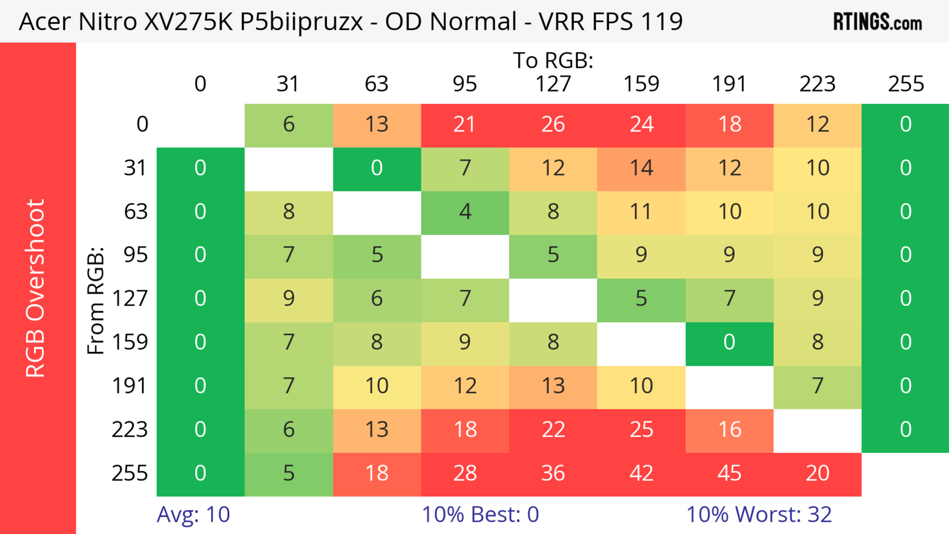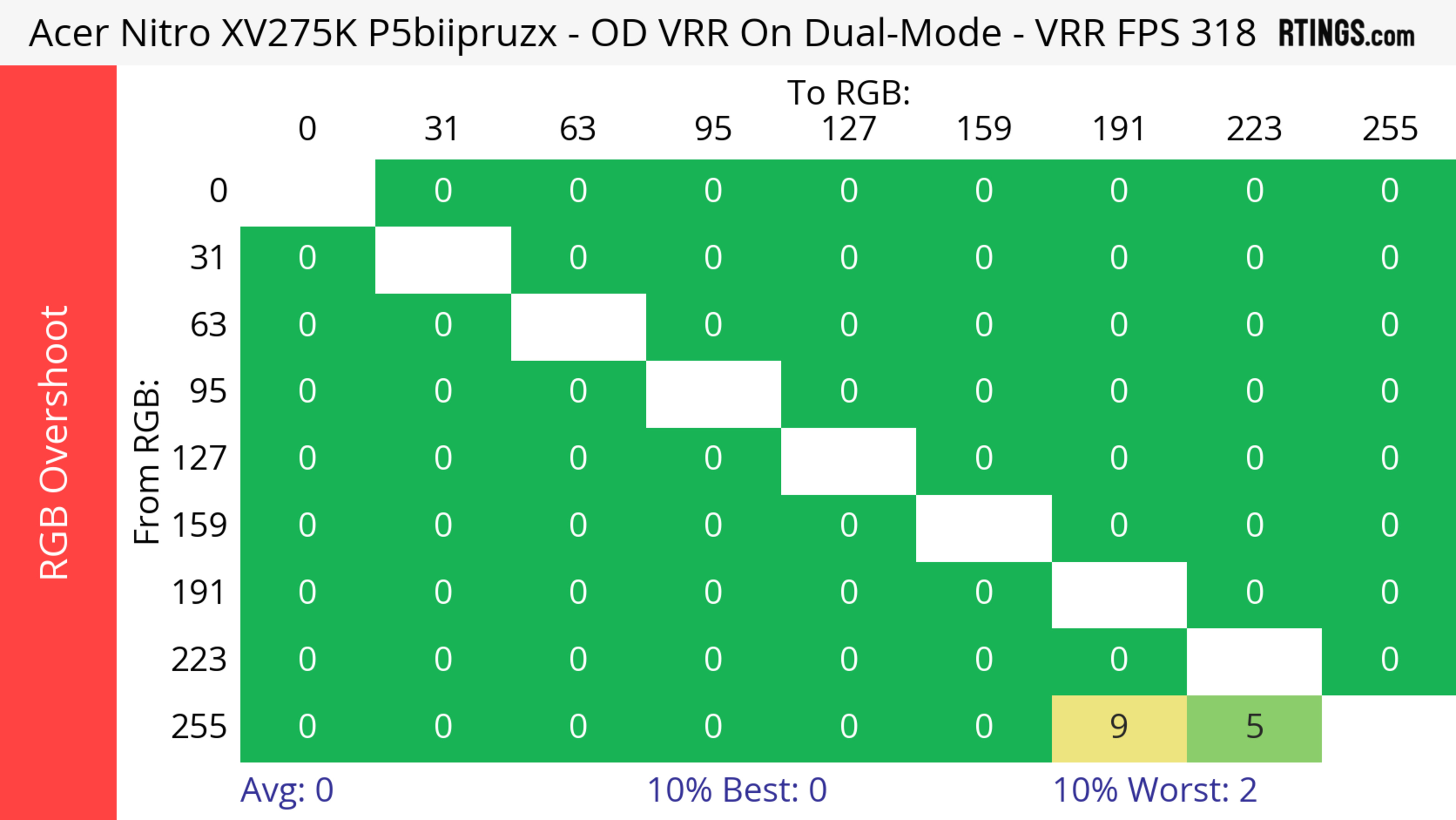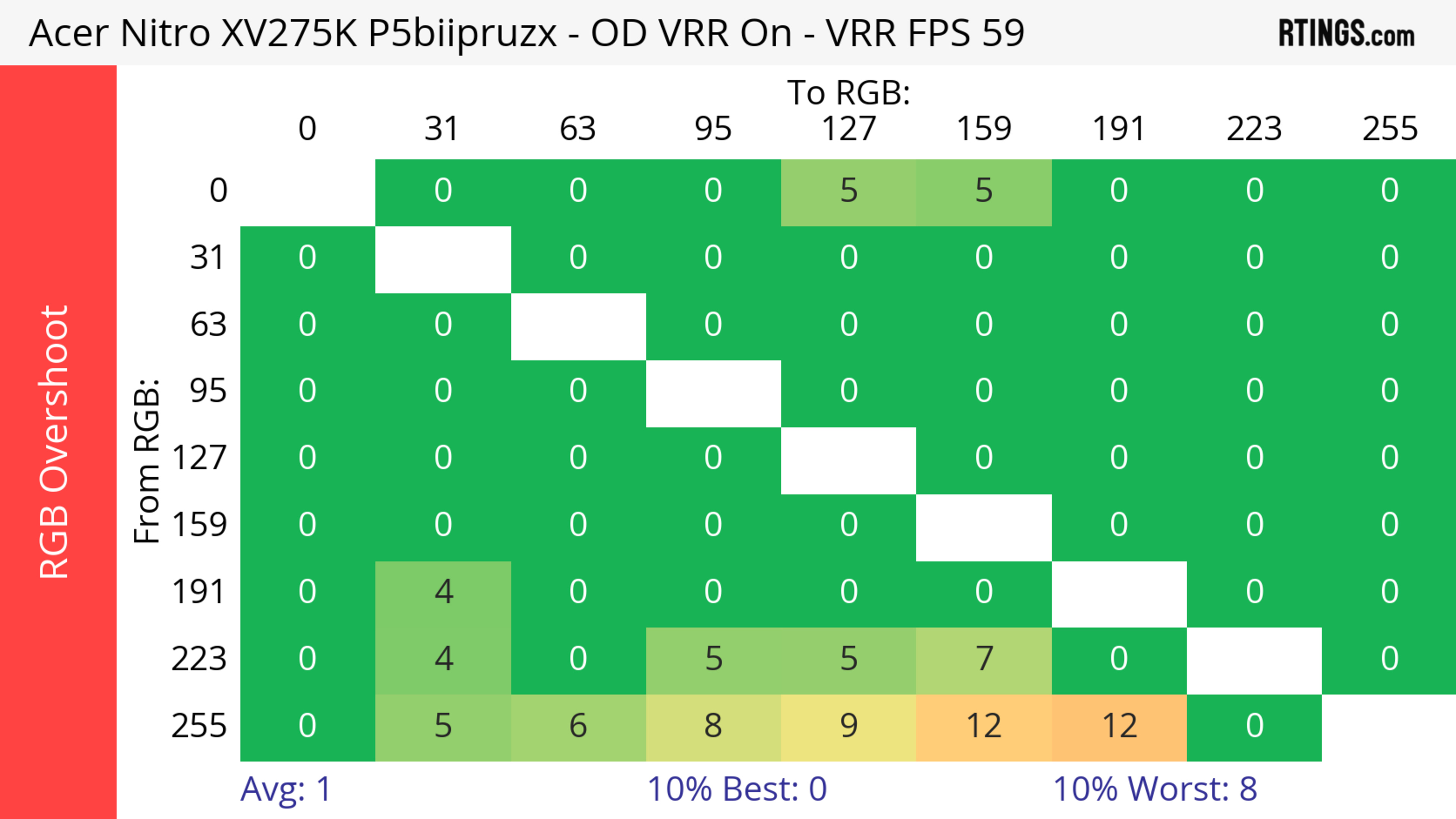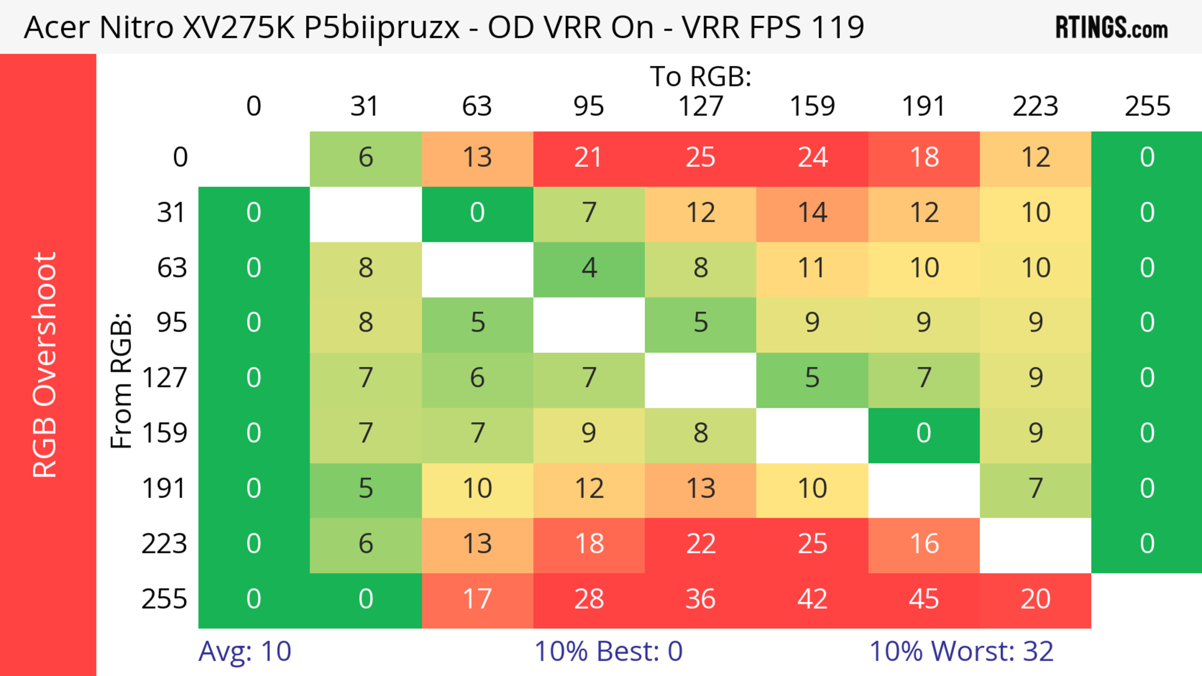 Using VRR disables any of the Over Drive modes. Unlike the older Acer Nitro XV275K P3biipruzx, the previously selected overdrive mode doesn't take effect once you enable VRR, but the 'Normal' setting with VRR off performs the same as using VRR at any refresh rate.