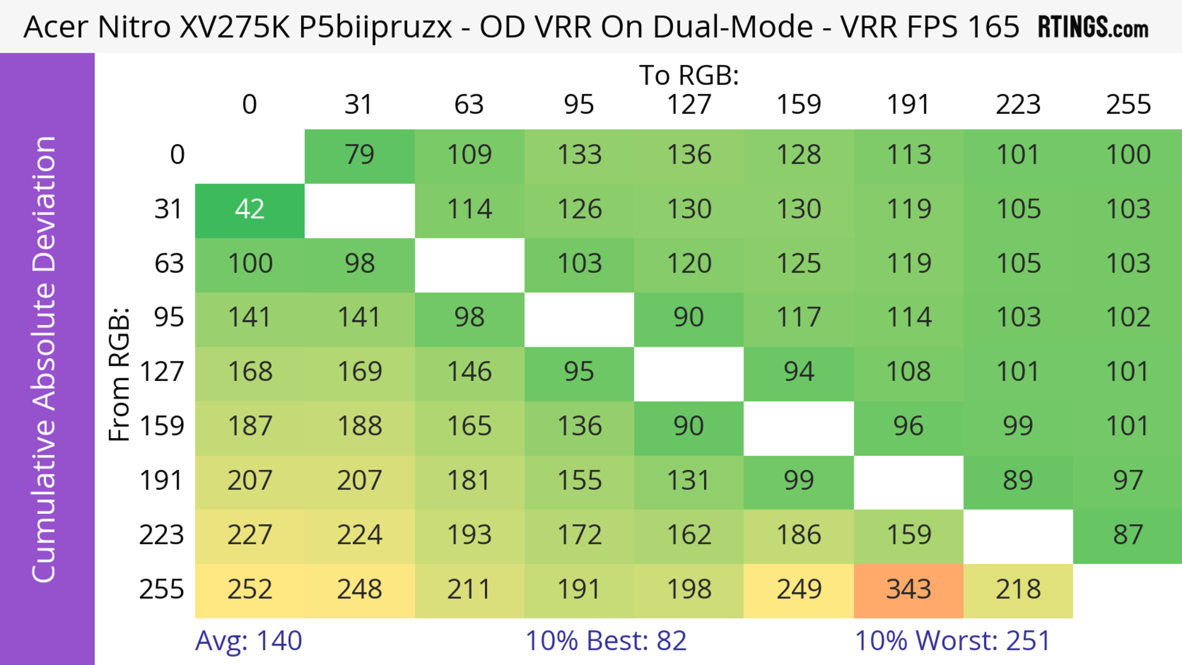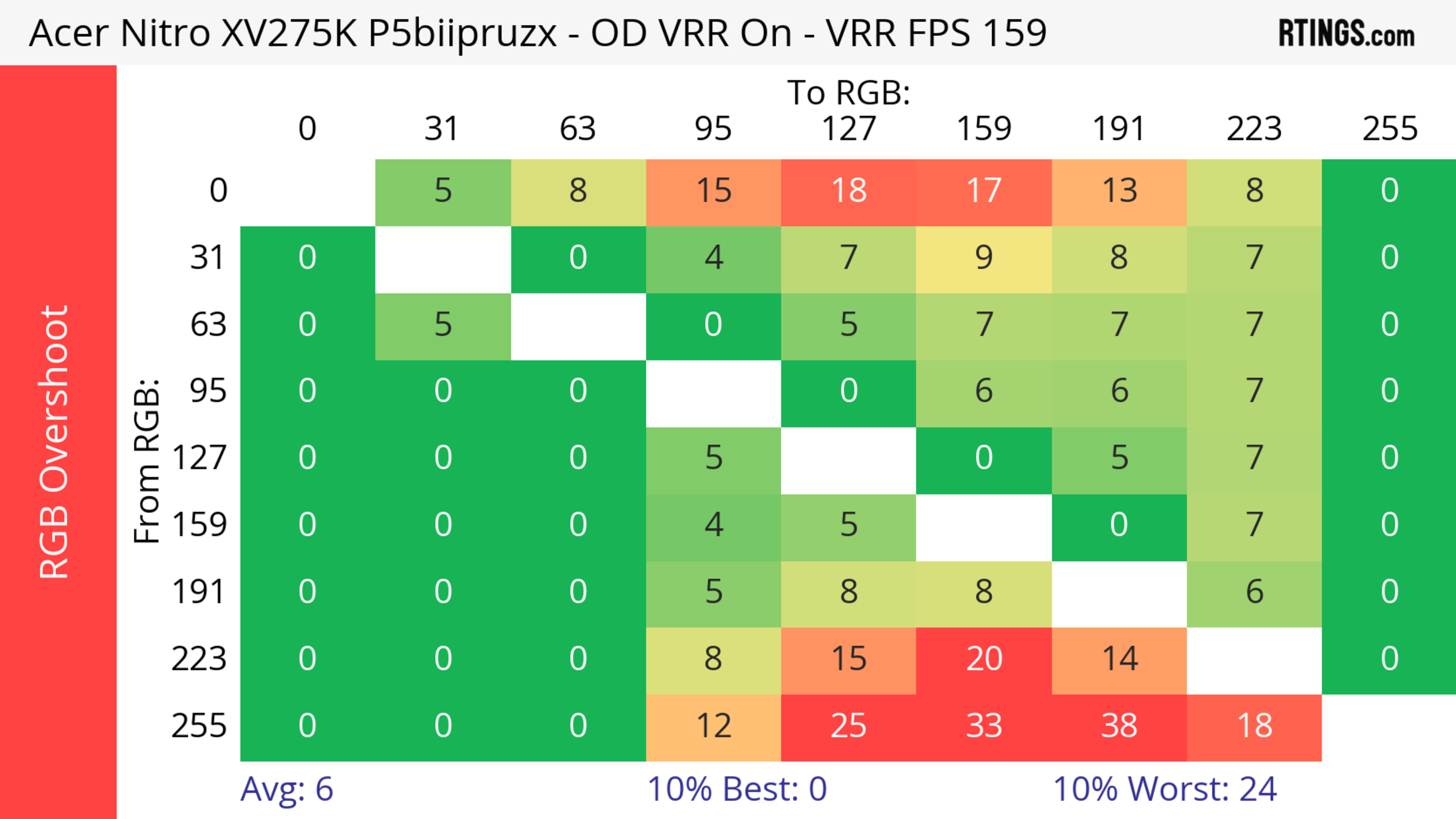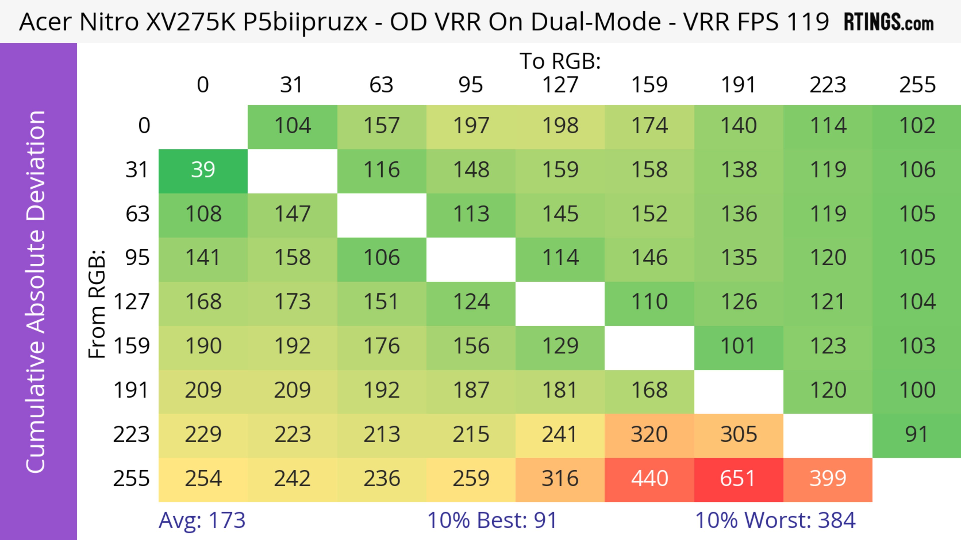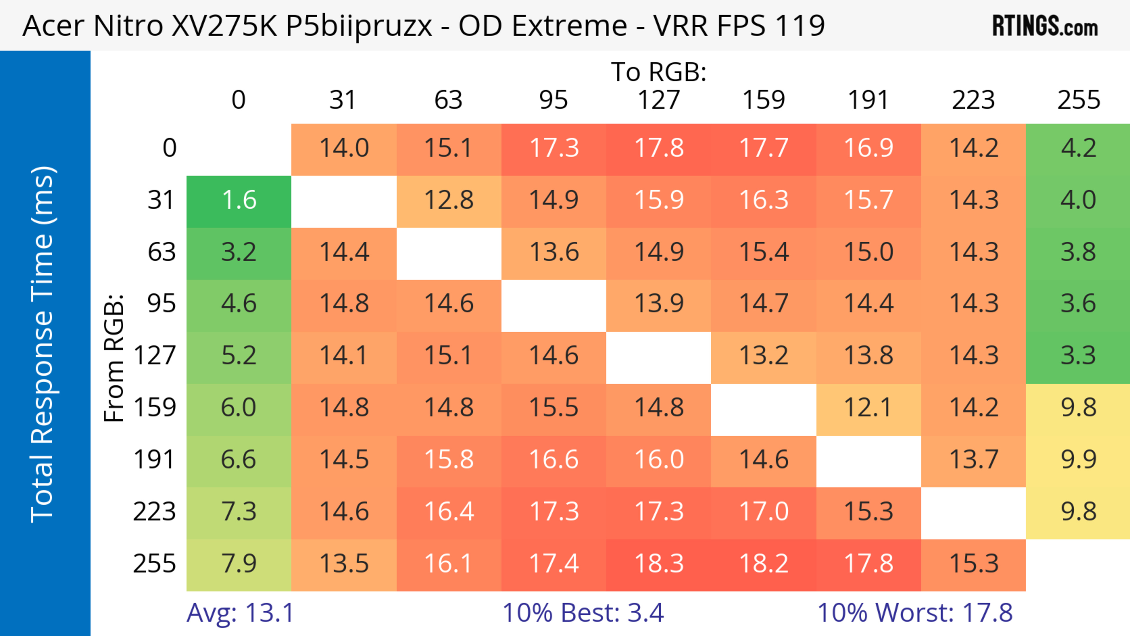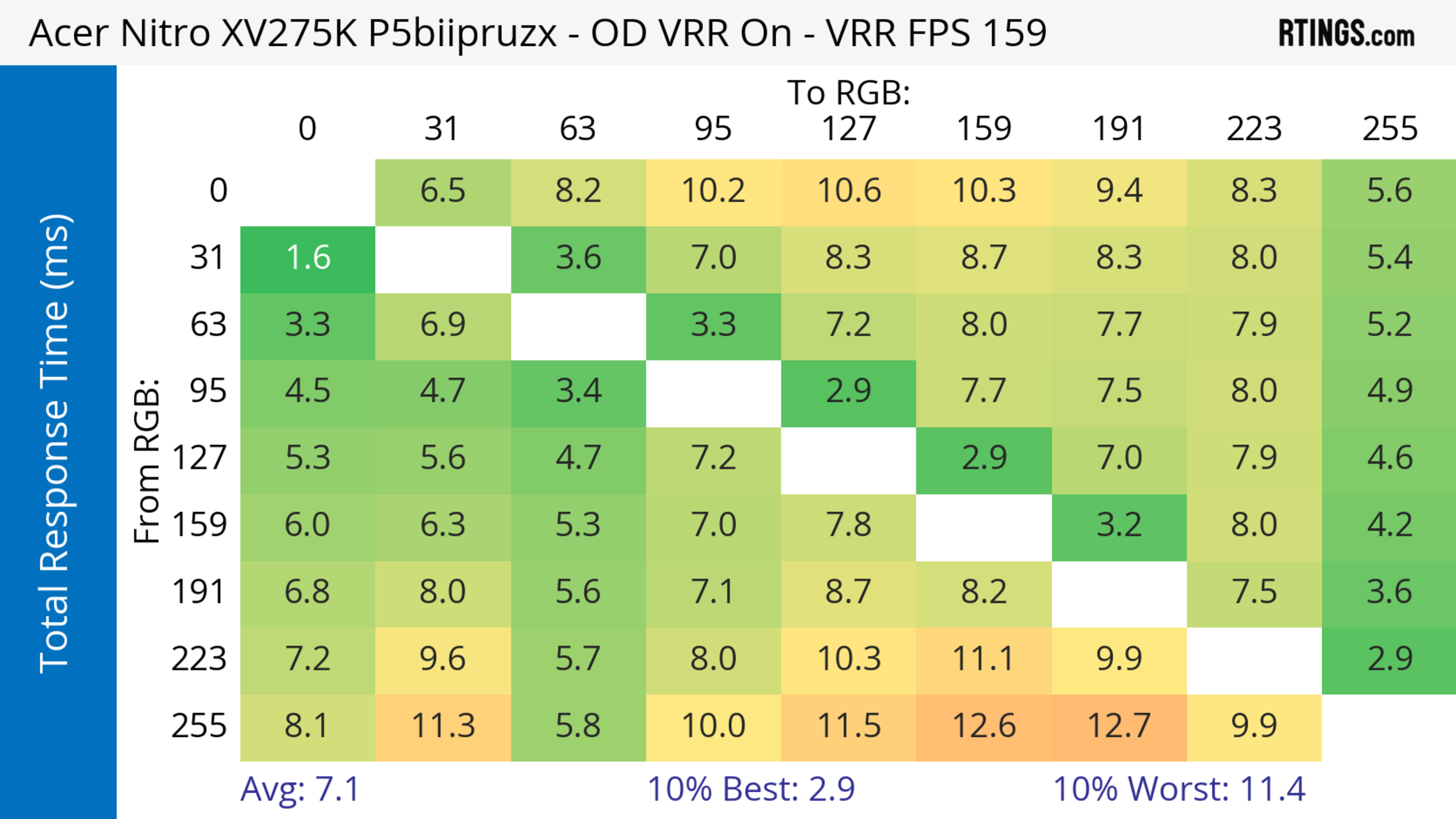 Using VRR disables any of the Over Drive modes. Unlike the older Acer Nitro XV275K P3biipruzx, the previously selected overdrive mode doesn't take effect once you enable VRR, but the 'Normal' setting with VRR off performs the same as using VRR at any refresh rate.