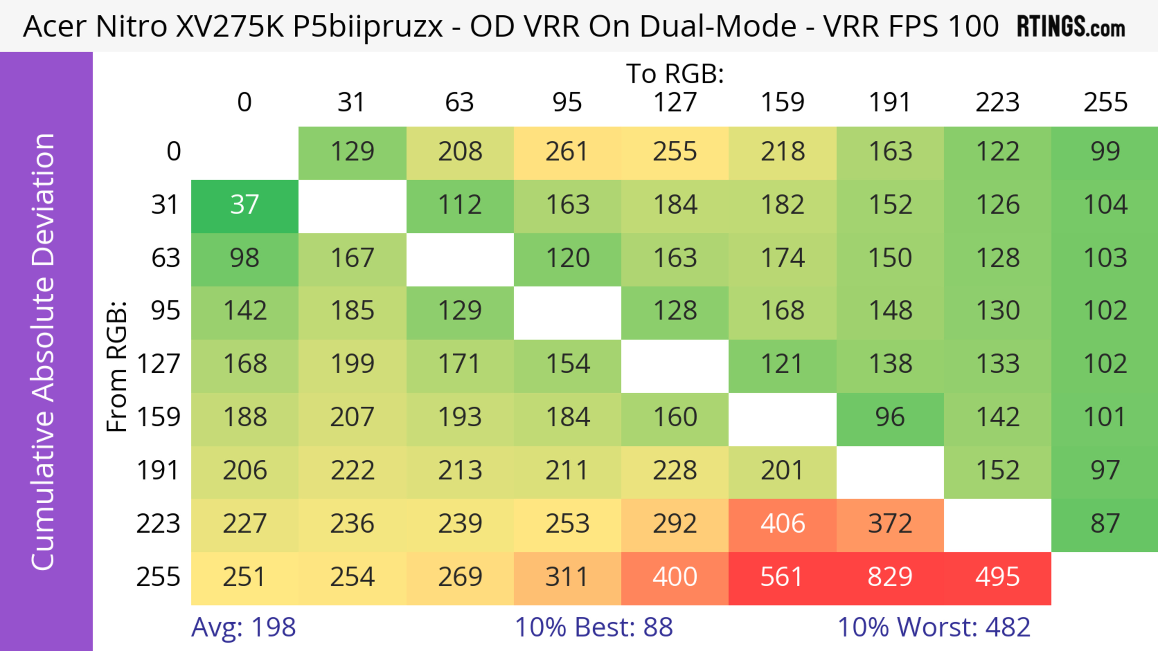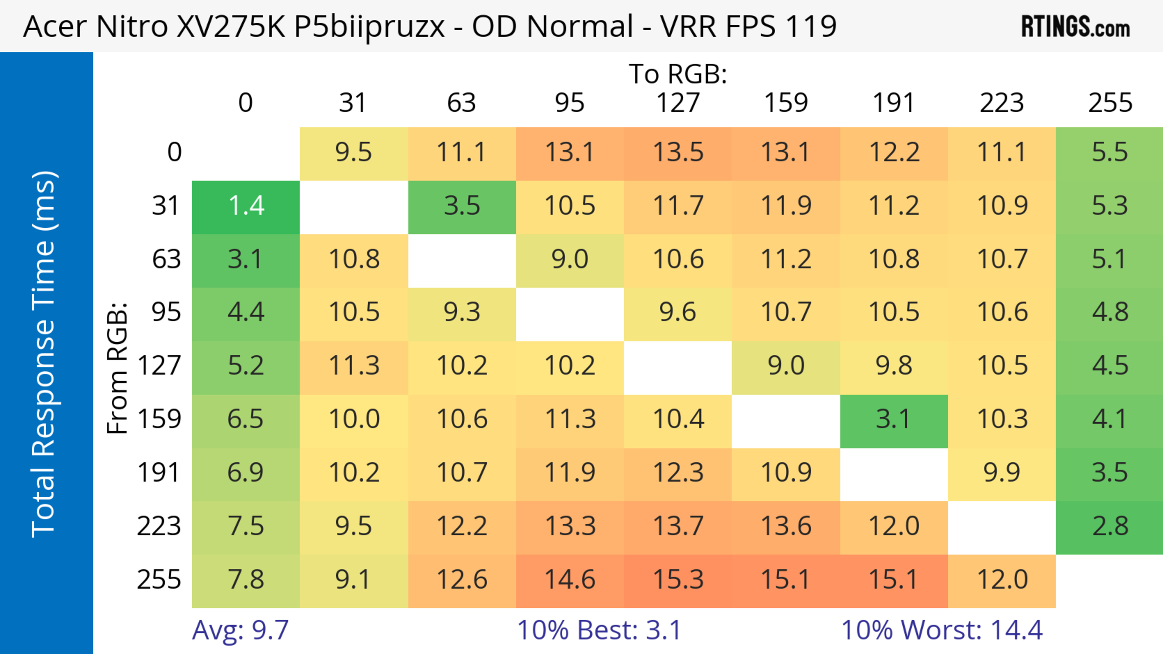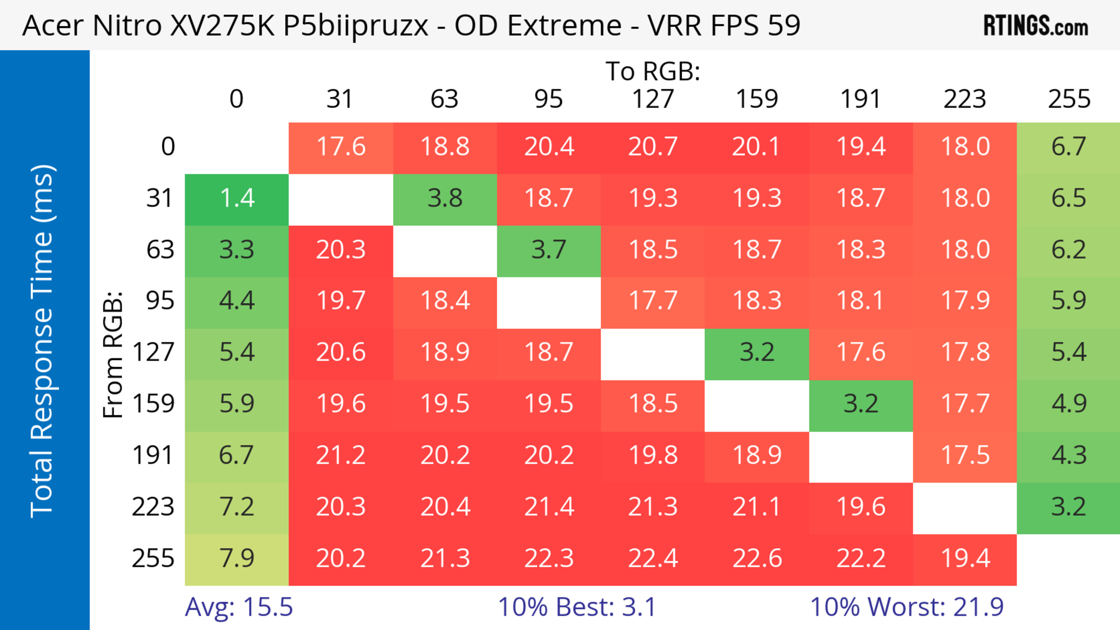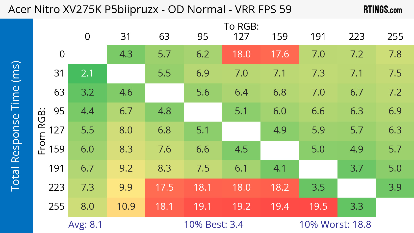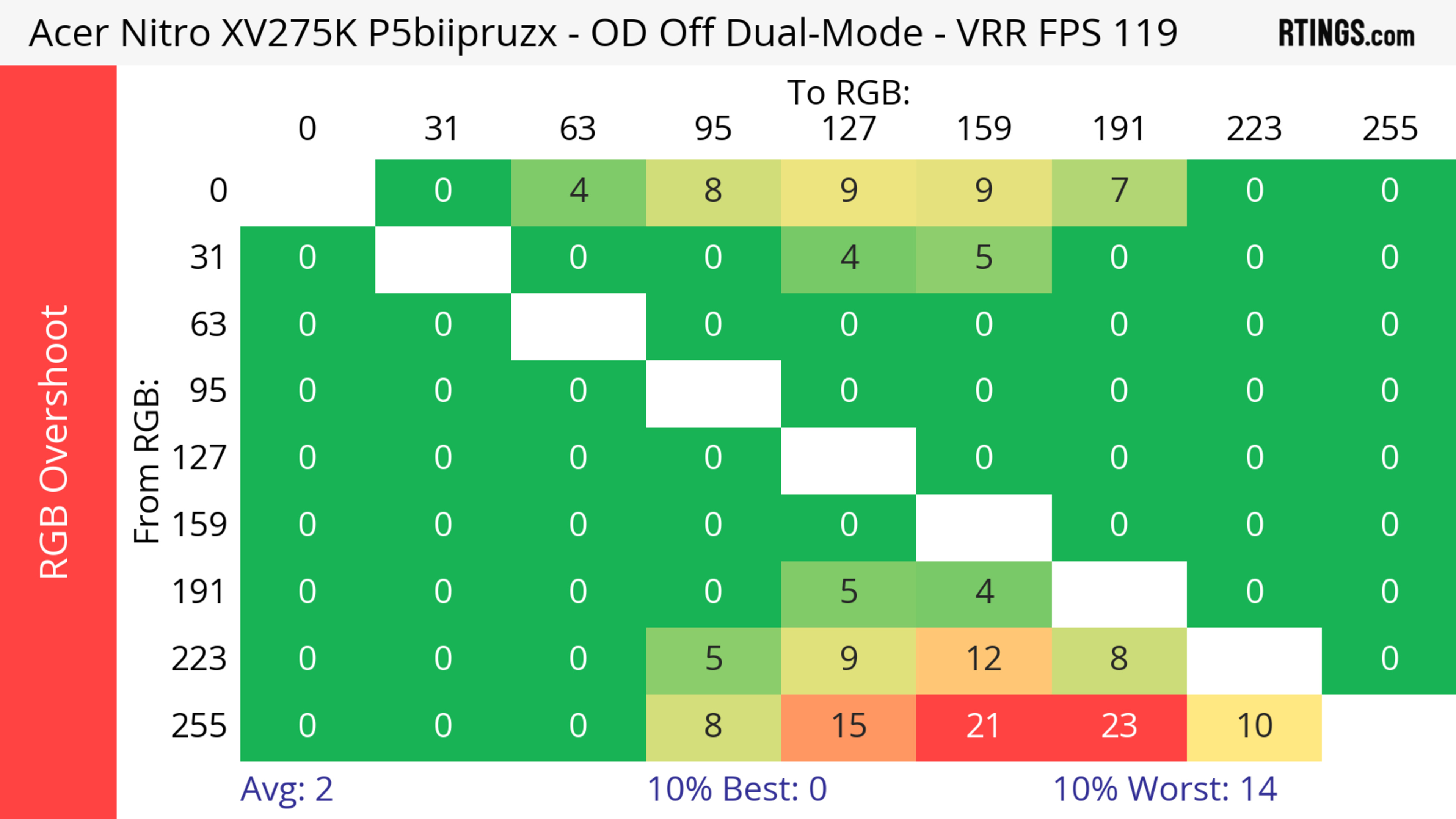Using VRR disables any of the Over Drive modes. Unlike the older Acer Nitro XV275K P3biipruzx, the previously selected overdrive mode doesn't take effect once you enable VRR, but the 'Normal' setting with VRR off performs the same as using VRR at any refresh rate.