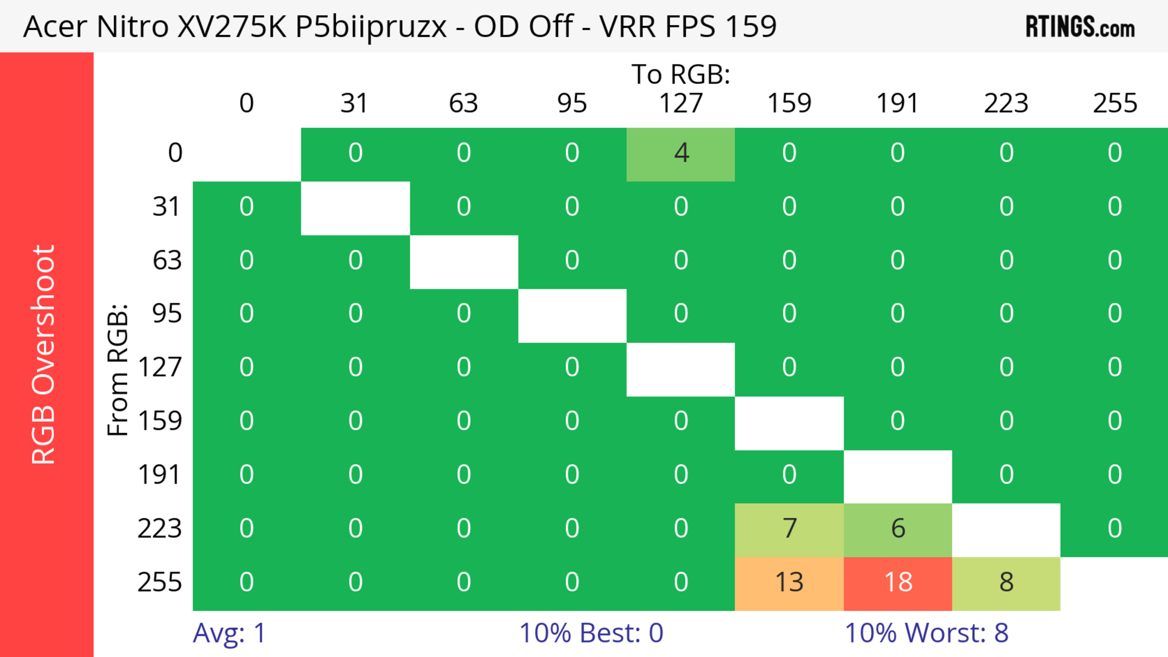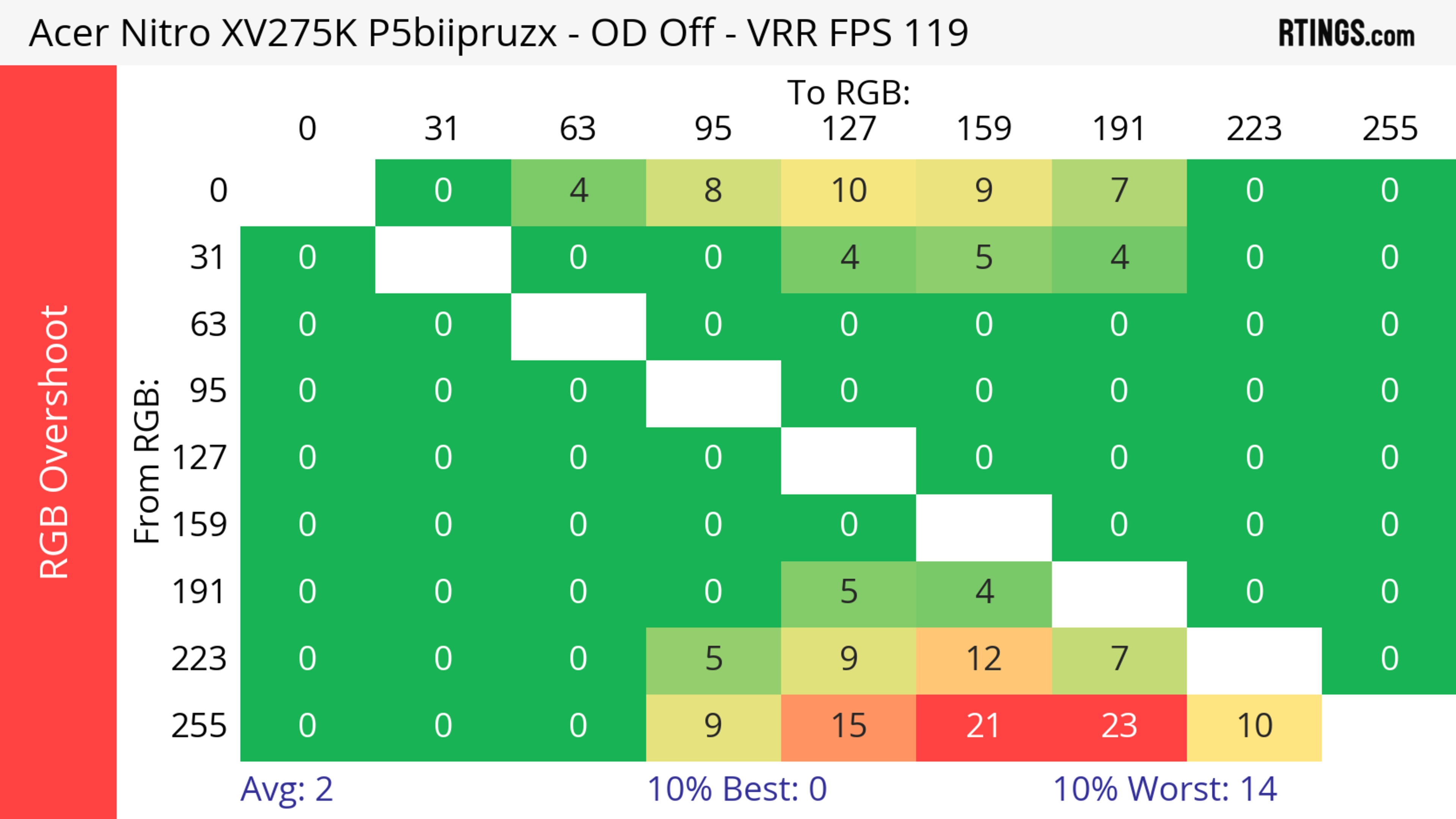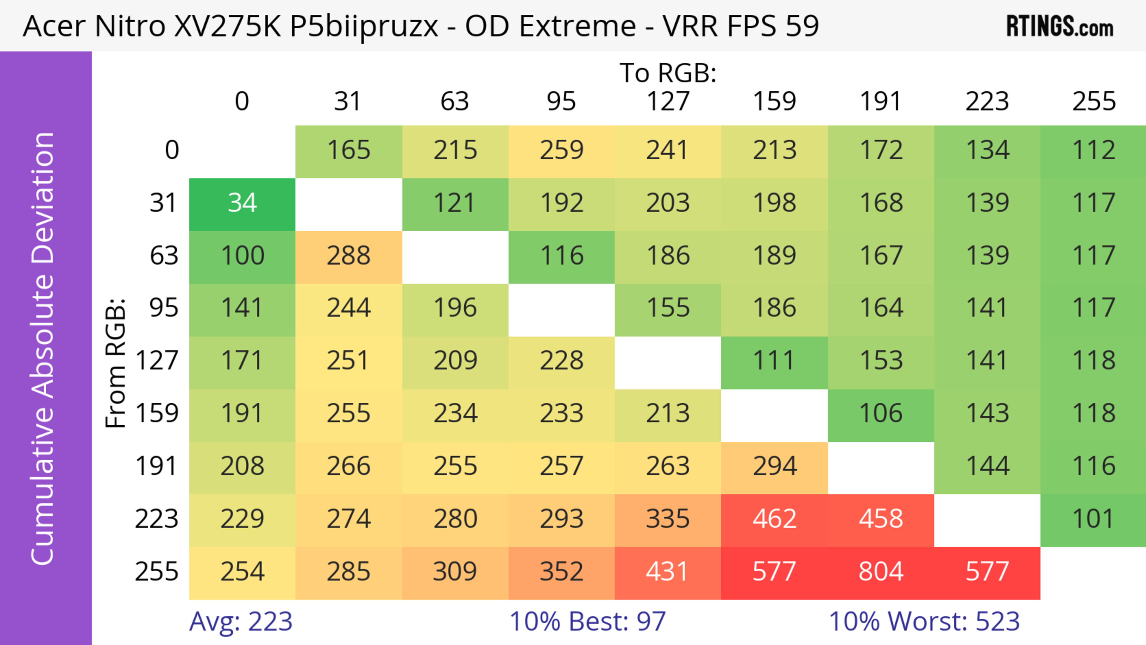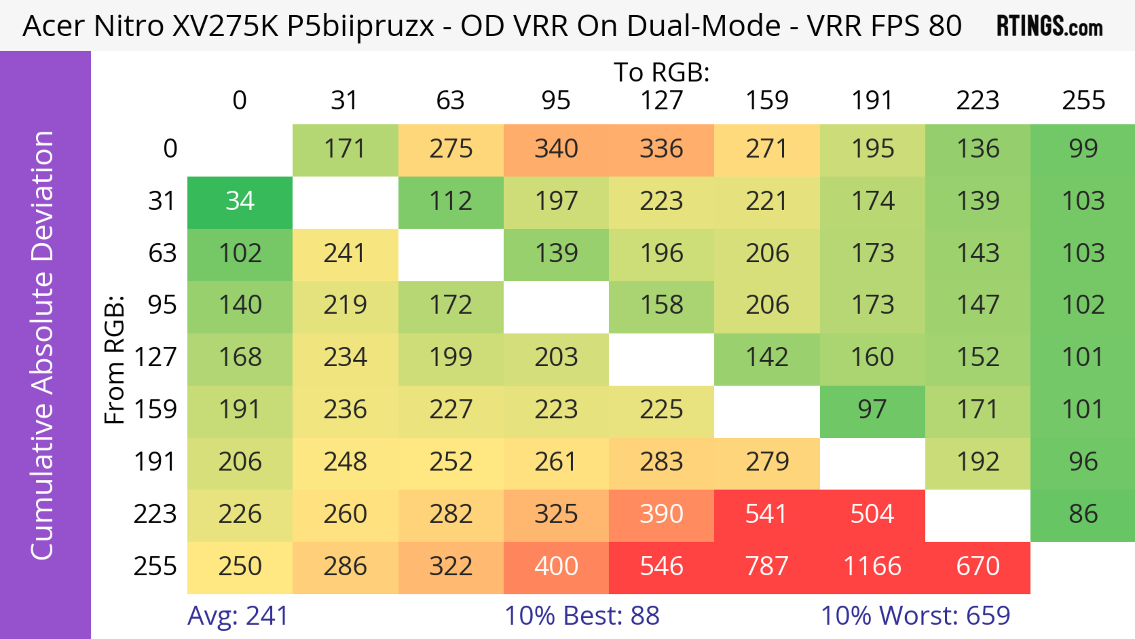 Using VRR disables any of the Over Drive modes. Unlike the older Acer Nitro XV275K P3biipruzx, the previously selected overdrive mode doesn't take effect once you enable VRR, but the 'Normal' setting with VRR off performs the same as using VRR at any refresh rate.