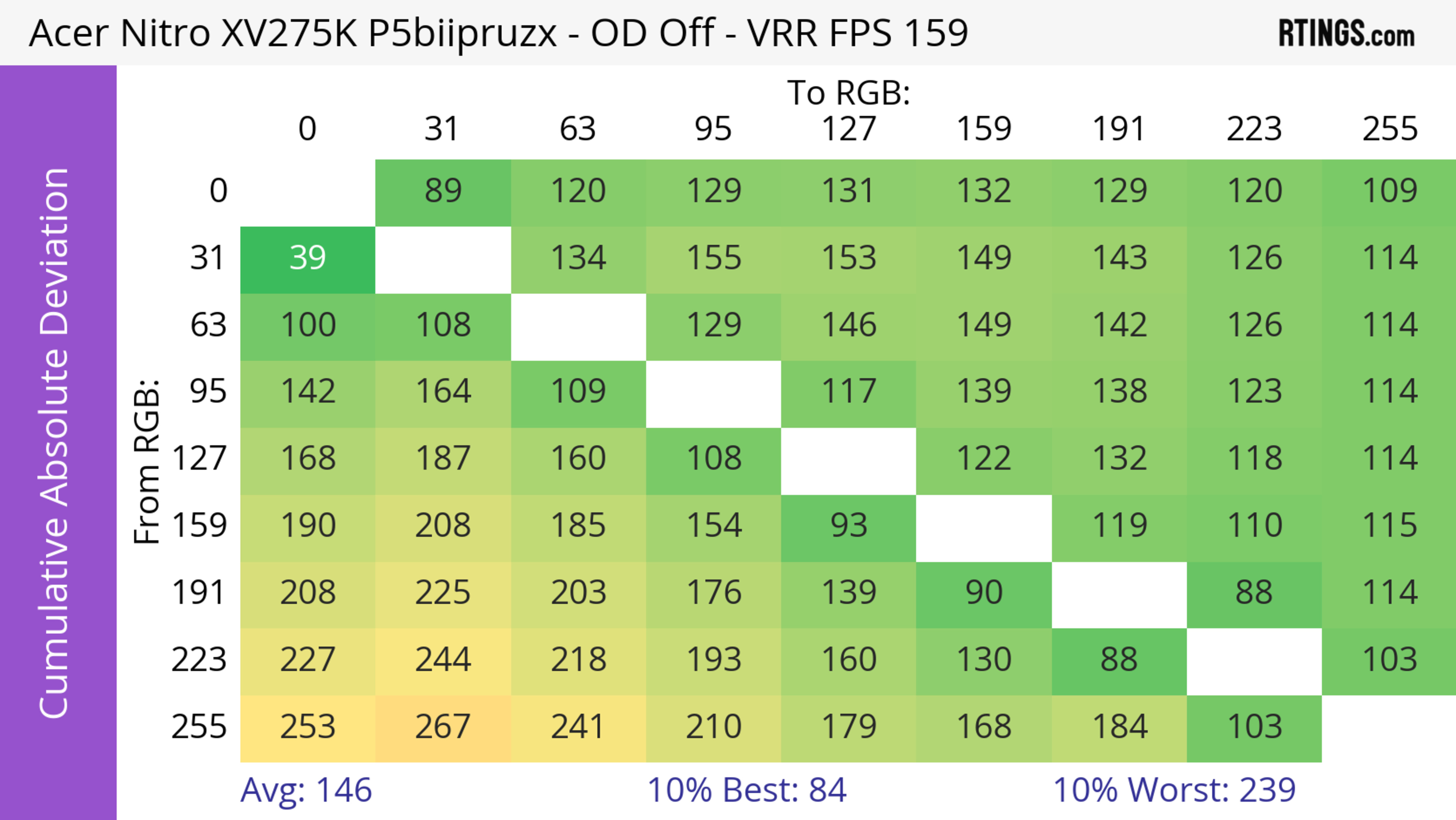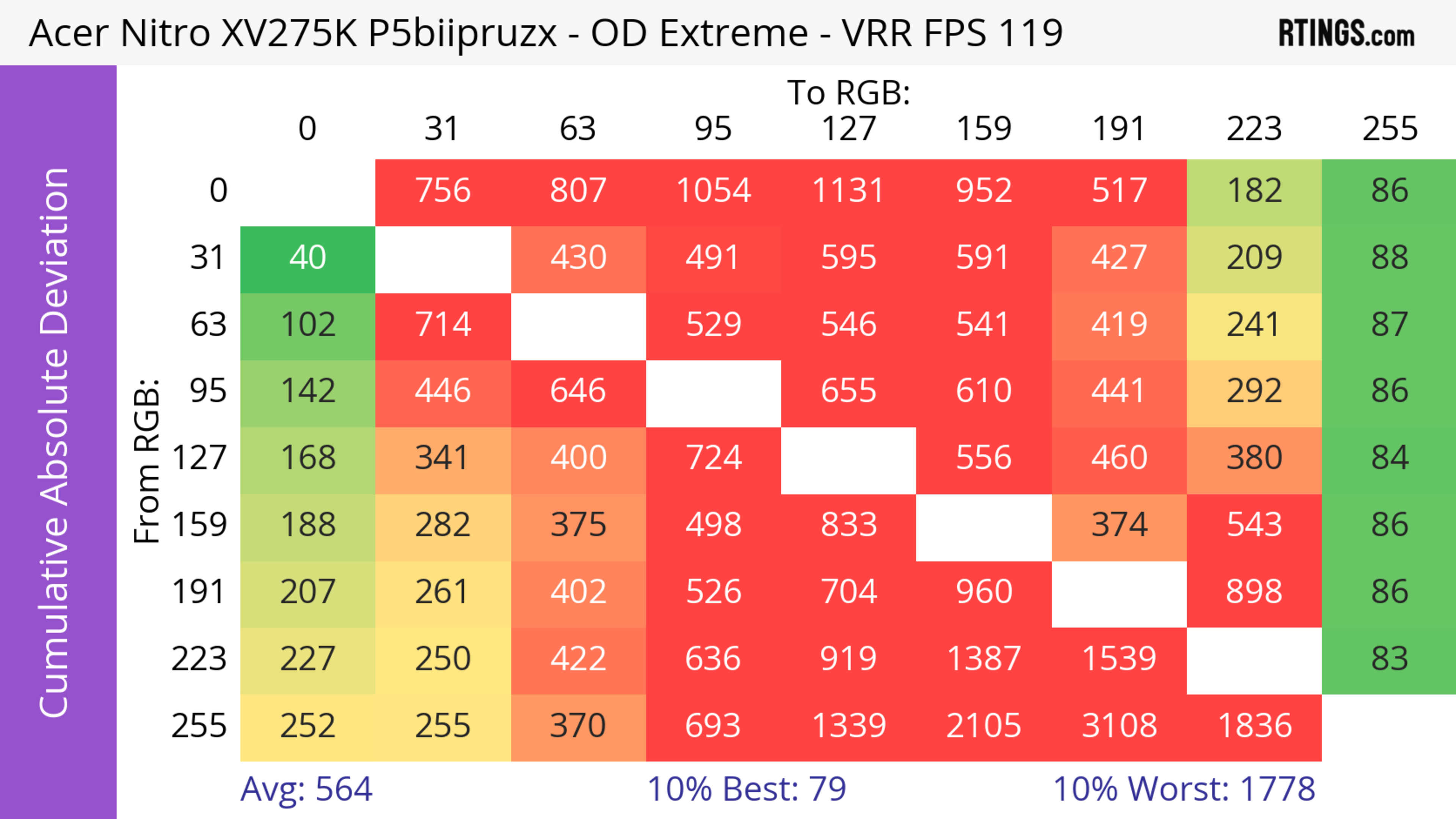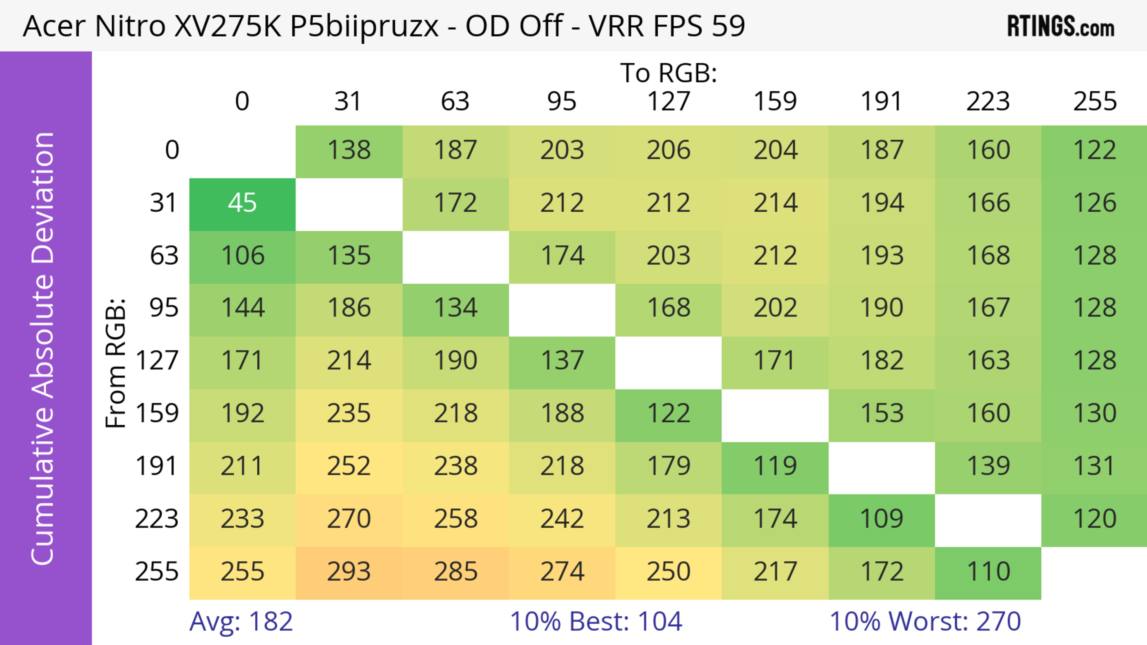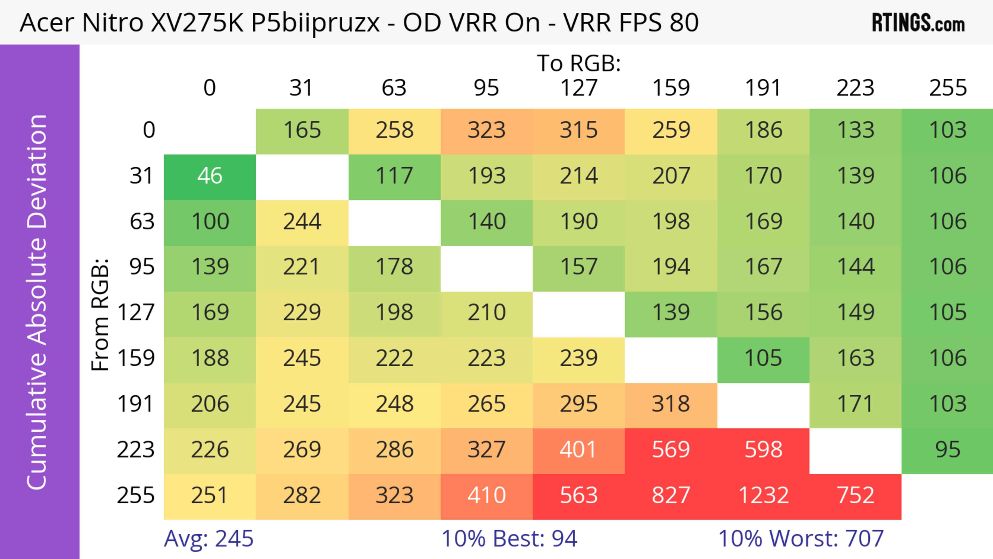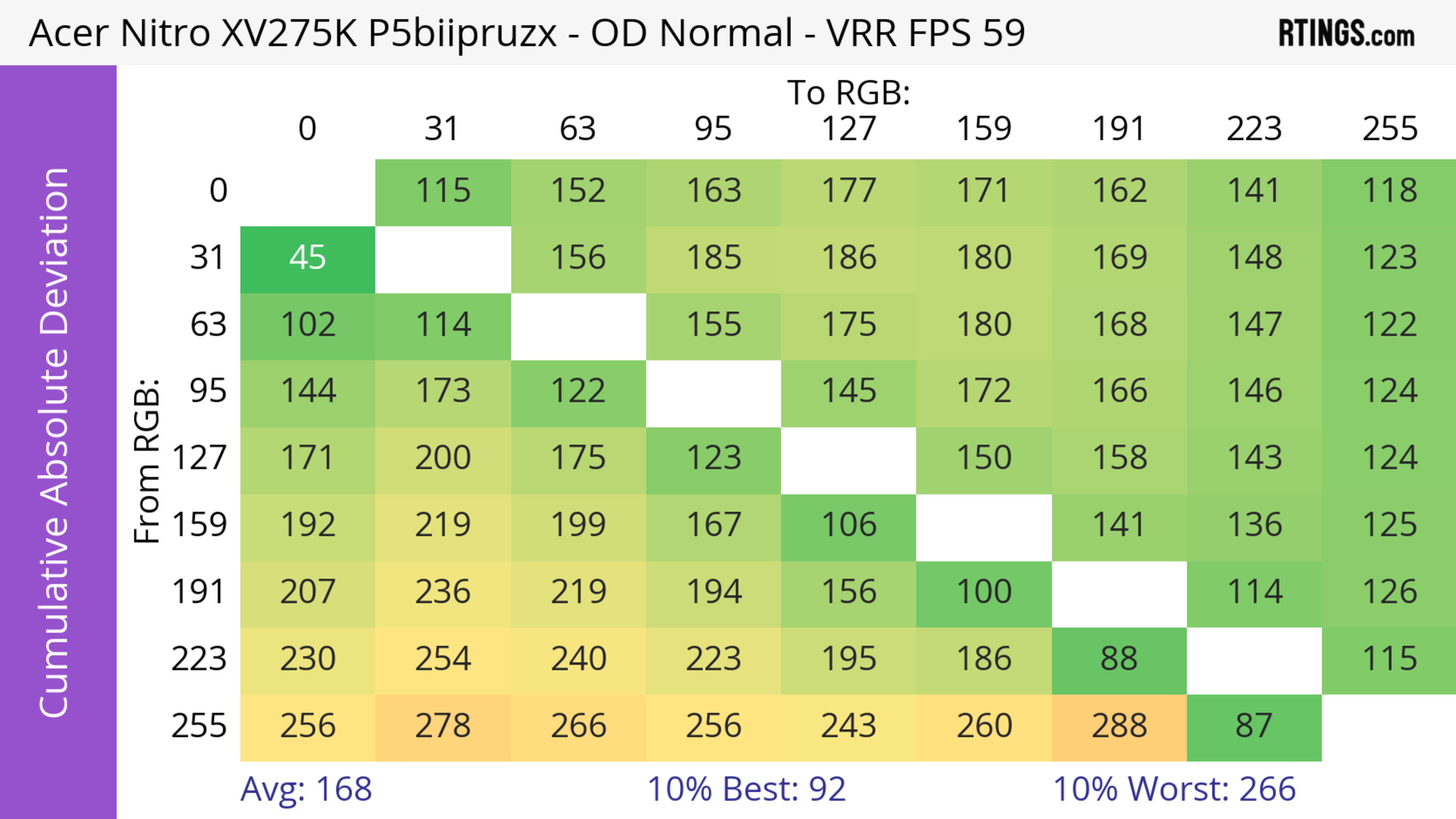 Using VRR disables any of the Over Drive modes. Unlike the older Acer Nitro XV275K P3biipruzx, the previously selected overdrive mode doesn't take effect once you enable VRR, but the 'Normal' setting with VRR off performs the same as using VRR at any refresh rate.
