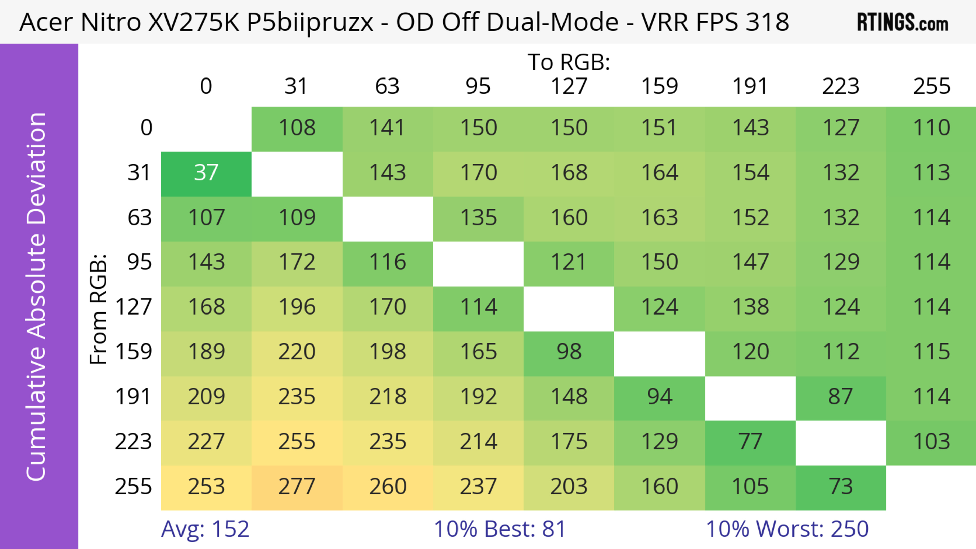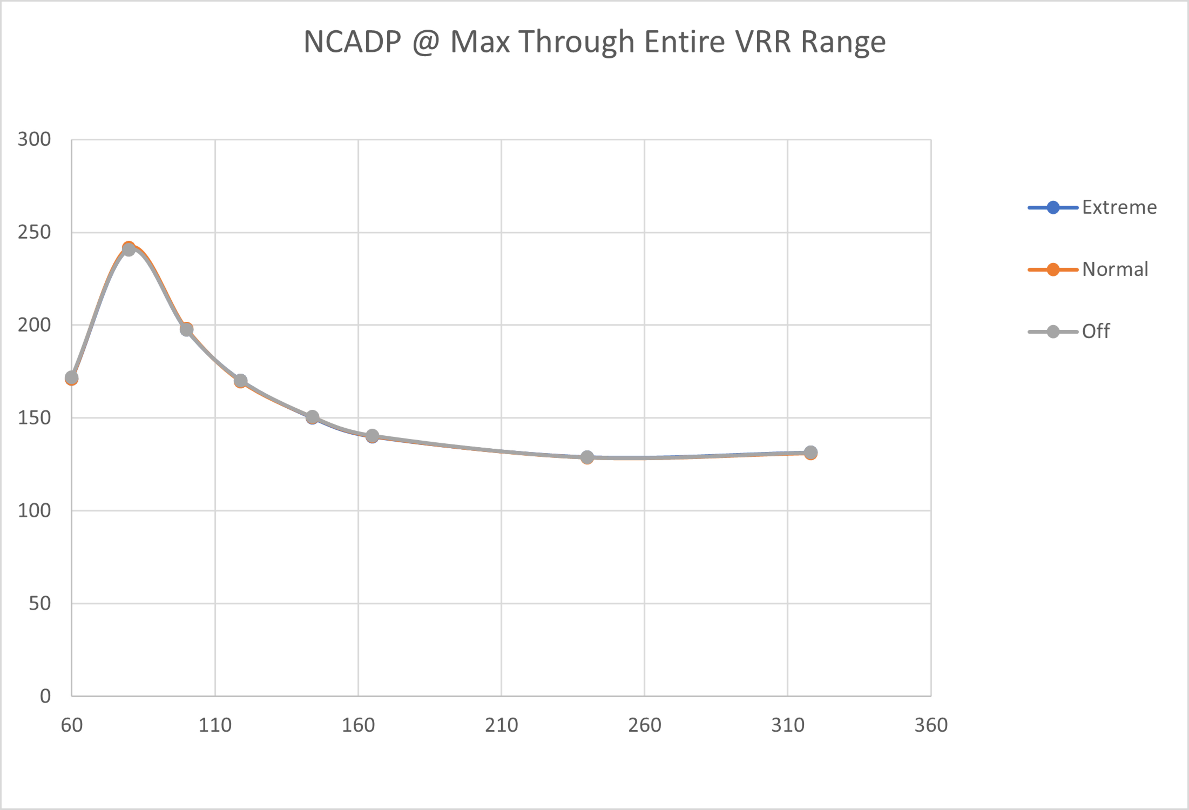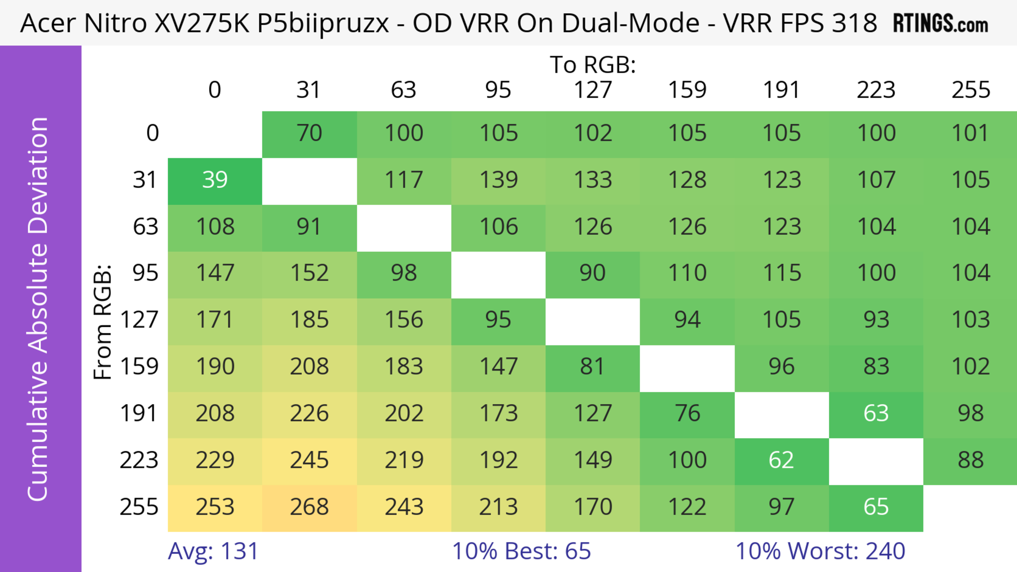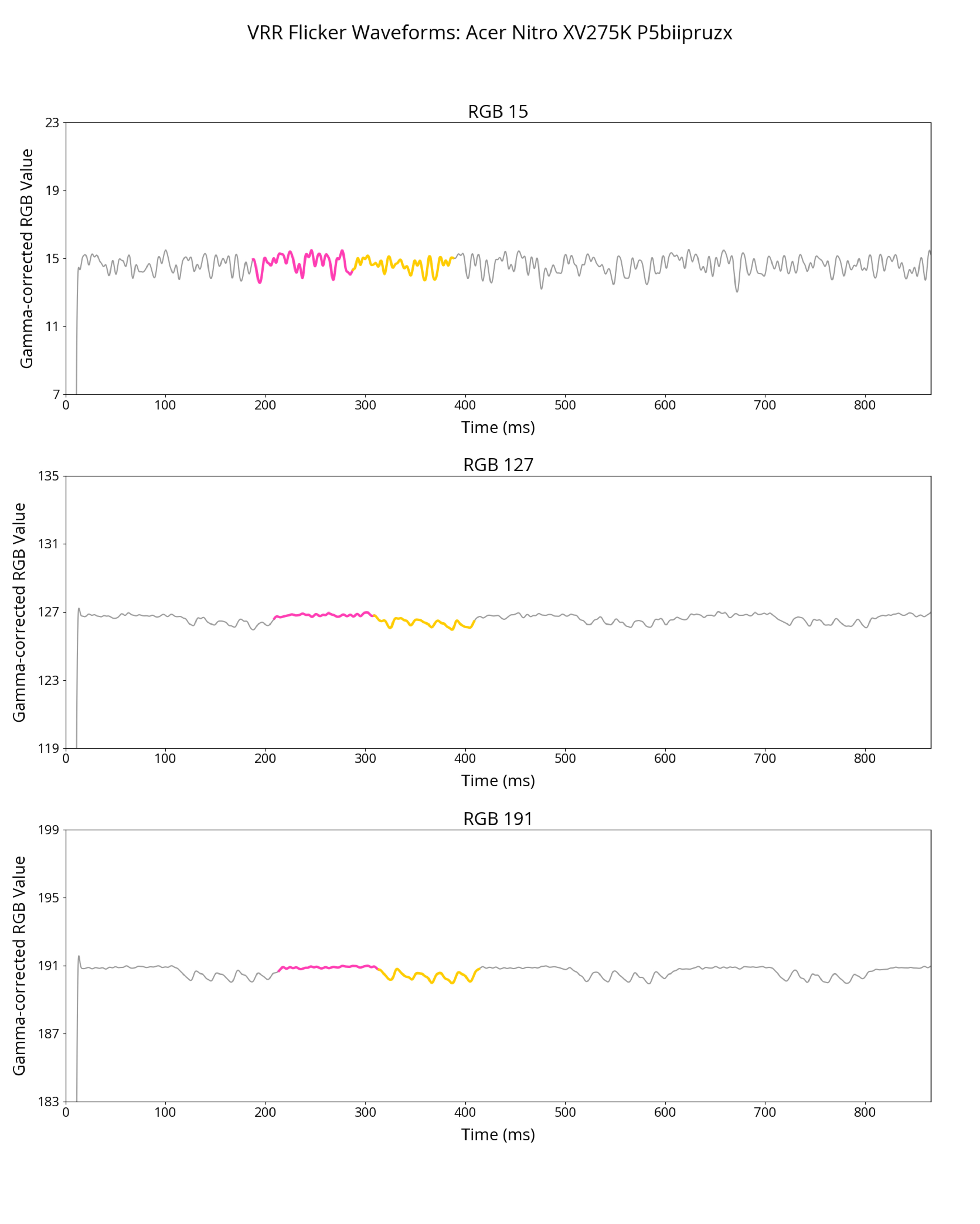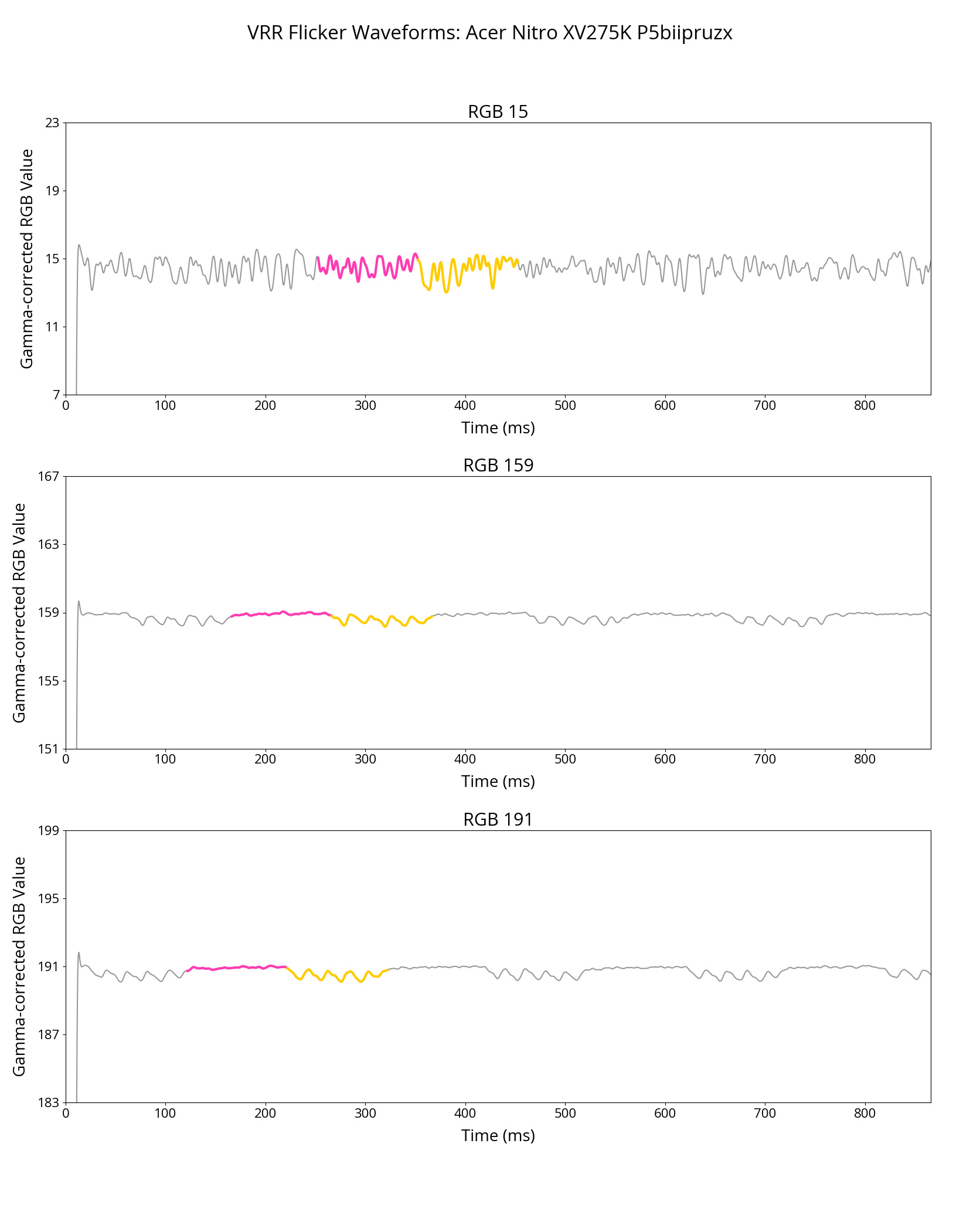 There's no visible VRR flicker with changing frame rates. This is the case even in the 1080p @ 320Hz mode, as you can see with the VRR flicker graph.