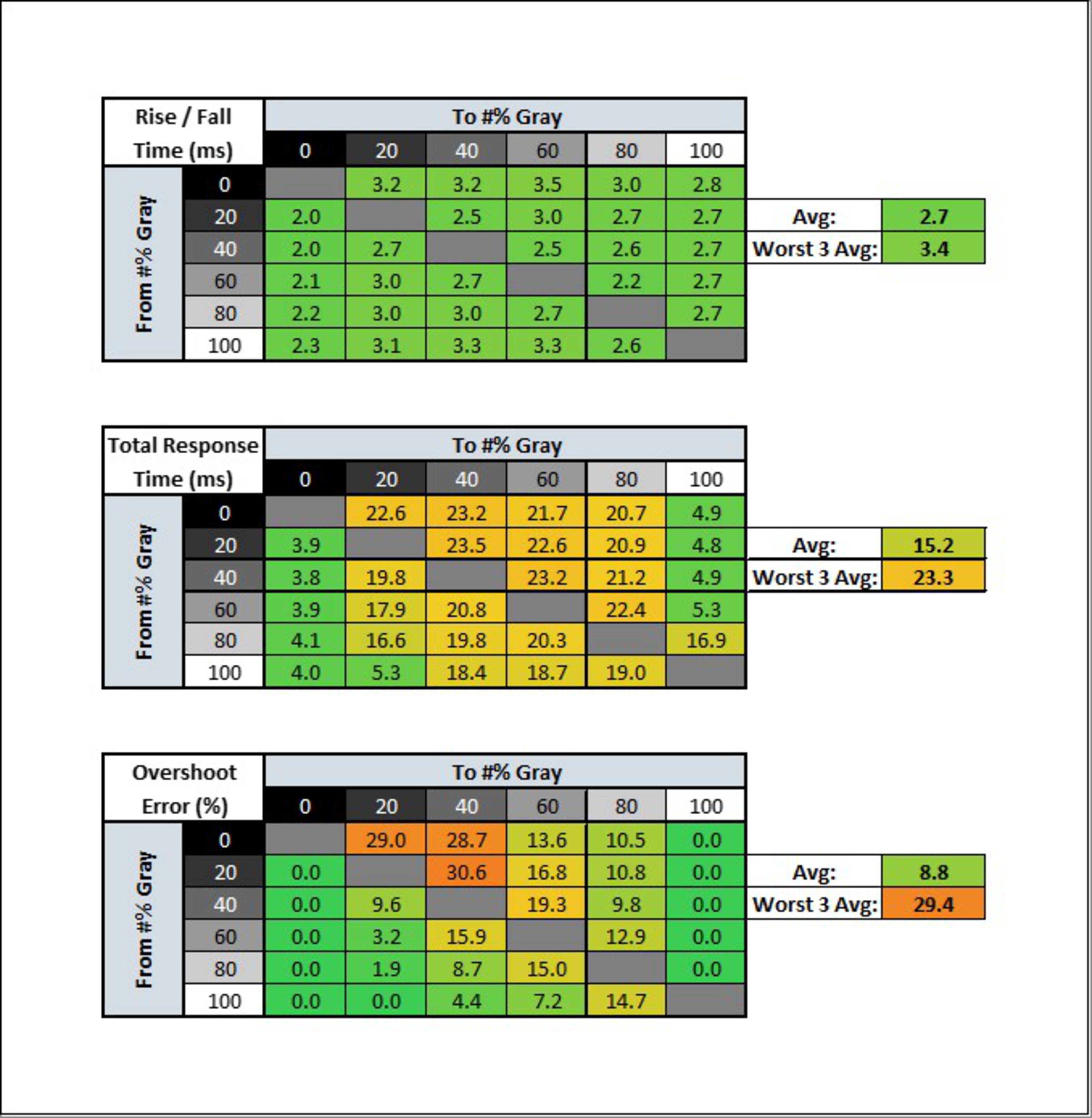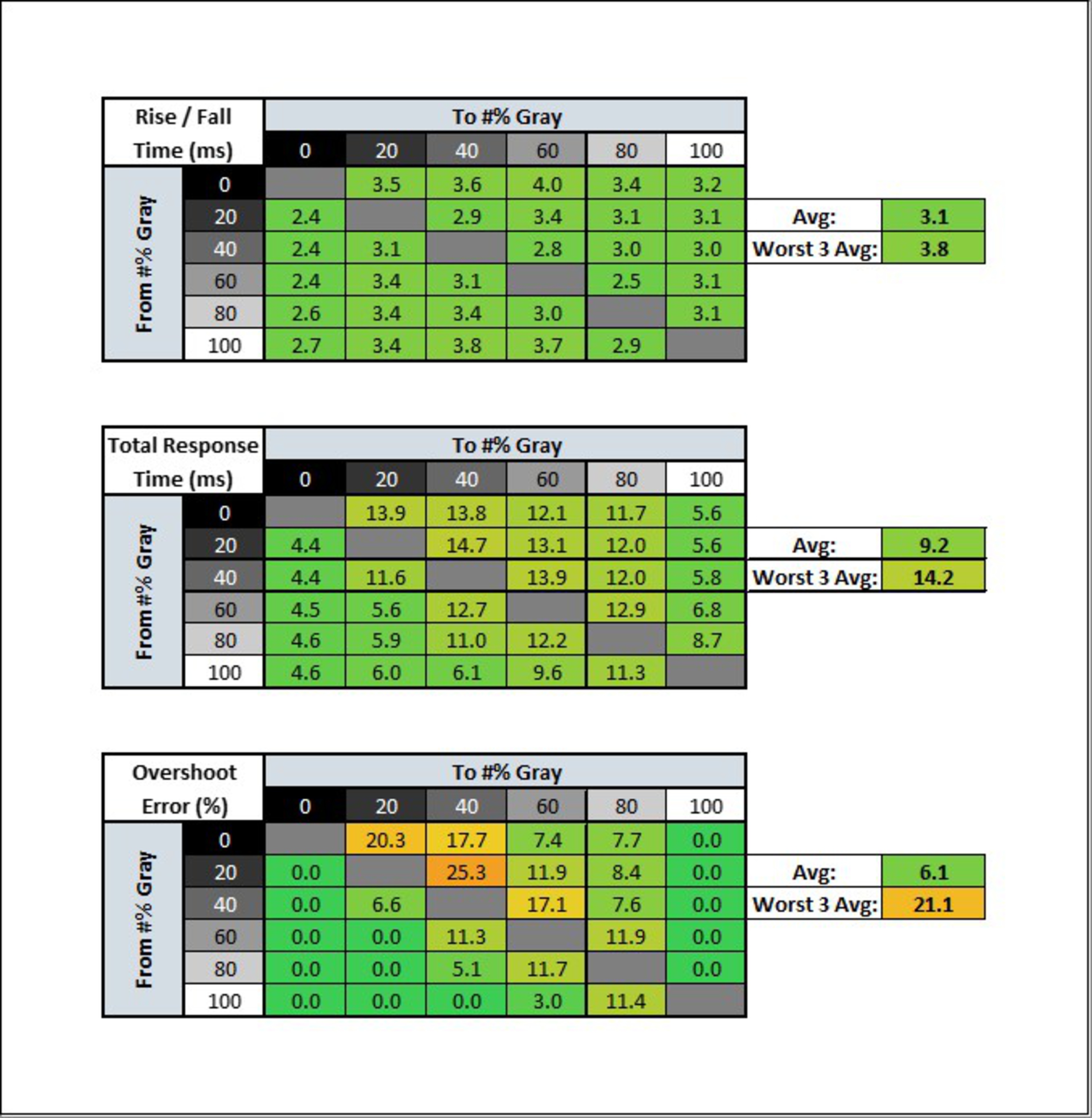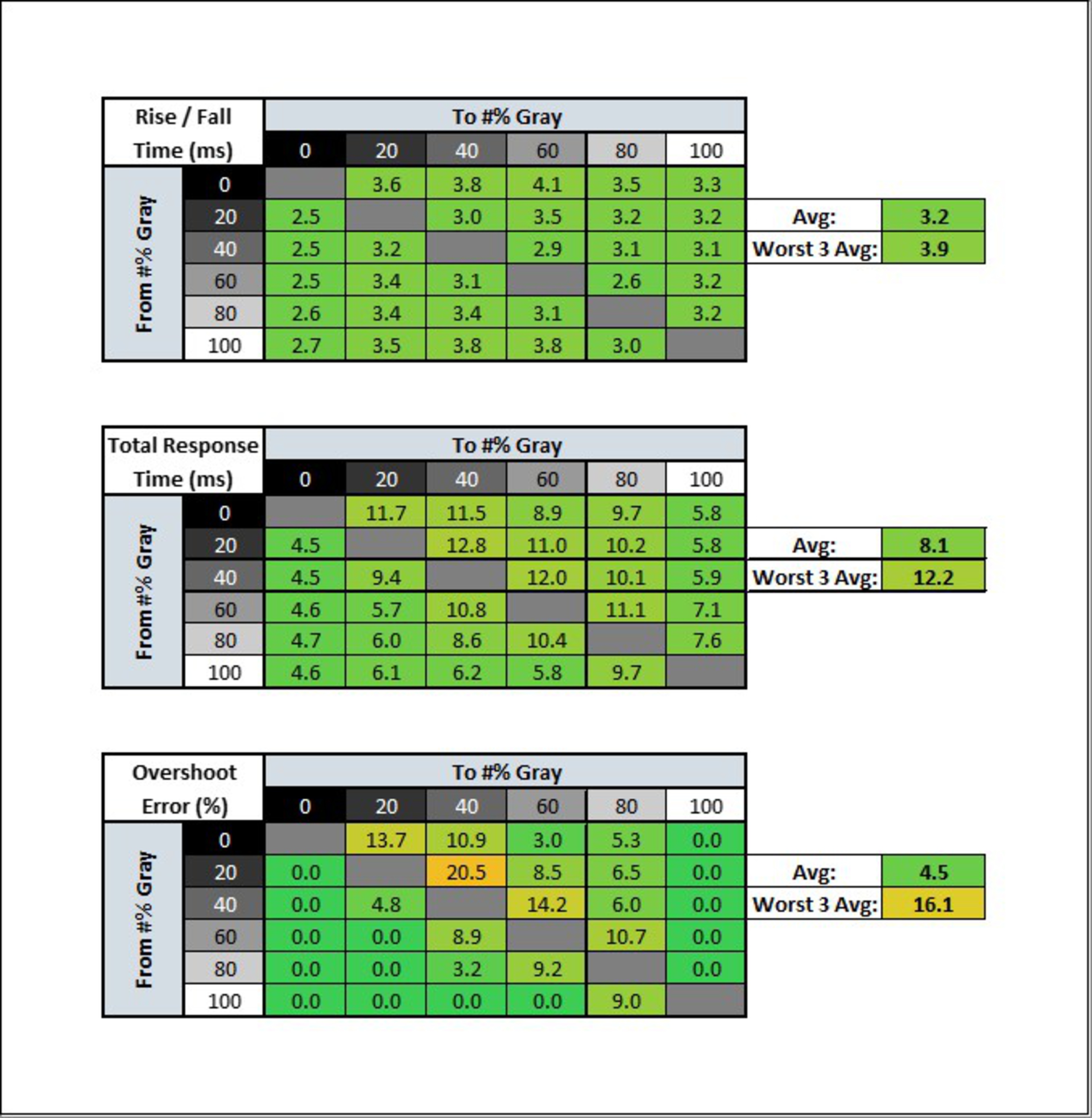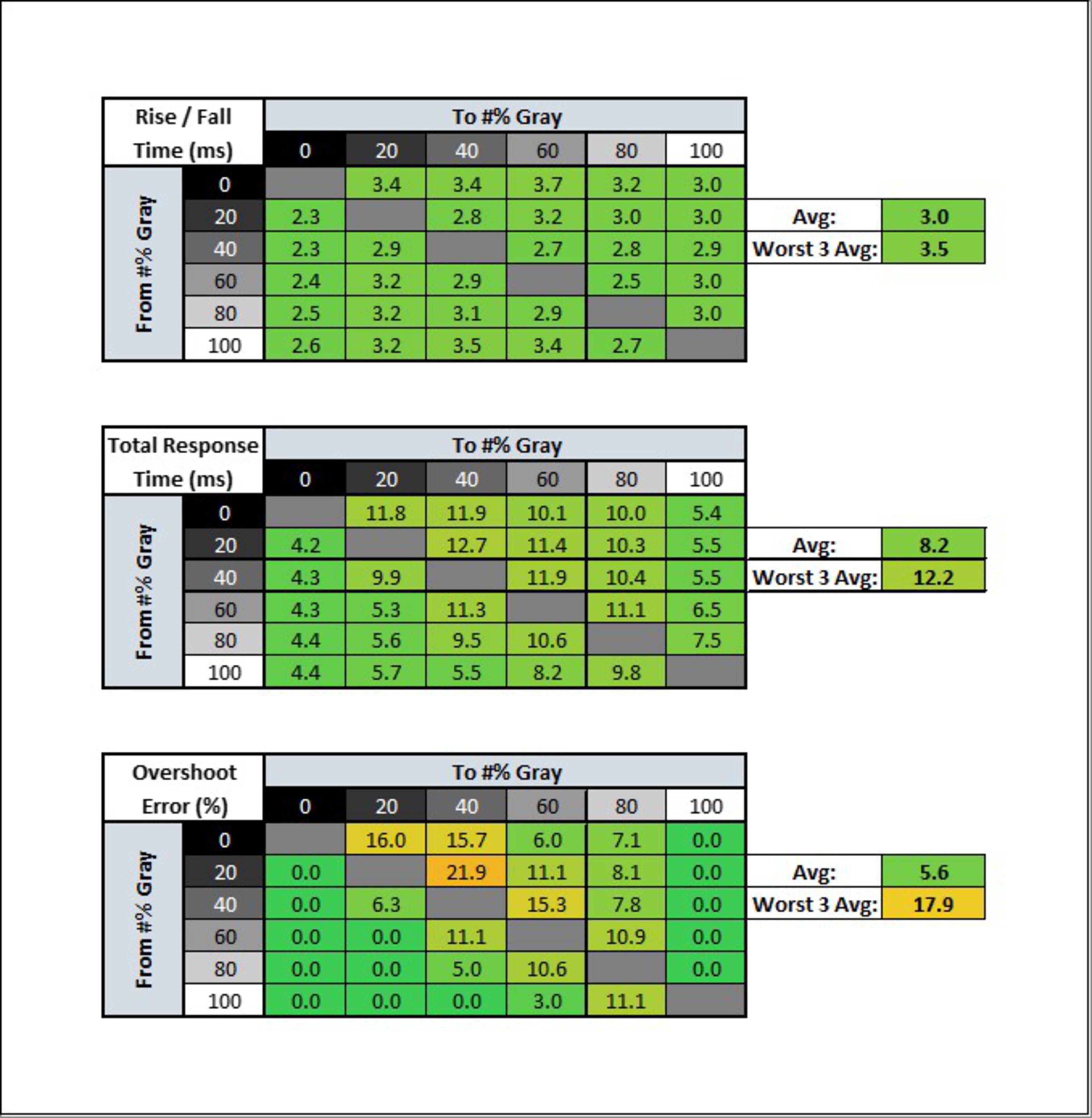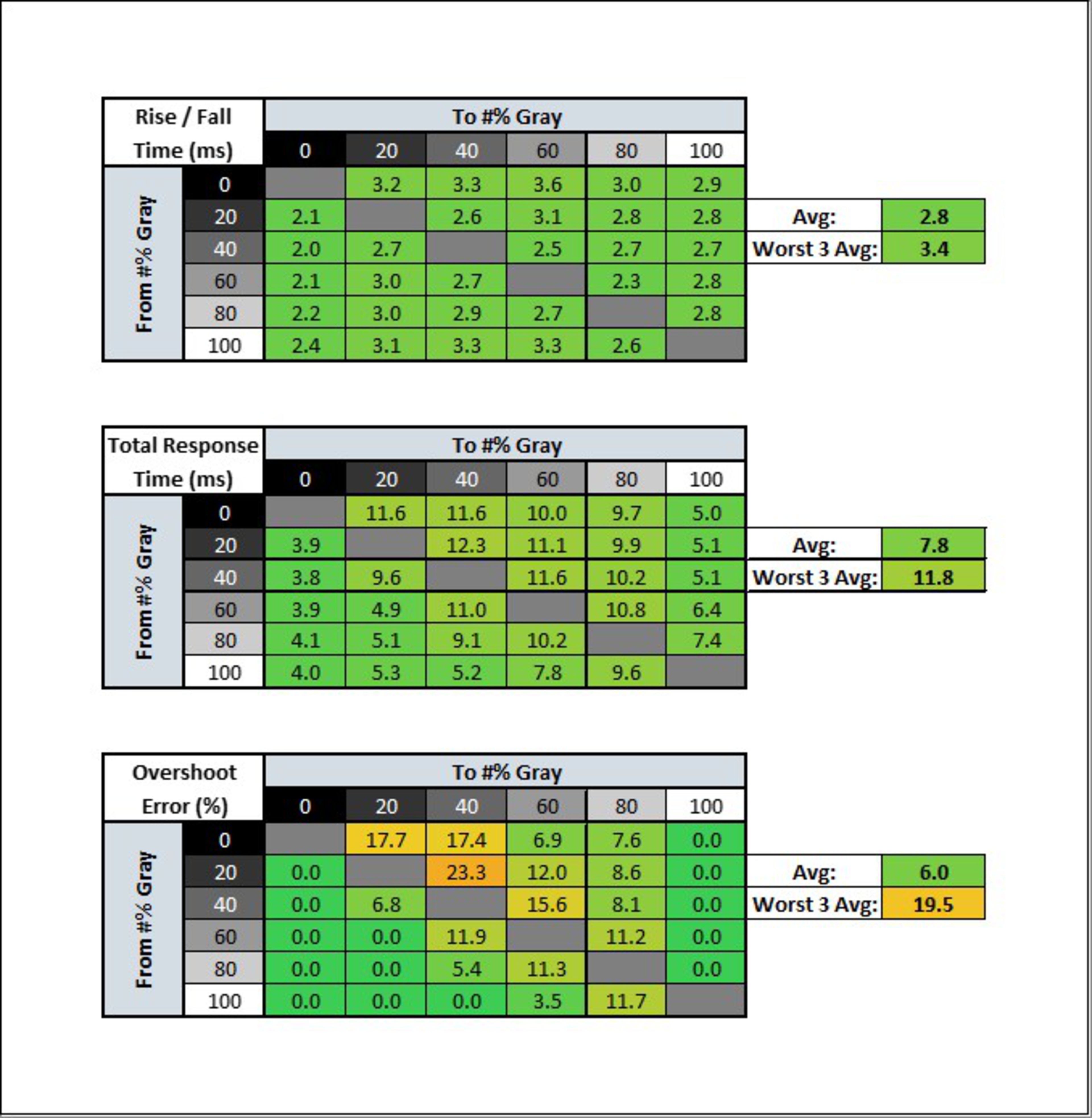 | Overdrive Setting | Response Time Chart | Response Time Tables | Motion Blur Photo |