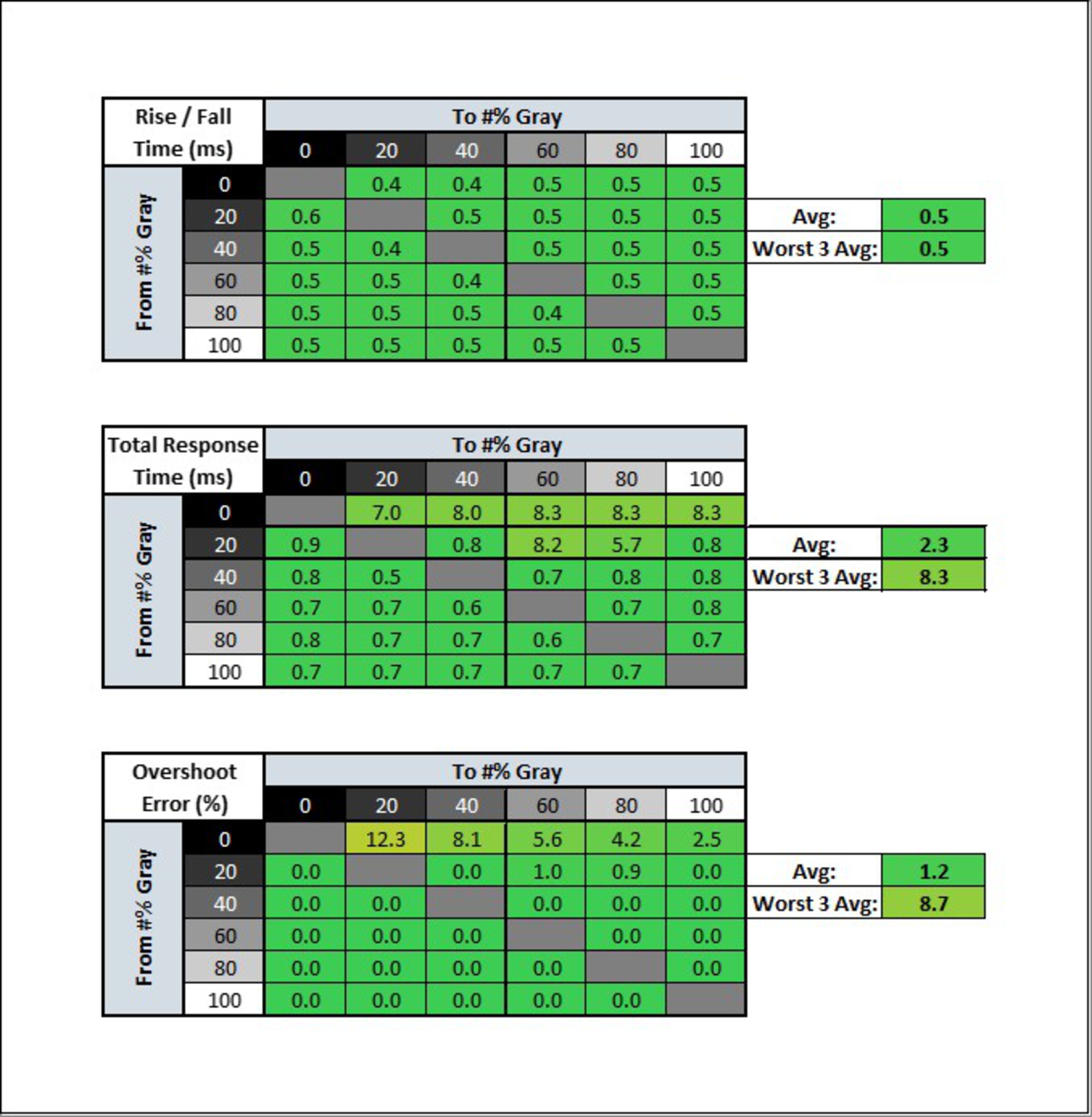 | Overdrive Setting | Response Time Chart | Response Time Tables | Motion Blur Photo |