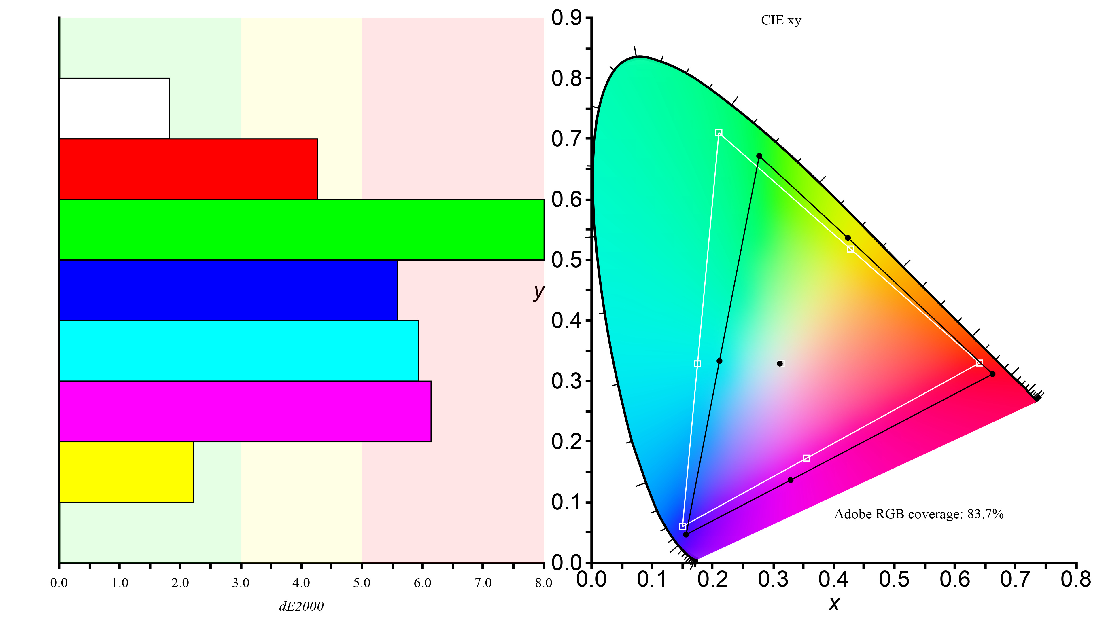 Accuracy is superb after calibration. The remaining inaccuracies aren't visible to the naked eye. The color temperature is much closer to our 6500K target, and gamma is nearly perfect.