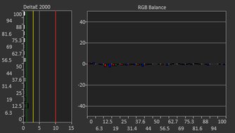 Impressive out-of-box color accuracy. Most colors appear accurate, although the color temperature is colder than the 6500K target, so some colors will have a blue tint to them. Overall, the gamma curve follows the target well, but dark scenes will be darker than they should, and bright scenes will be brighter.