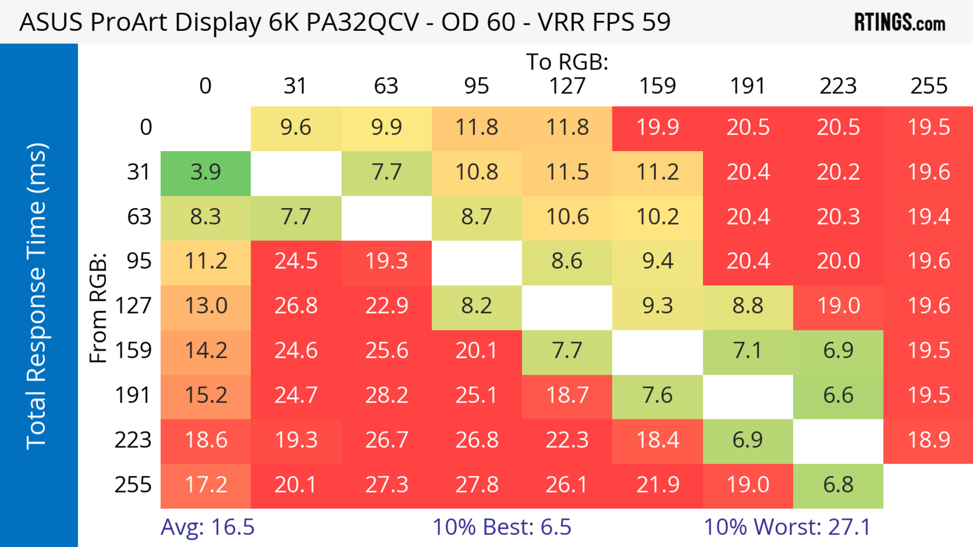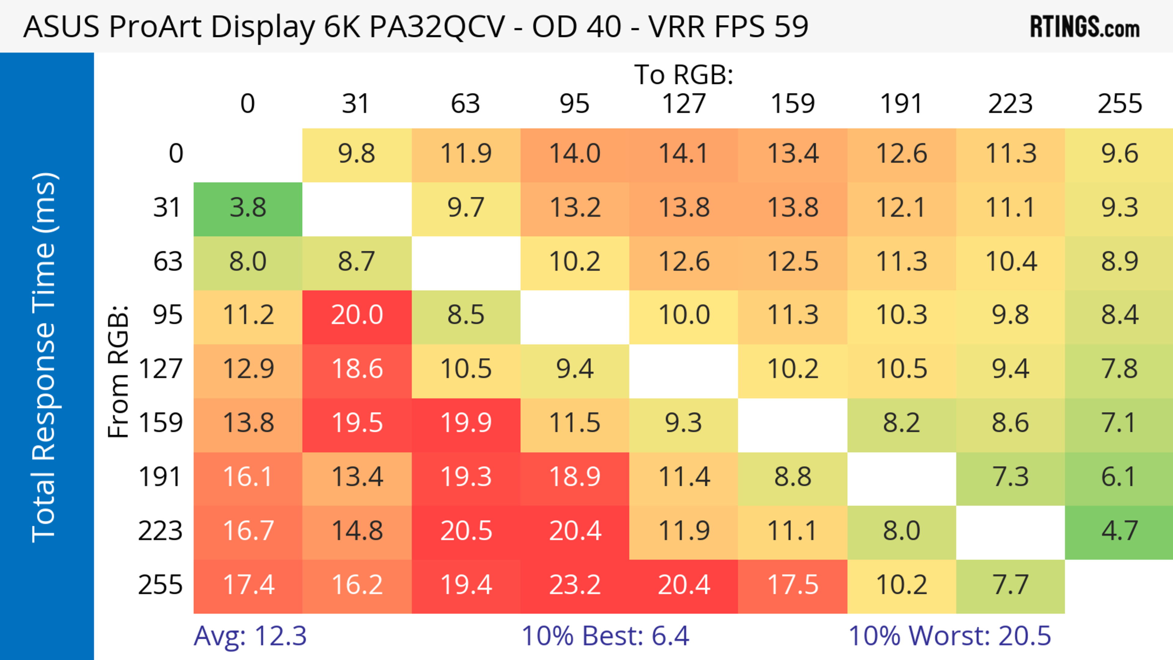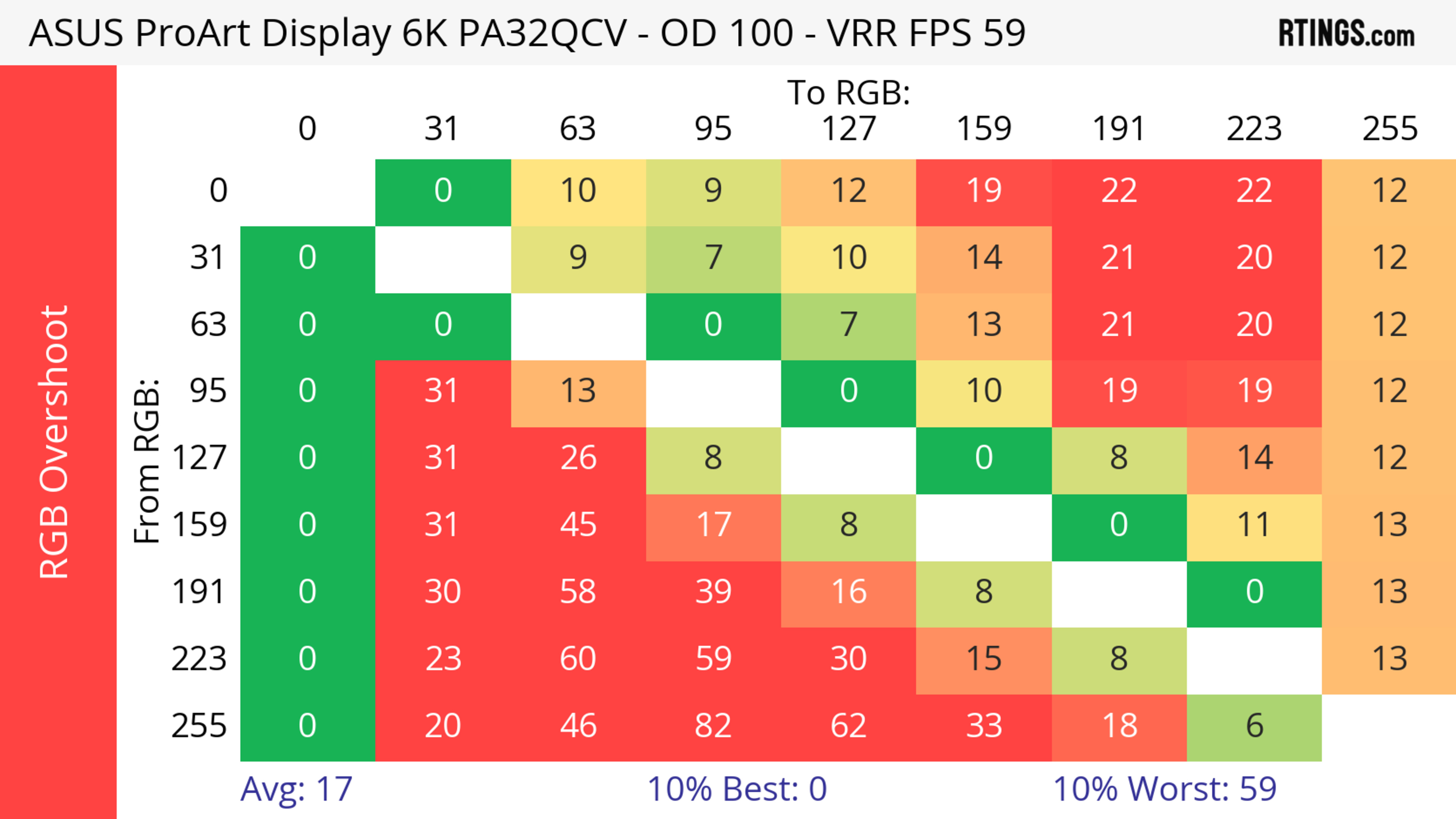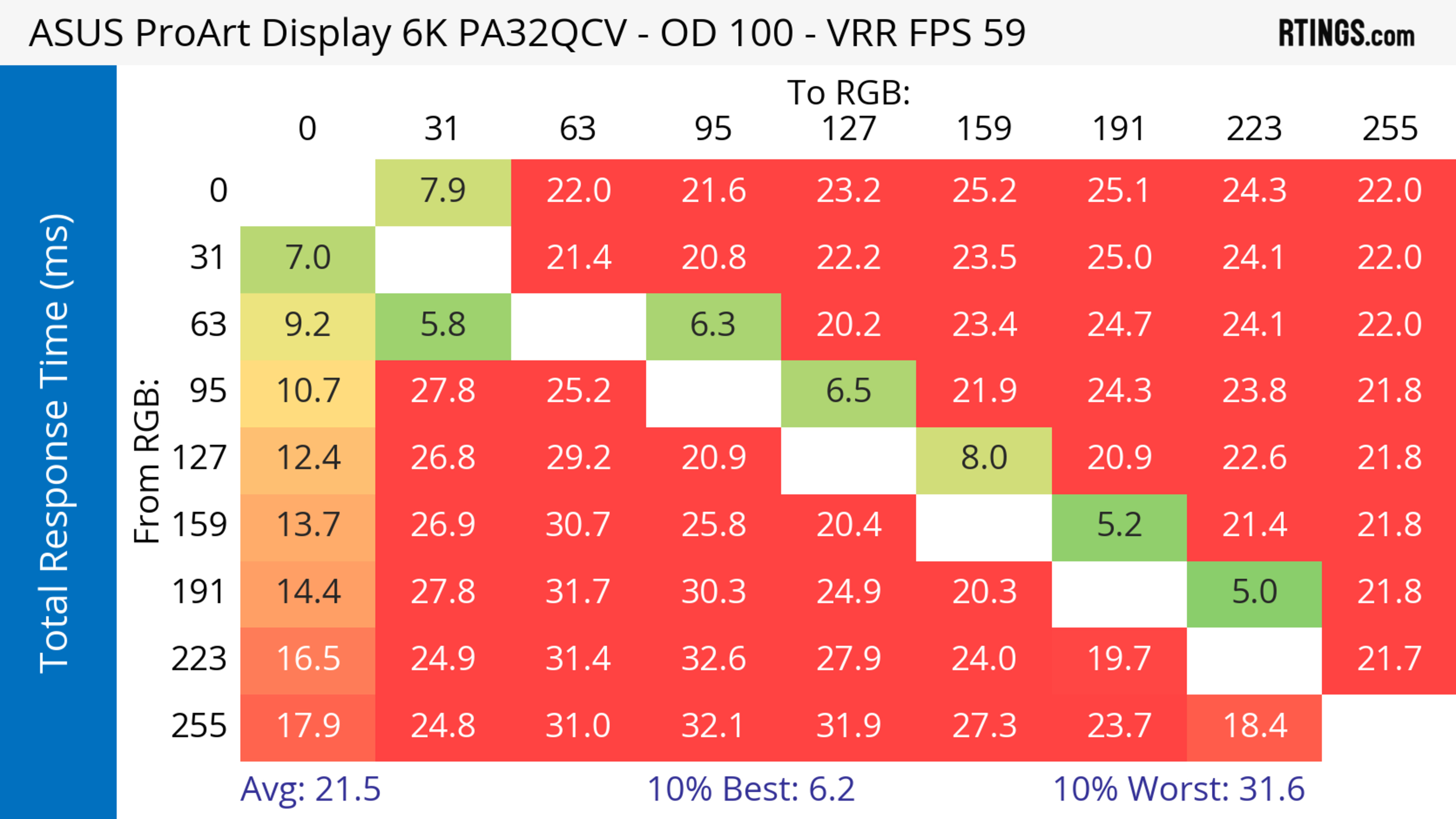 The ASUS ProArt Display 6k PA32QCV has unremarkable motion handling across its VRR range. There's noticeable blur with fast-moving objects, which is to be expected from a 60Hz monitor geared towards content creation.