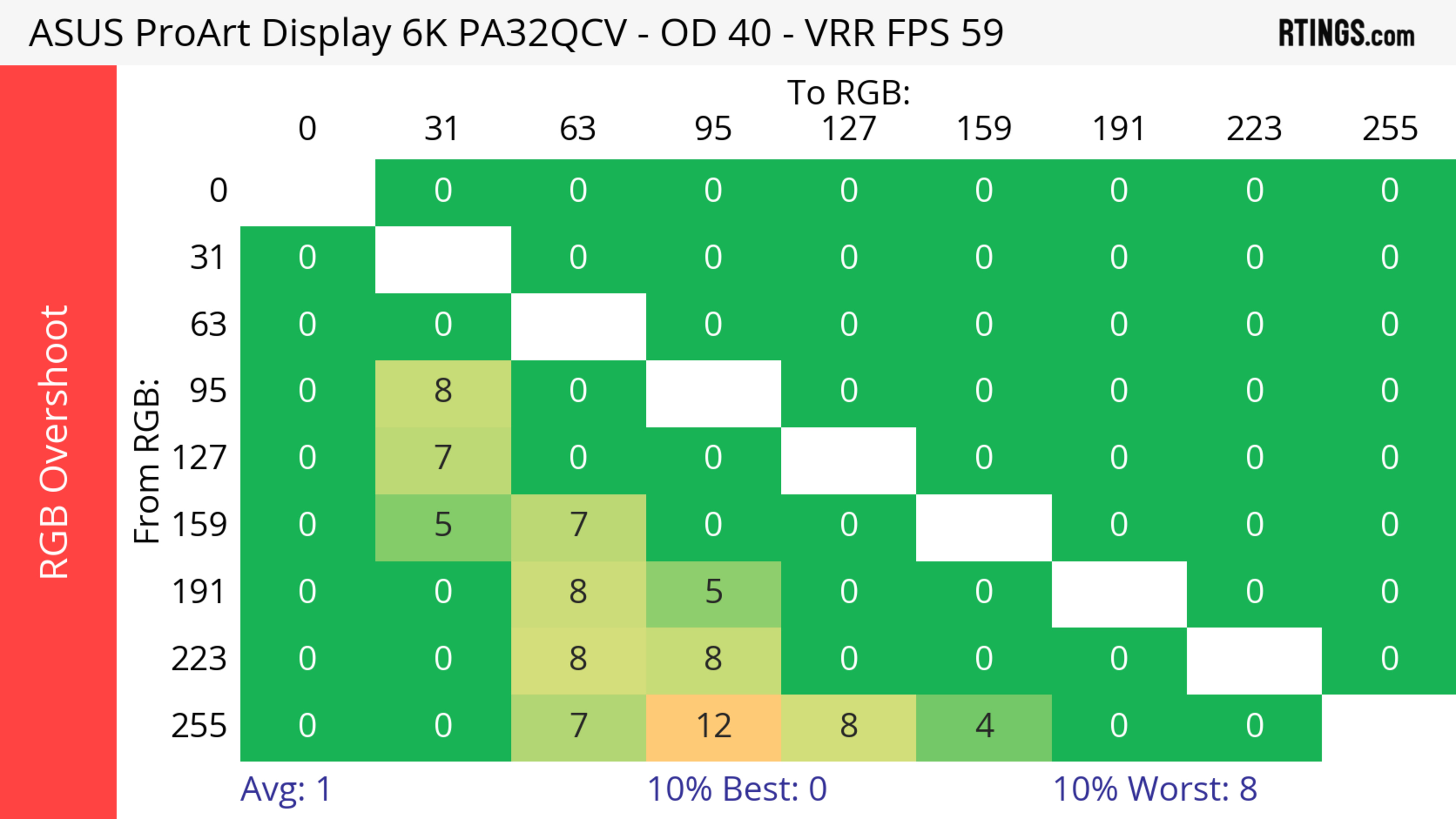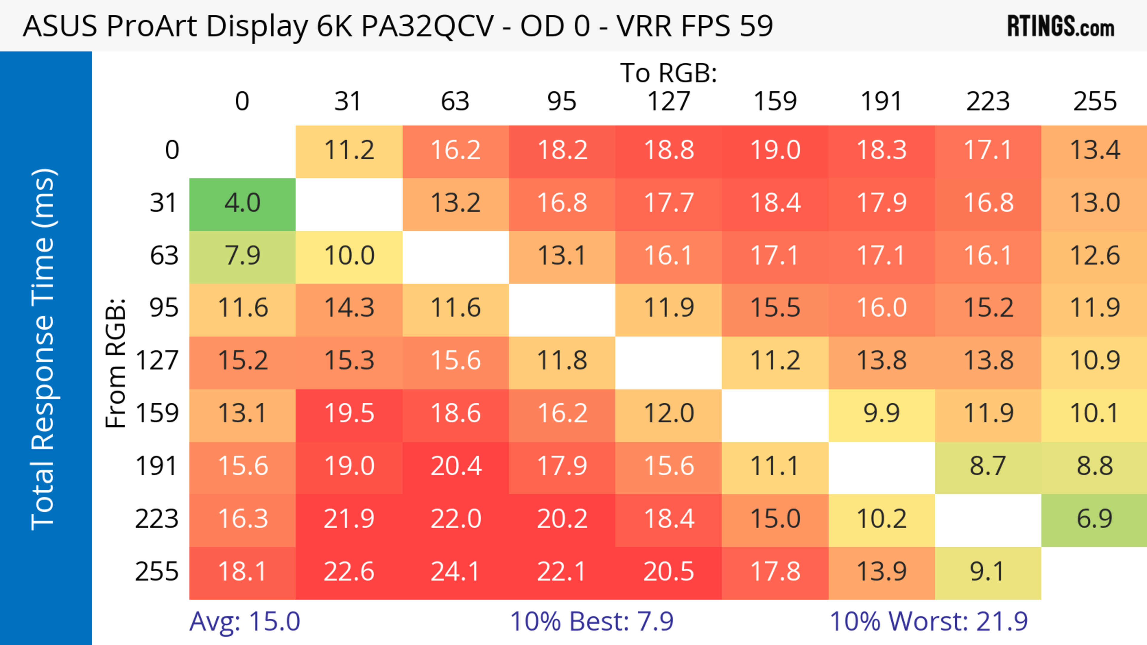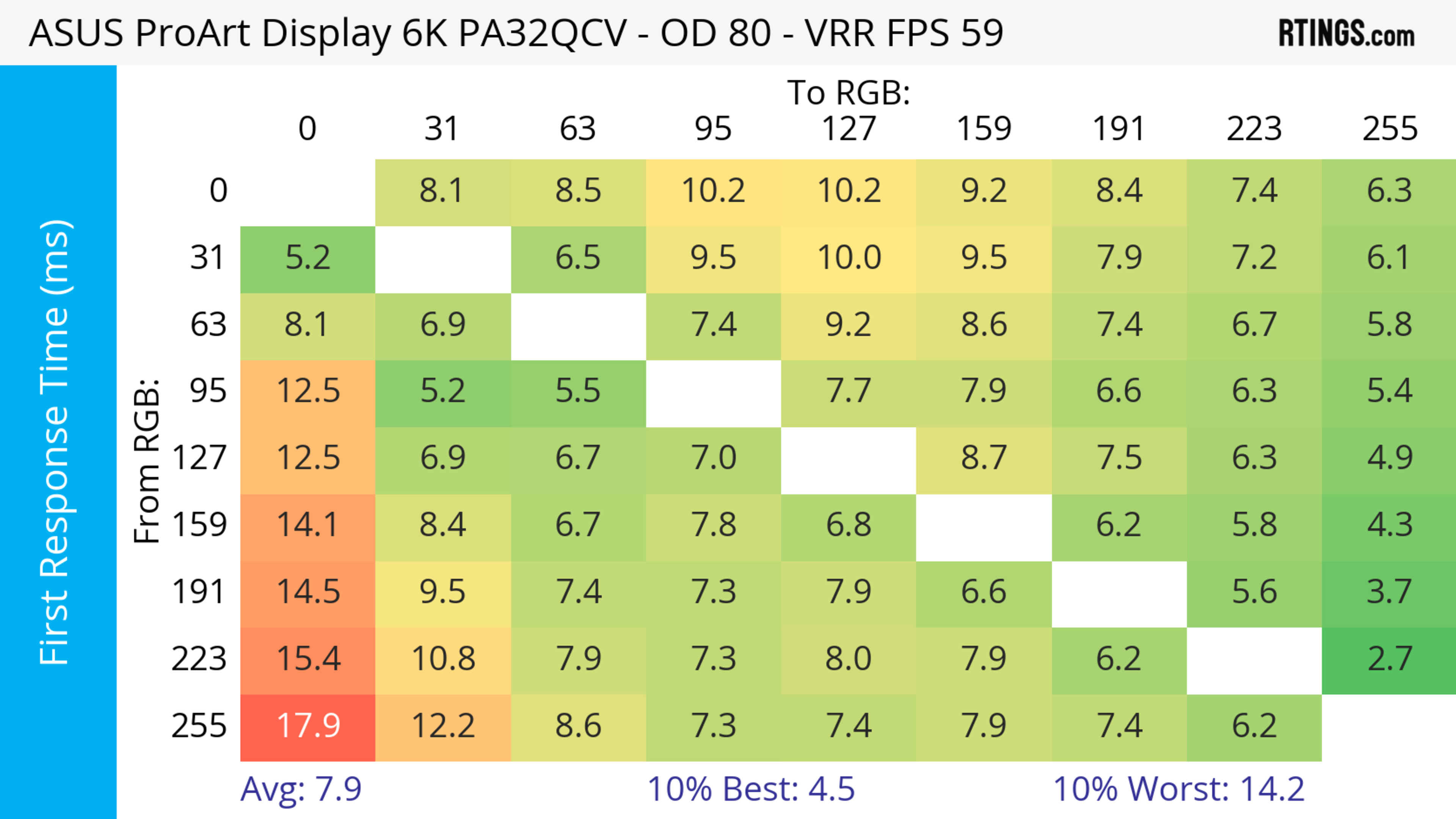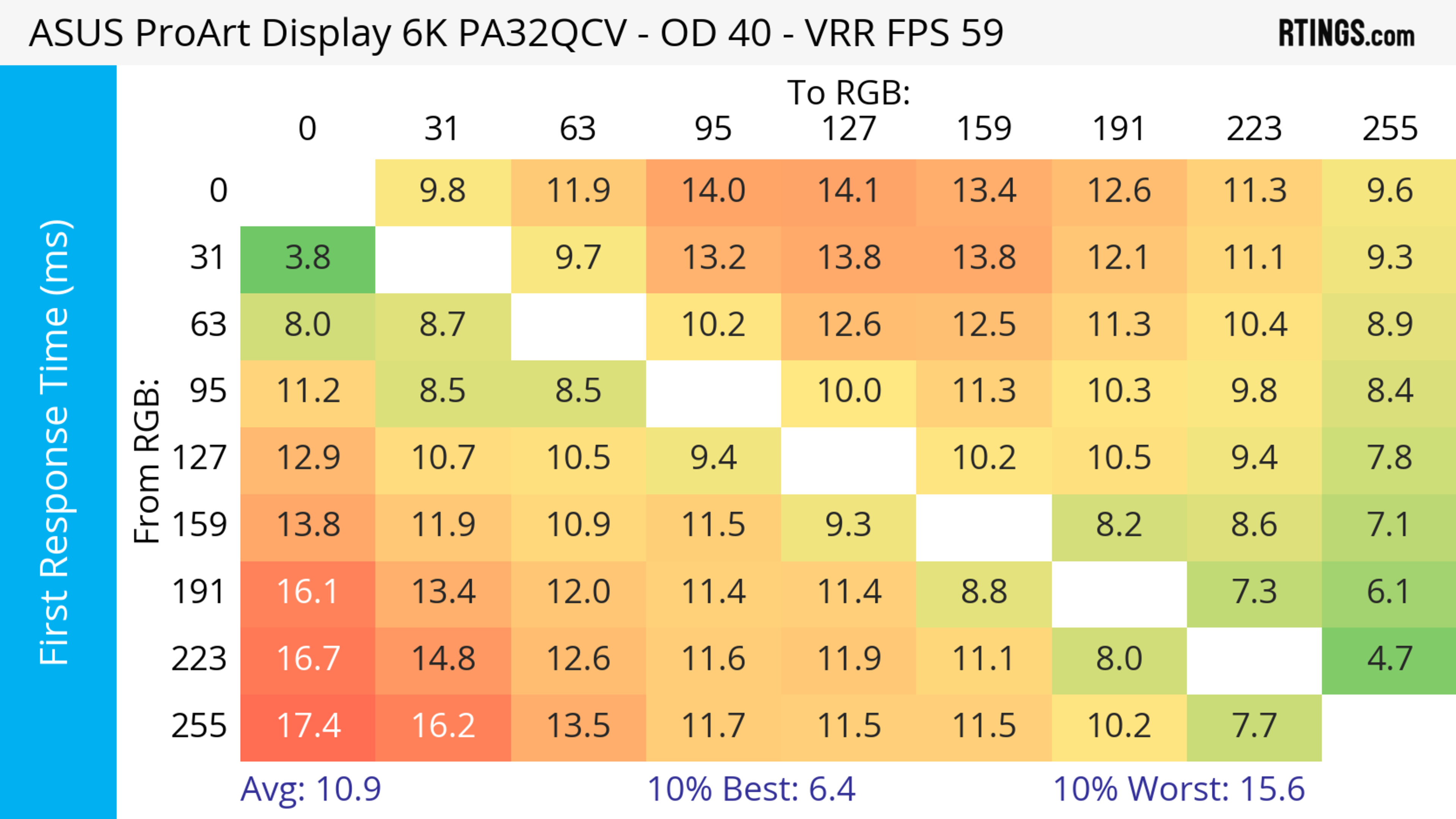 The ASUS ProArt Display 6k PA32QCV has unremarkable motion handling across its VRR range. There's noticeable blur with fast-moving objects, which is to be expected from a 60Hz monitor geared towards content creation.