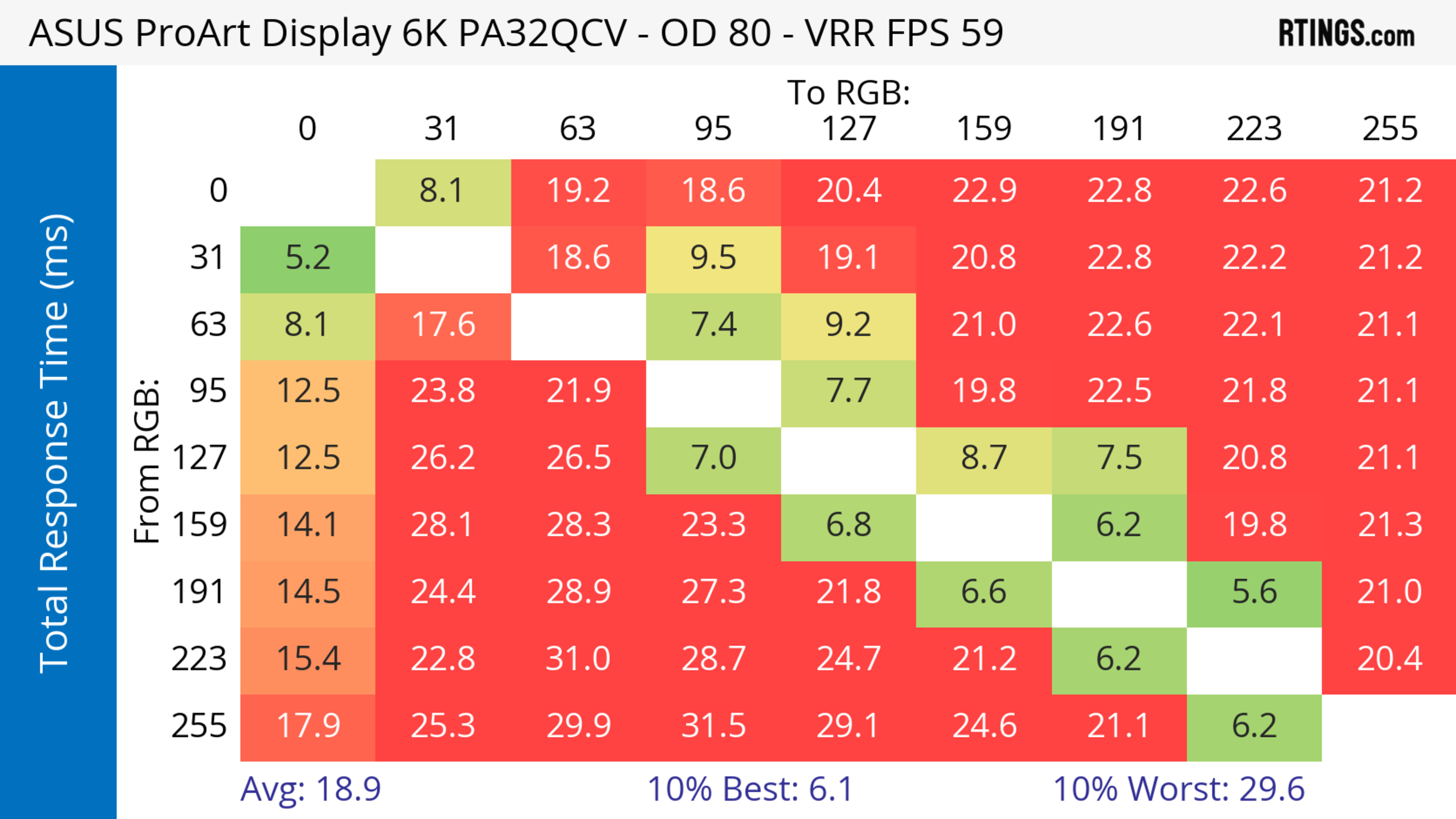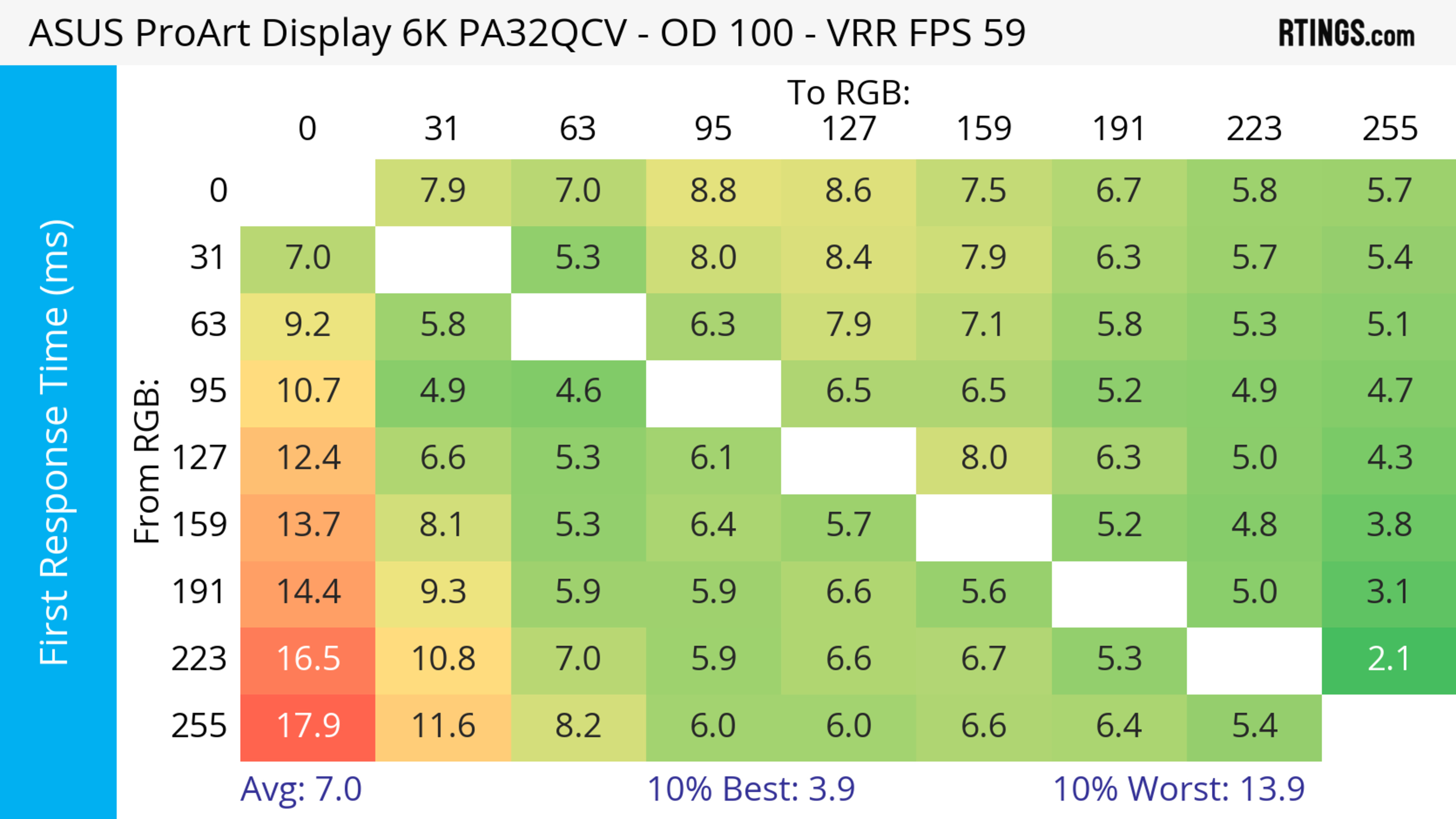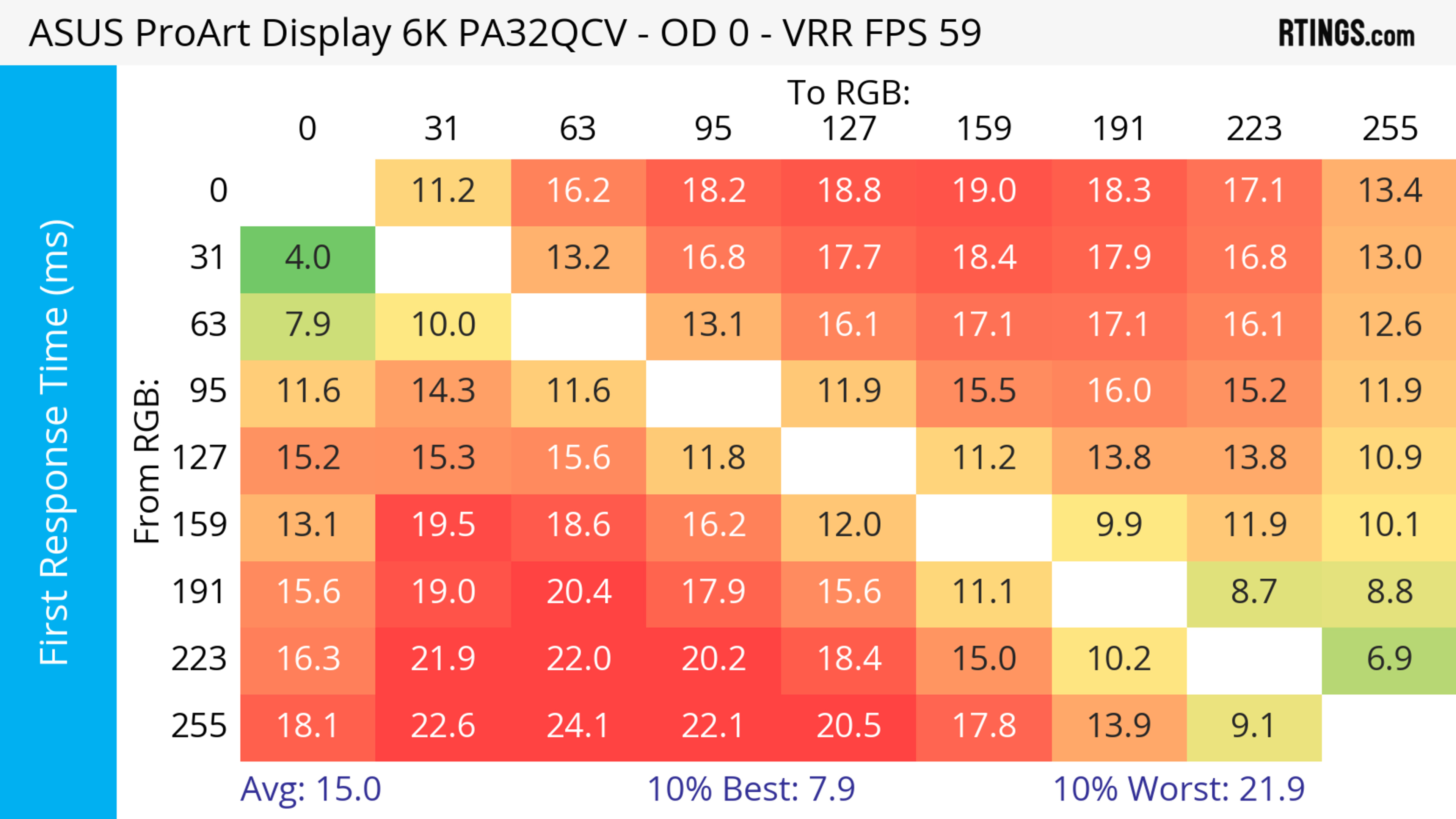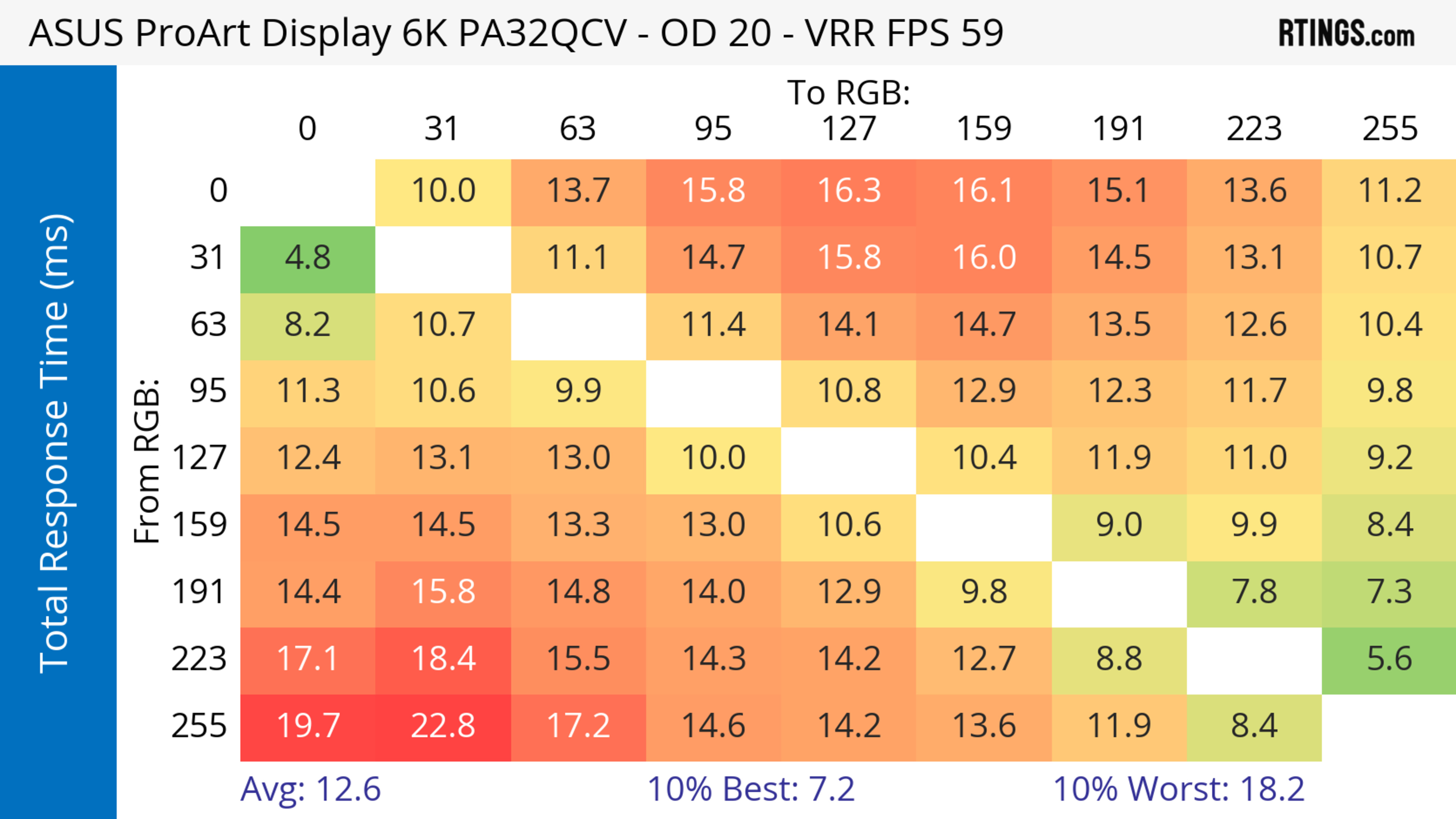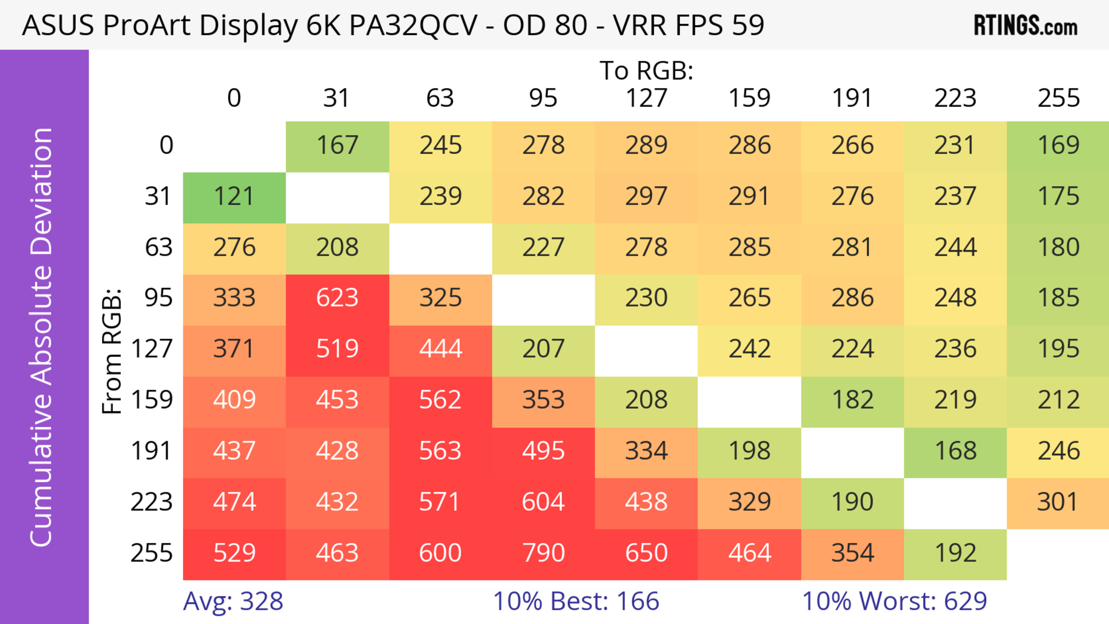The ASUS ProArt Display 6k PA32QCV has unremarkable motion handling across its VRR range. There's noticeable blur with fast-moving objects, which is to be expected from a 60Hz monitor geared towards content creation.