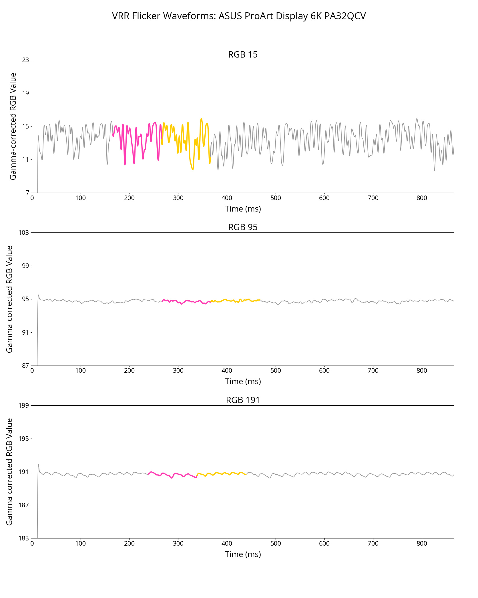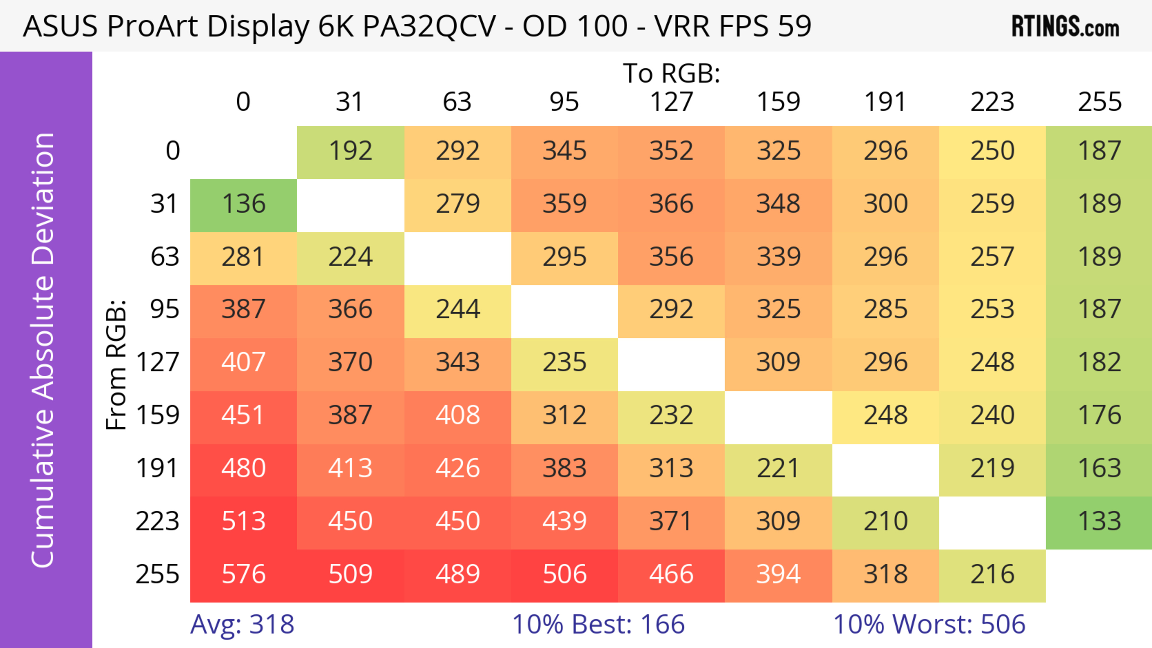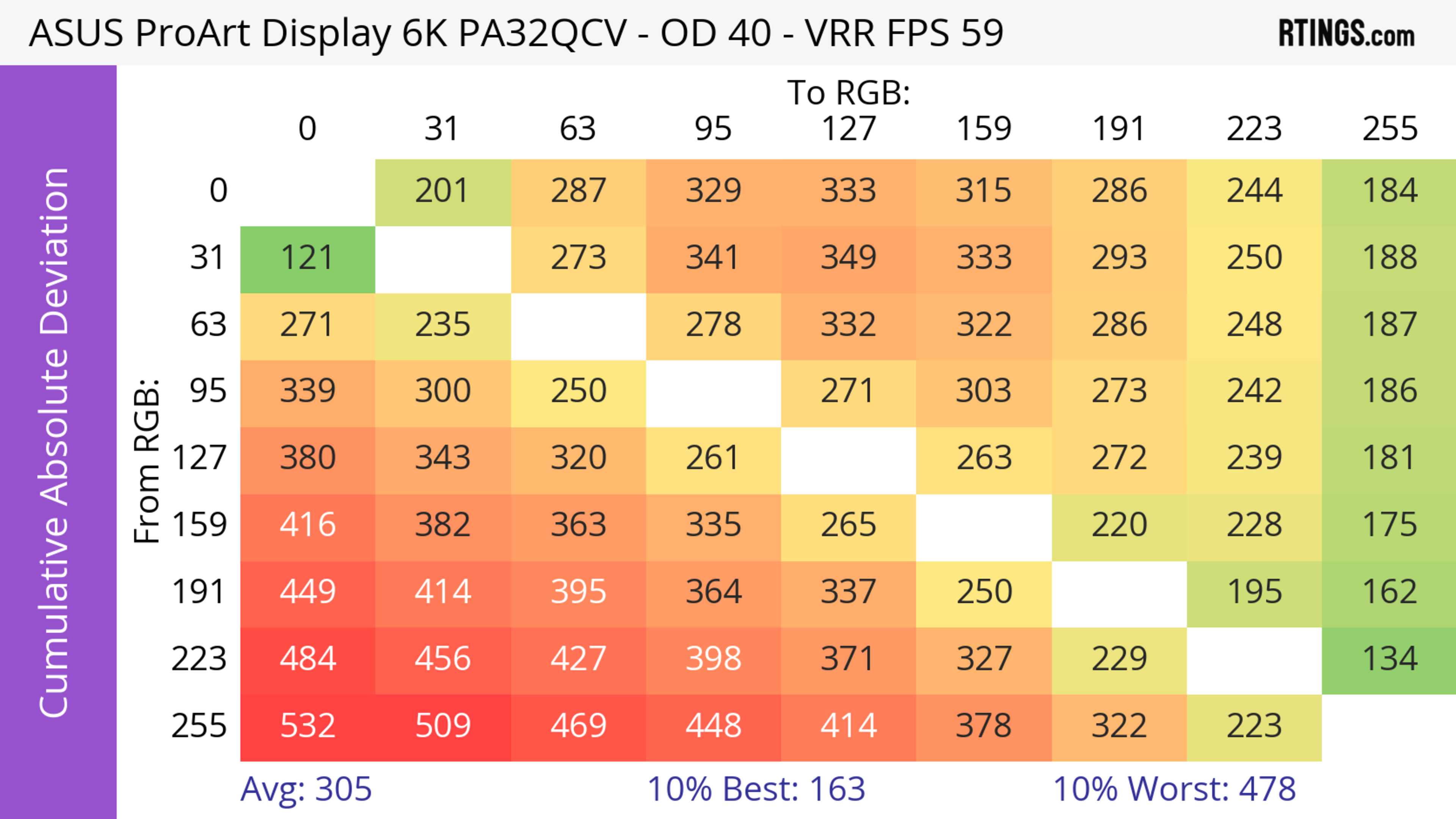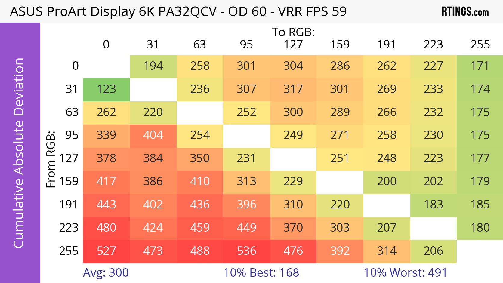 The ASUS ProArt Display 6k PA32QCV has unremarkable motion handling across its VRR range. There's noticeable blur with fast-moving objects, which is to be expected from a 60Hz monitor geared towards content creation.