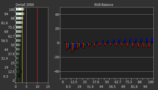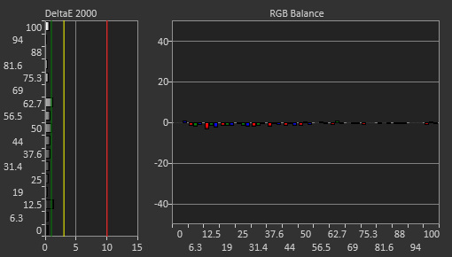 The gray uniformity is good. The screen is uniform in the center, but the edges are darker. This vignetting isn't as obvious with darker grays, though.