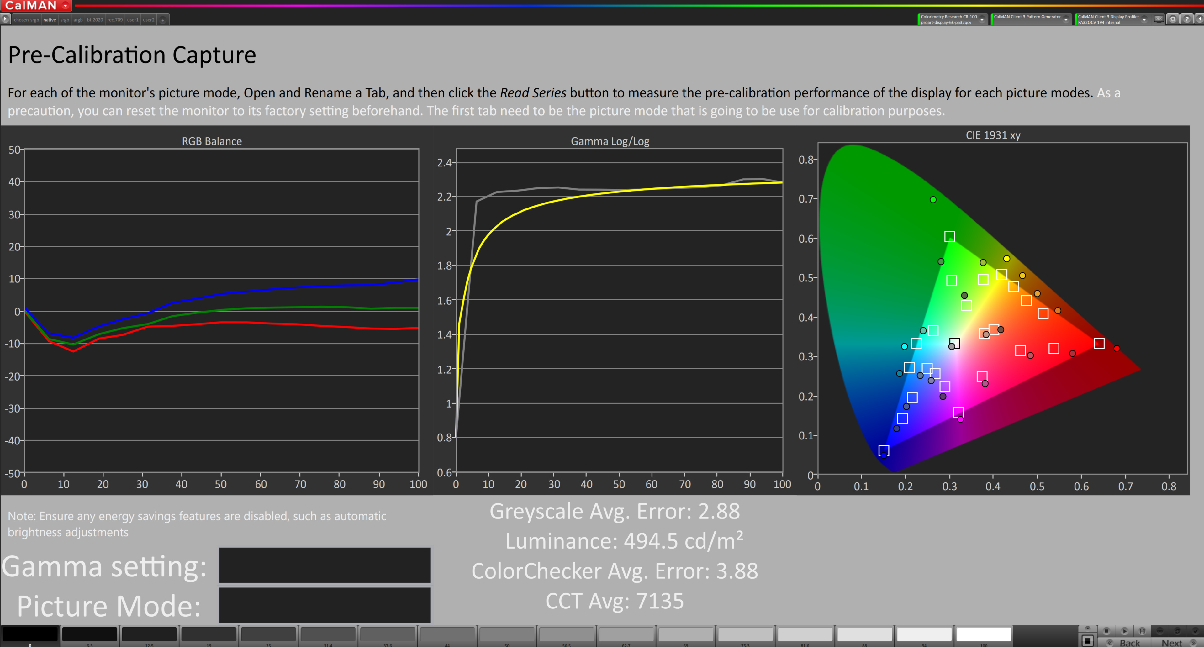 This monitor has a number of settings to help you fine-tune your calibration, including two-point white balance. You can adjust the RGB gain and offset sliders from 0-400, with increments of 1, which helps you finely calibrate display. It also has different Preset Modes for various color spaces that you may work with, like BT.2020, DICOM for medical imaging, and an 'M Model-P3' mode that's suggested to use with Apple displays.