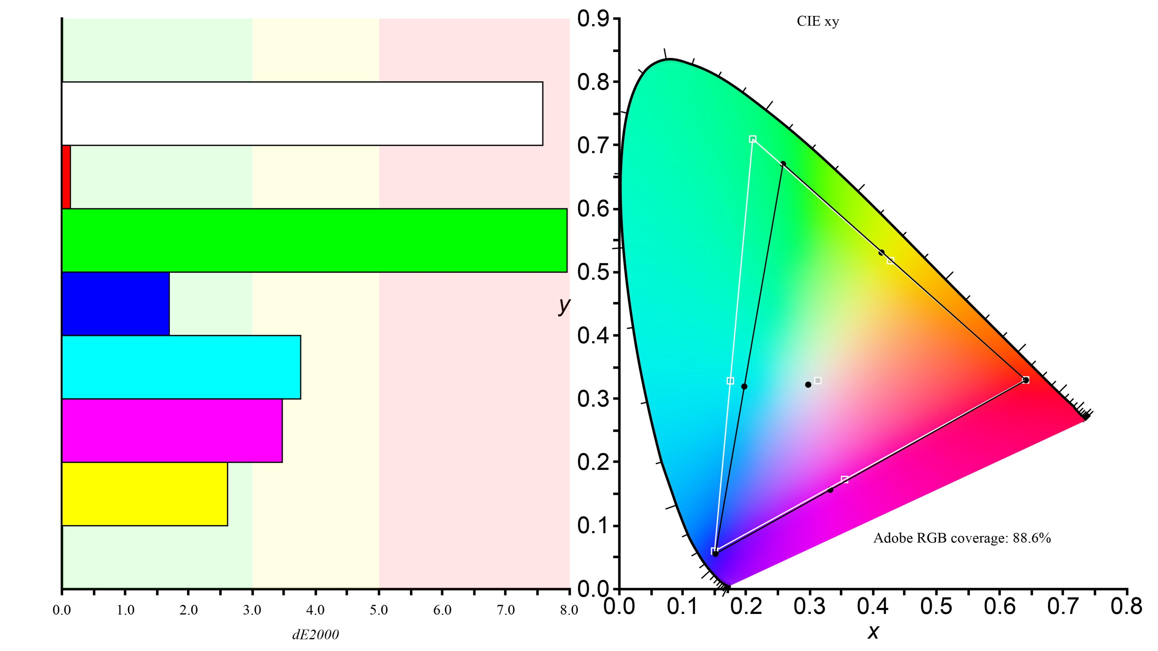 These results are from after calibration in the 'Native' Preset Mode. The 'Adobe RGB' Preset Mode does a better job at clamping colors to the Adobe RGB color space, but it doesn't improve the actual gamut coverage.
