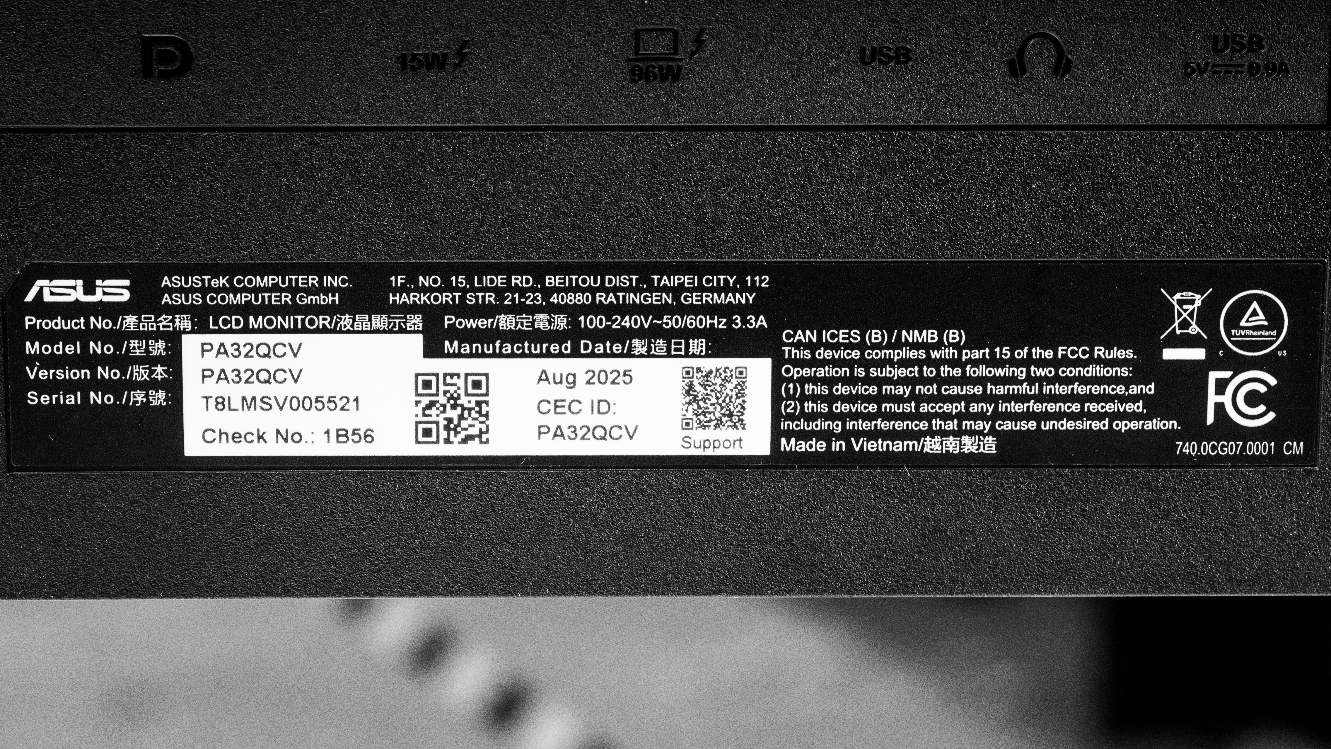 Our unit's label indicates it was manufactured in August 2025. We tested it with firmware MCM102.