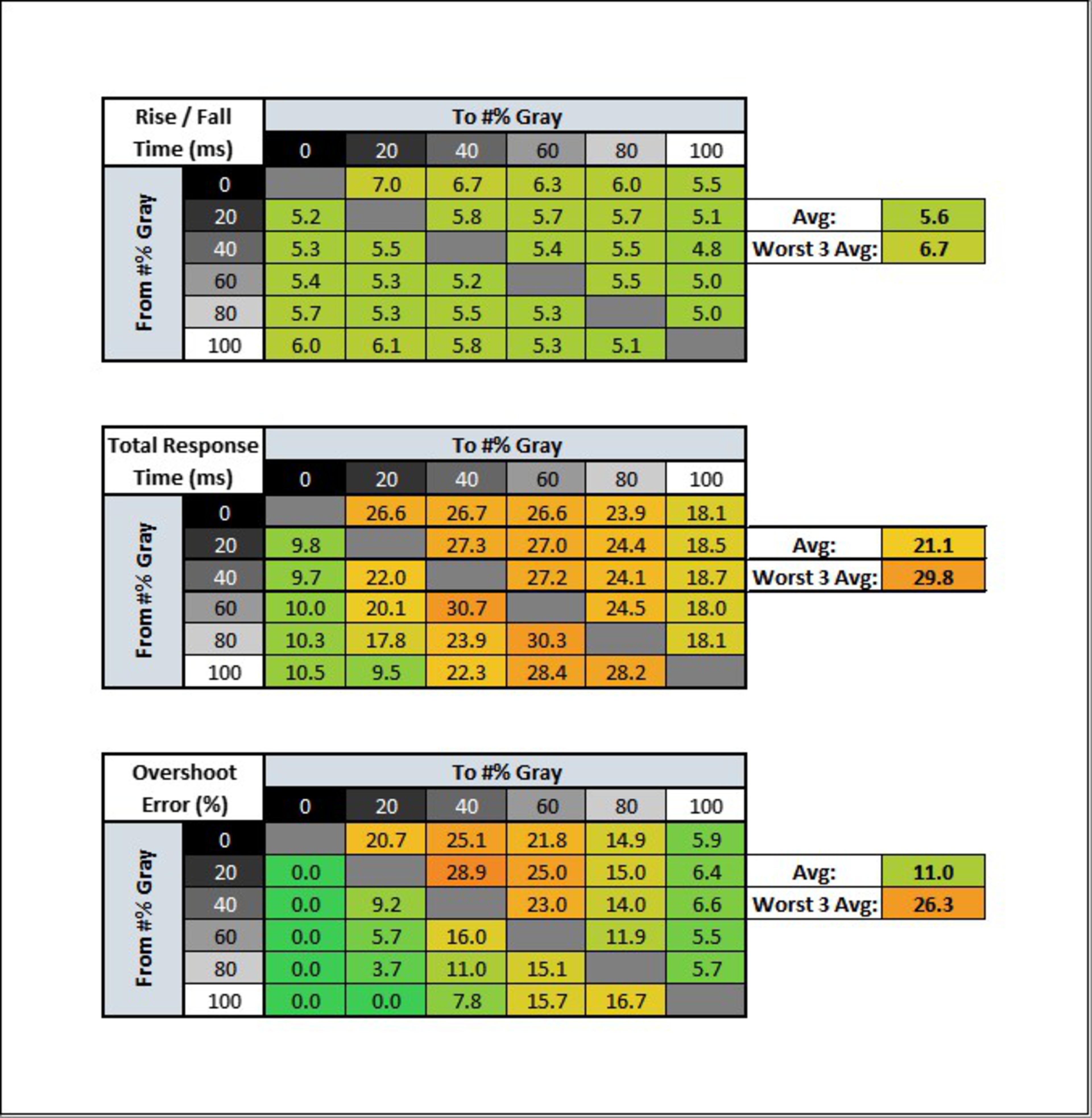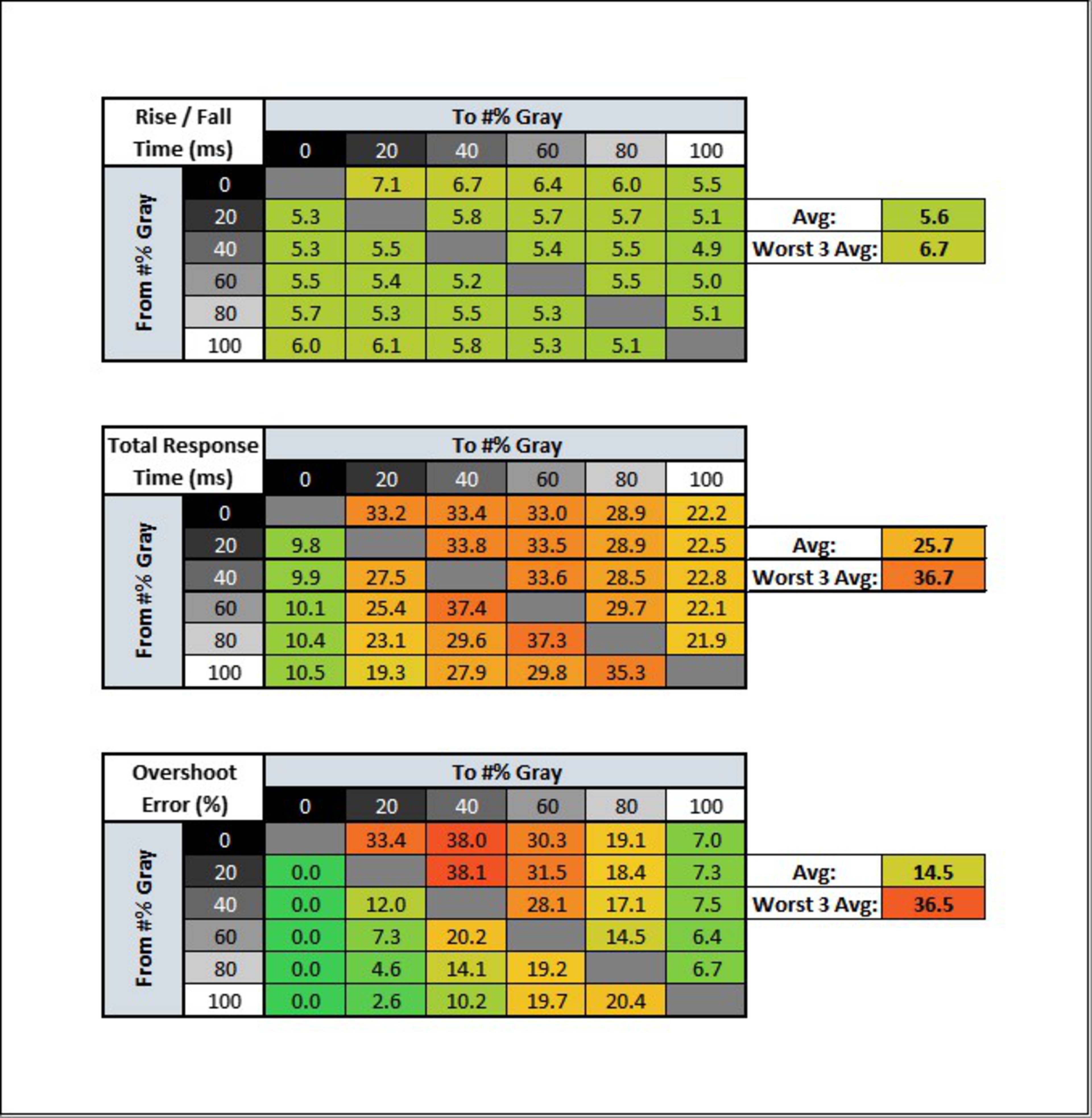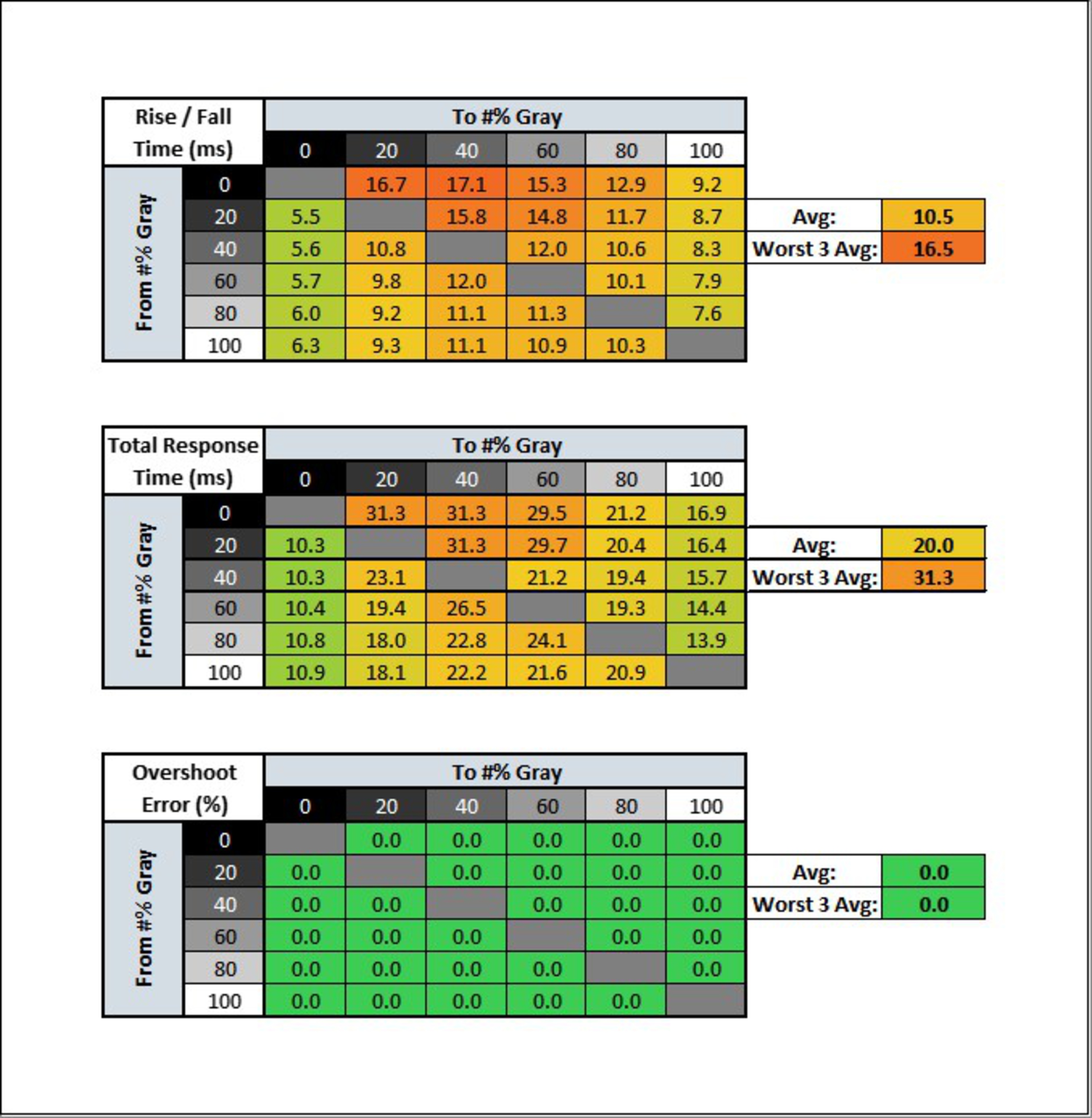 | Overdrive Setting | Response Time Chart | Response Time Tables | Motion Blur Photo |