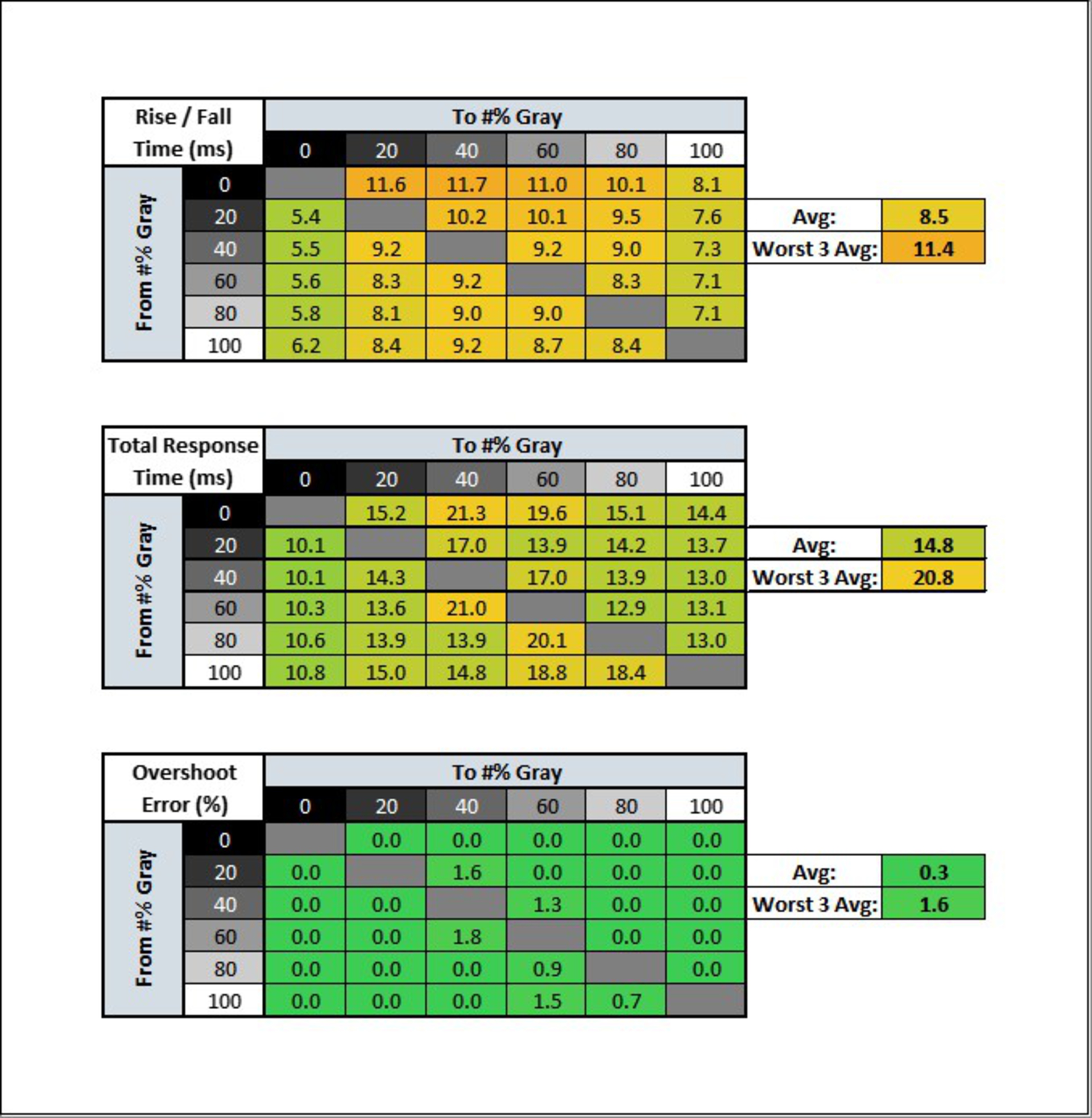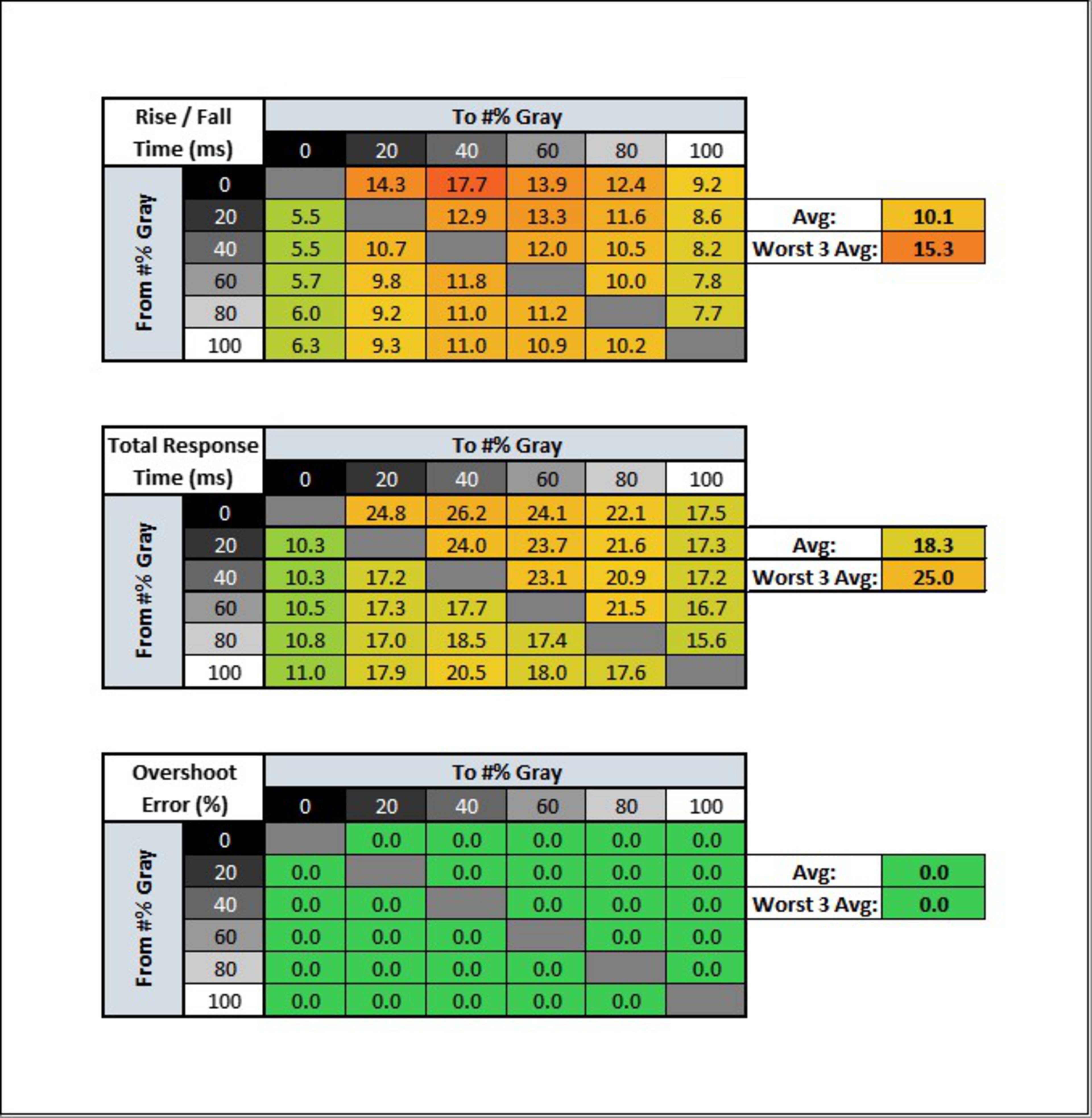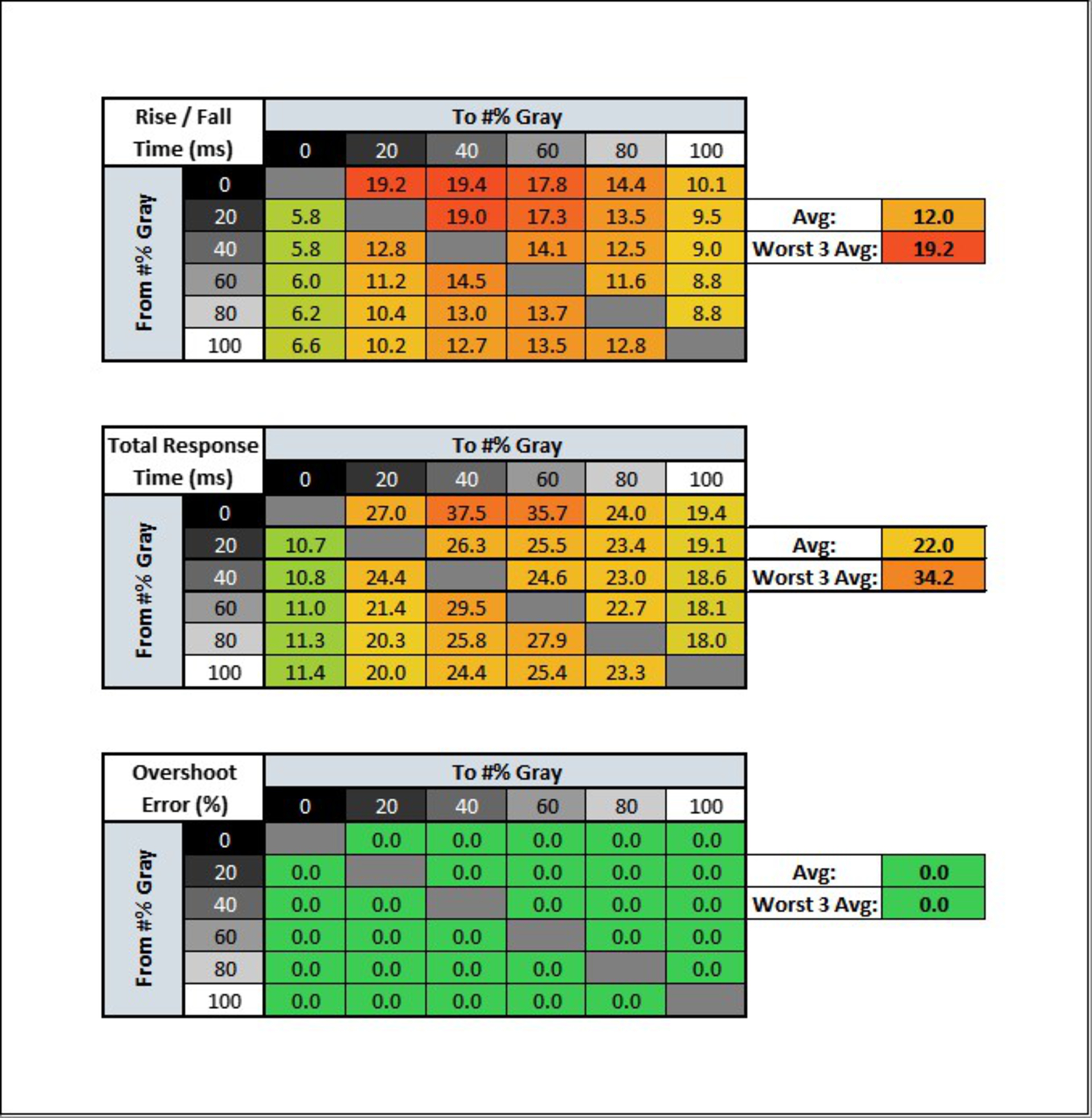 | Overdrive Setting | Response Time Chart | Response Time Tables | Motion Blur Photo |