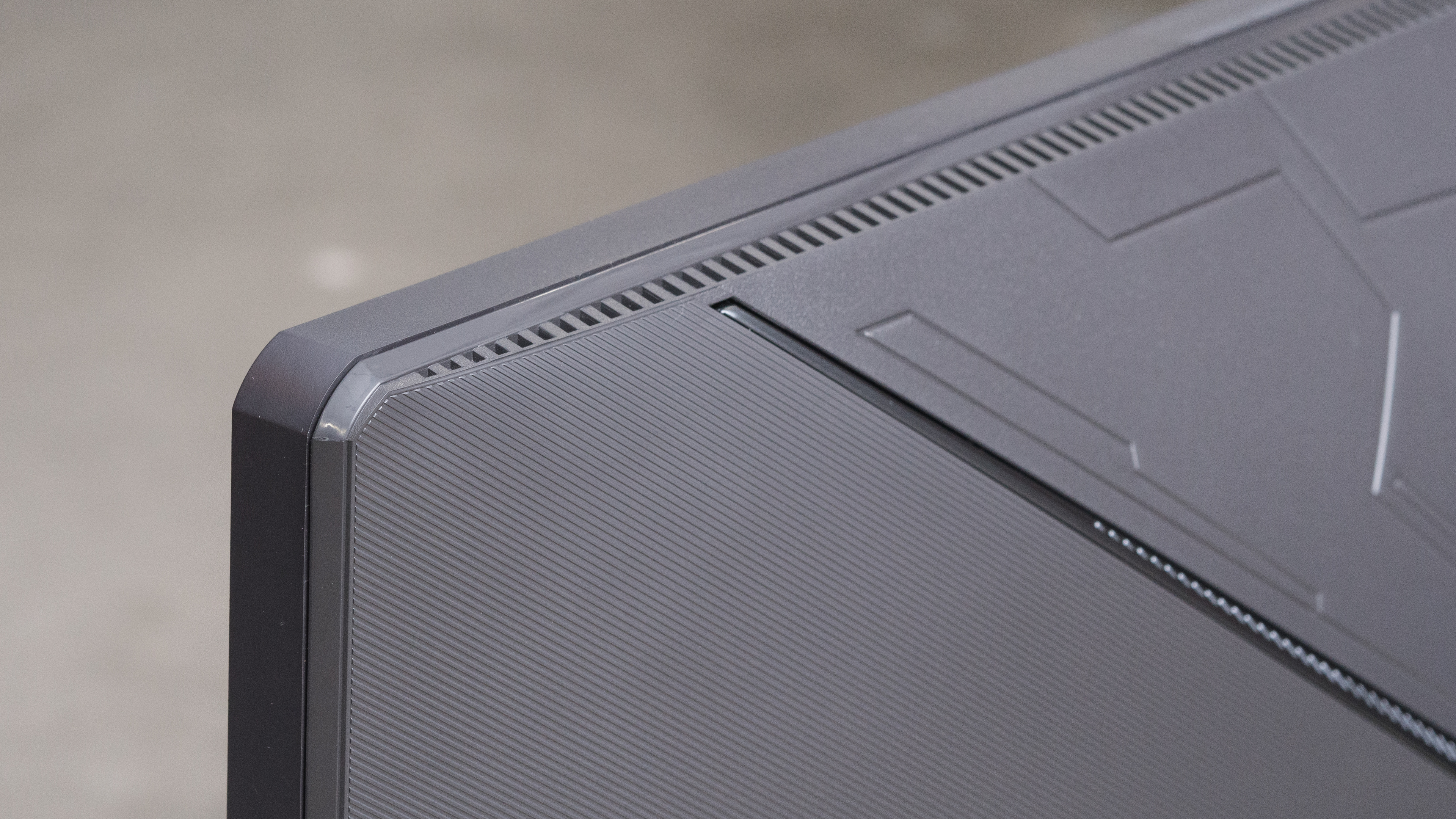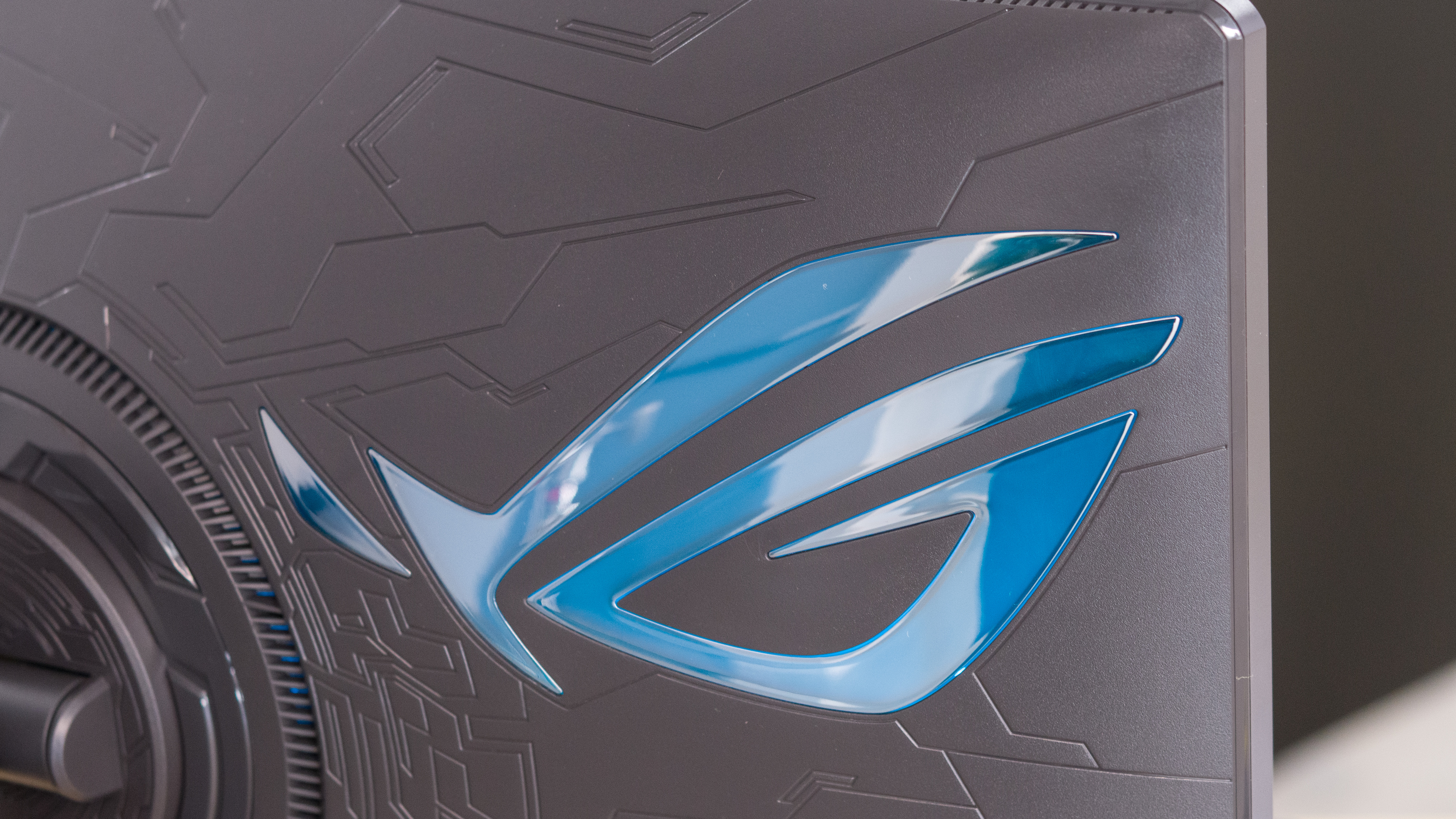 The ASUS ROG Strix XG27UQR has a unique design with thick bezels that give it a somewhat retro look. However, it has a modern gamer aesthetic on the back, which also includes RGB lighting.