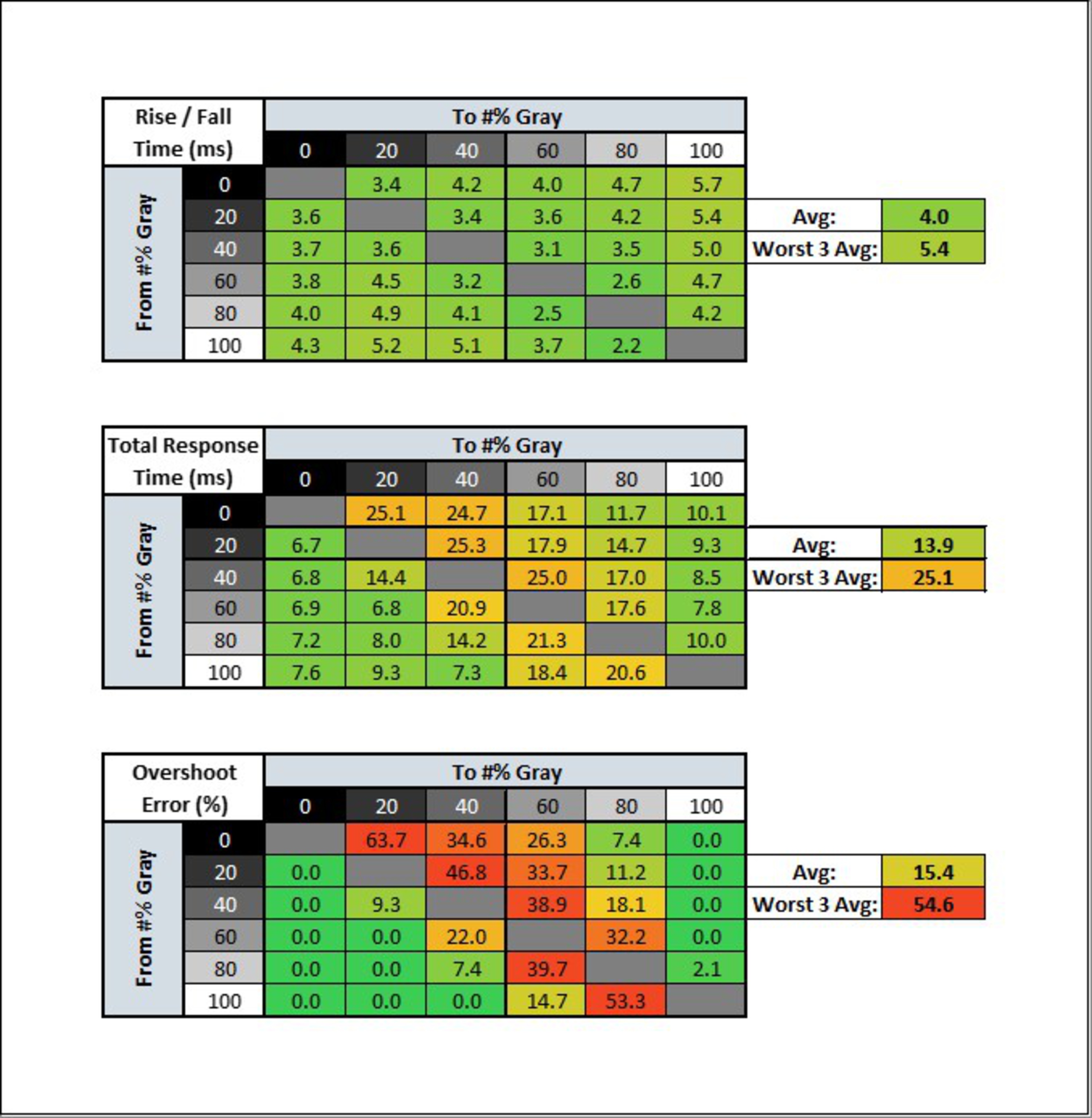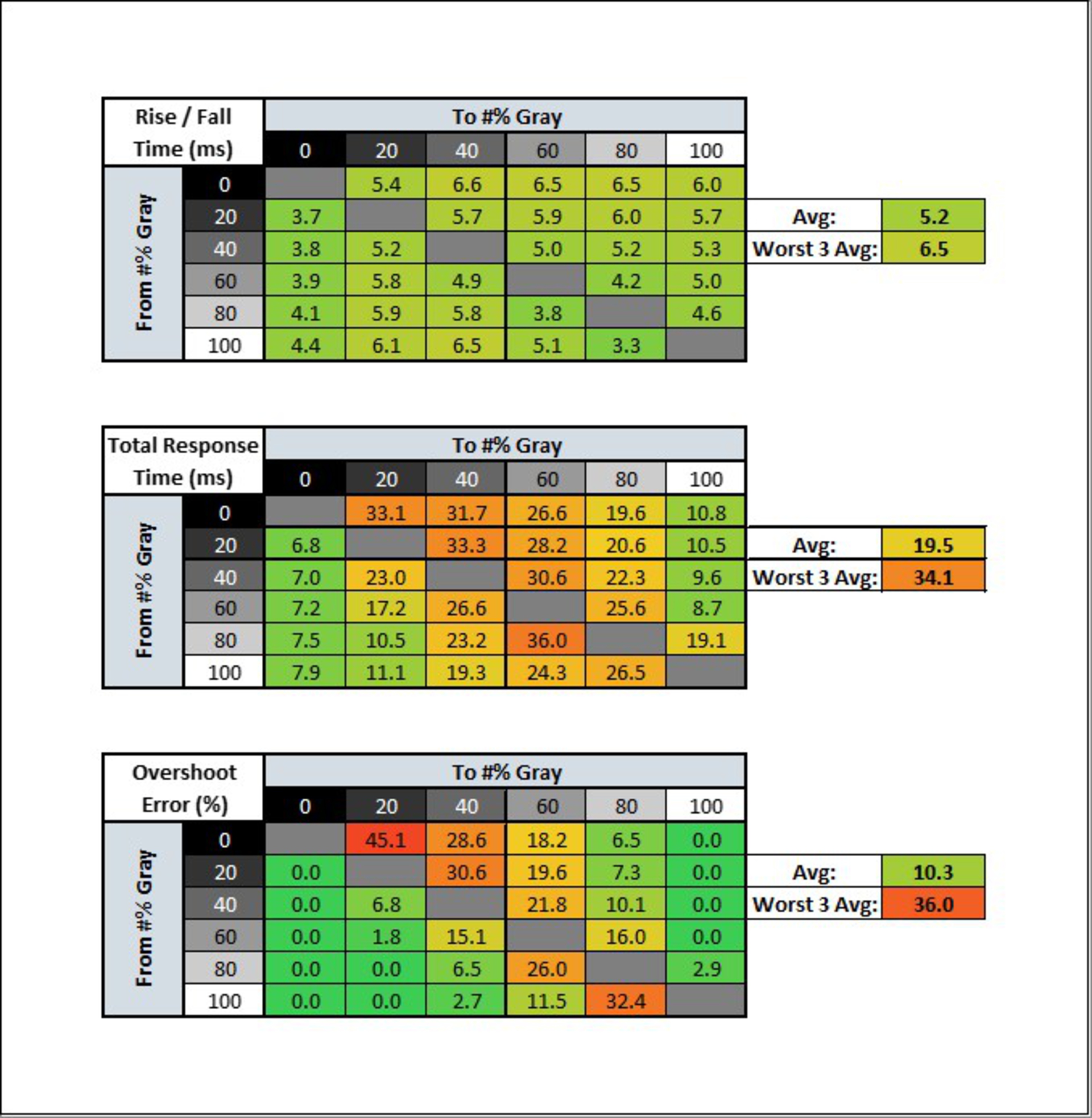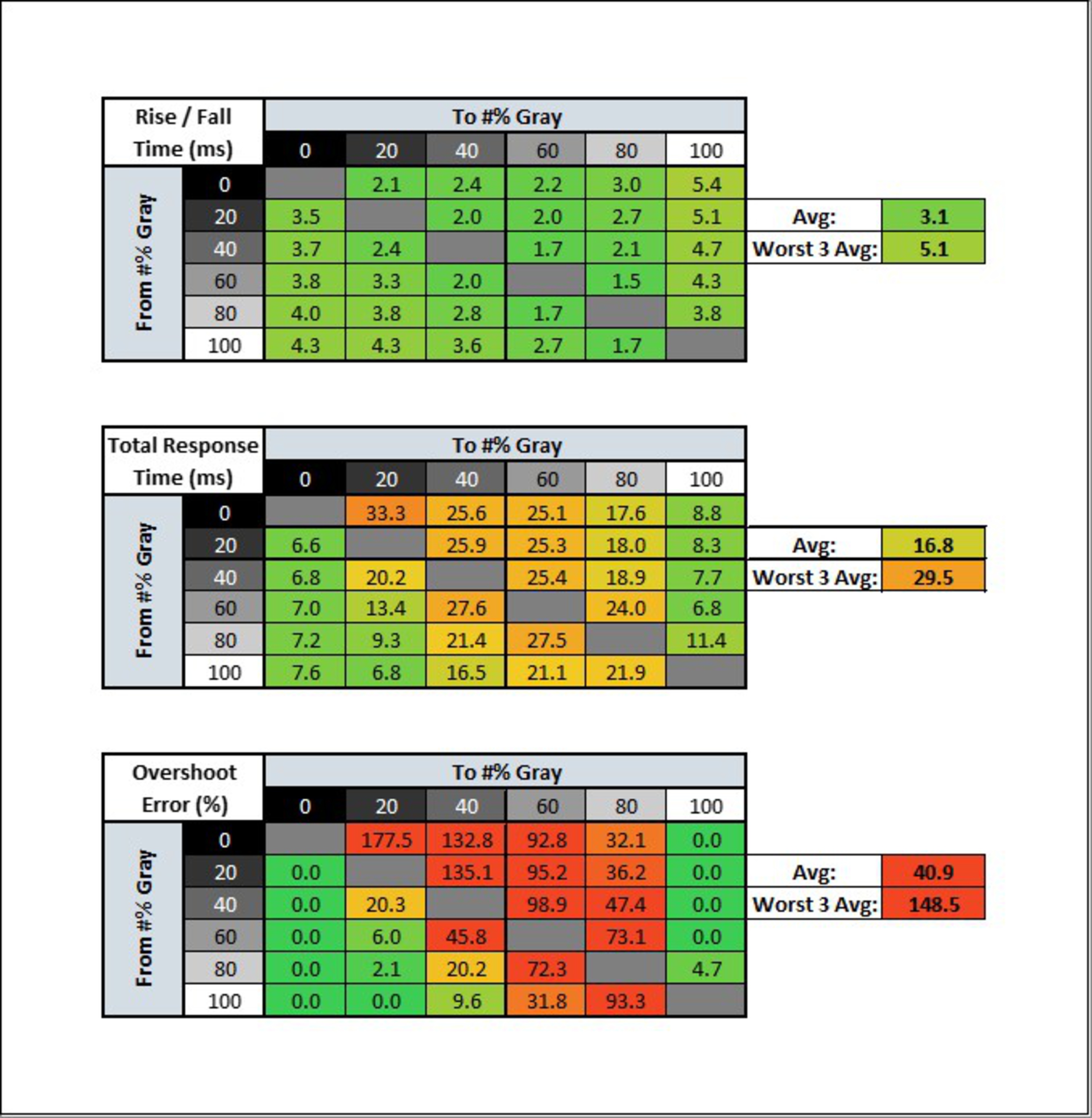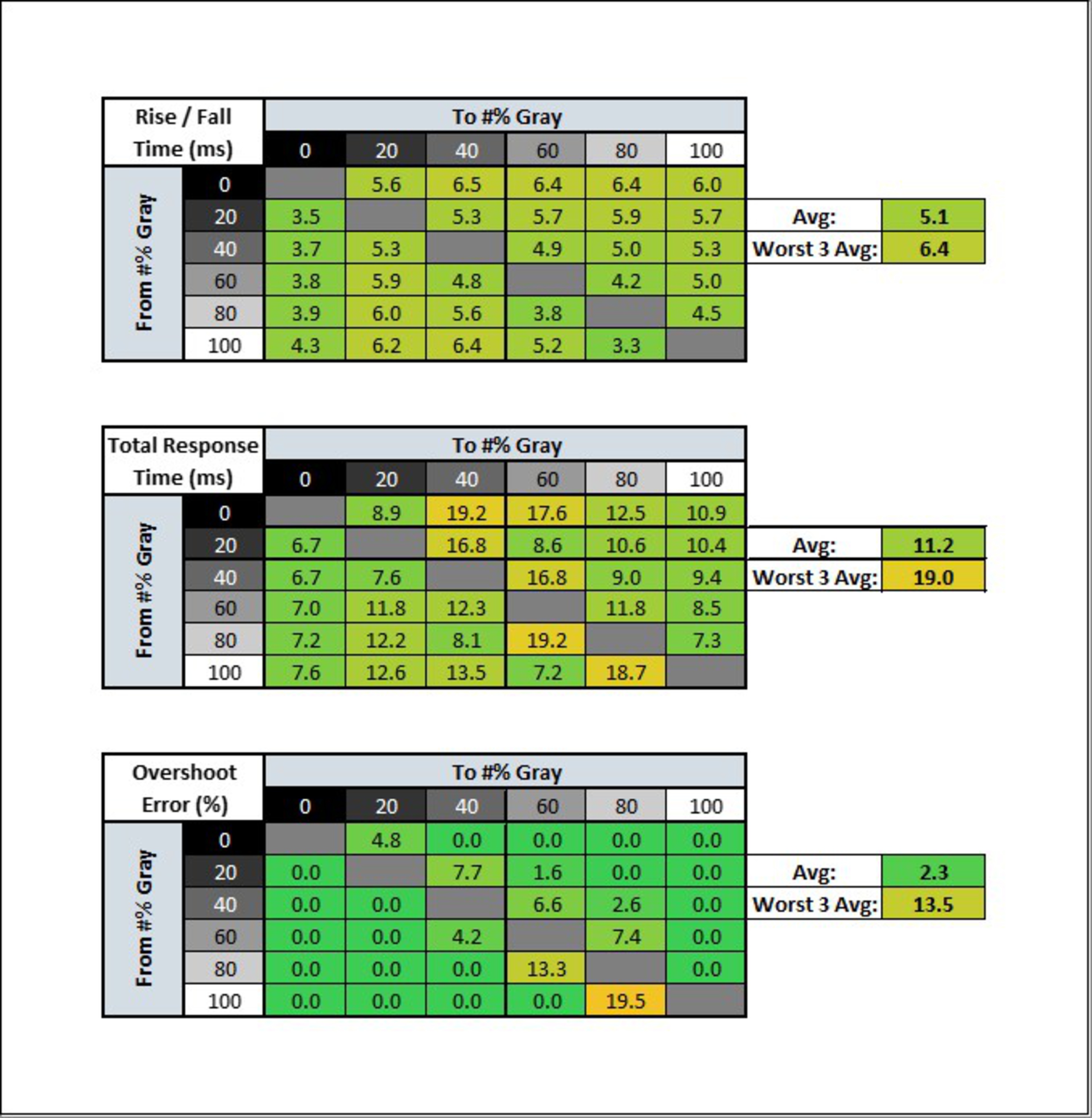 | Overdrive Setting | Response Time Chart | Response Time Tables | Motion Blur Photo |