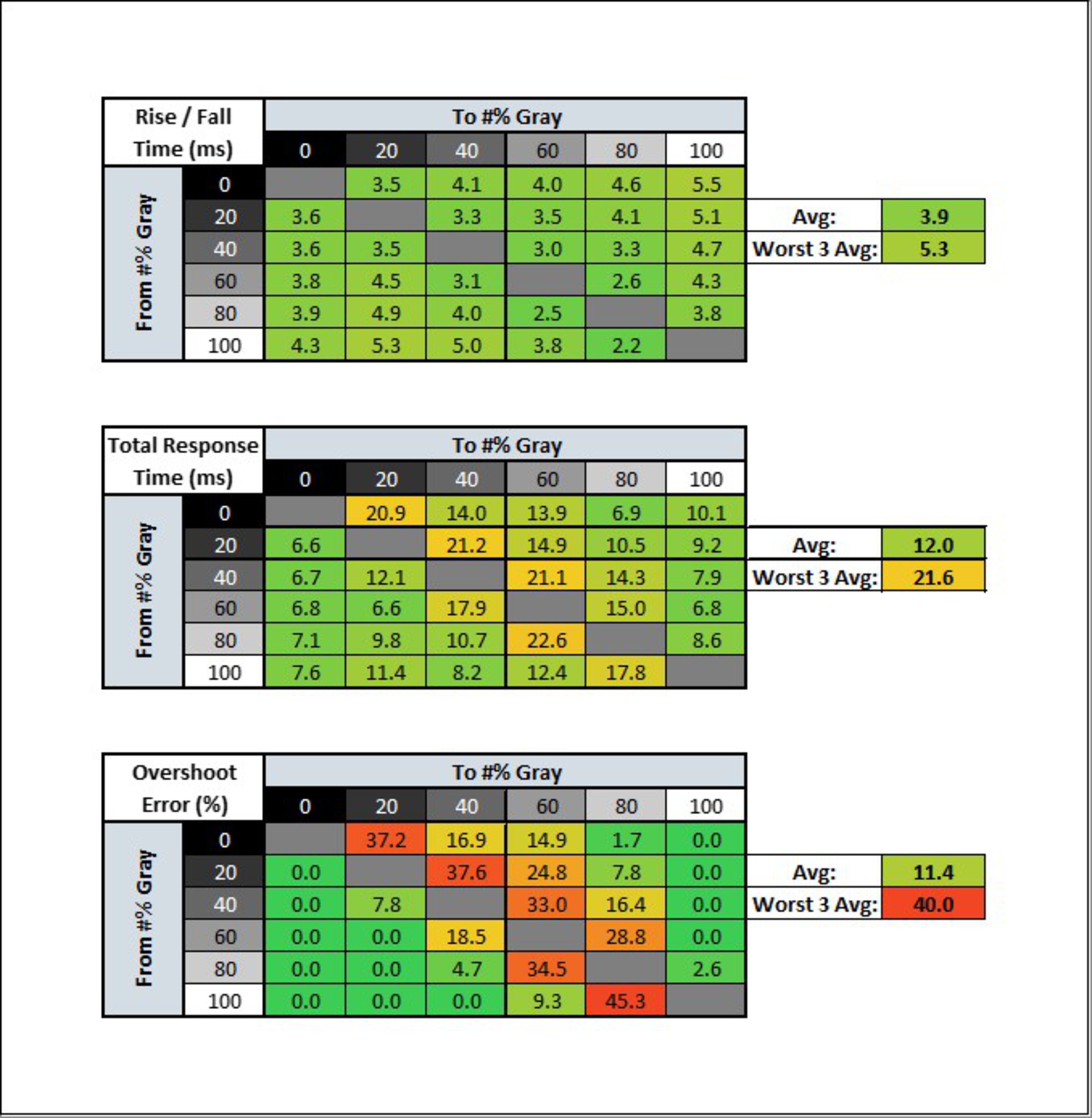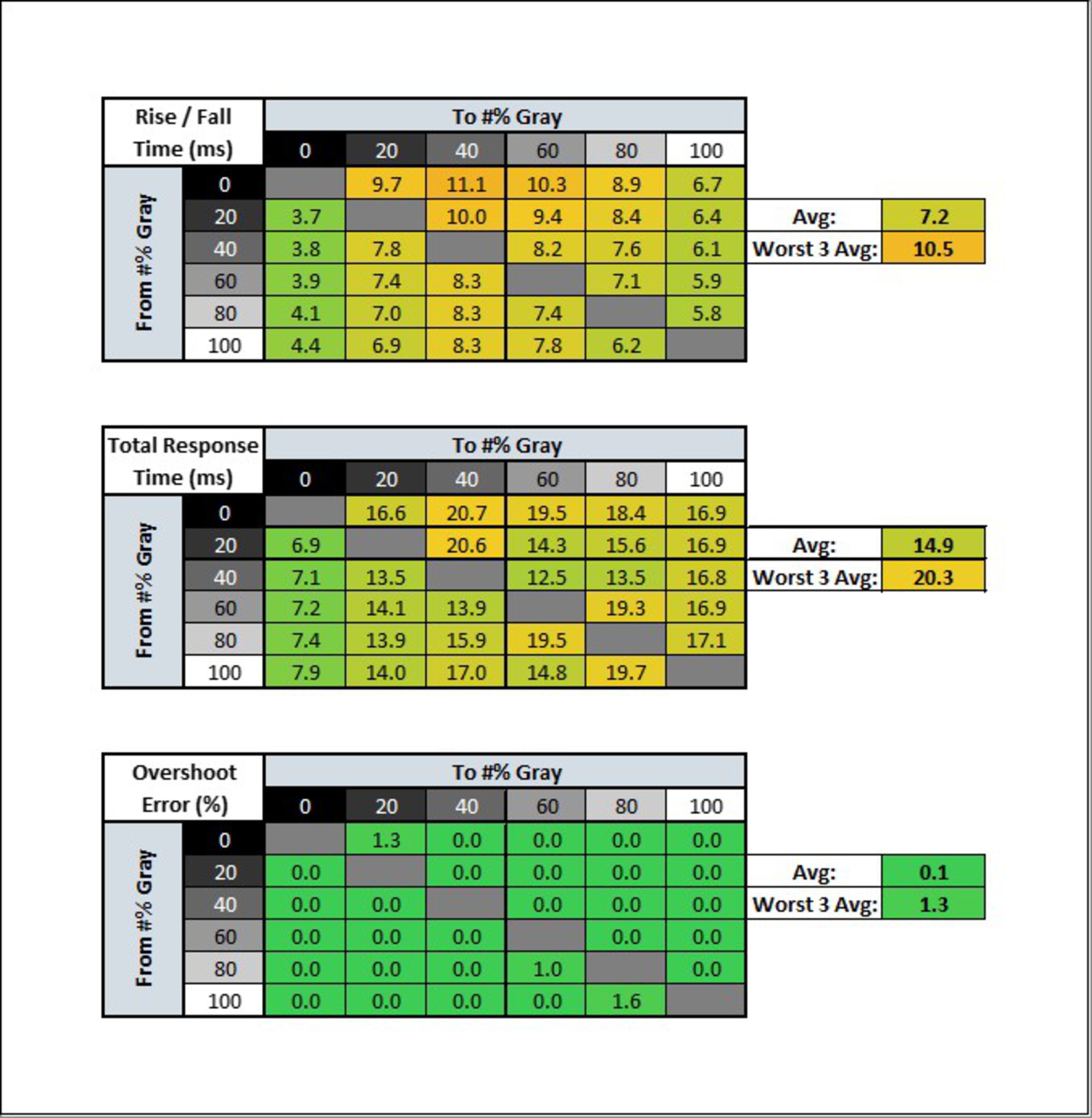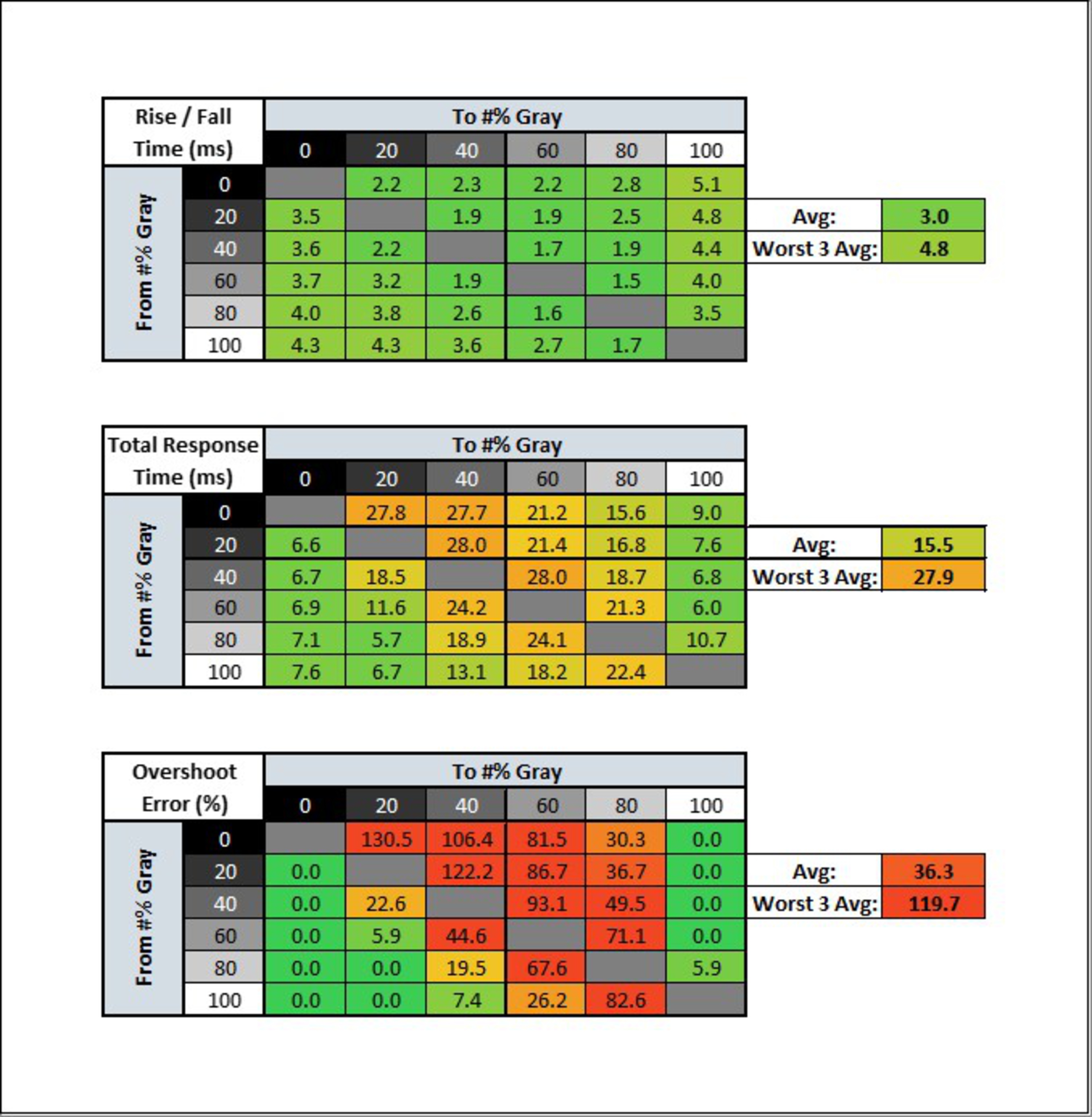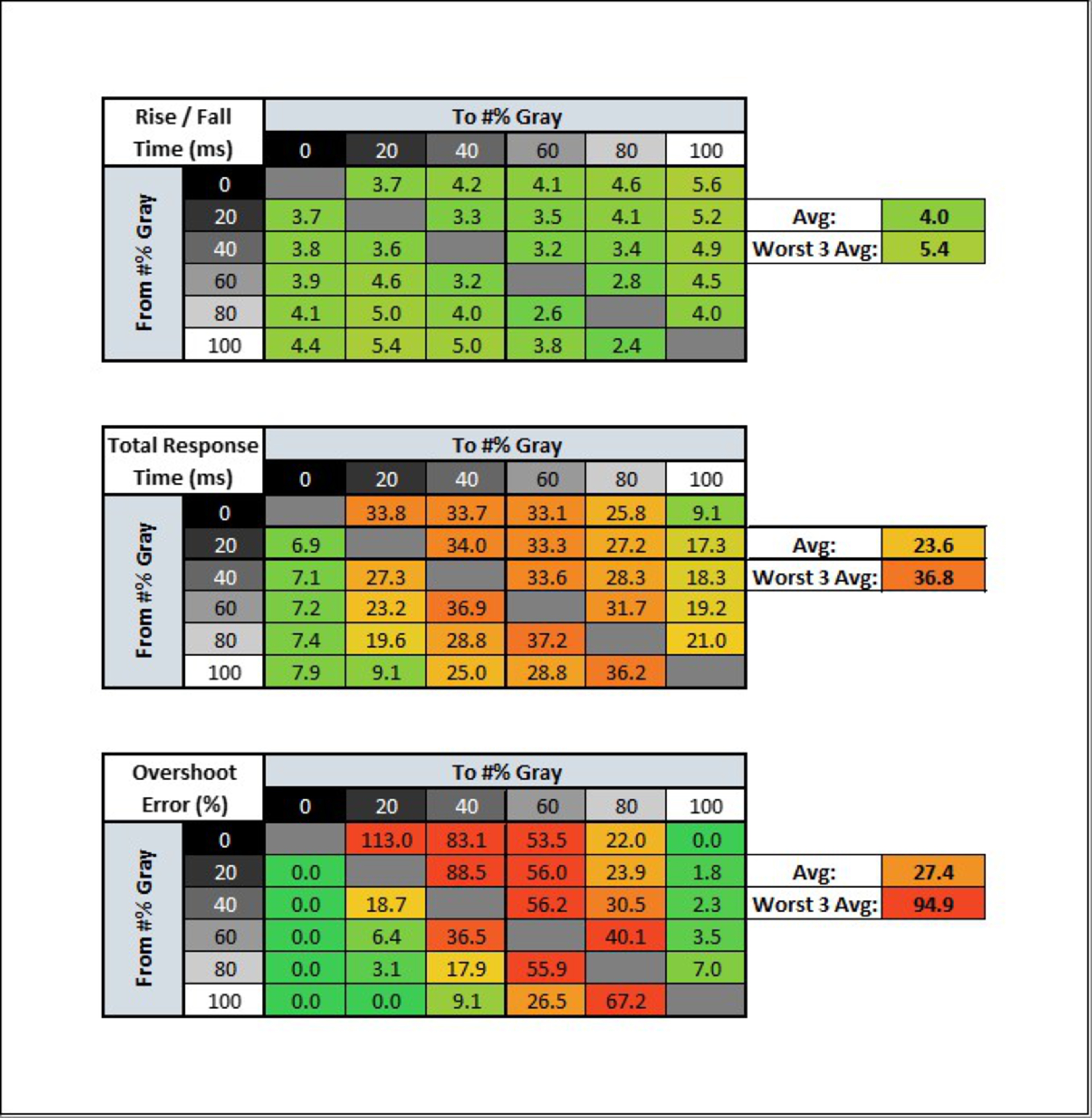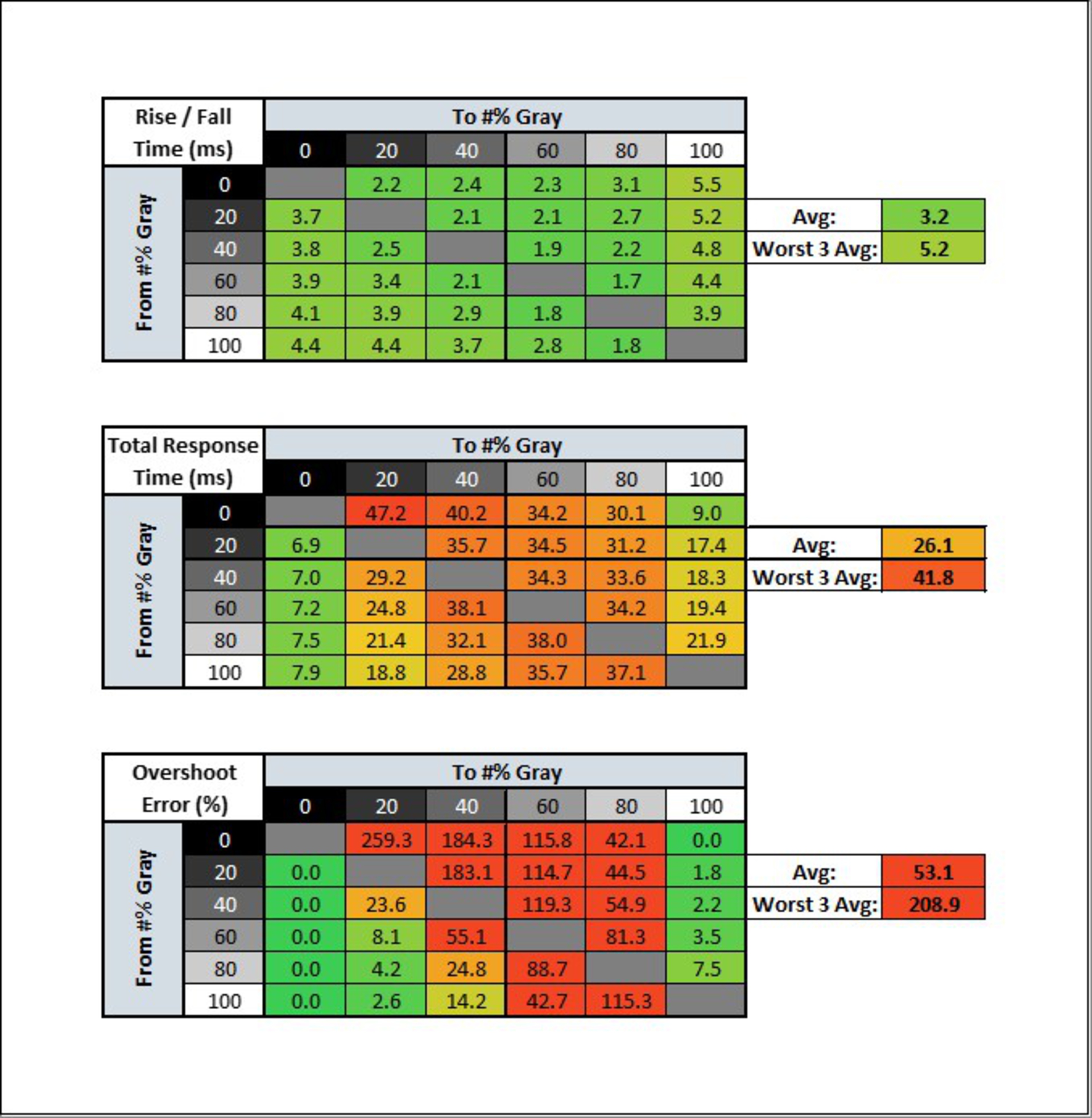 | Overdrive Setting | Response Time Chart | Response Time Tables | Motion Blur Photo |