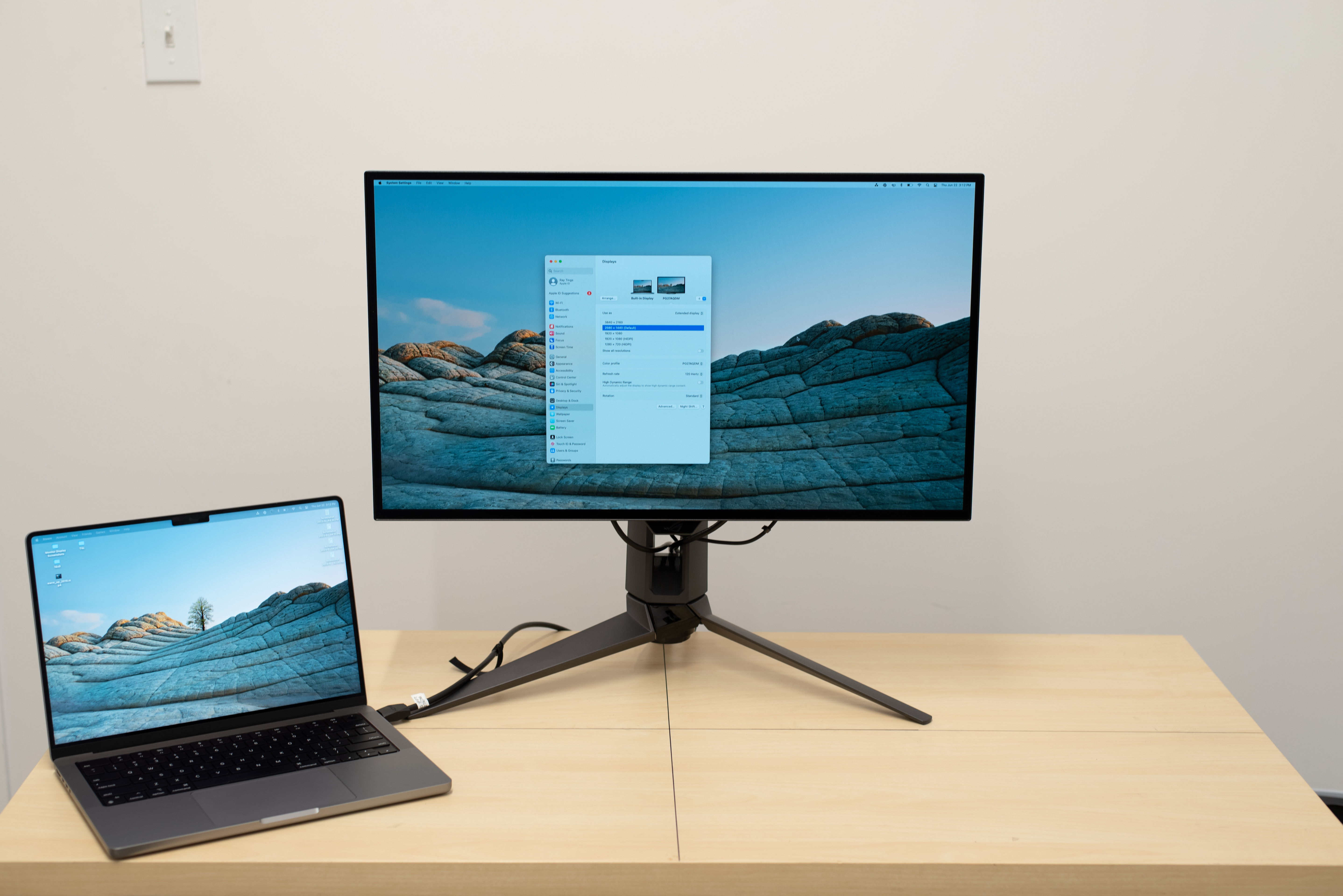 The ASUS ROG Swift OLED PG27AQDM is compatible with macOS, but there are some issues. You can only get a 60Hz or 120Hz refresh rate over HDMI as VRR doesn't work at all, and if you're using a MacBook, windows return to their original position after closing and reopening the lid or when putting the MacBook to sleep.