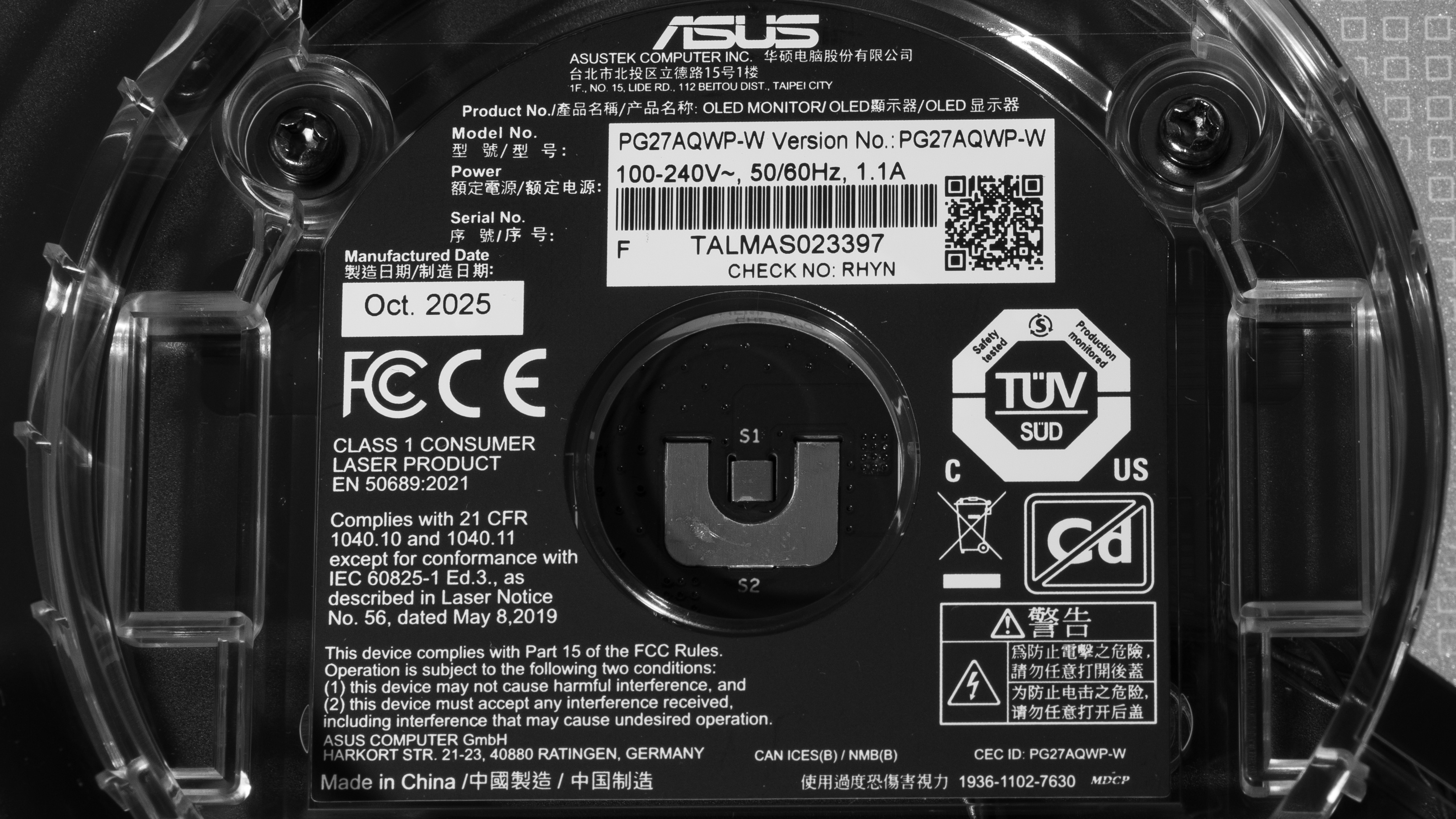 Our unit's label indicates it was manufactured in October 2025 in China. We tested it on firmware MCM102.