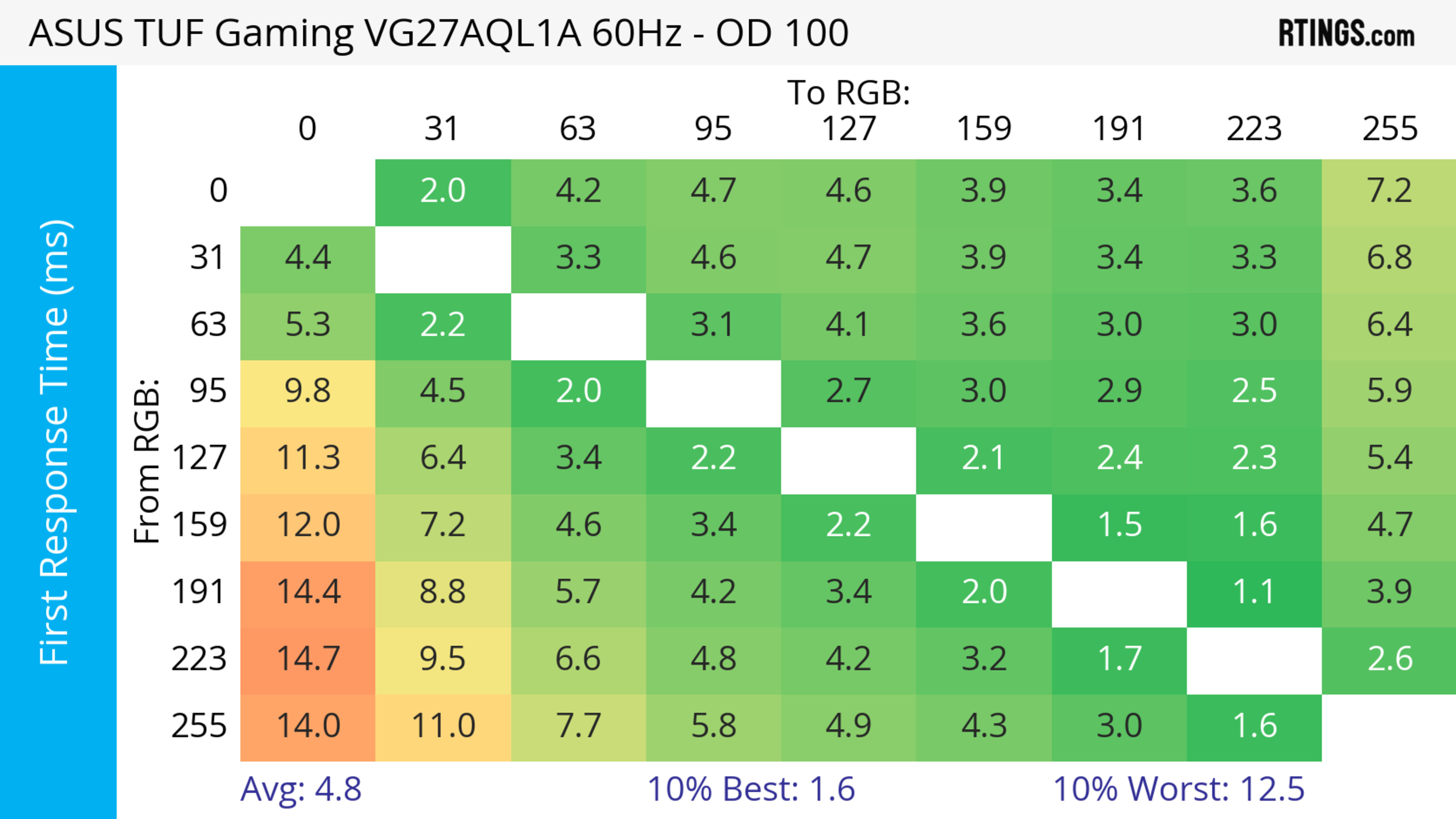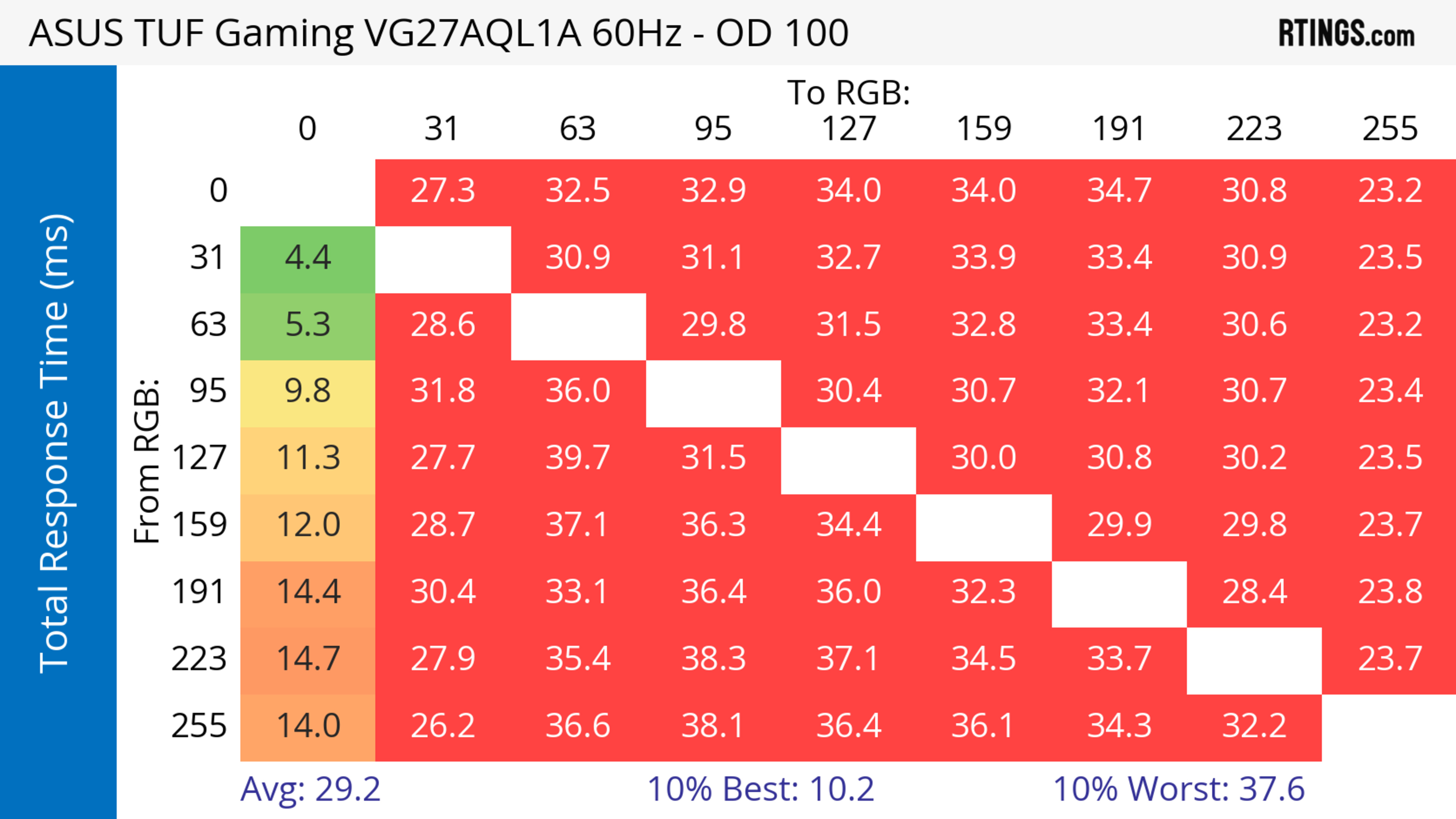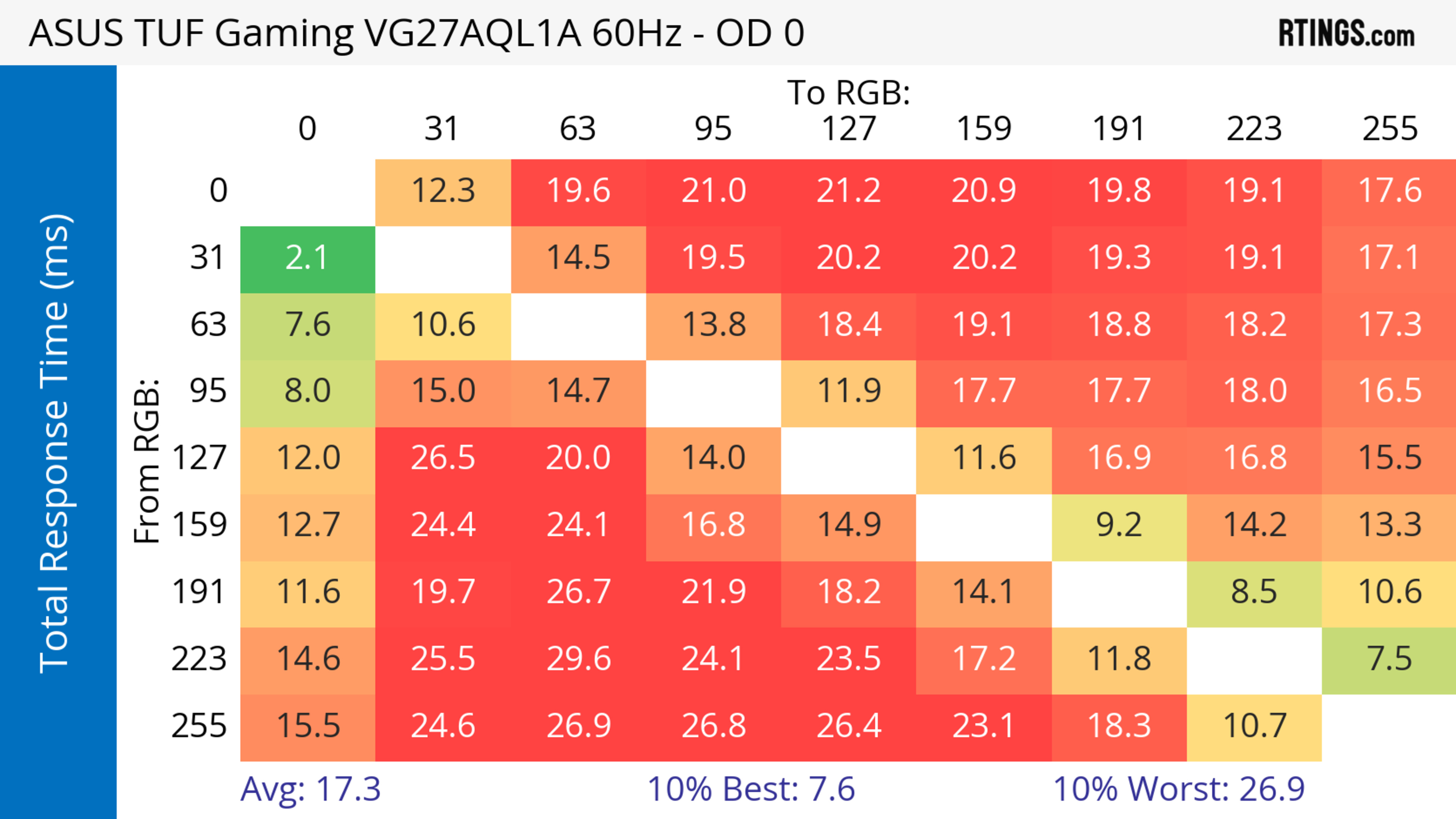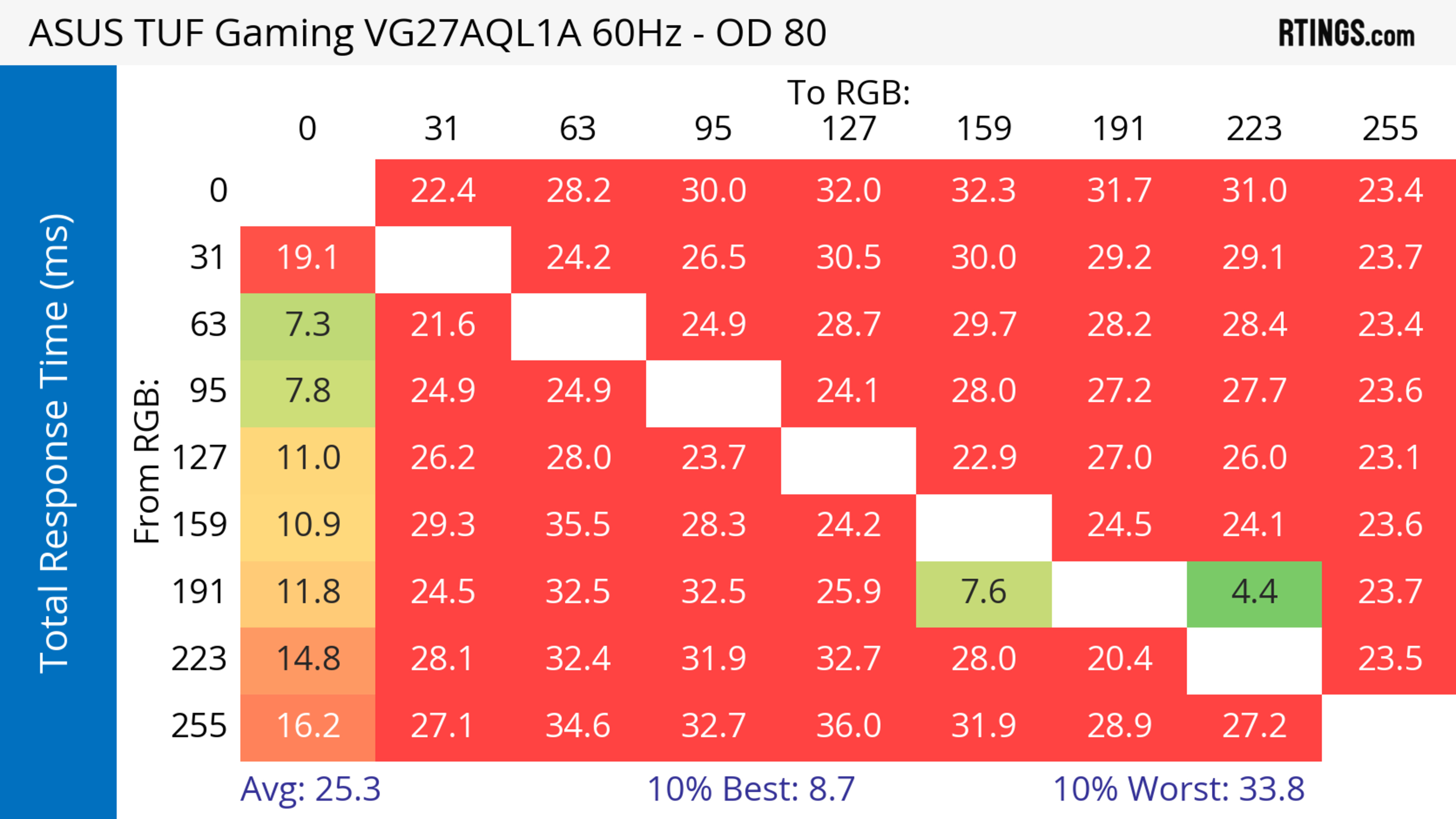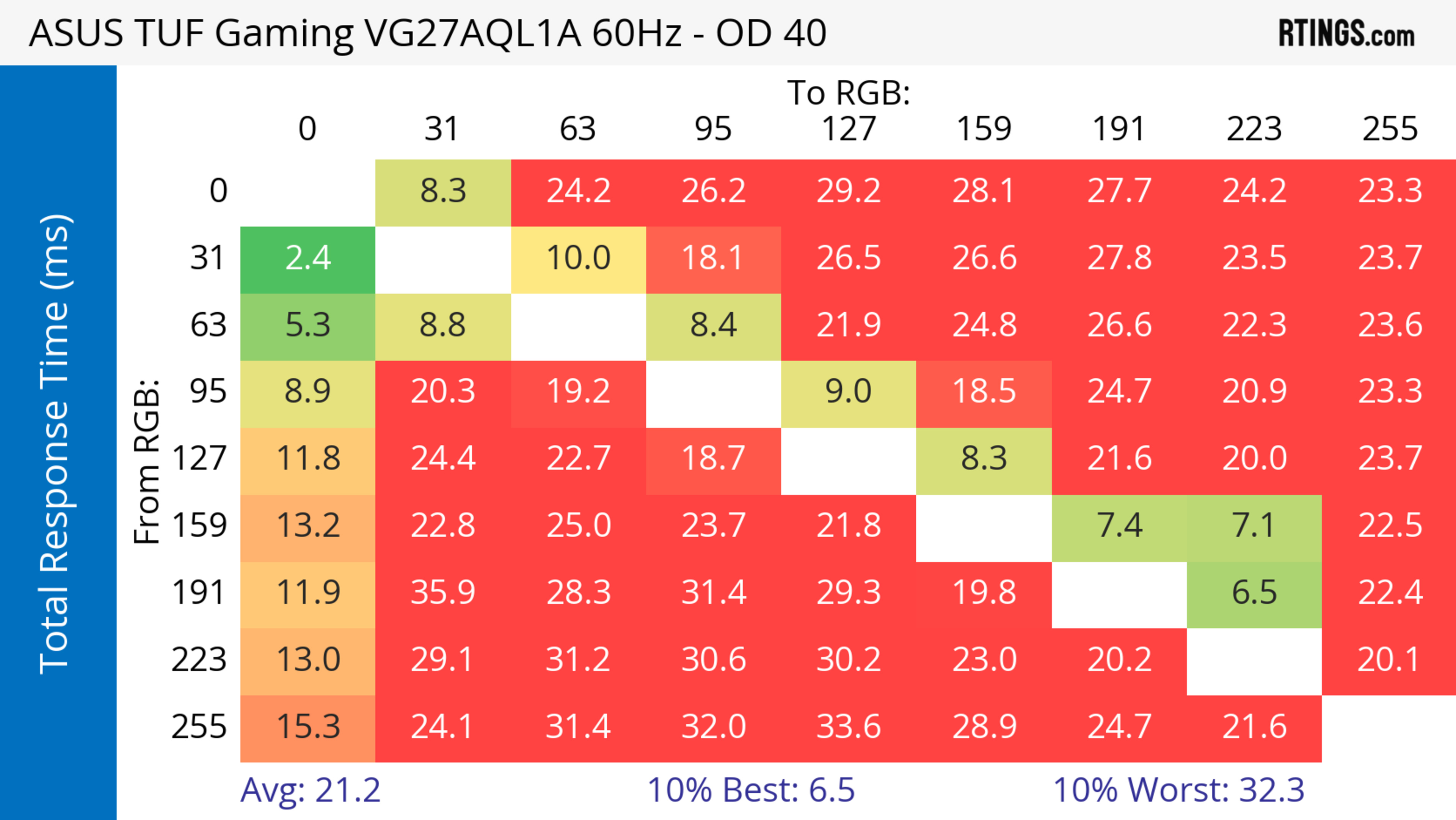 The ASUS VG27AQL1A is a basic entry-level 1440p gaming monitor that has a slow response time, and it's a downgrade from the monitor it replaced, the ASUS TUF VG27AQ. There are other 1440p gaming monitors you can get in a similar price with better performance, like the LG 27GP850-B/27GP83B-B and the Dell G2724D.