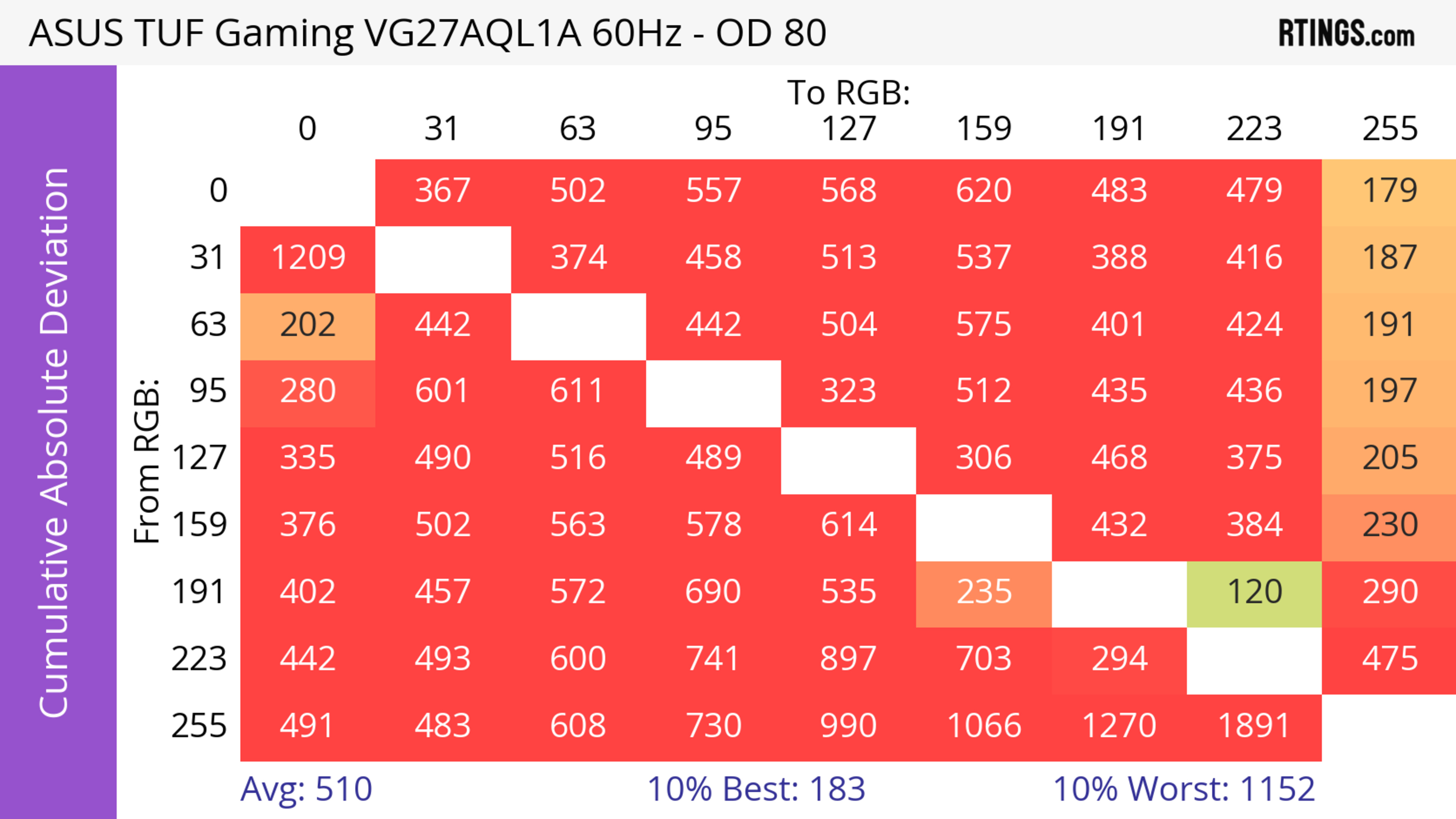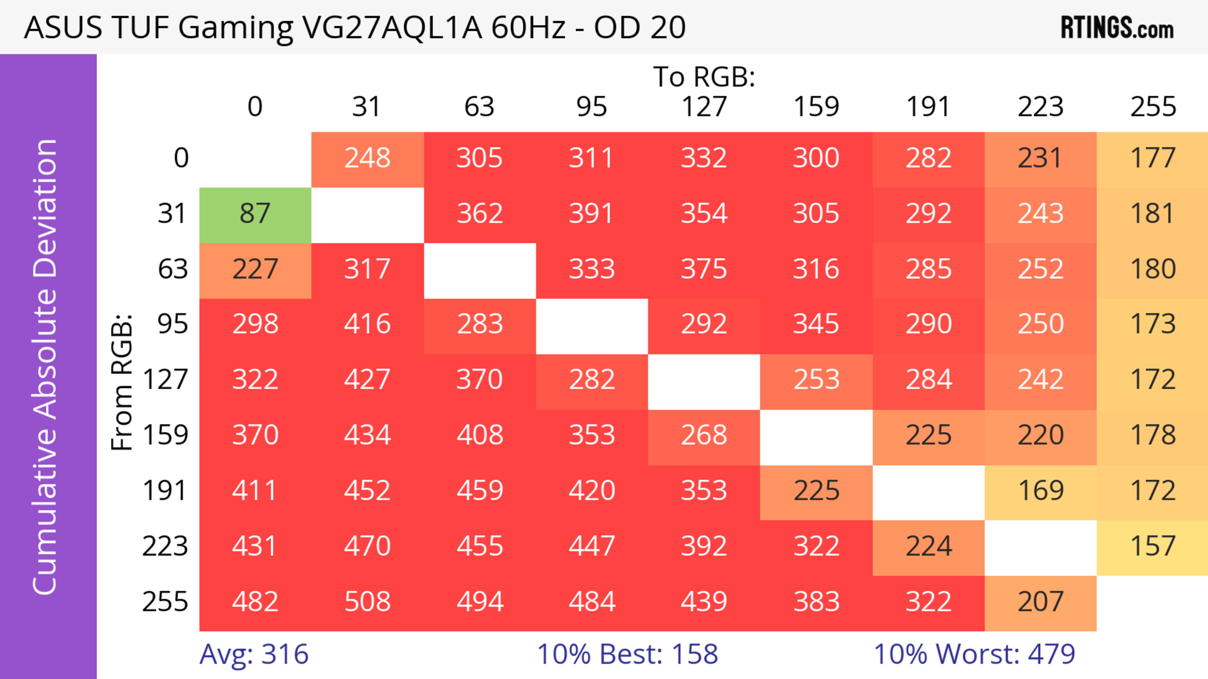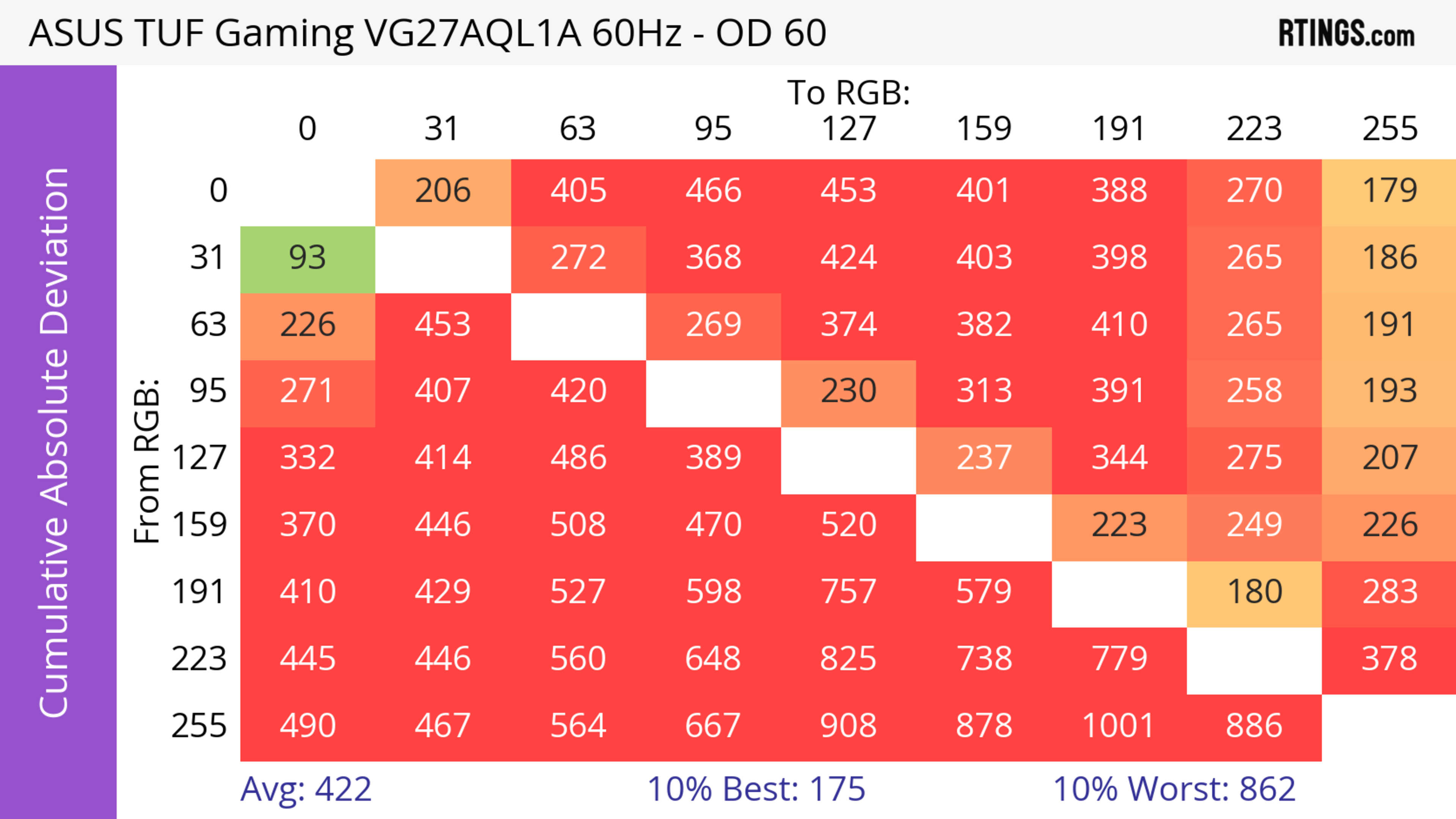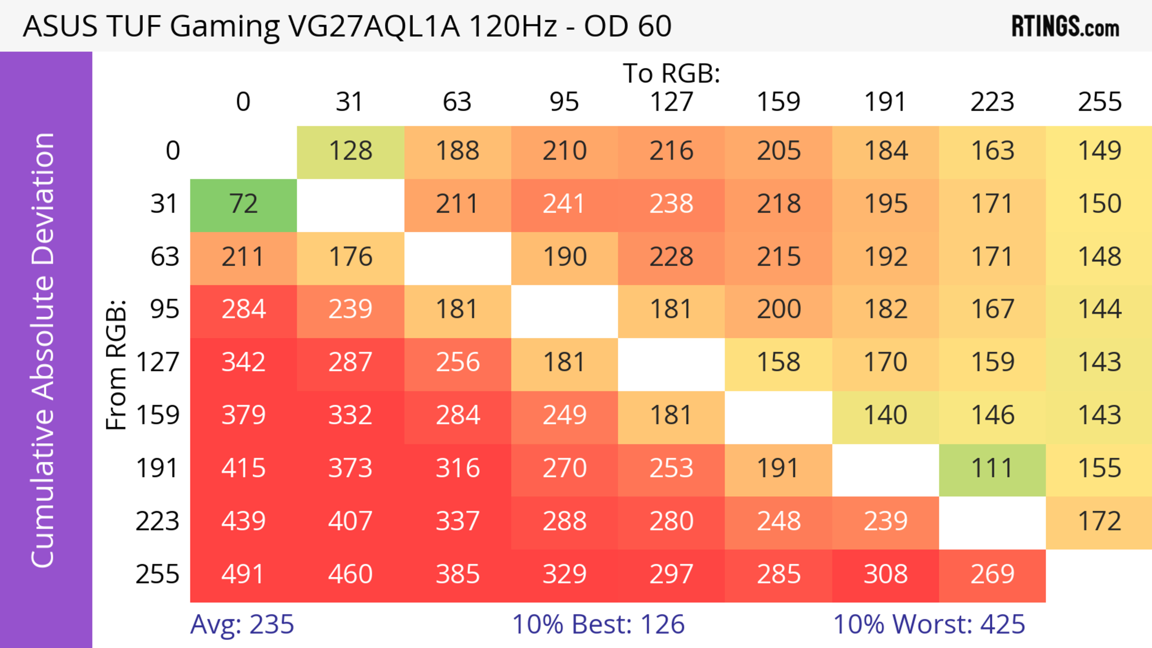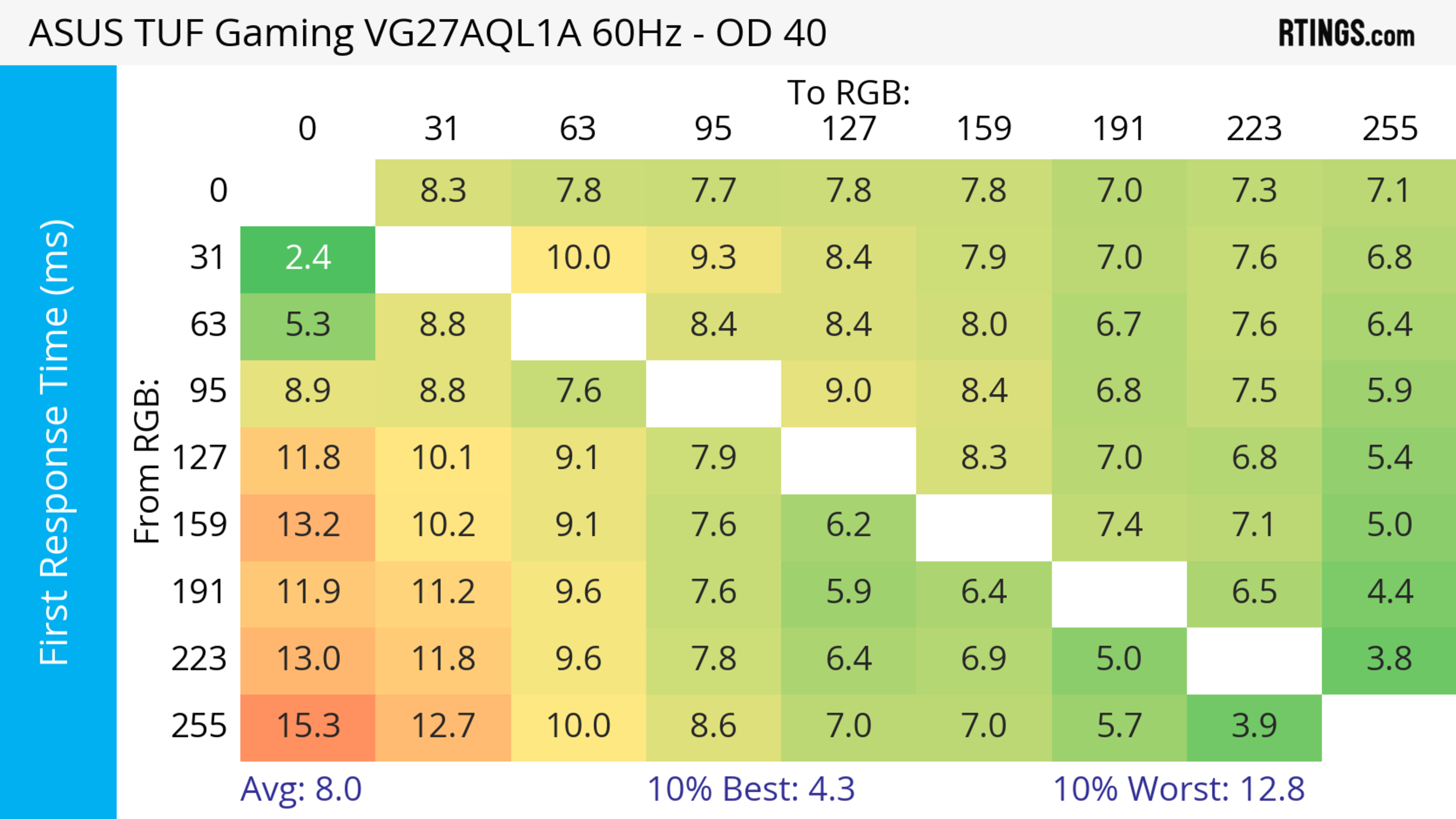 The ASUS VG27AQL1A is a basic entry-level 1440p gaming monitor that has a slow response time, and it's a downgrade from the monitor it replaced, the ASUS TUF VG27AQ. There are other 1440p gaming monitors you can get in a similar price with better performance, like the LG 27GP850-B/27GP83B-B and the Dell G2724D.