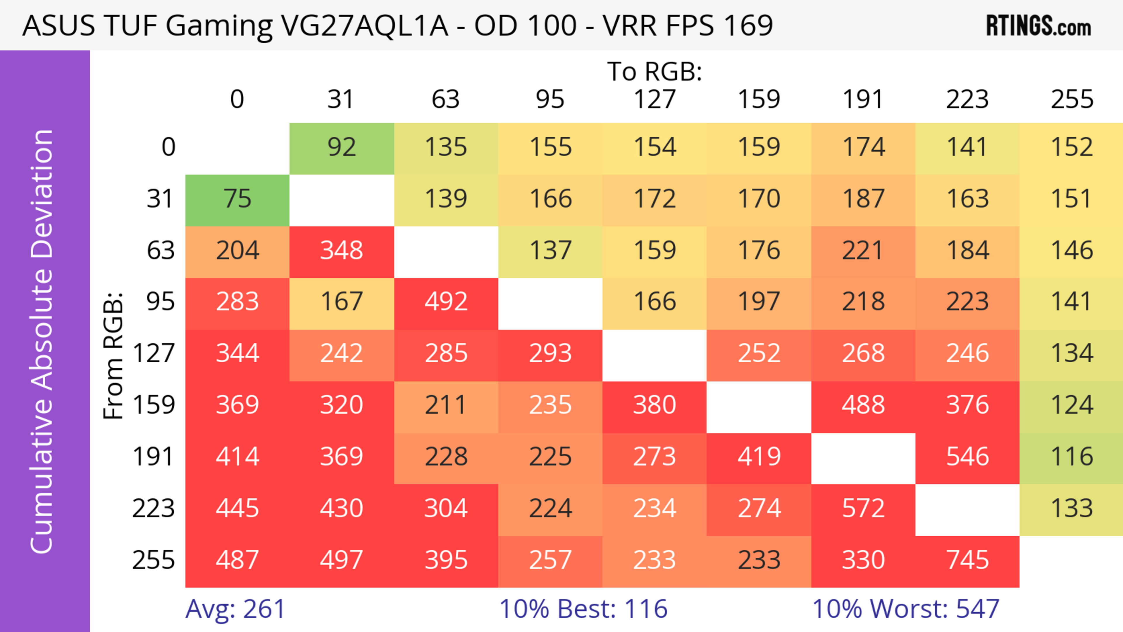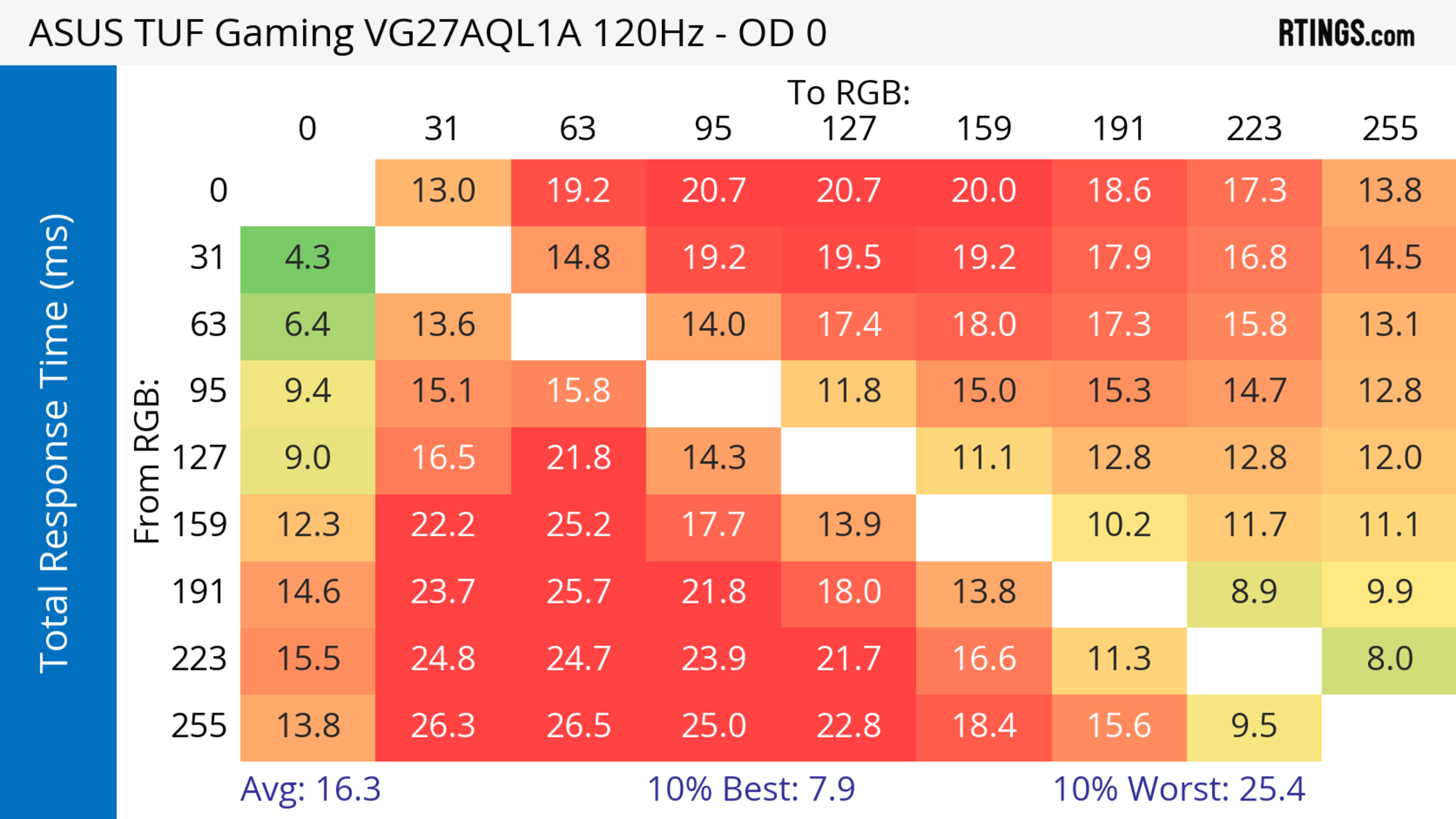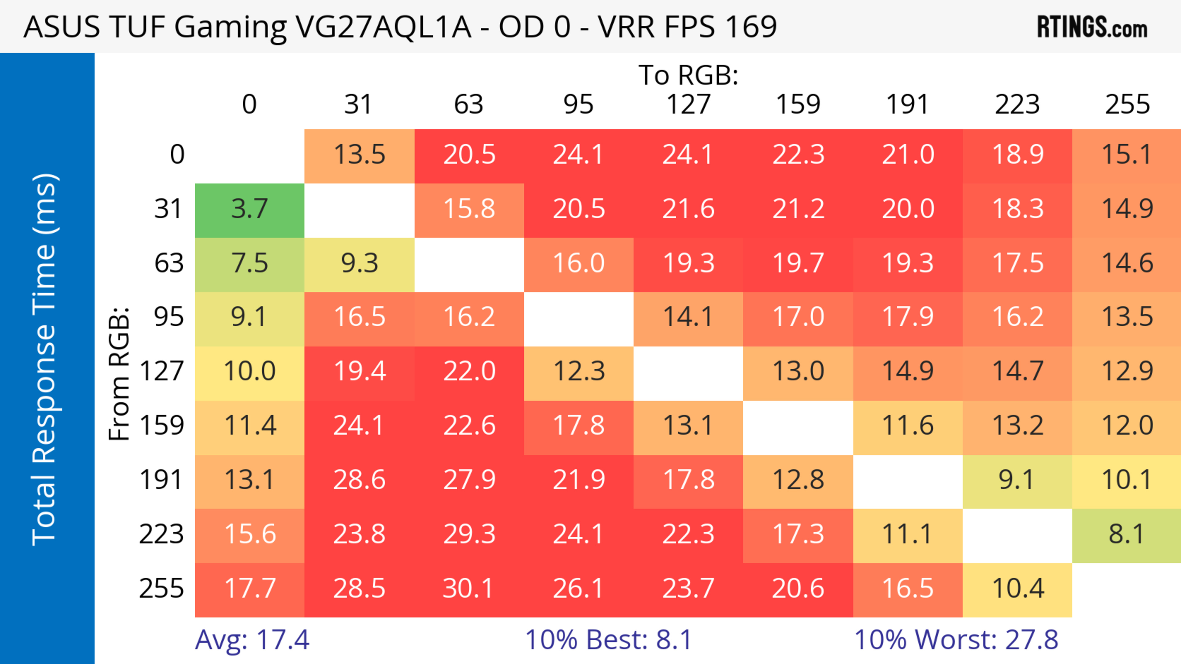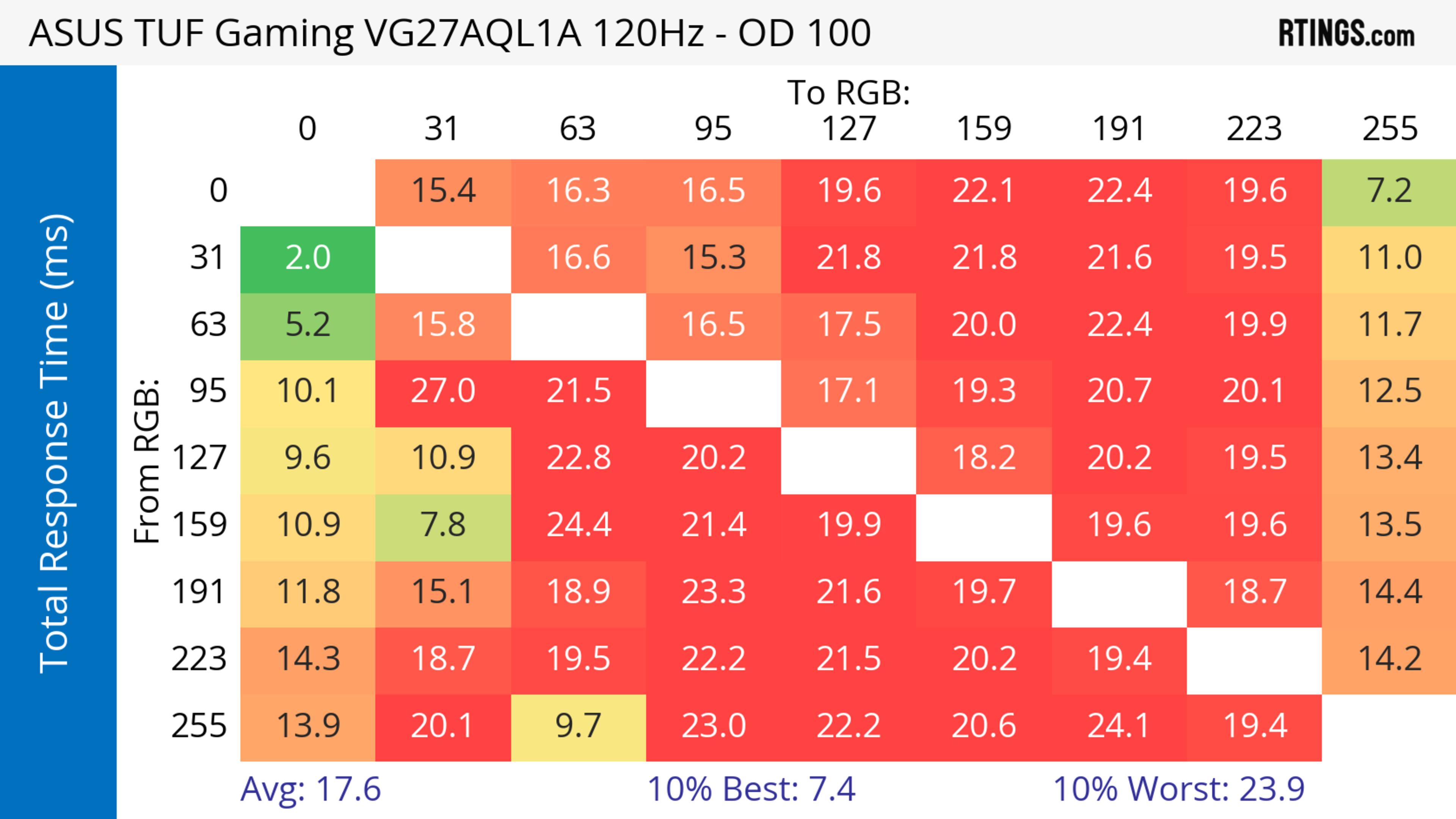 We tested the 27-inch ASUS TUF Gaming VG27AQL1A, and the results are only valid for this model. There are other models that share a similar name, for which you can see the differences below, but they're different models.