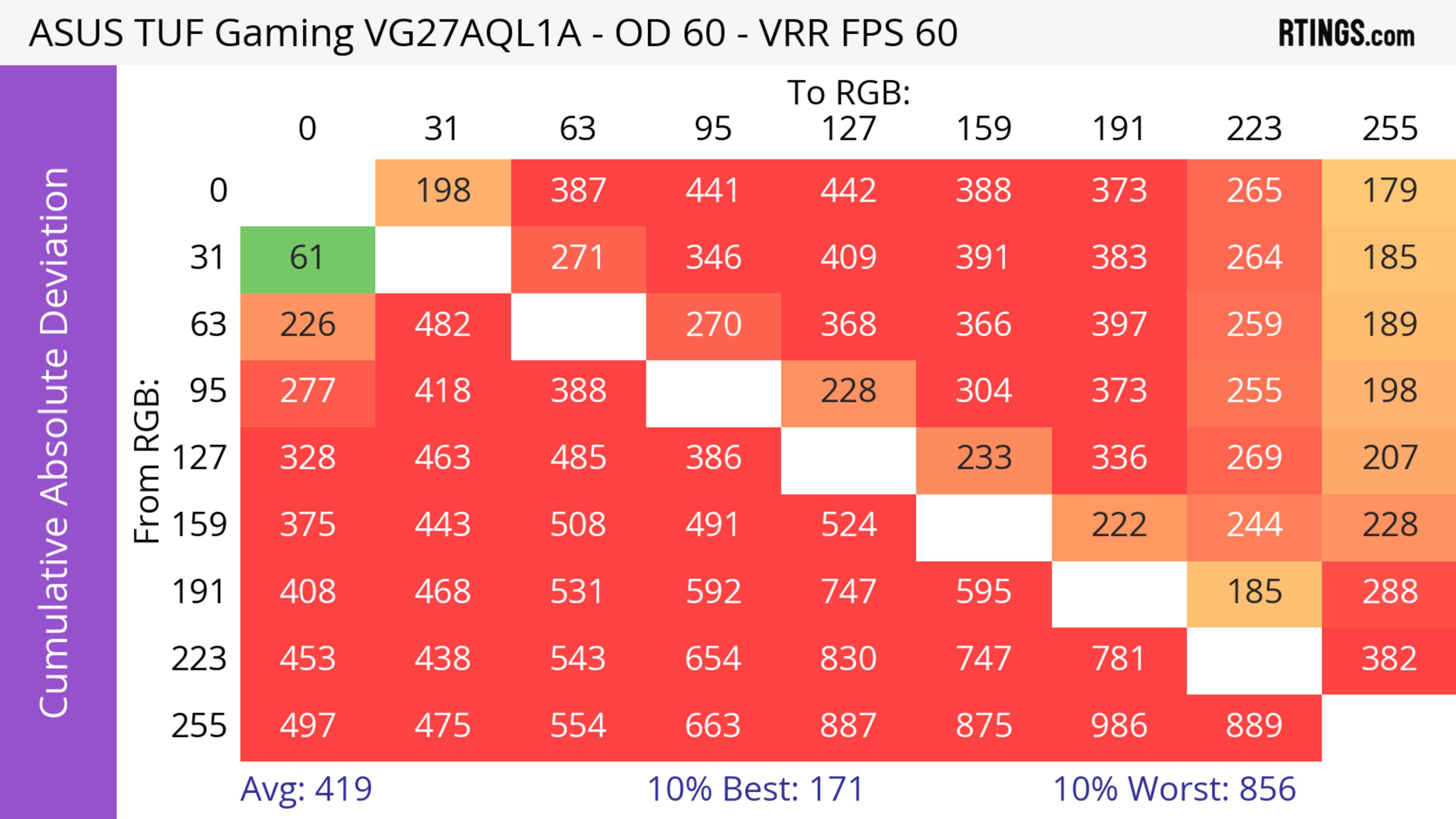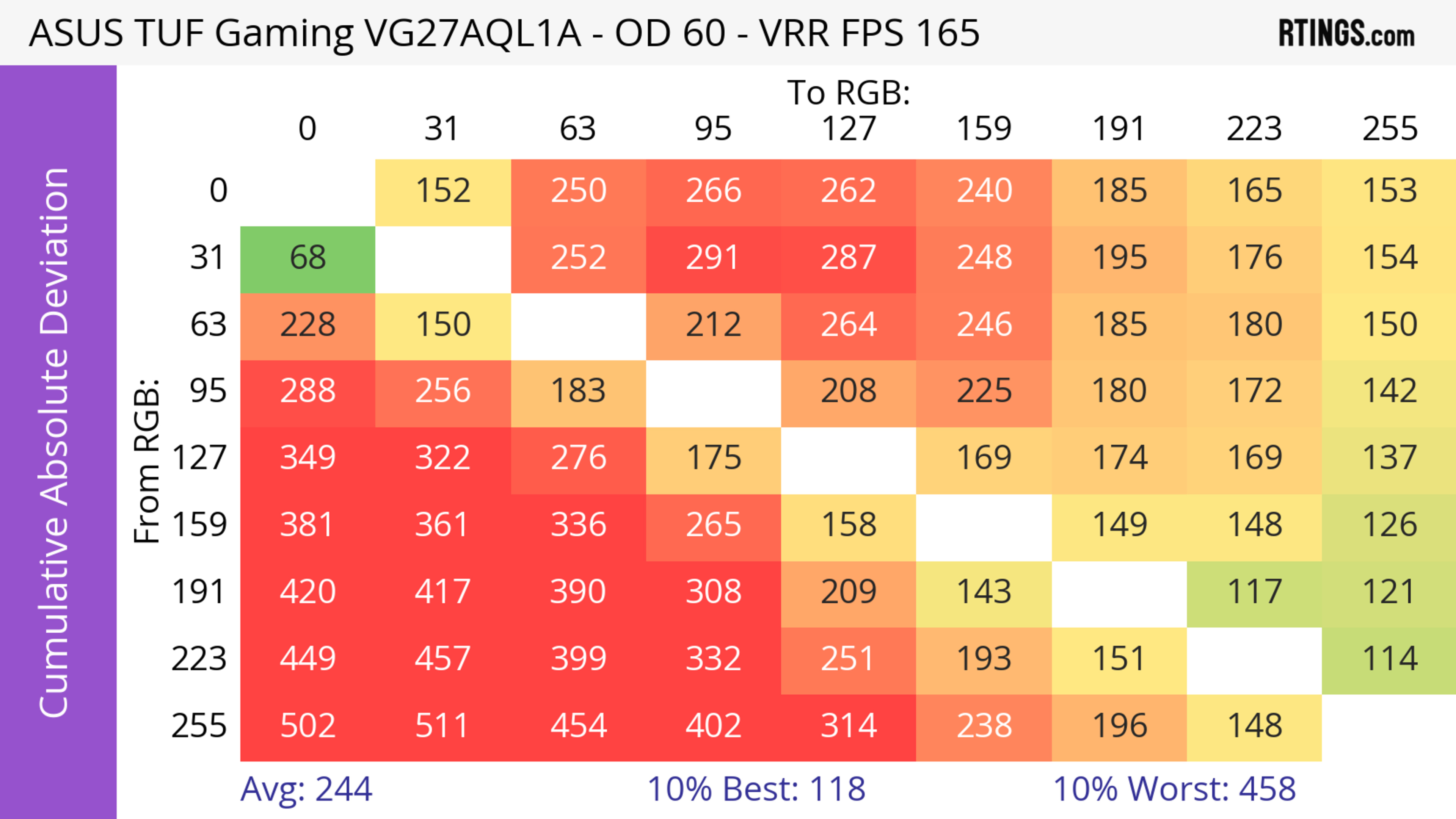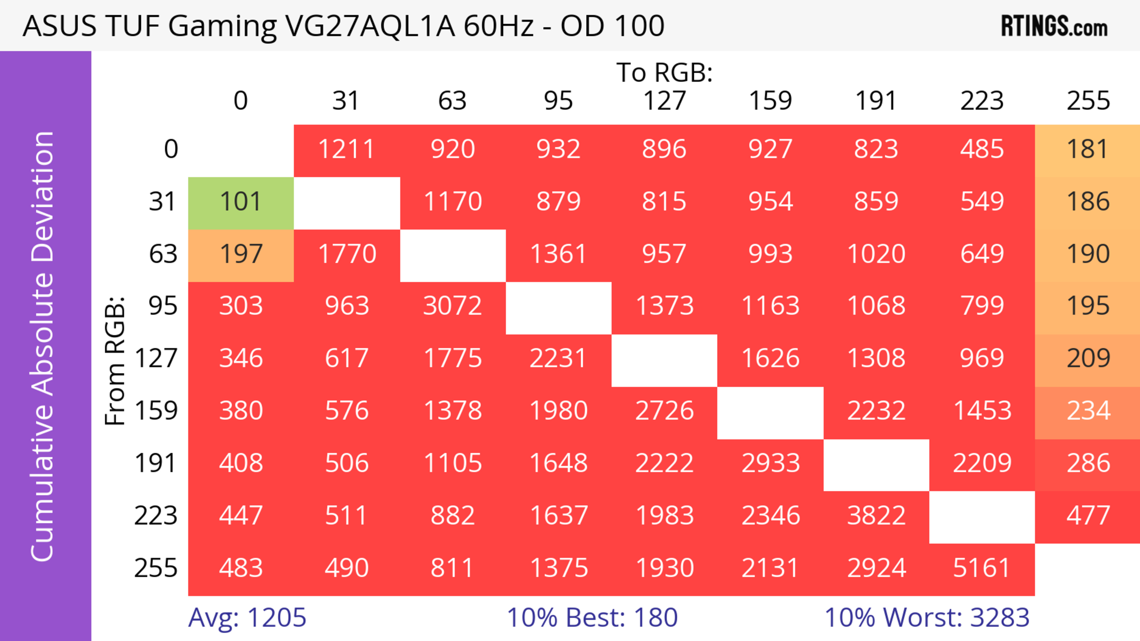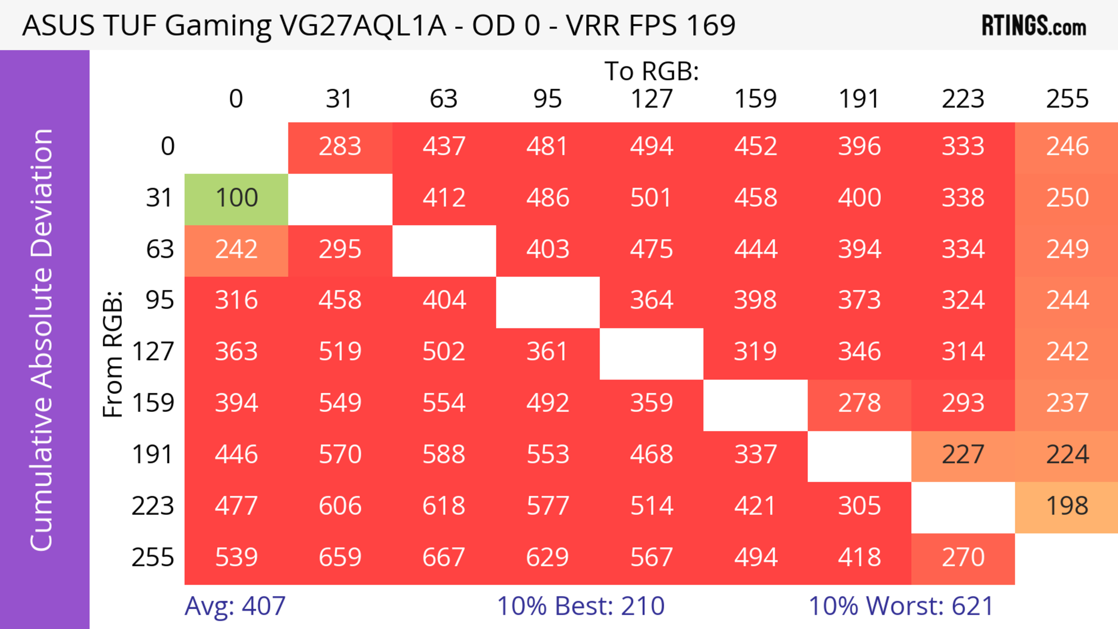 We tested the 27-inch ASUS TUF Gaming VG27AQL1A, and the results are only valid for this model. There are other models that share a similar name, for which you can see the differences below, but they're different models.