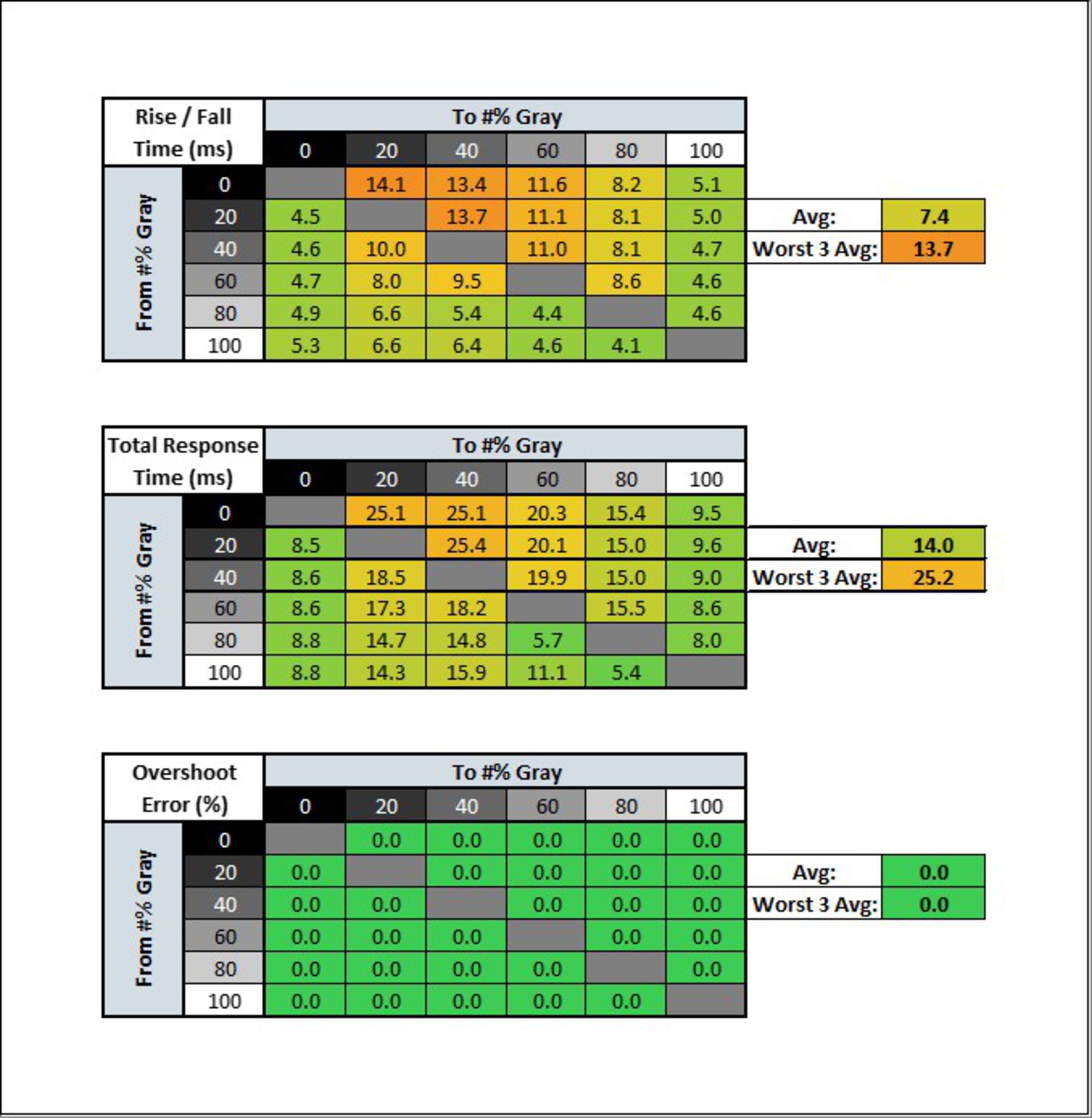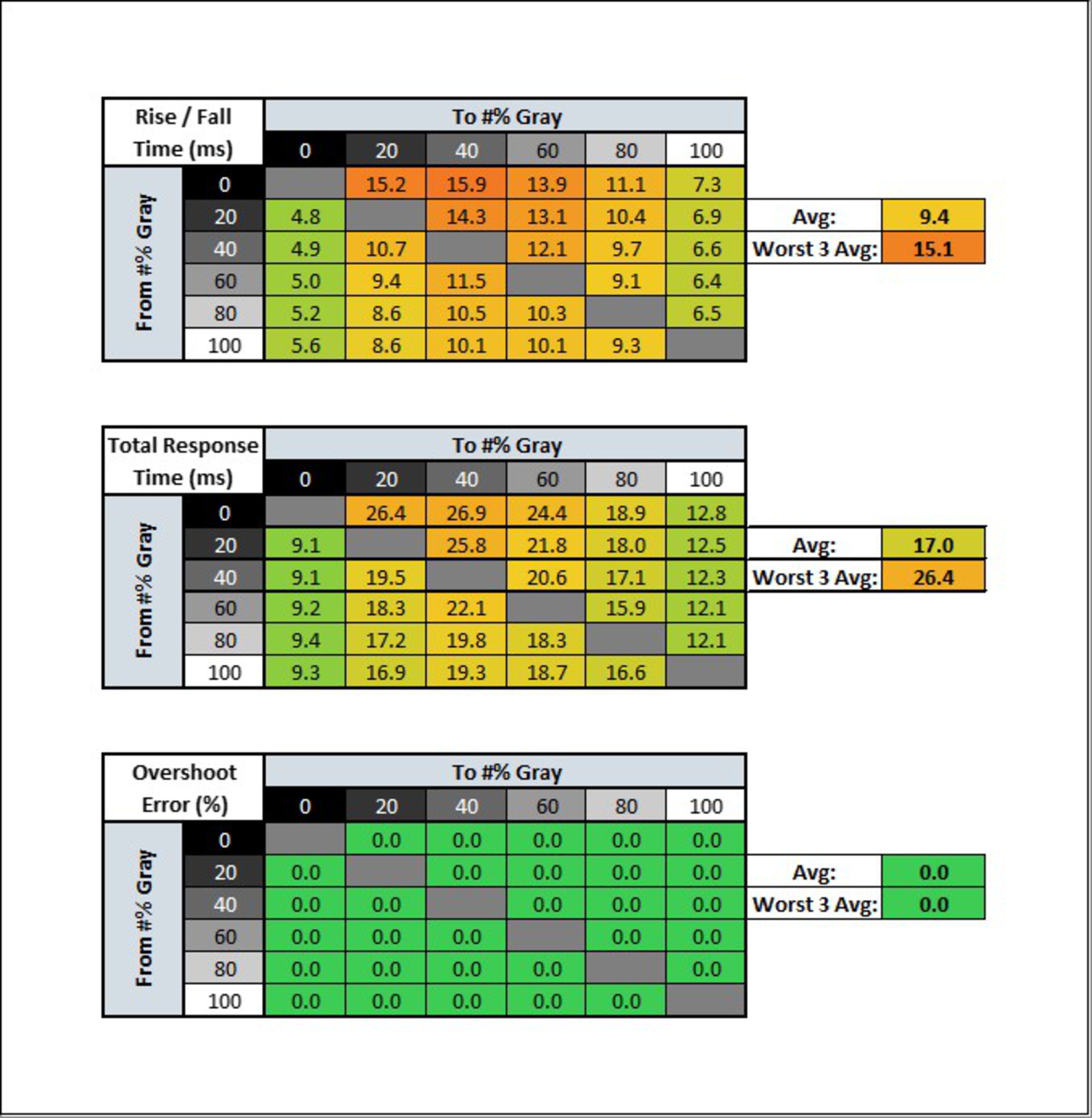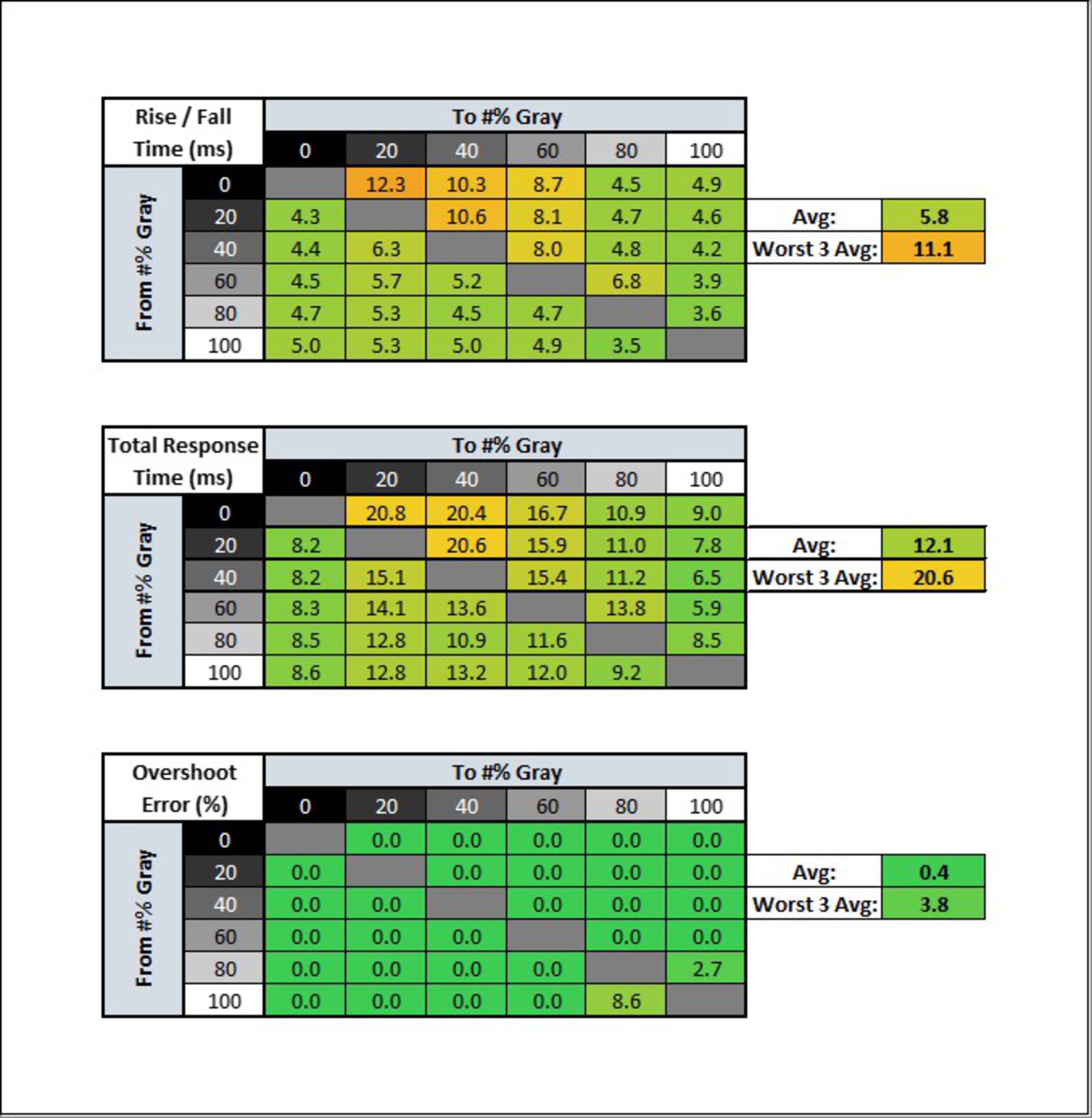 The refresh rate compliance is disappointing. Even at low refresh rates, the monitor's response time isn't fast enough to make full color transitions before it draws the next frame, leading to blurry motion.