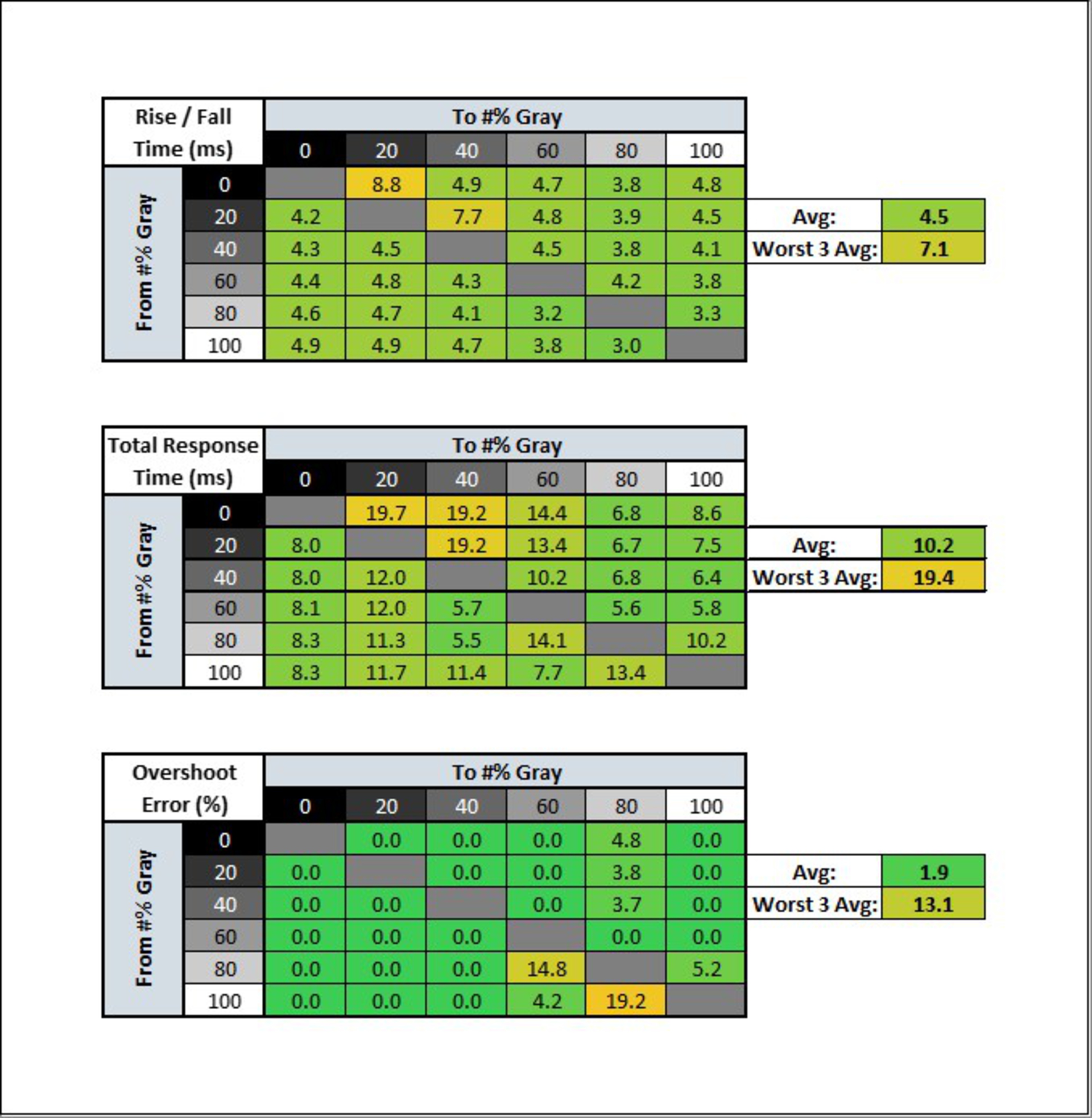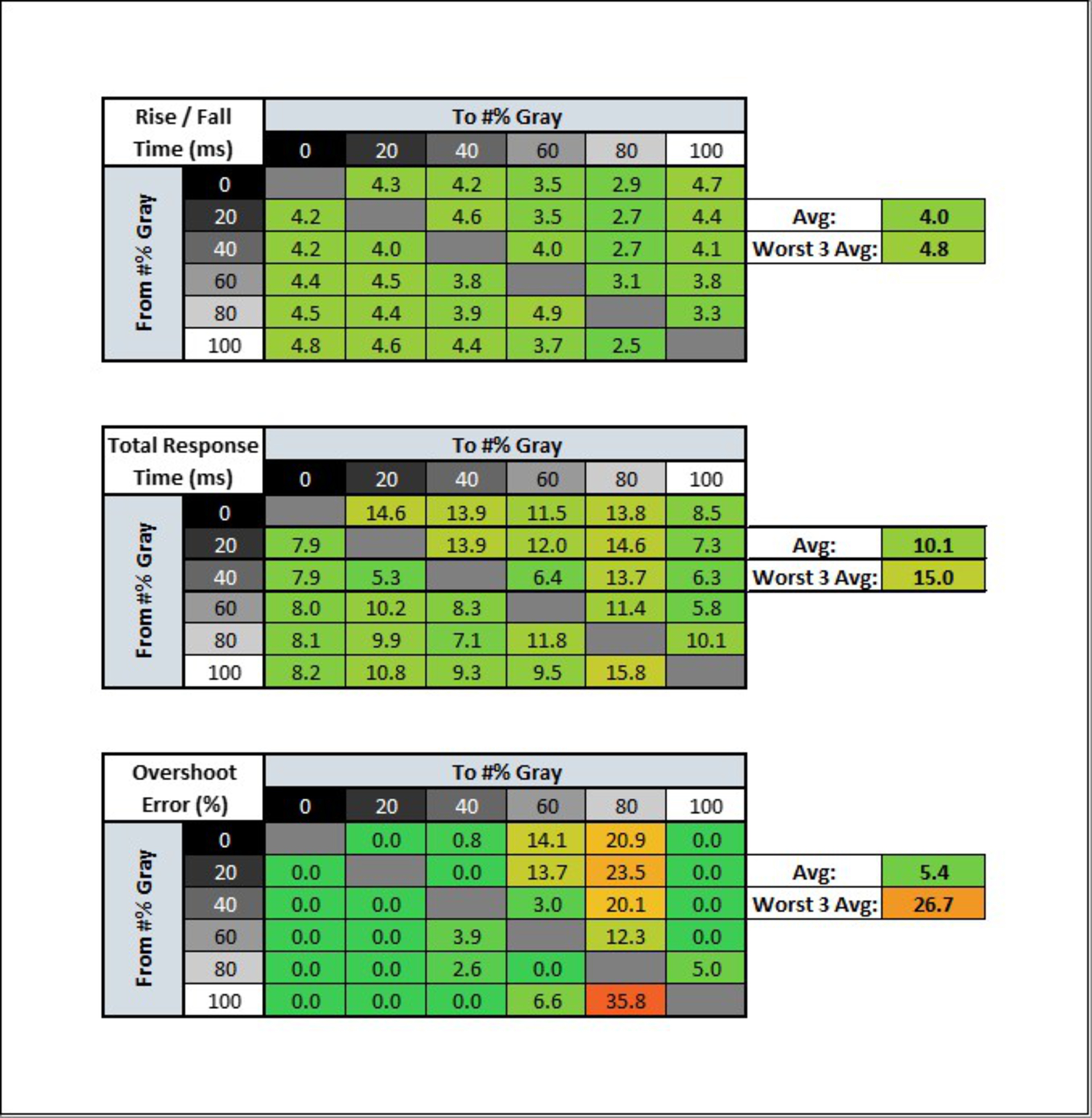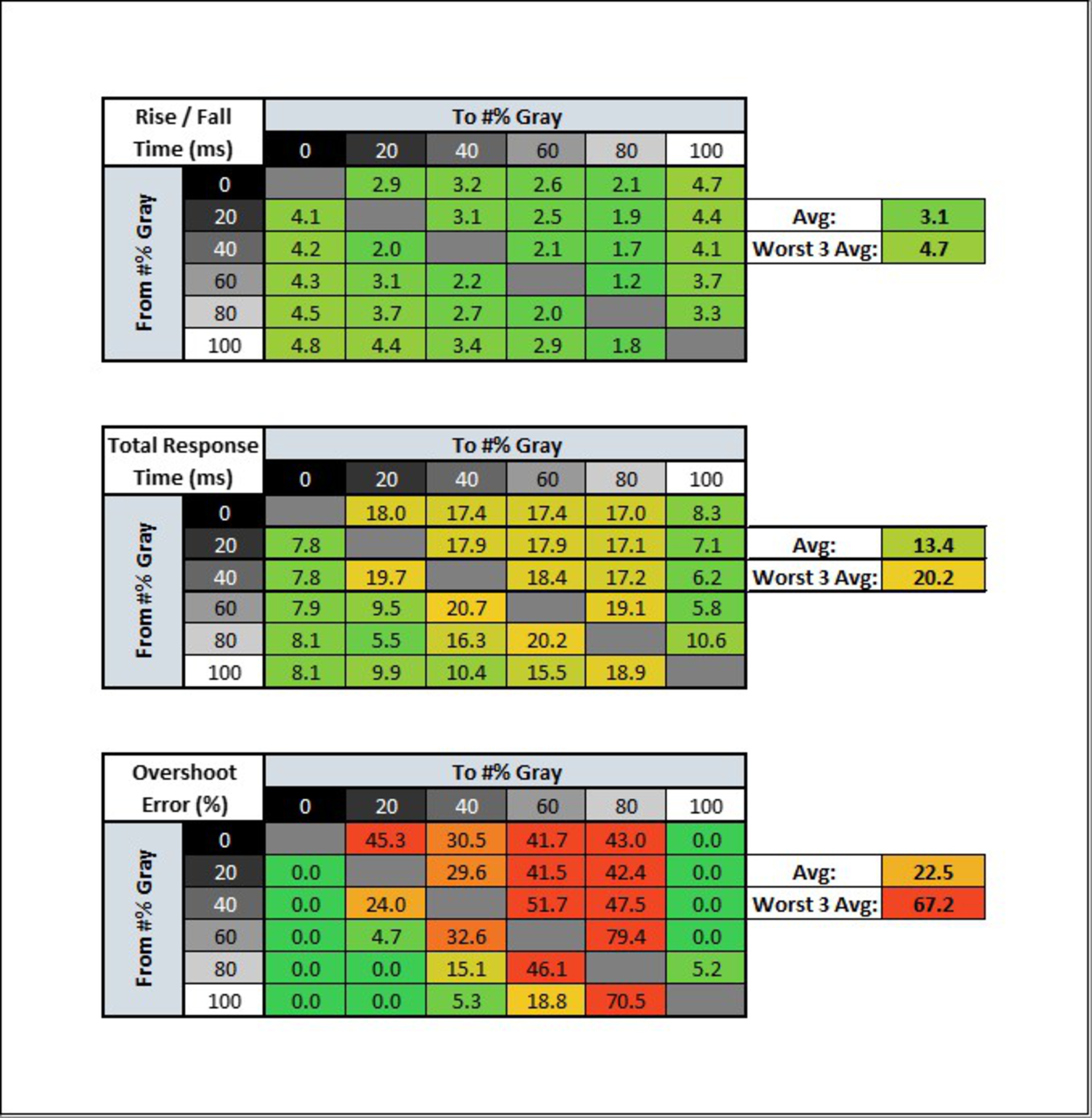 The refresh rate compliance is disappointing. Even at low refresh rates, the monitor's response time isn't fast enough to make full color transitions before it draws the next frame, leading to blurry motion.