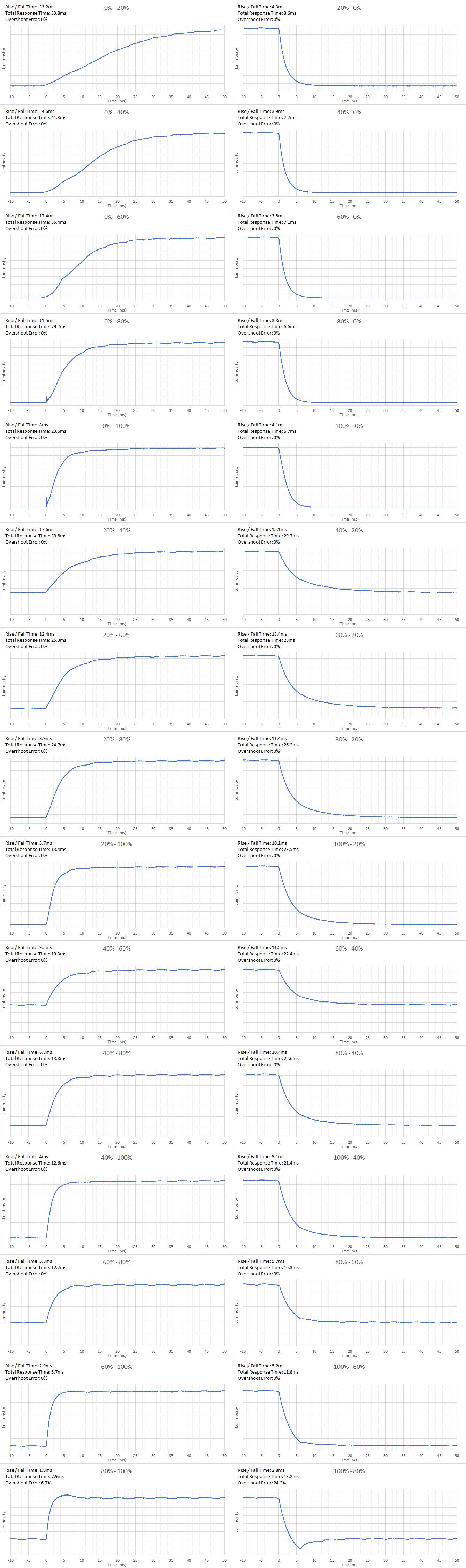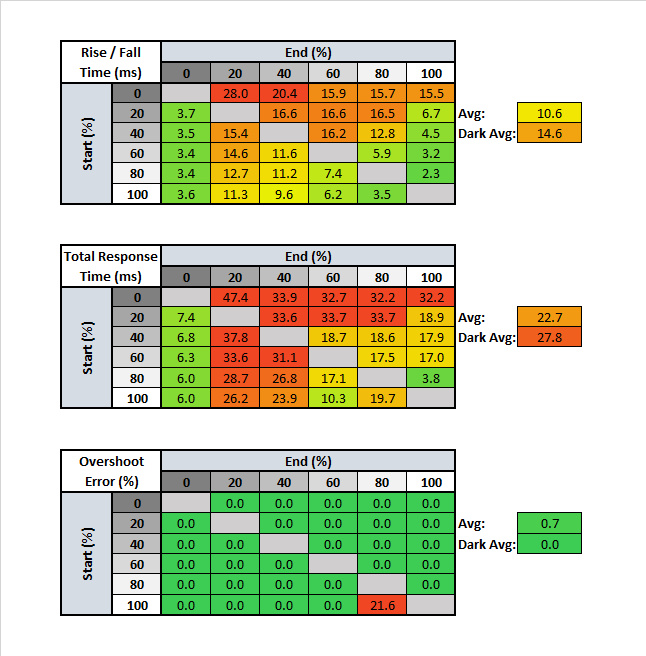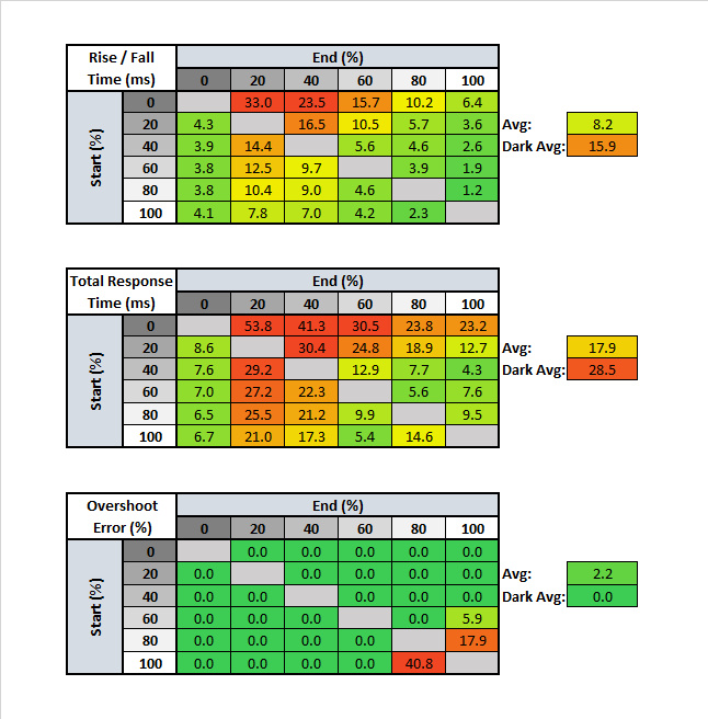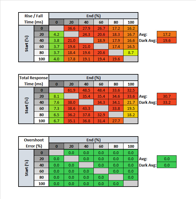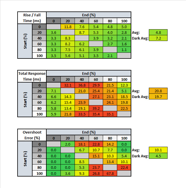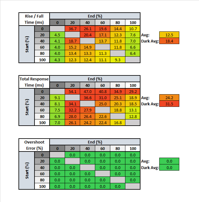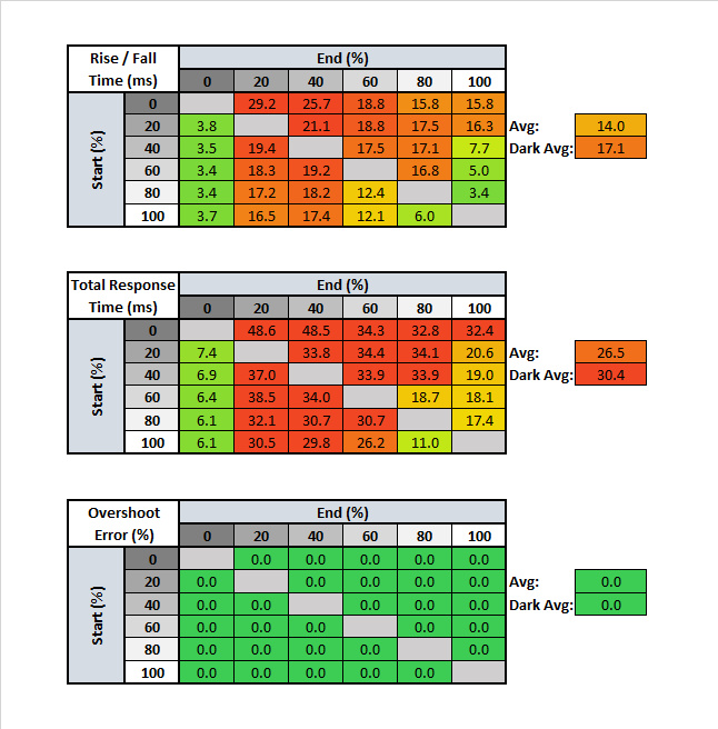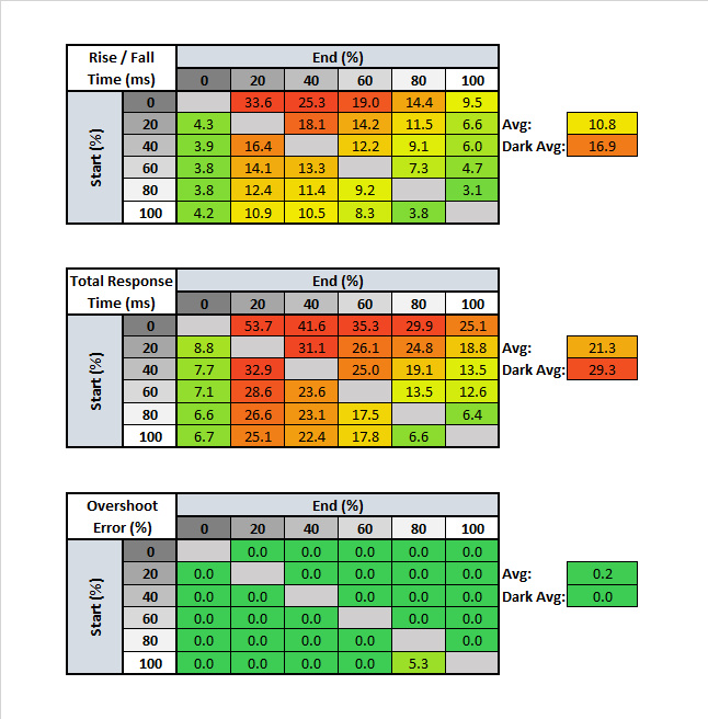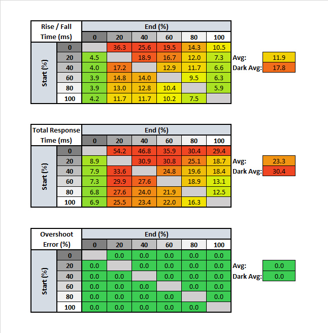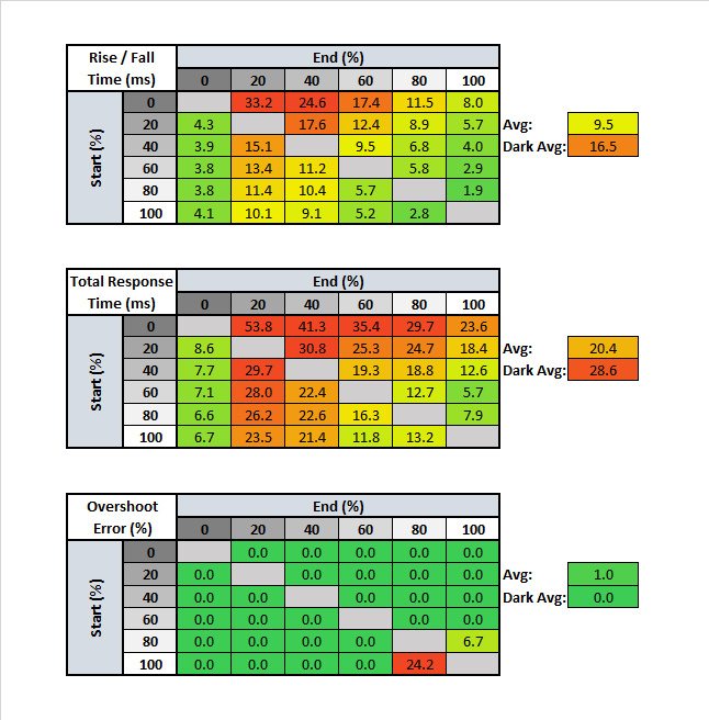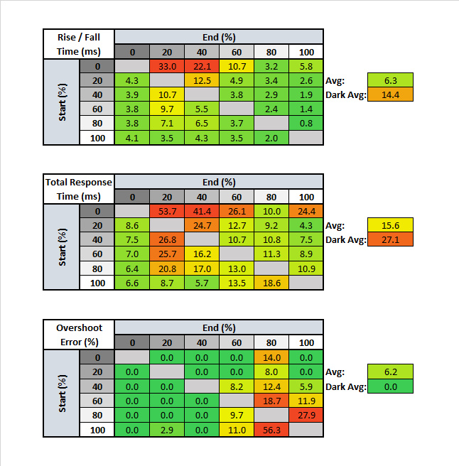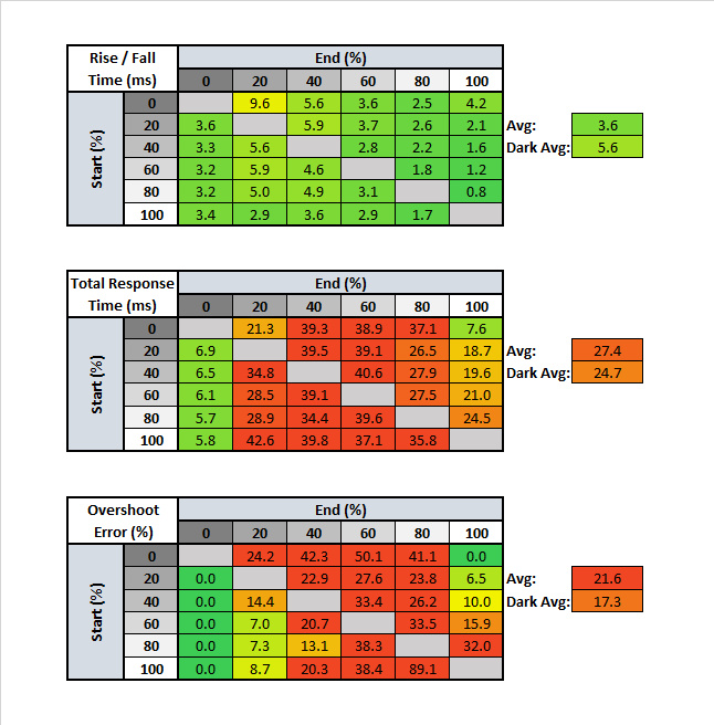 | Overdrive Setting | Response Time Chart | Response Time Tables | Motion Blur Photo |