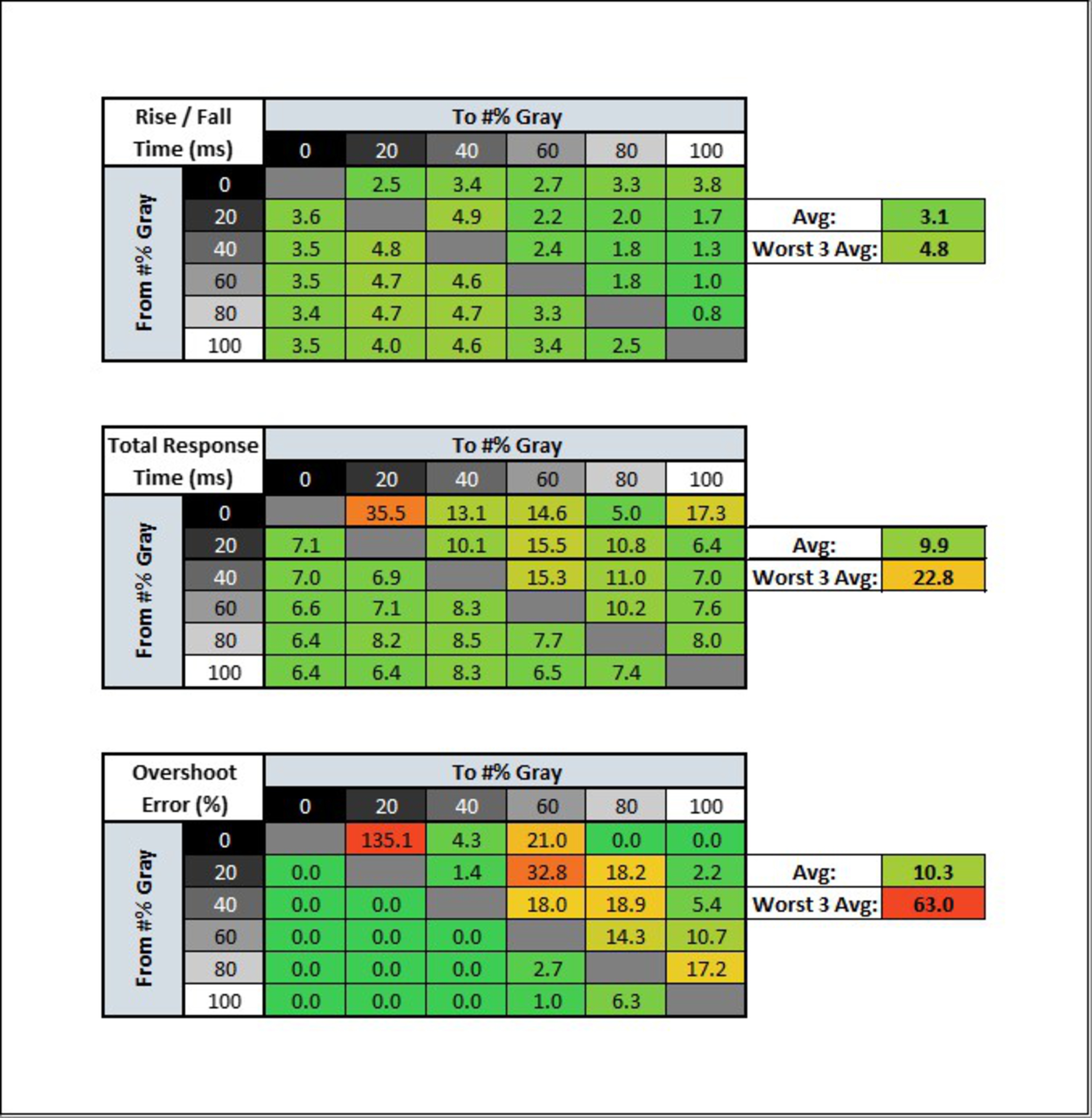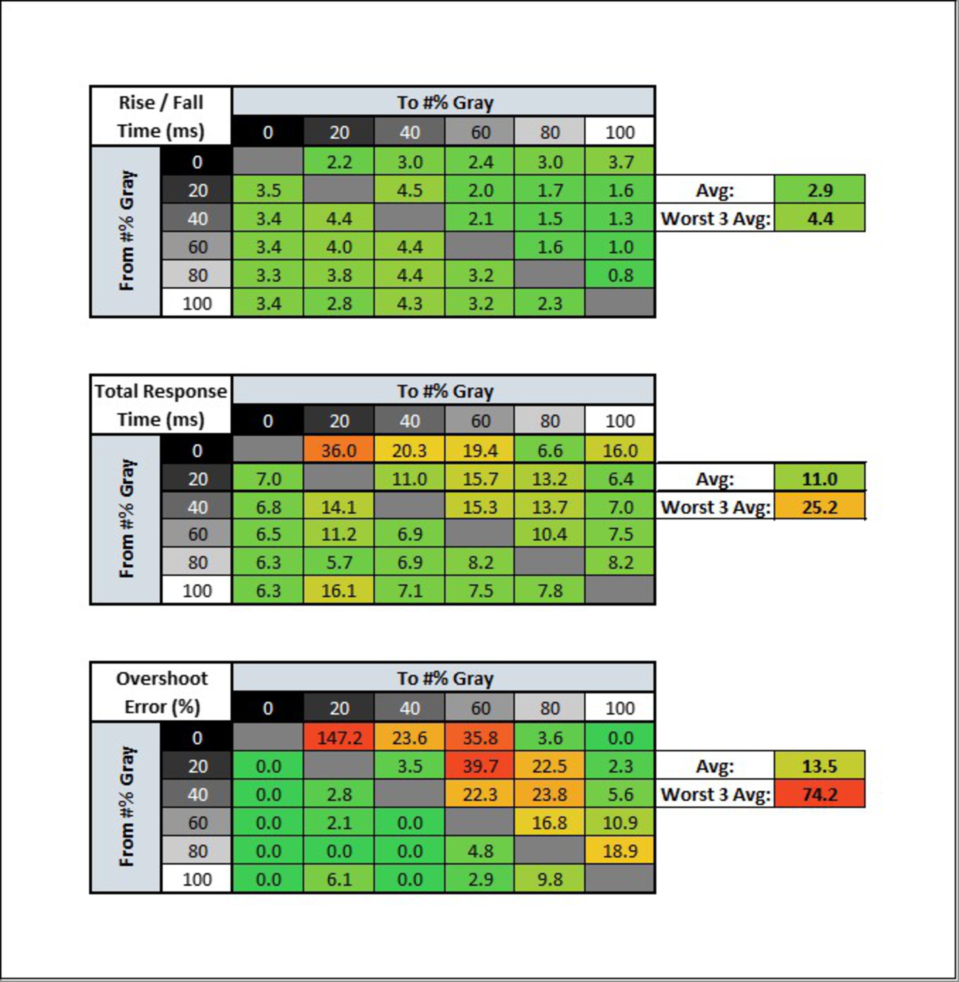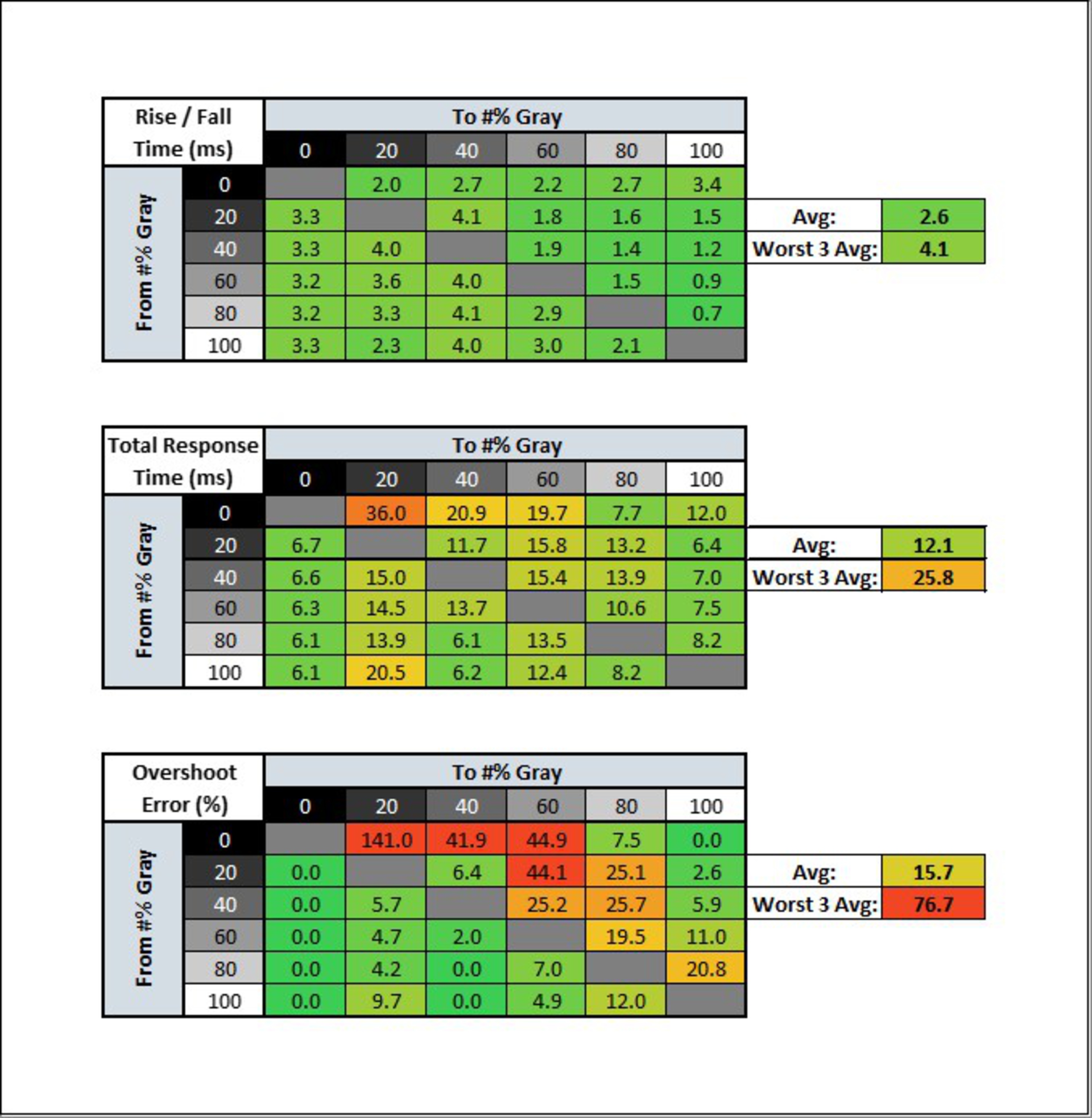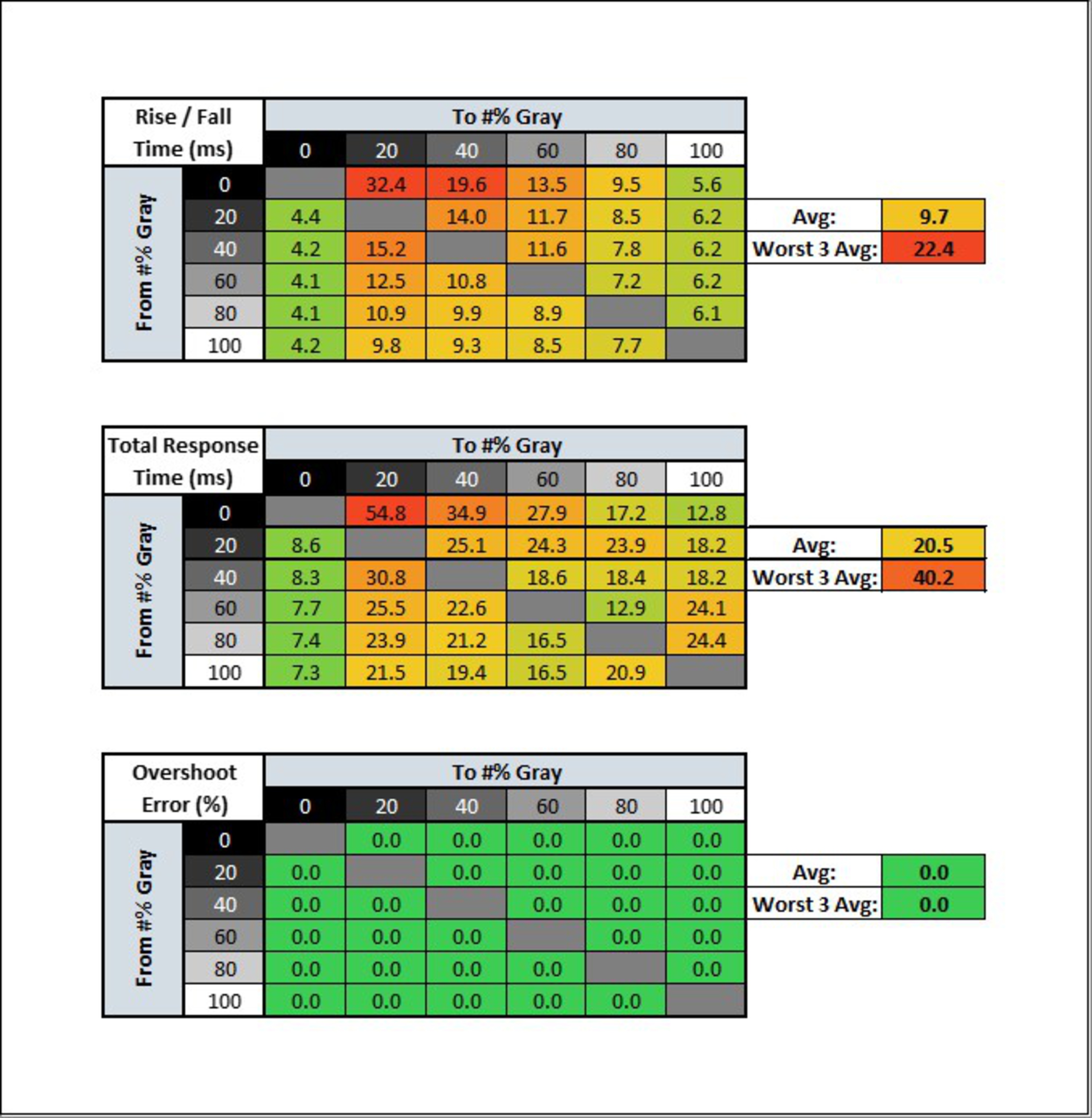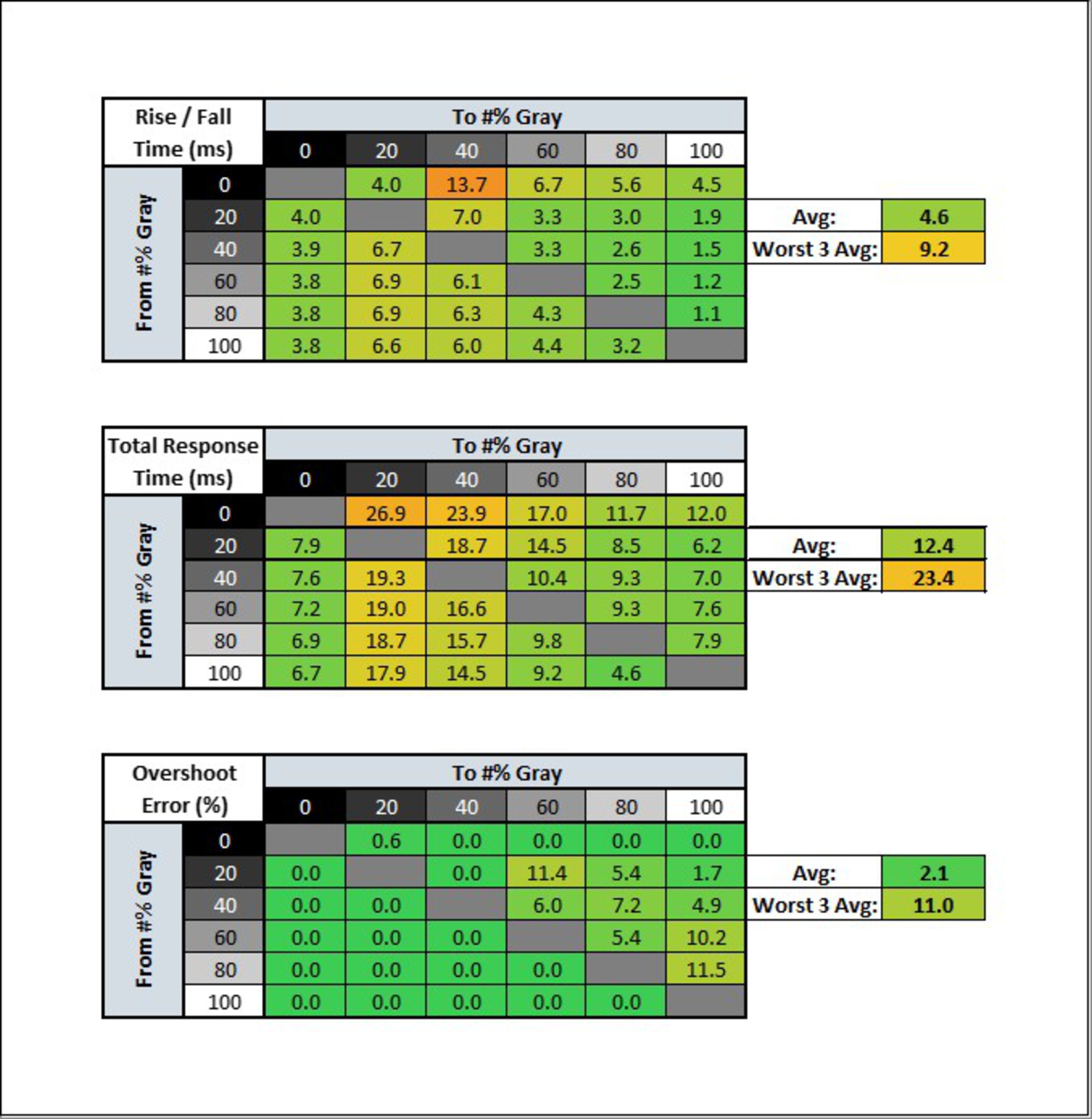 | Overdrive Setting | Response Time Chart | Response Time Tables | Motion Blur Photo |