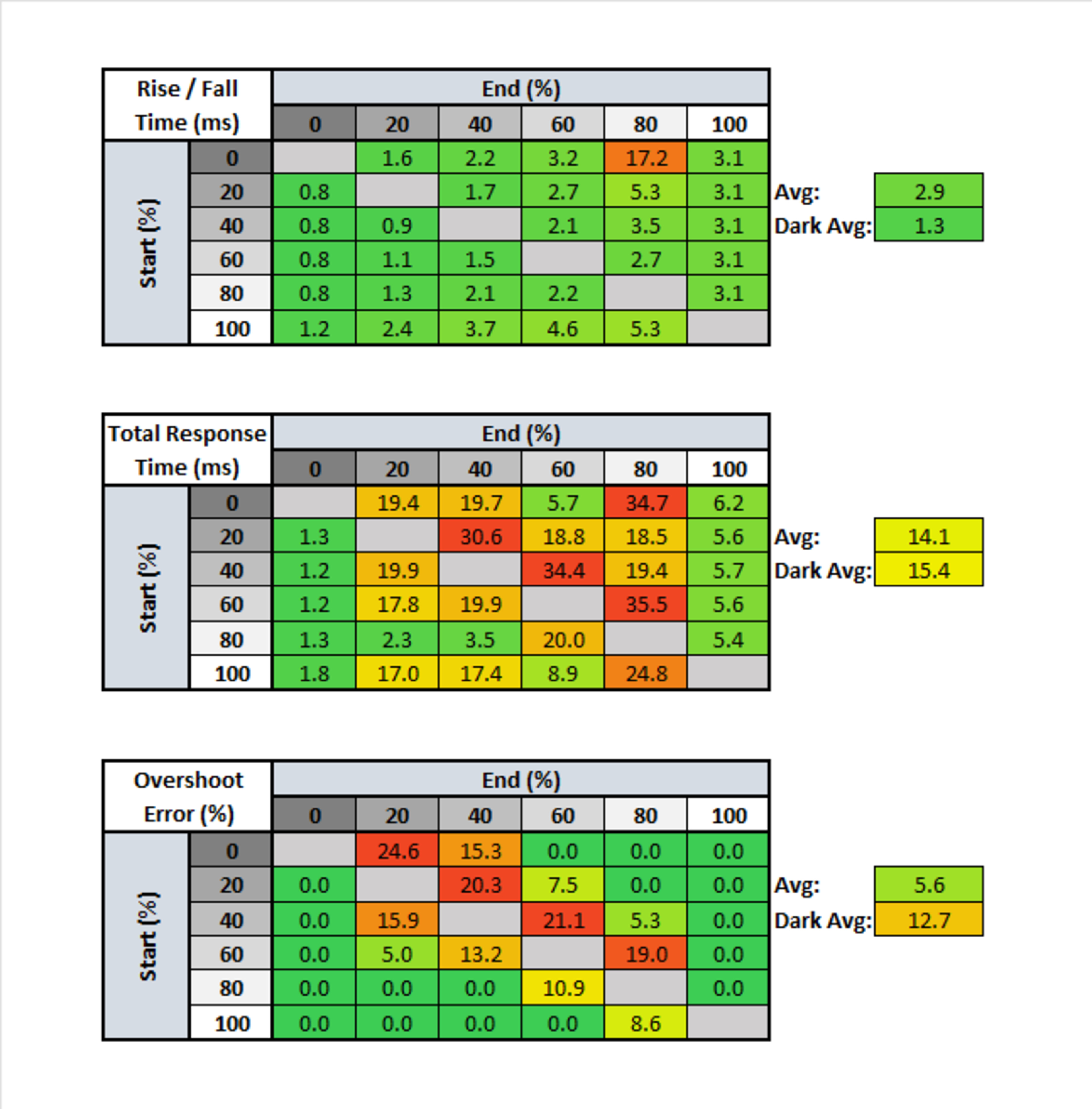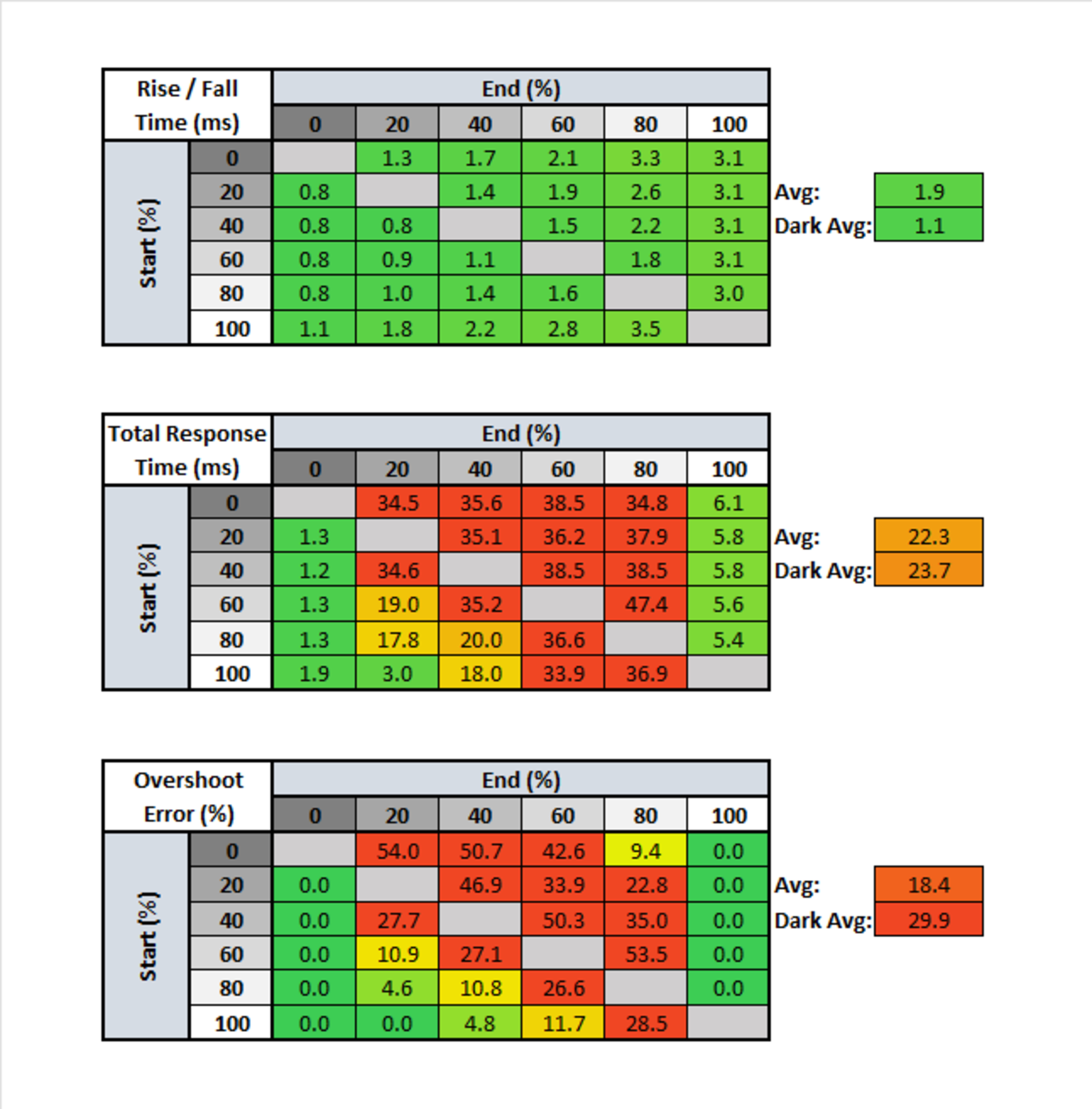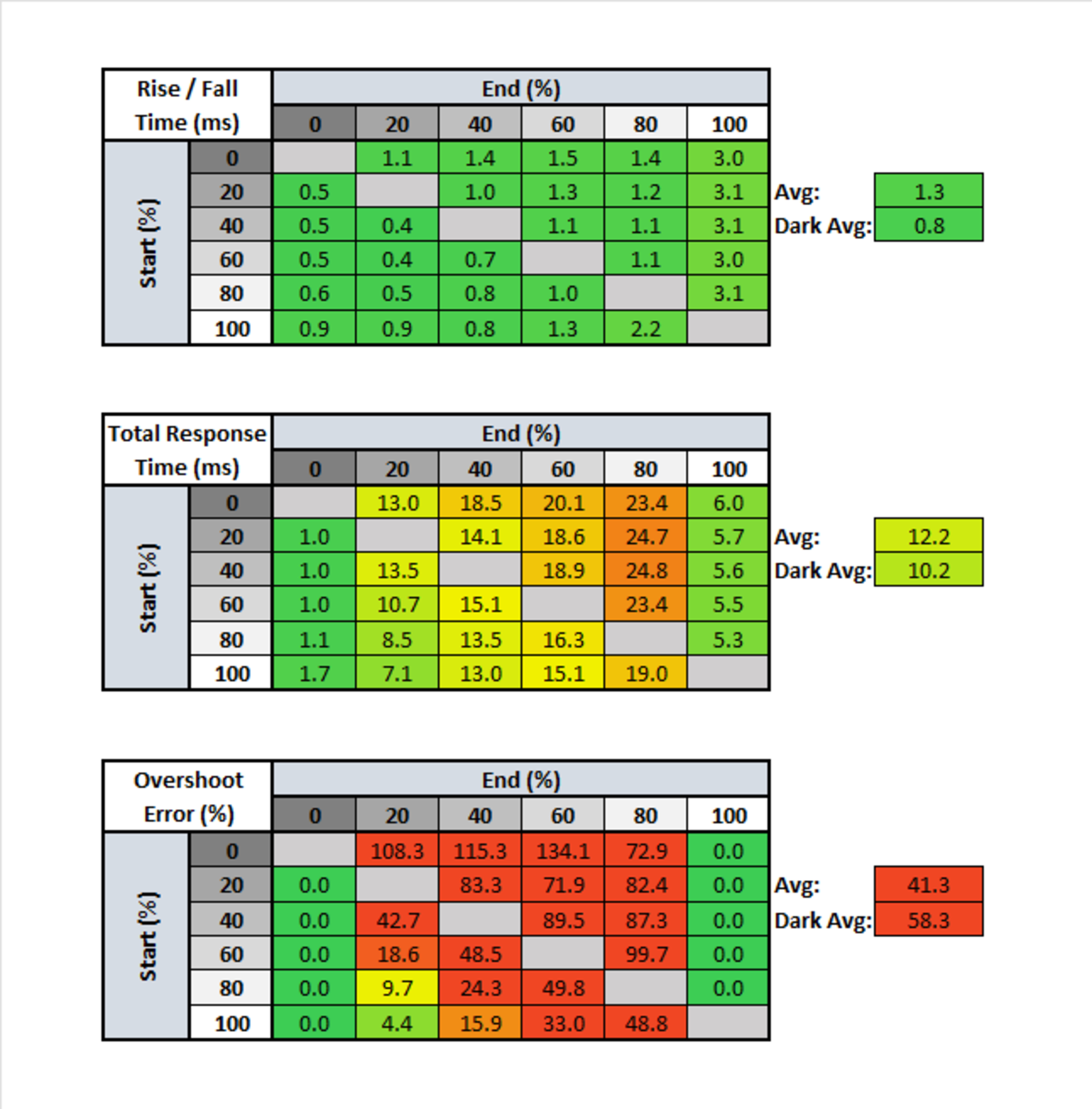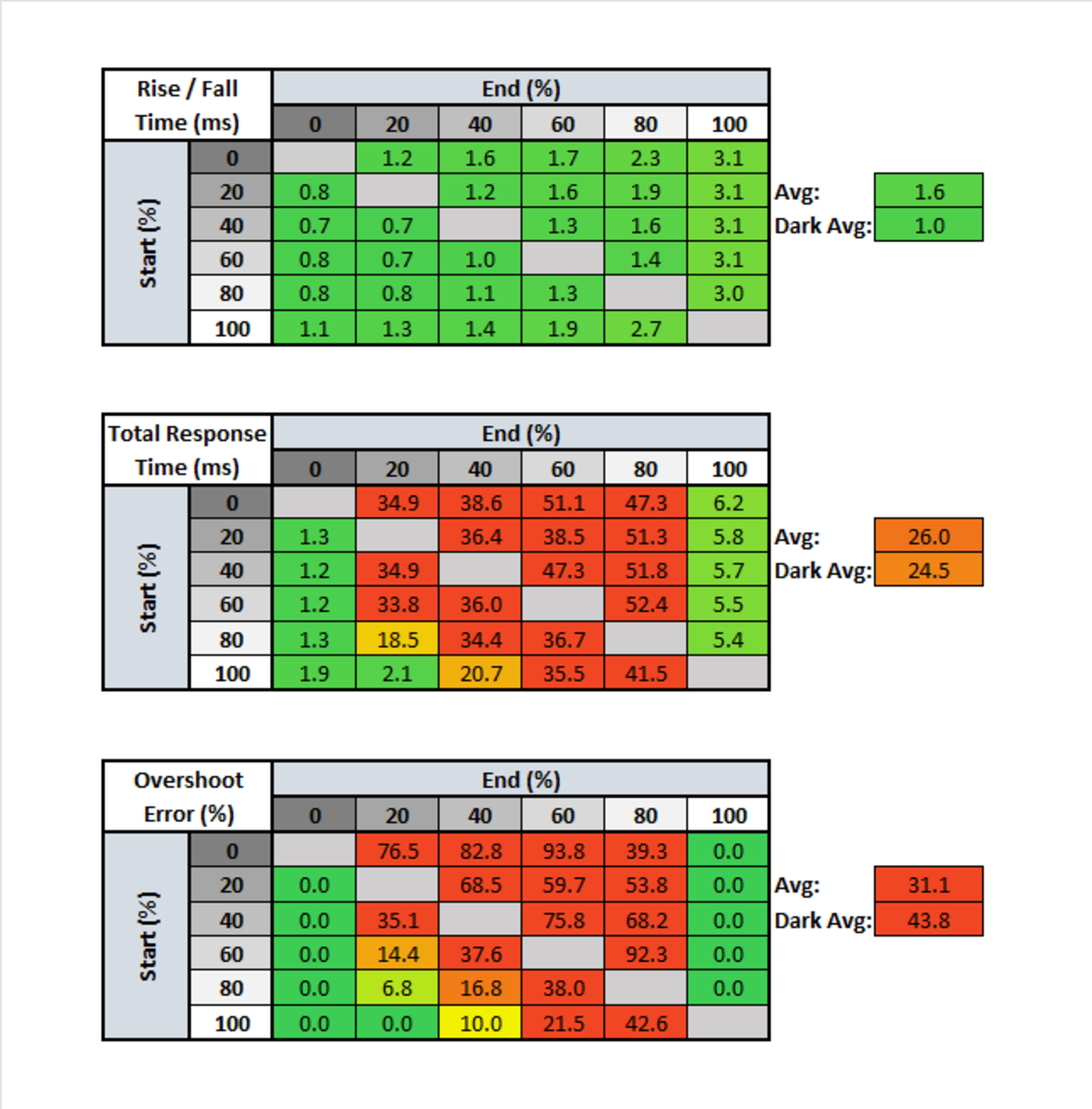 | Overdrive Setting | Response Time Chart | Response Time Tables | Motion Blur Photo |