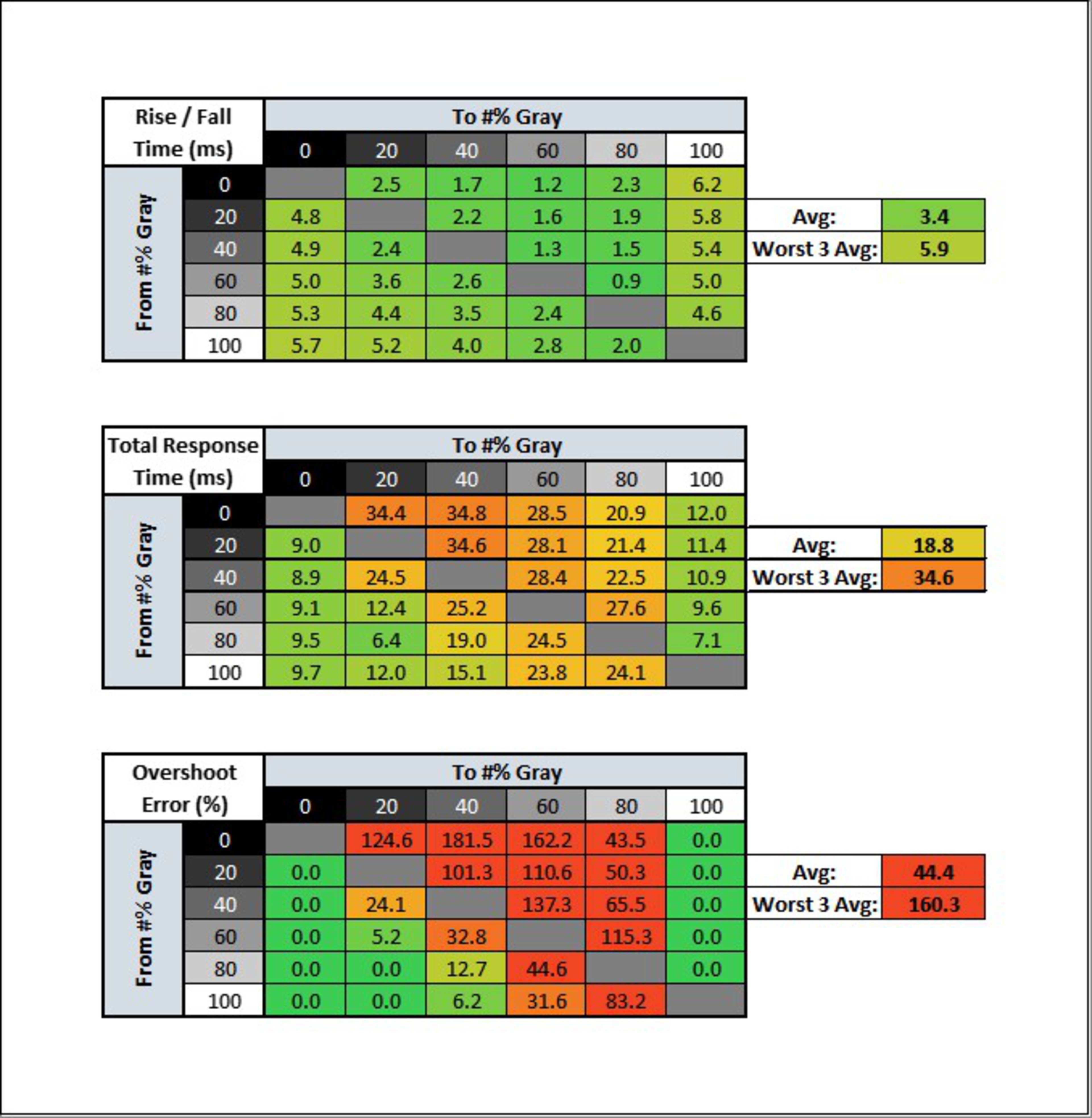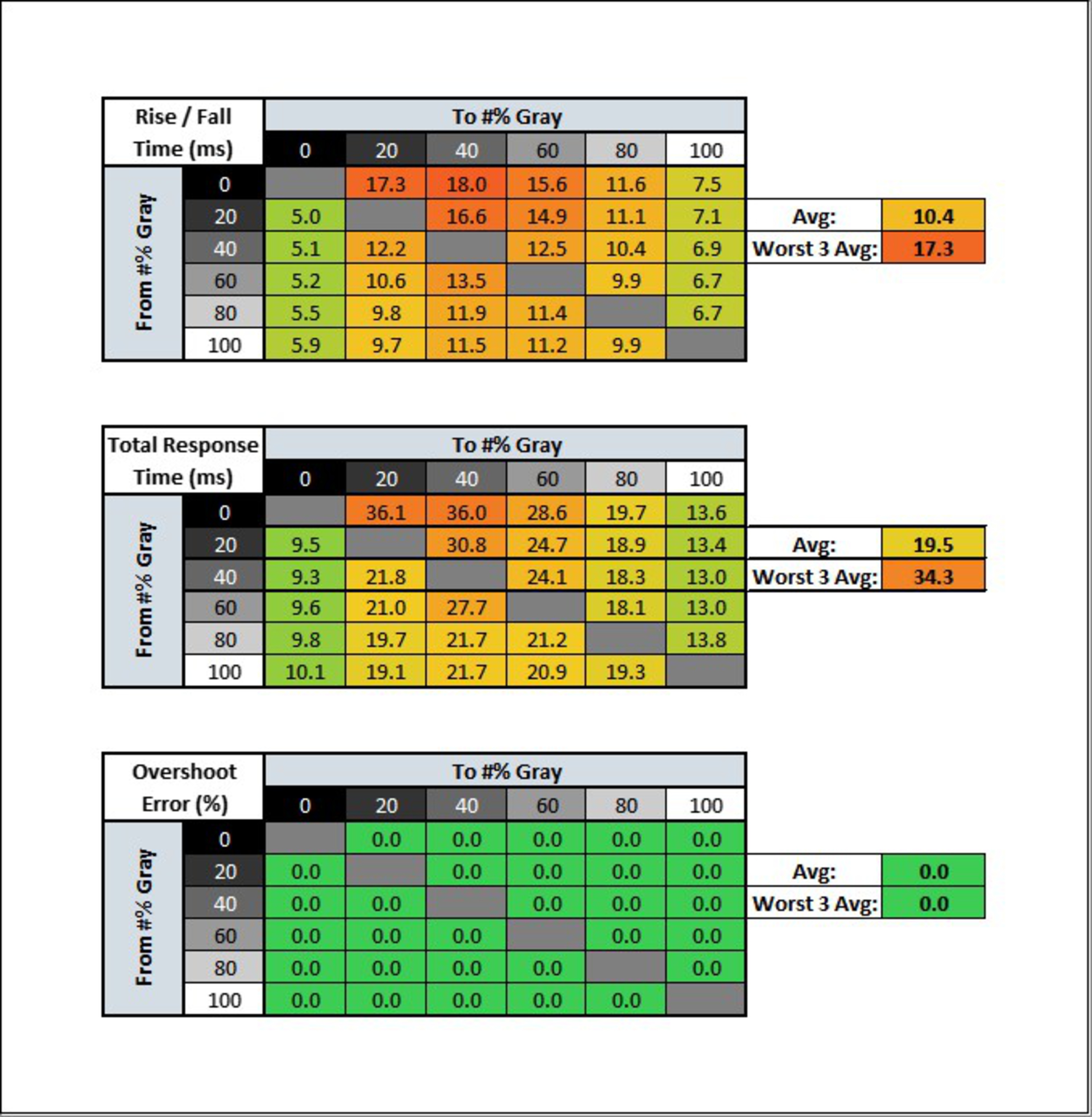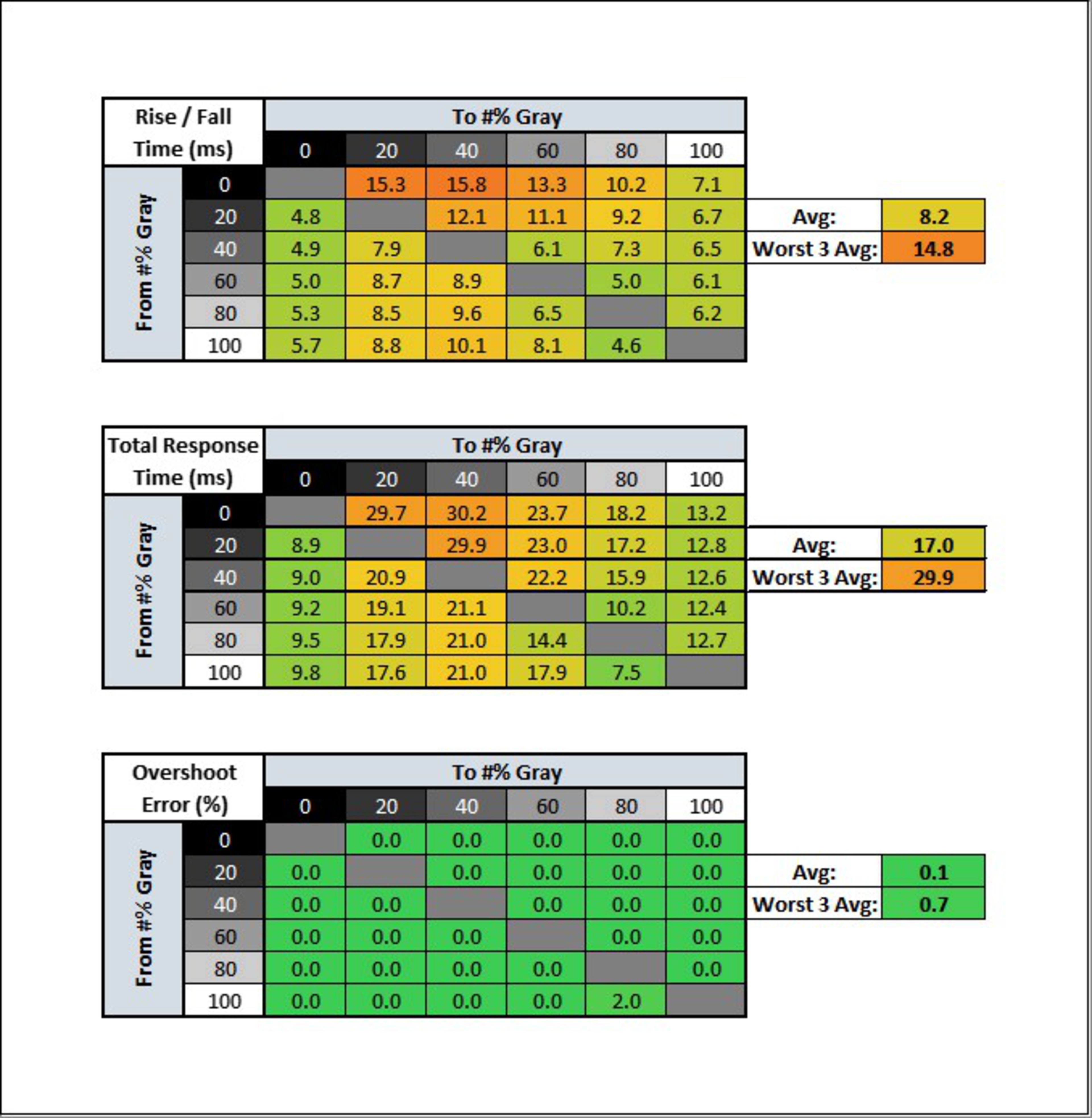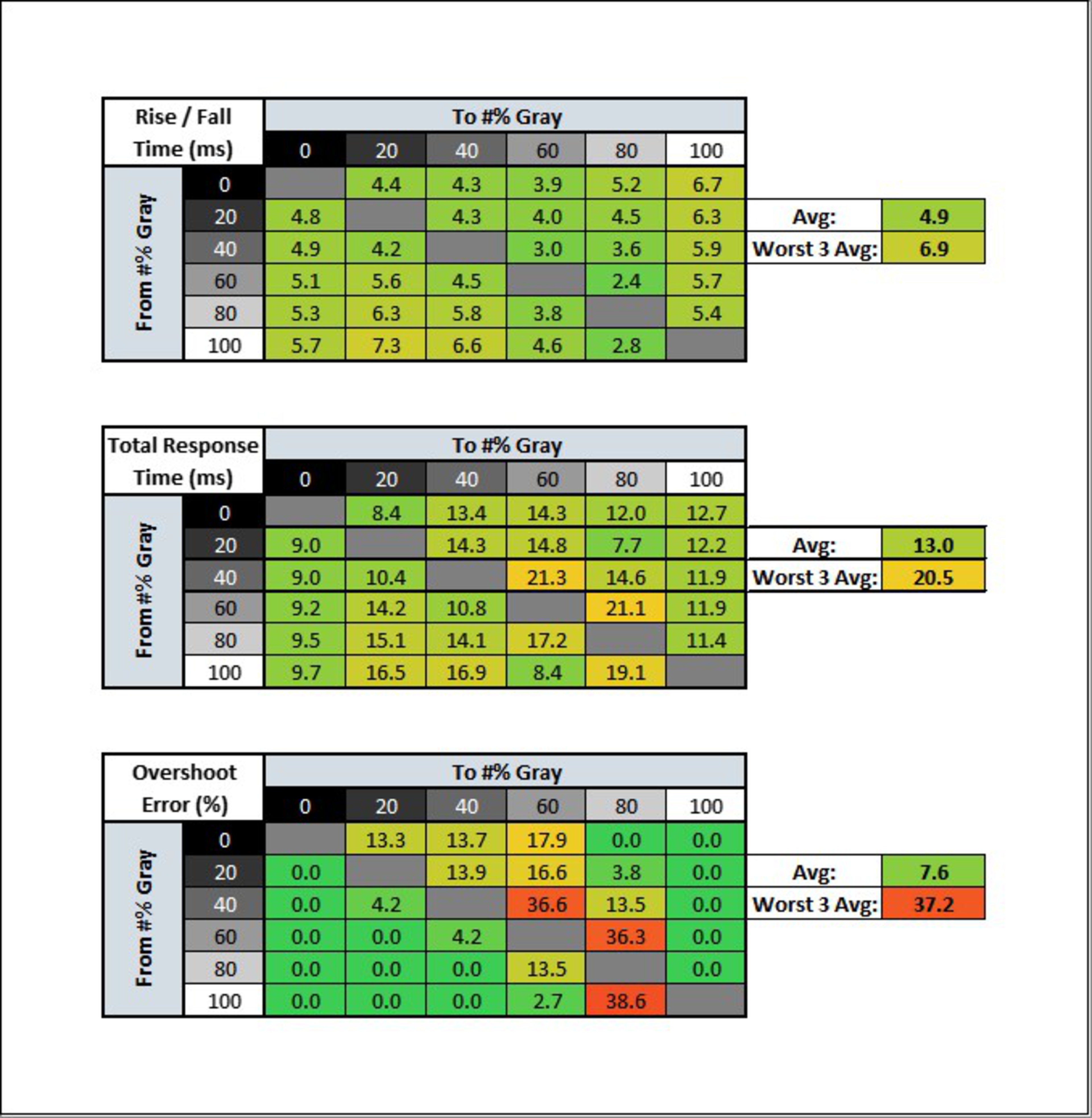 | Overdrive Setting | Response Time Chart | Response Time Tables | Motion Blur Photo |