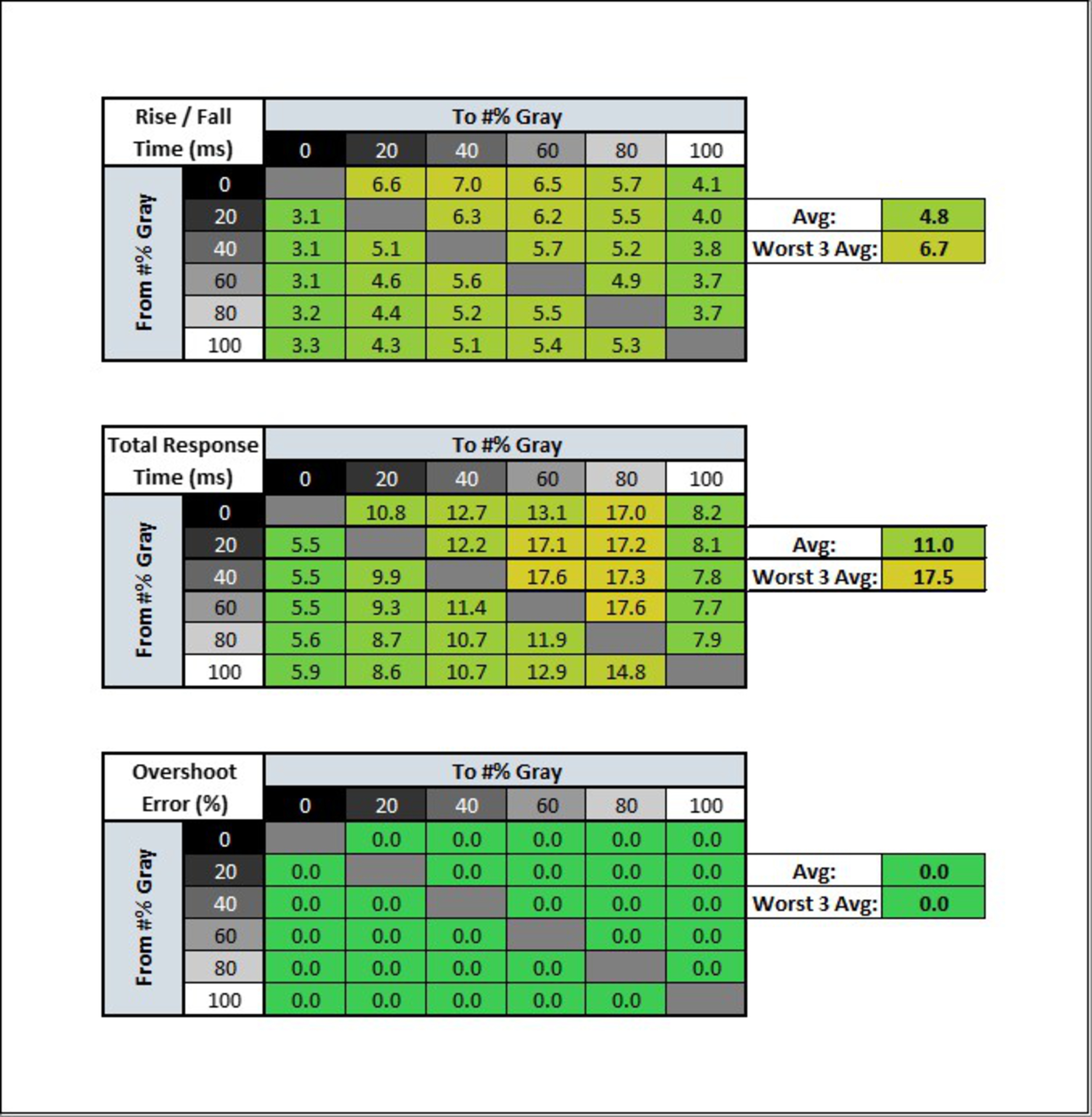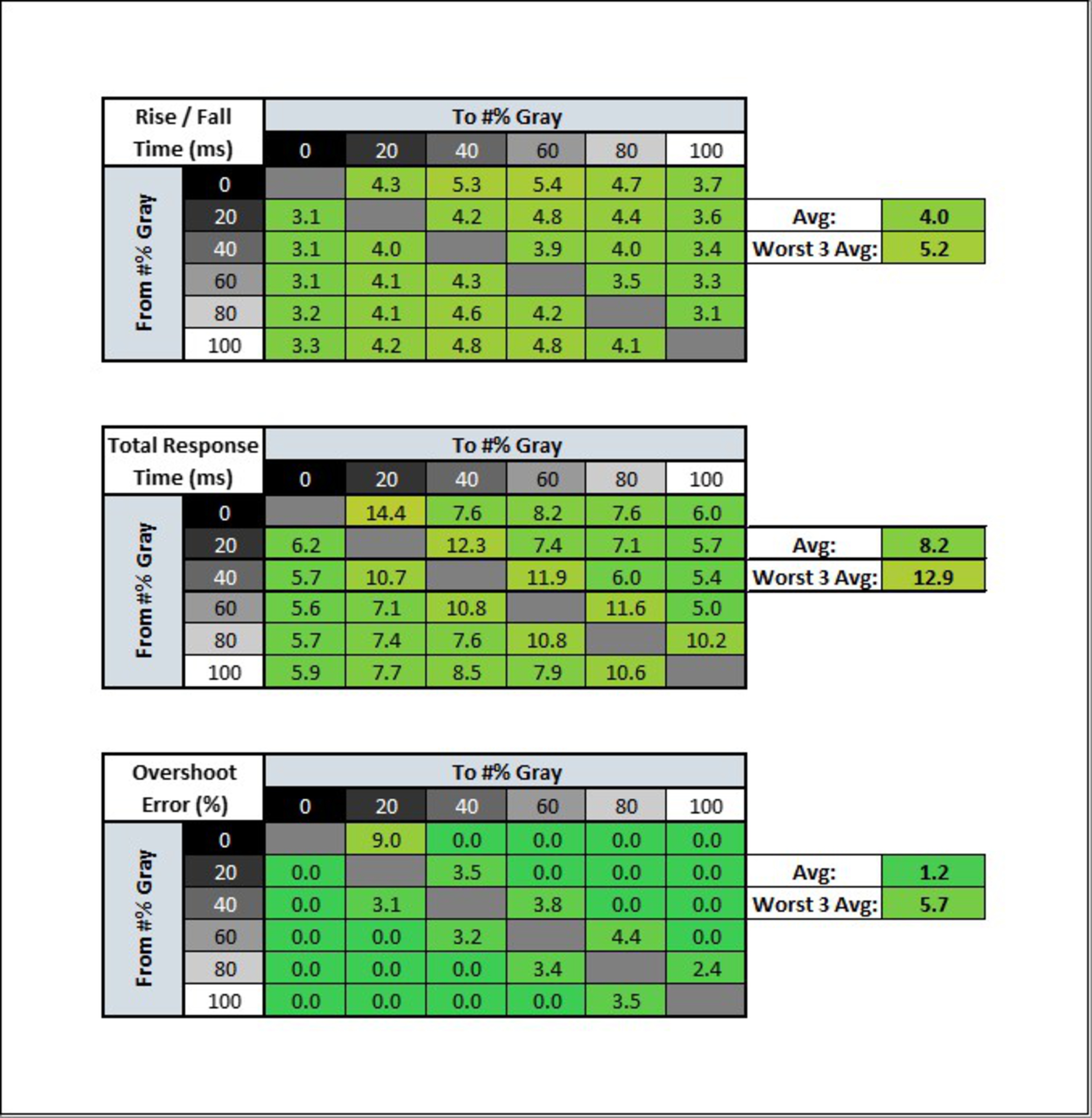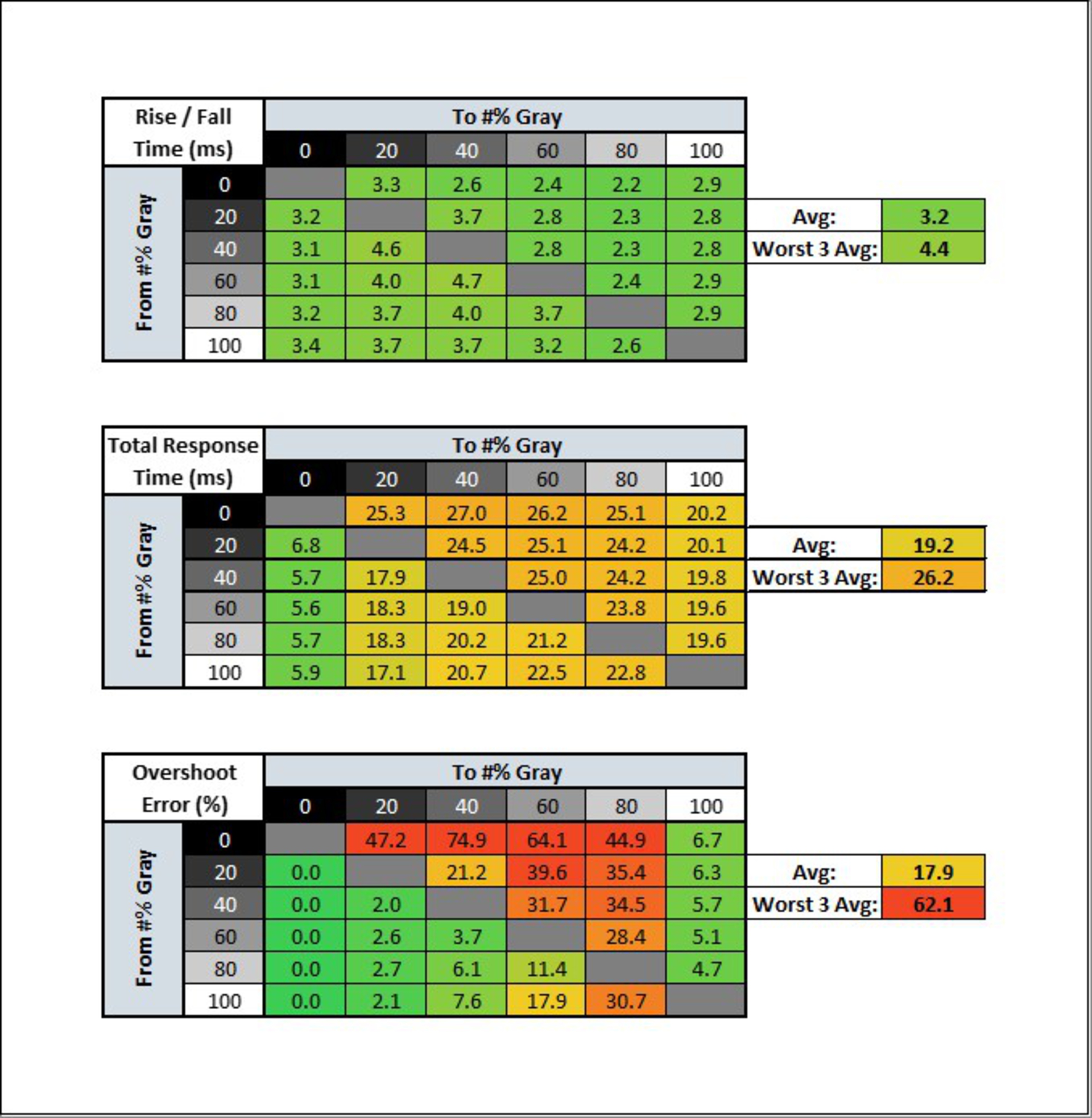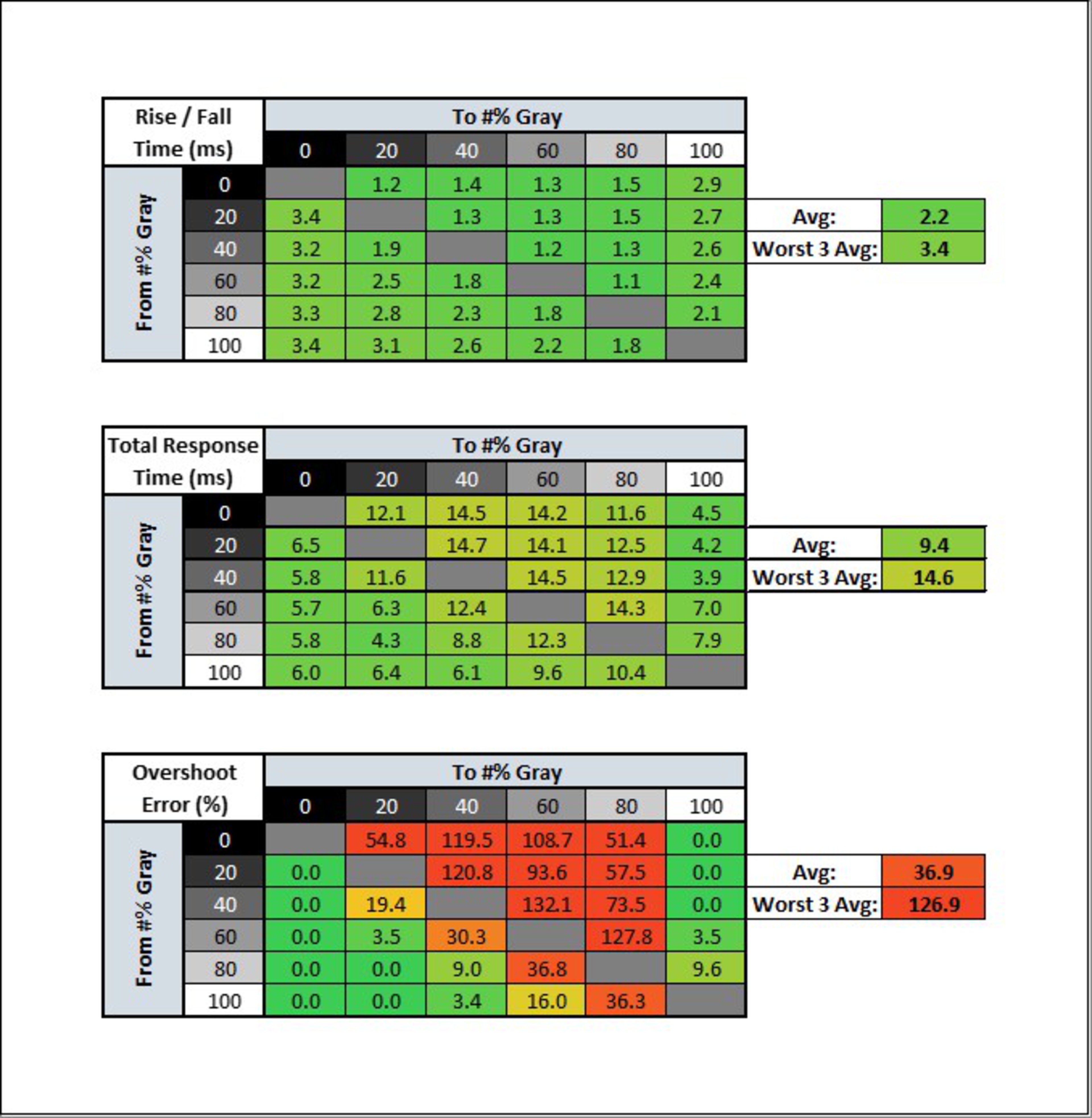 | Overdrive Setting | Response Time Chart | Response Time Tables | Motion Blur Photo |