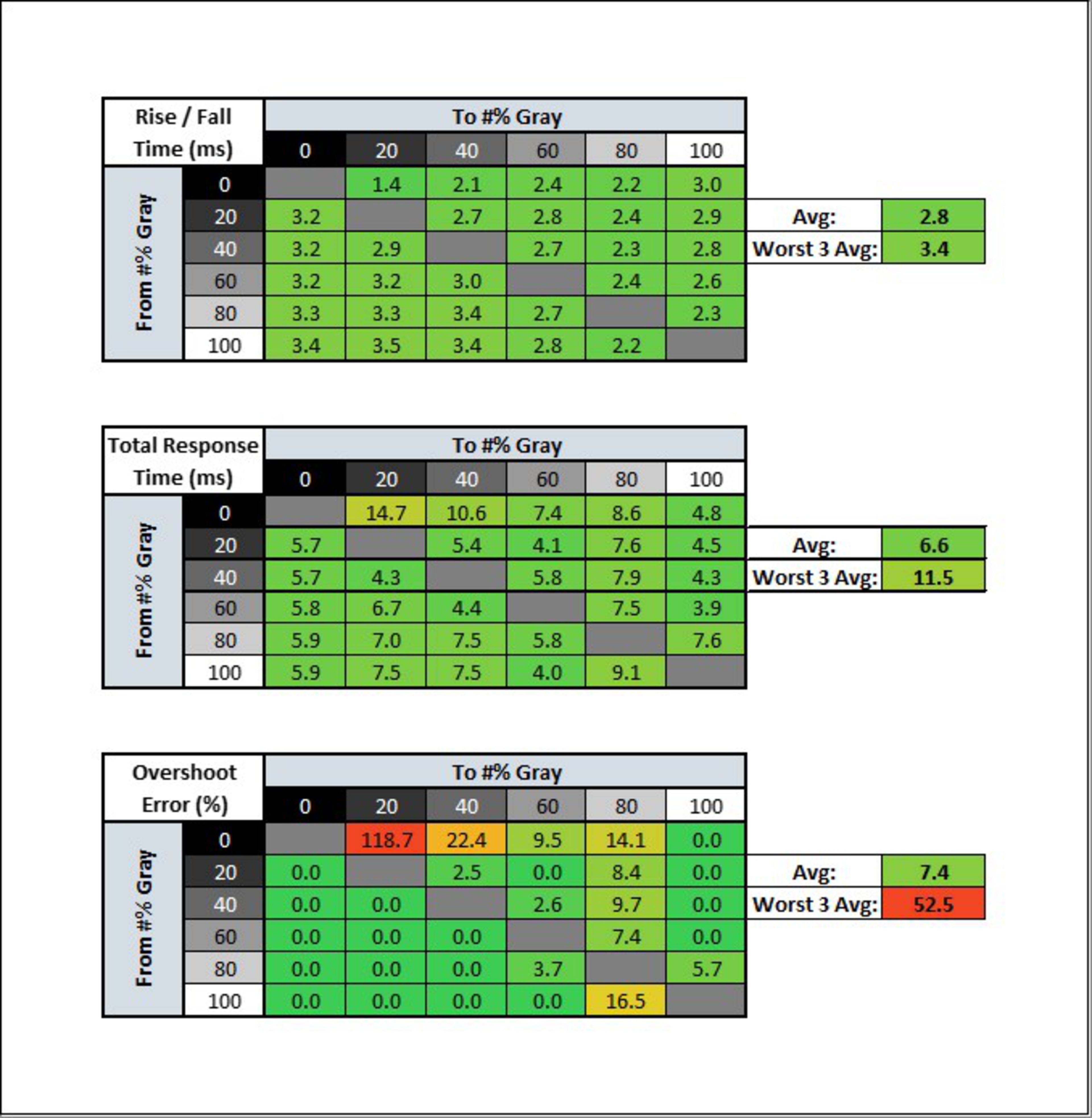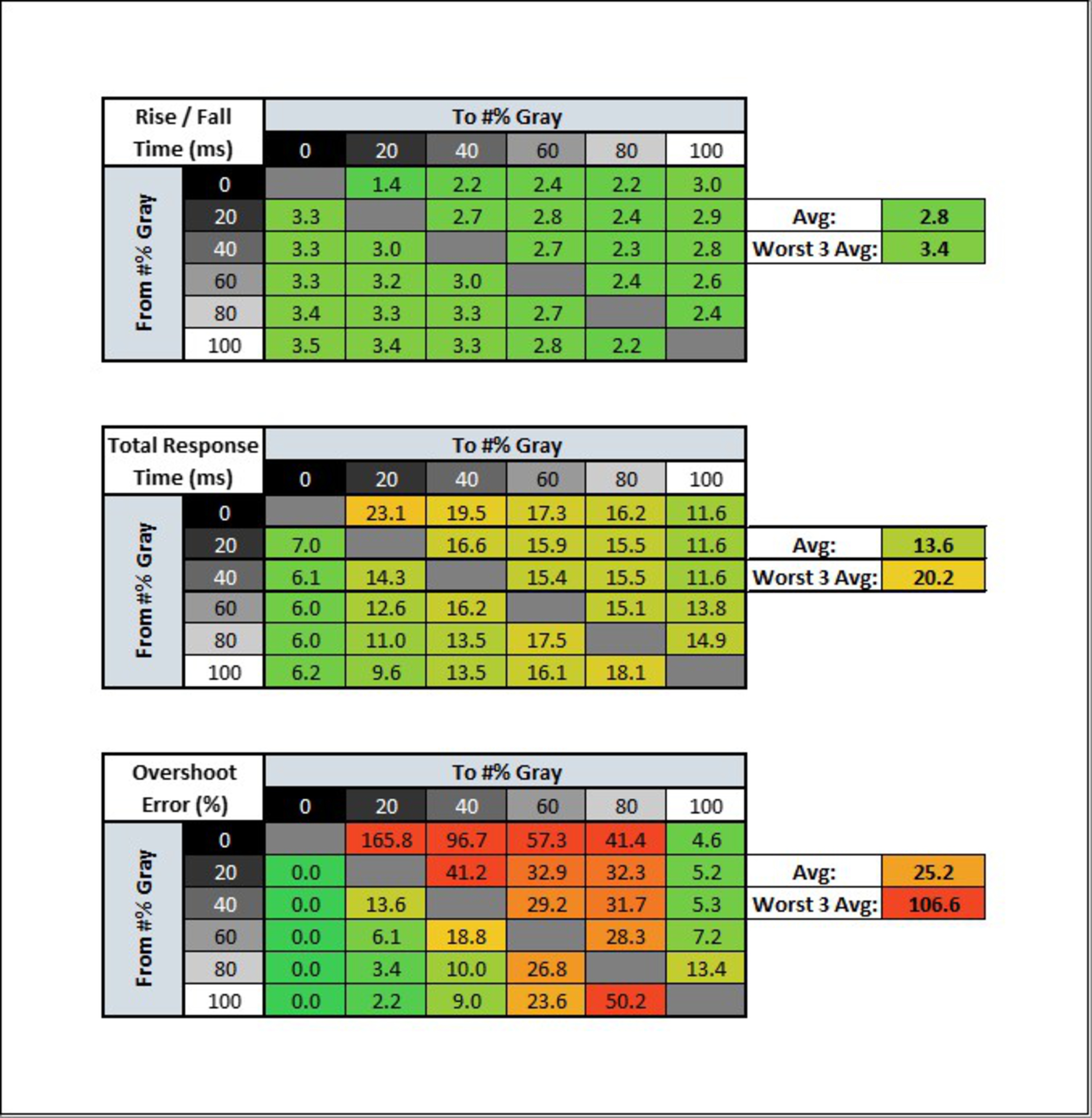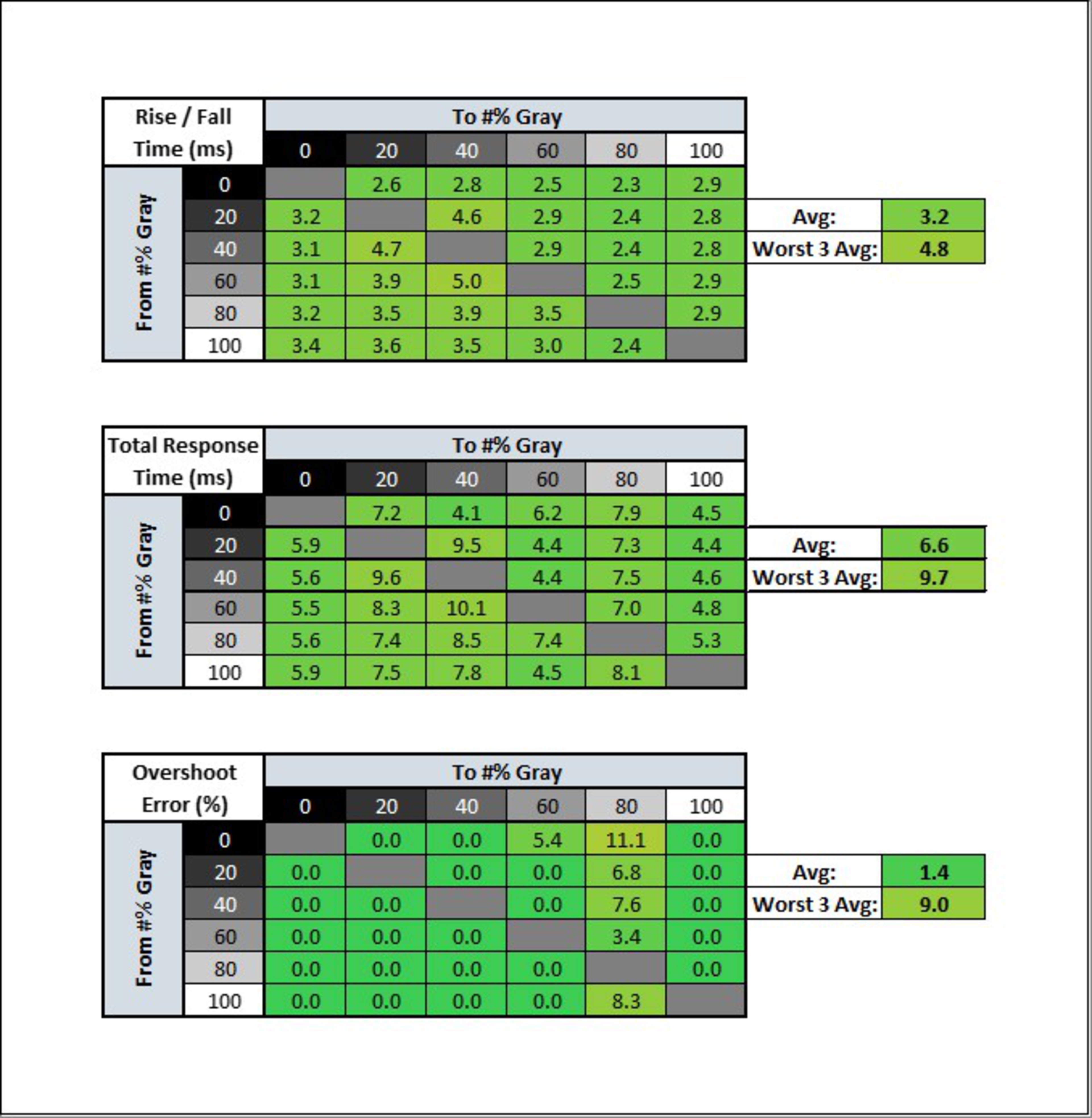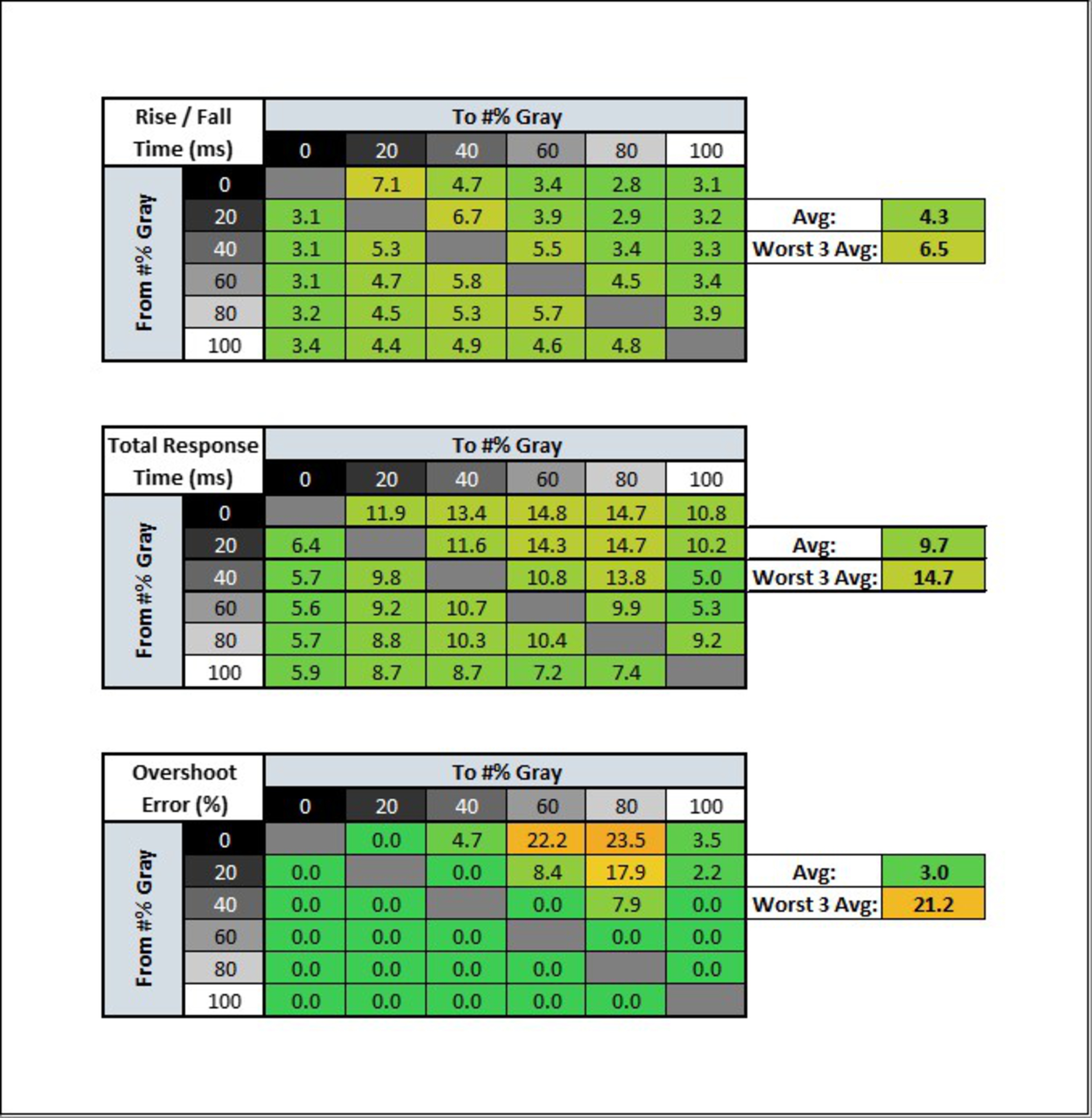 | Overdrive Setting | Response Time Chart | Response Time Tables | Motion Blur Photo |
