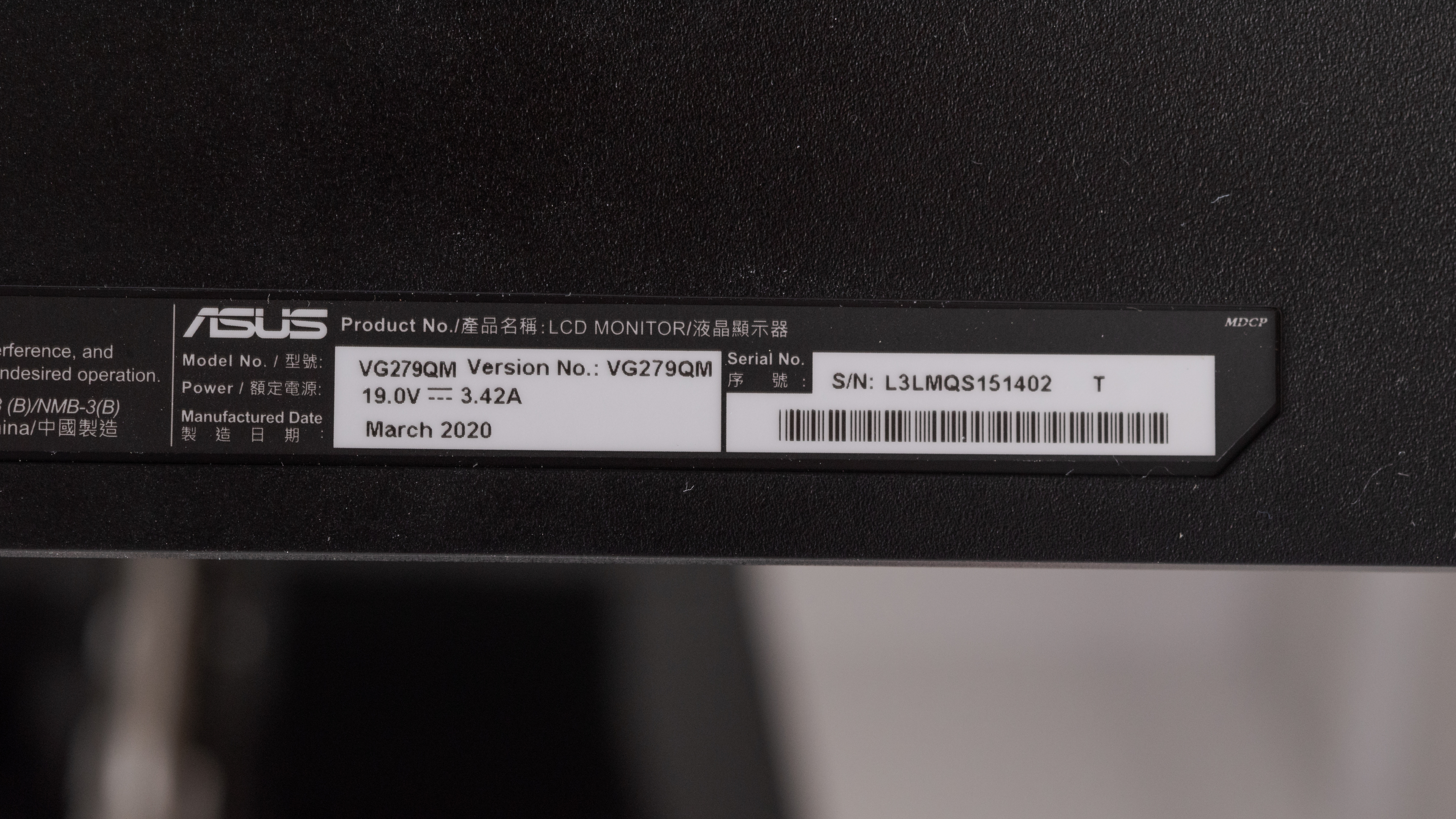 The VG279Q we reviewed was manufactured in March 2020, and you can see the label here.