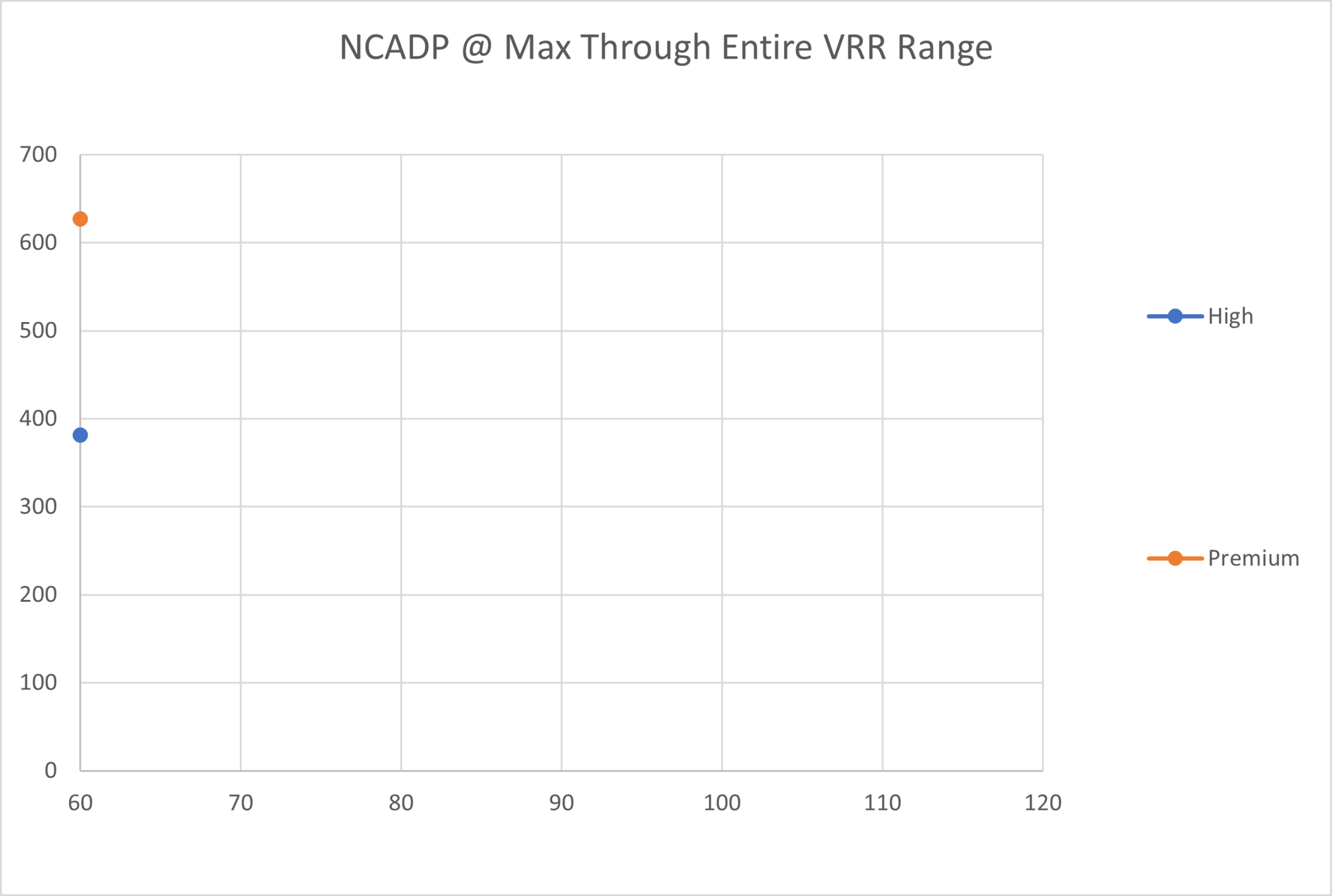Although this monitor doesn't support VRR, we still measure the CAD at 60Hz, so you can compare it to a monitor with VRR support. The CAD of the 'Premium' AMA setting is so high that it exceeds the limits of the graph. We've created an alternate graph at a different scale to illustrate how high the CAD gets.