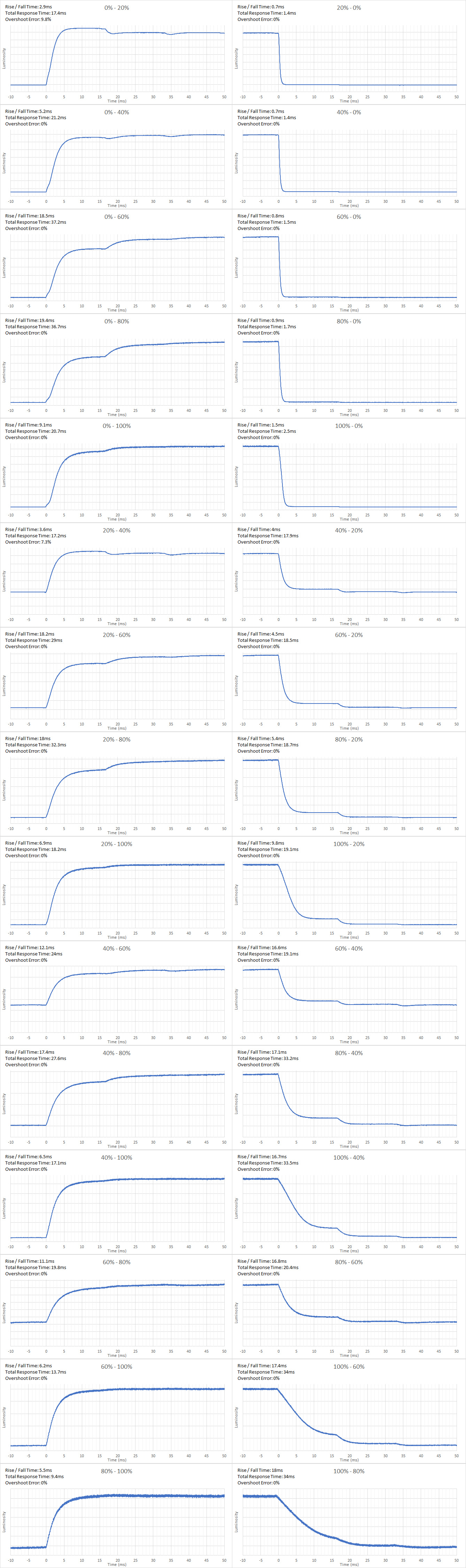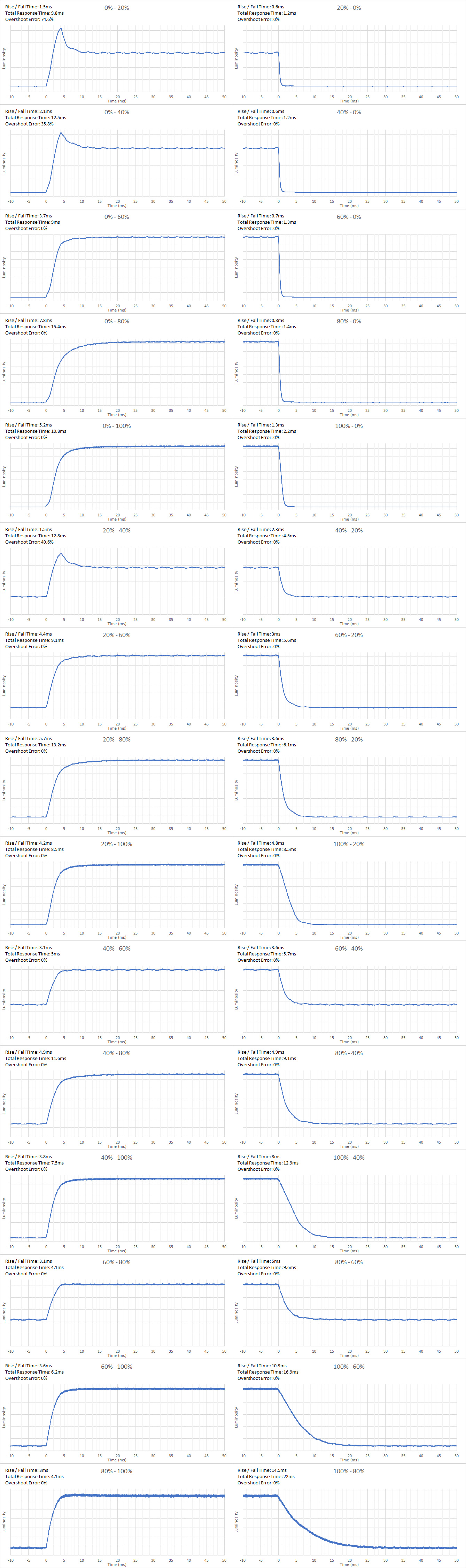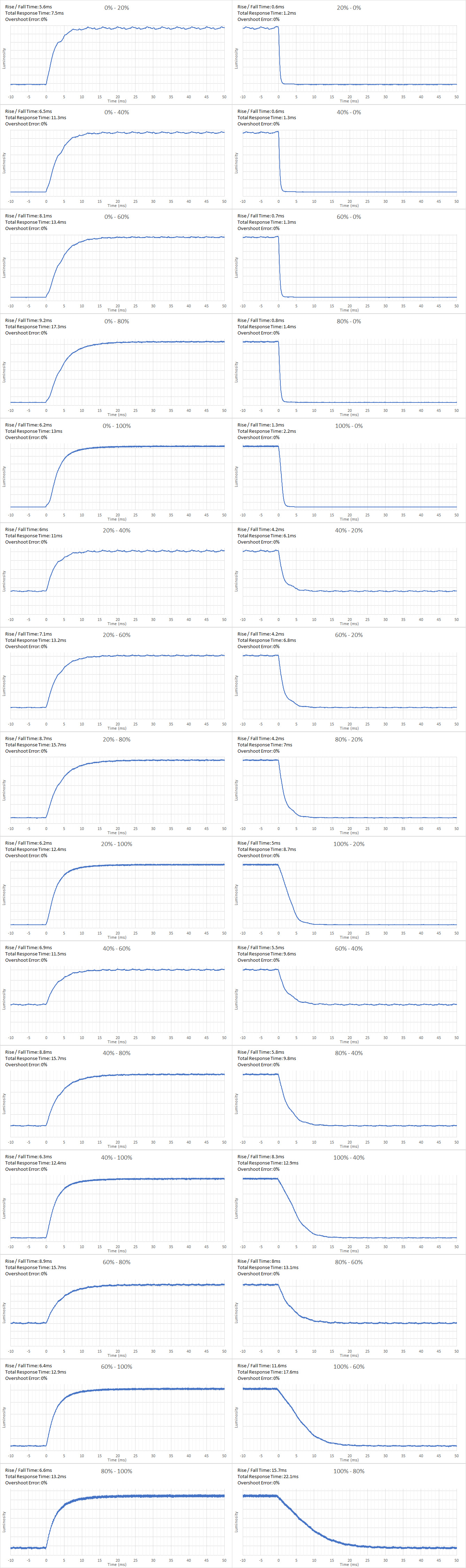 The input lag of this ZOWIE gaming monitor is exceptional. At the native 240Hz refresh rate the input lag is around 3.7ms, which is excellent even for the most competitive gamers. At 60Hz the input lag is higher, however, this is expected due to the longer scan out period.