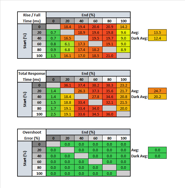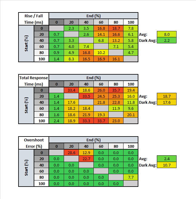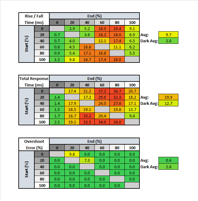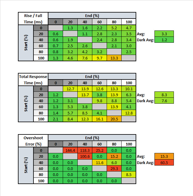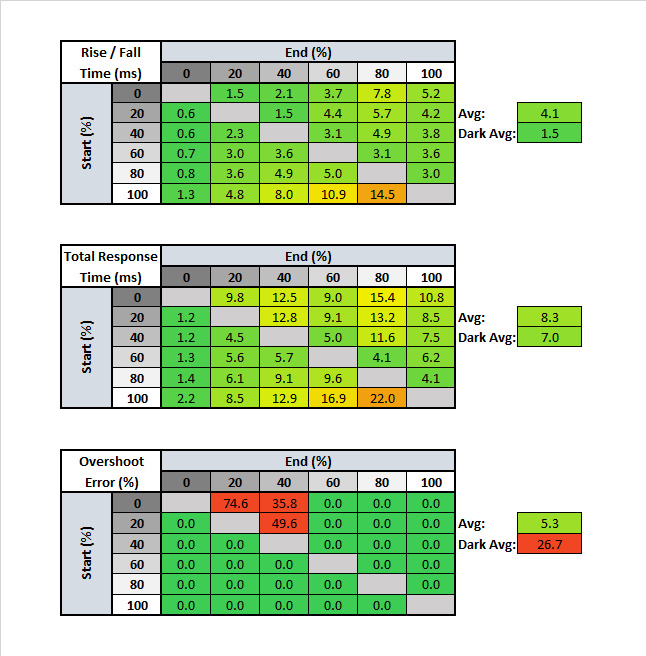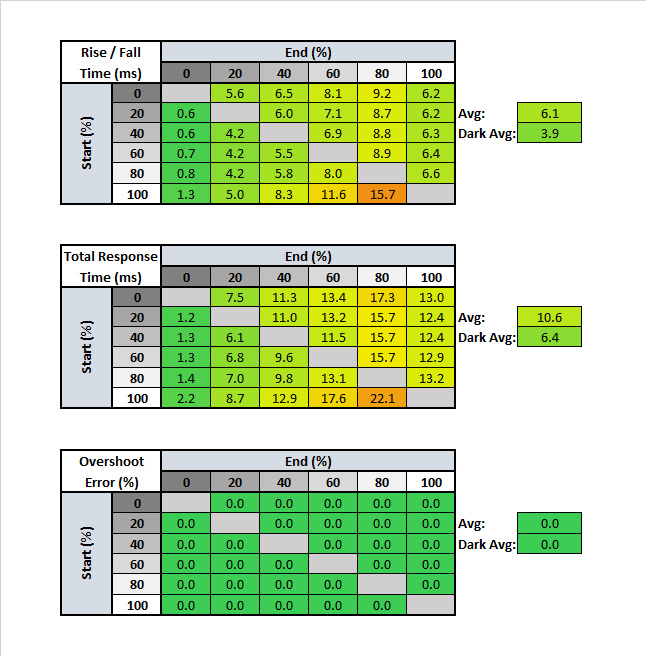| Overdrive Setting | Response Time Chart | Response Time Tables | Motion Blur Photo |