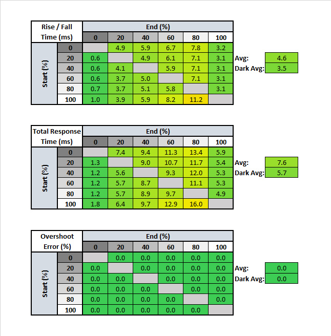 | Overdrive Setting | Response Time Chart | Response Time Tables | Motion Blur Photo |
