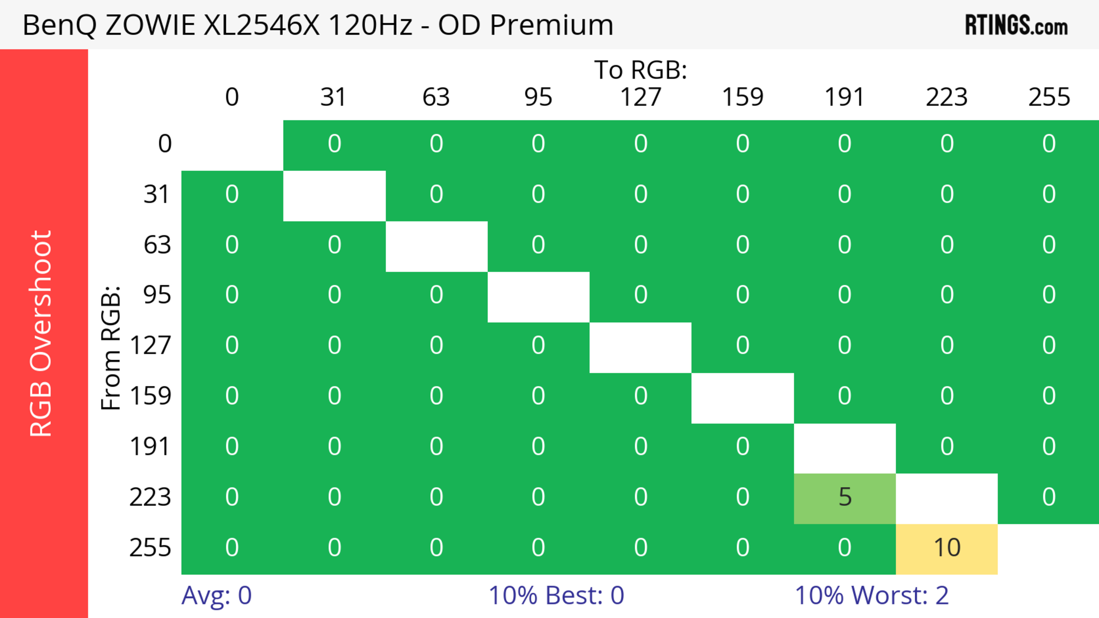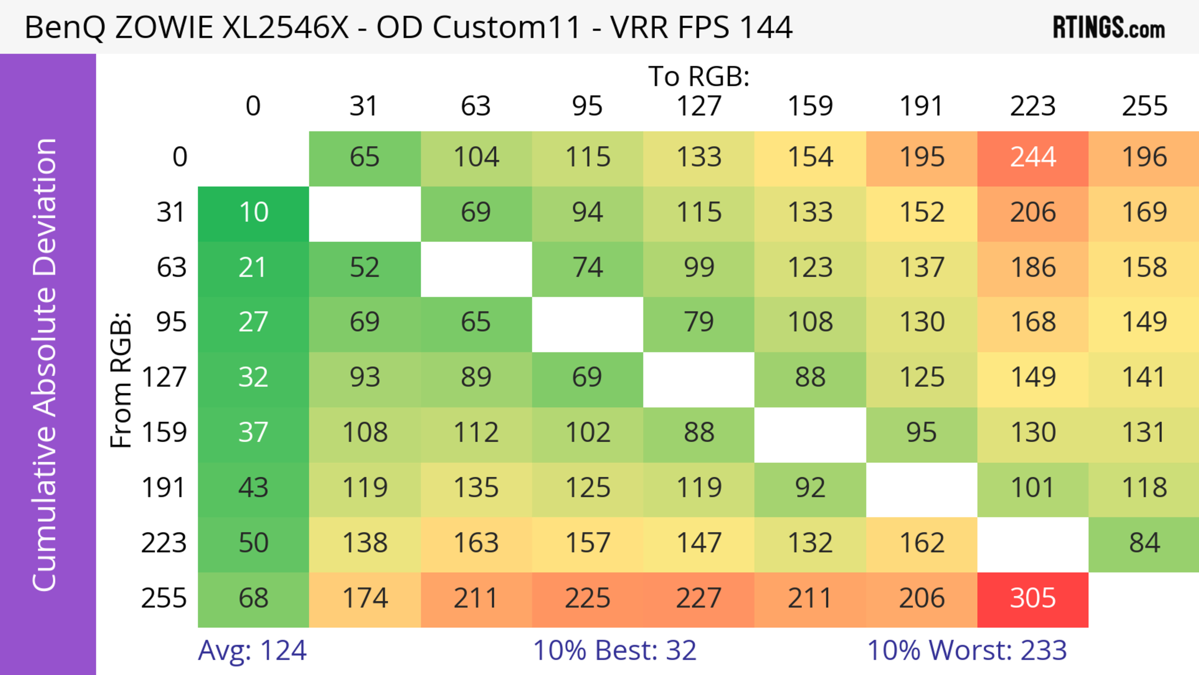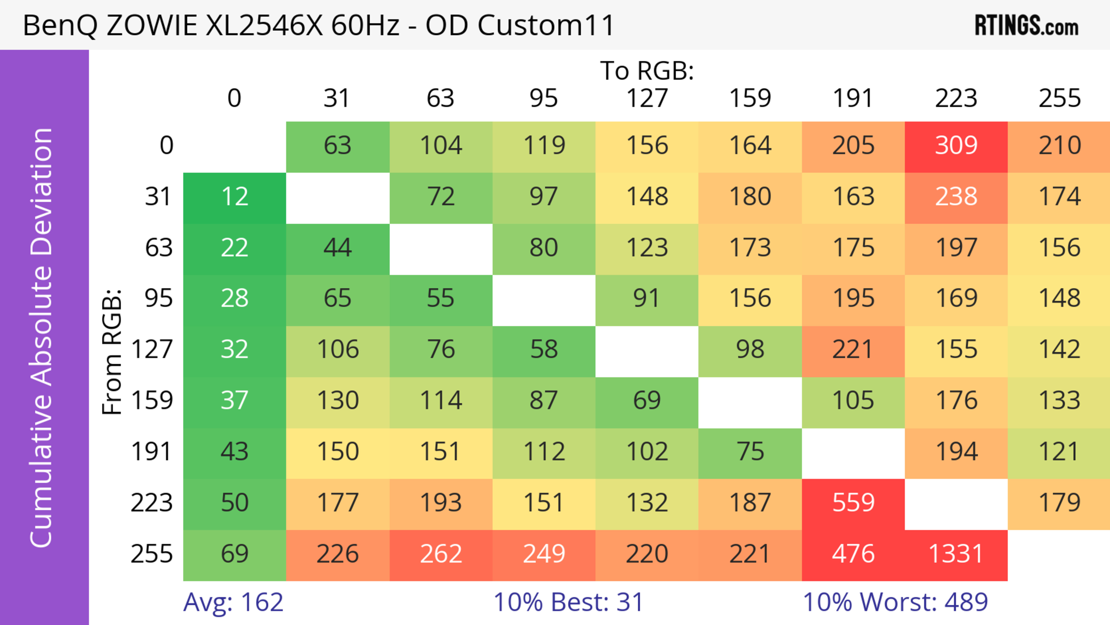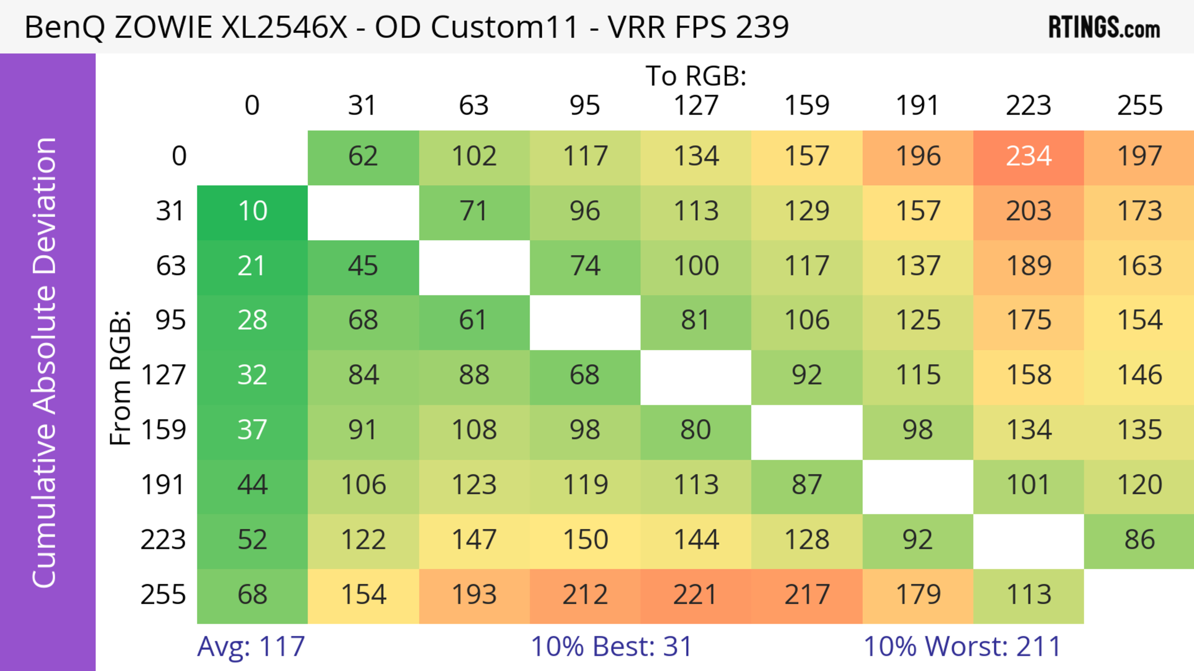 The CAD at 120Hz is great, and fast-moving objects look quite crisp. The 'Custom 11' overdrive setting has the best CAD if you set your monitor's refresh rate to 120Hz, with the fastest total response time and almost no overshoot.