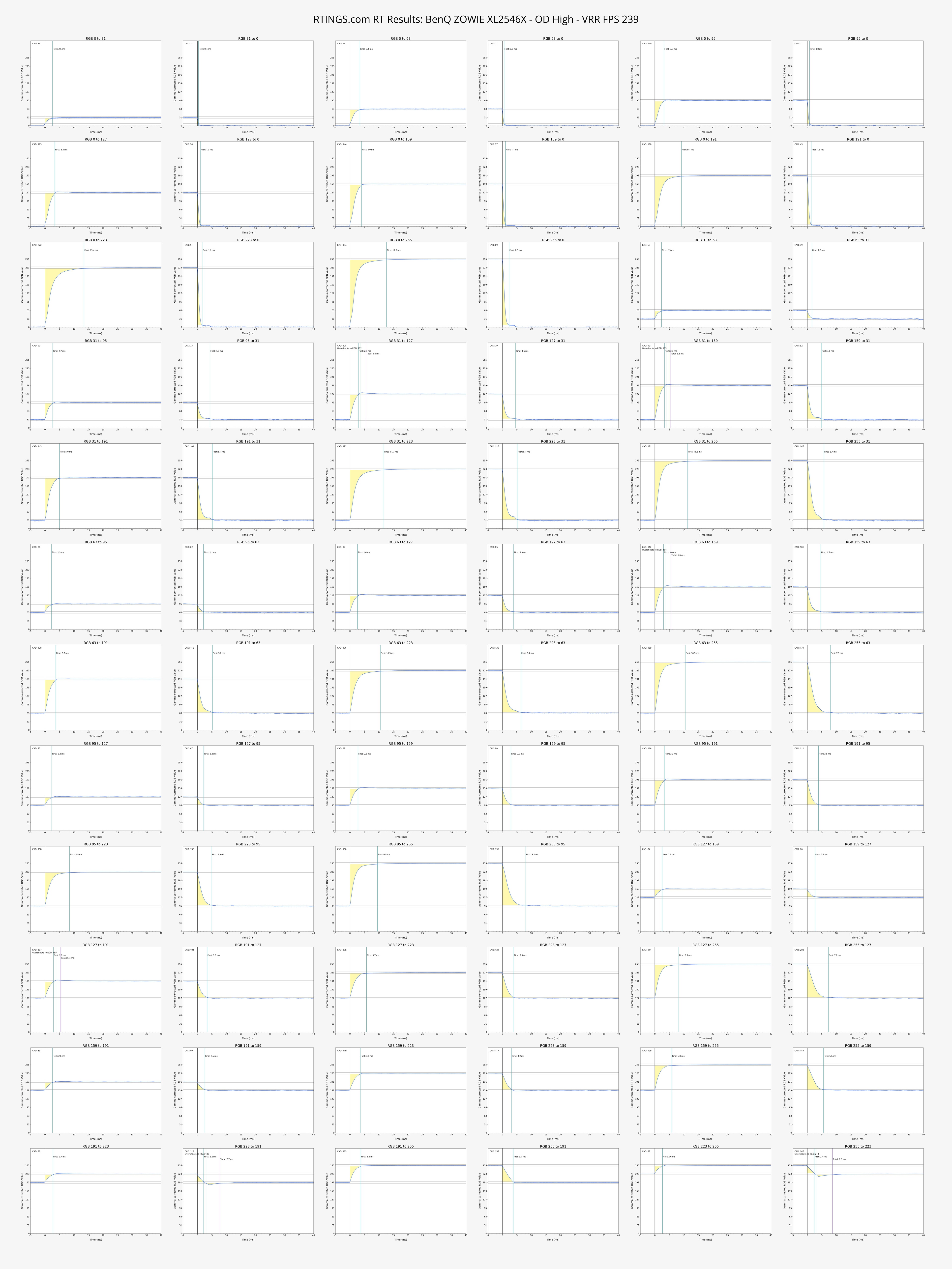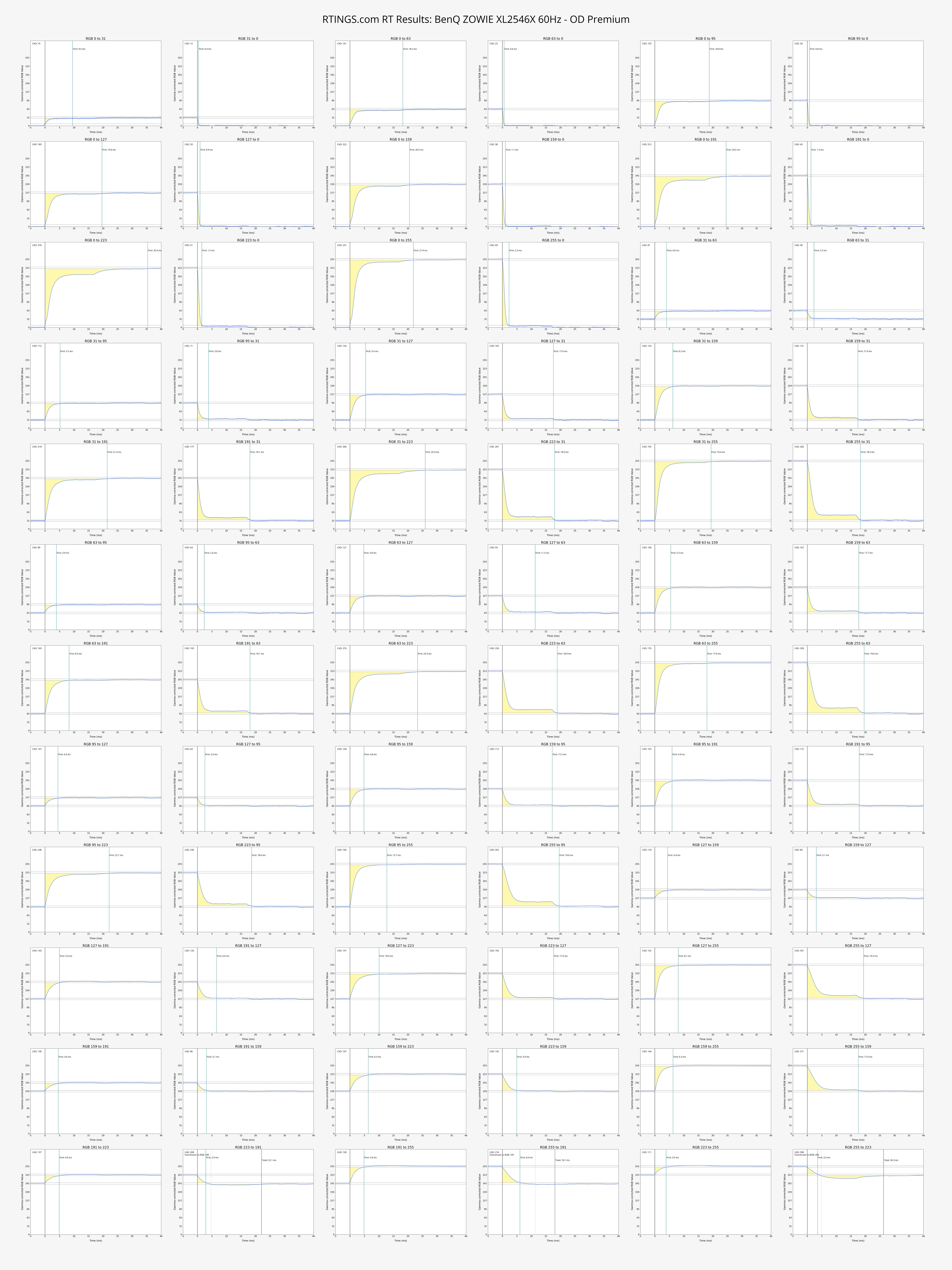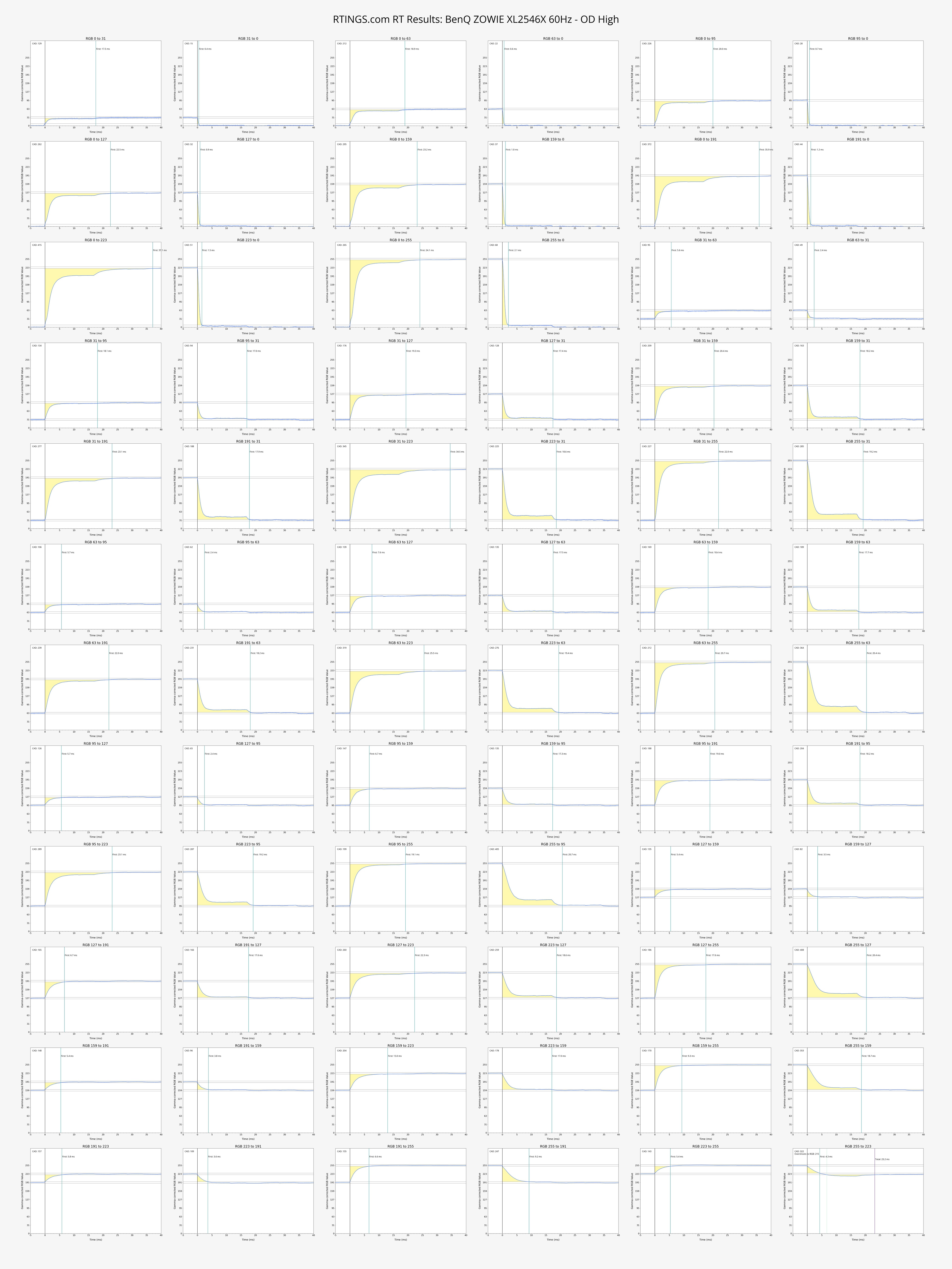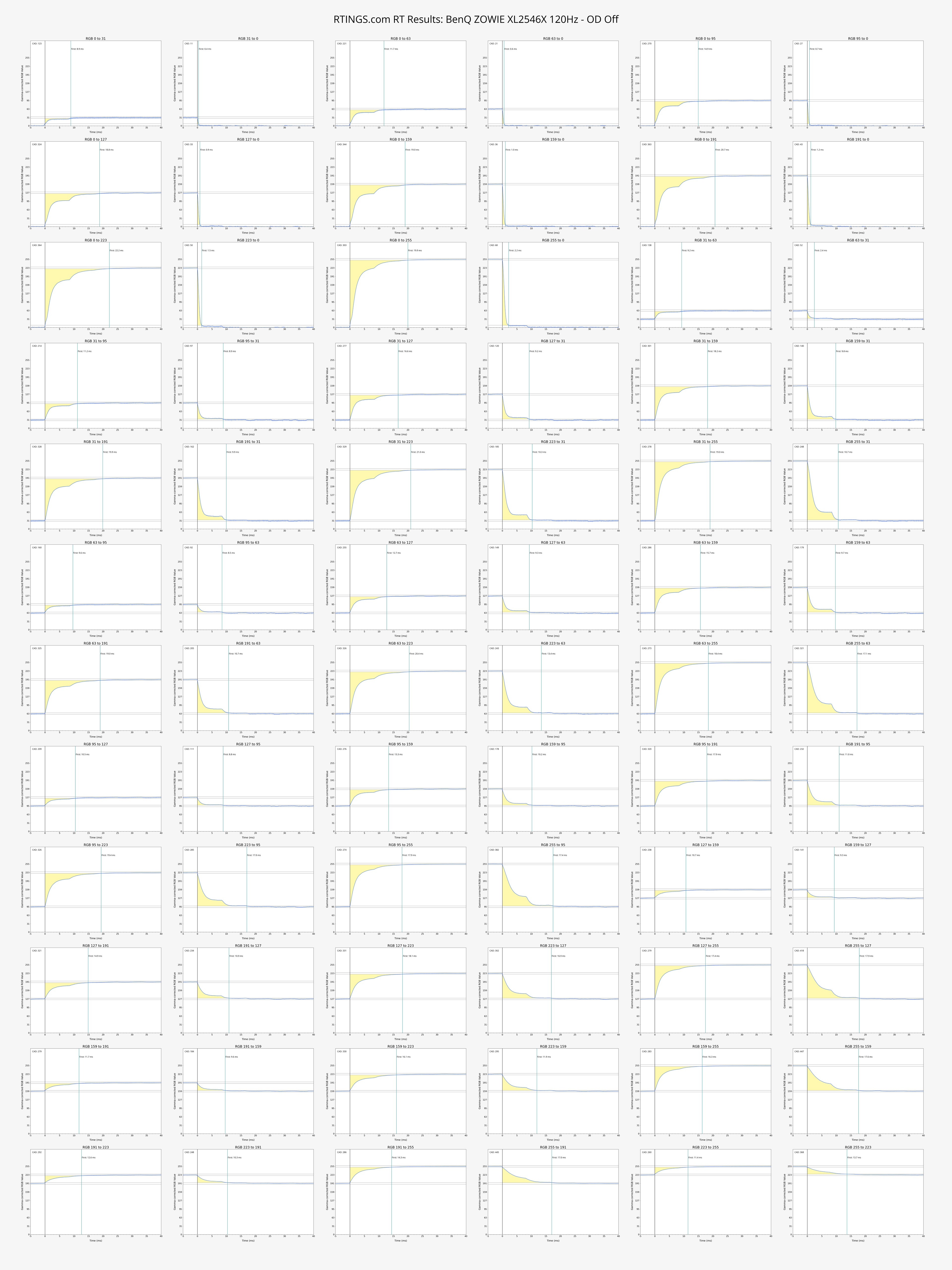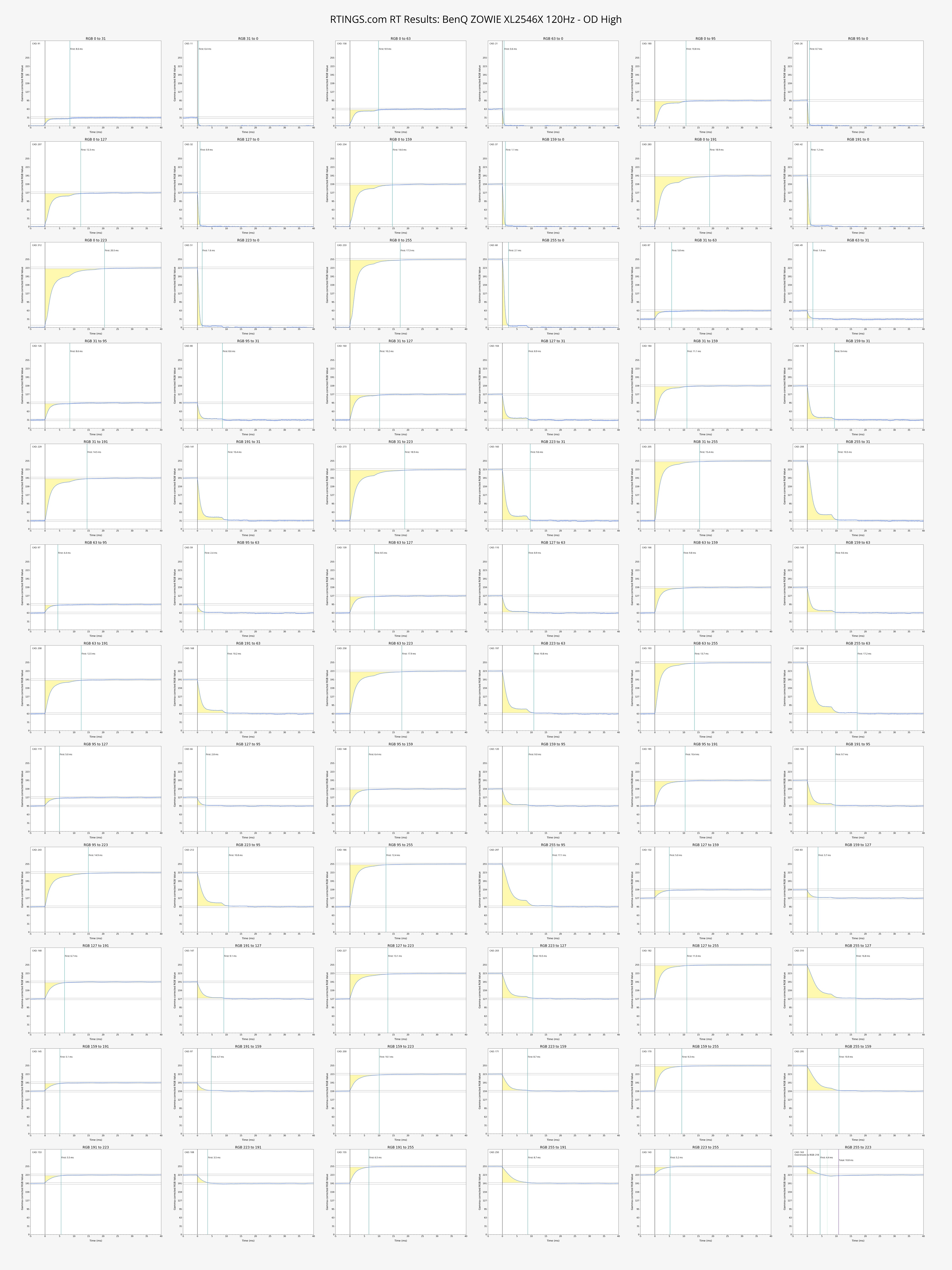 The BenQ ZOWIE XL2546X has an impressive response time. It maintains a fast response time across its VRR range, leading to sharp motion. It also has excellent refresh rate compliance, meaning its response time is fast enough to take full advantage of 120 fps and 60 fps sources.