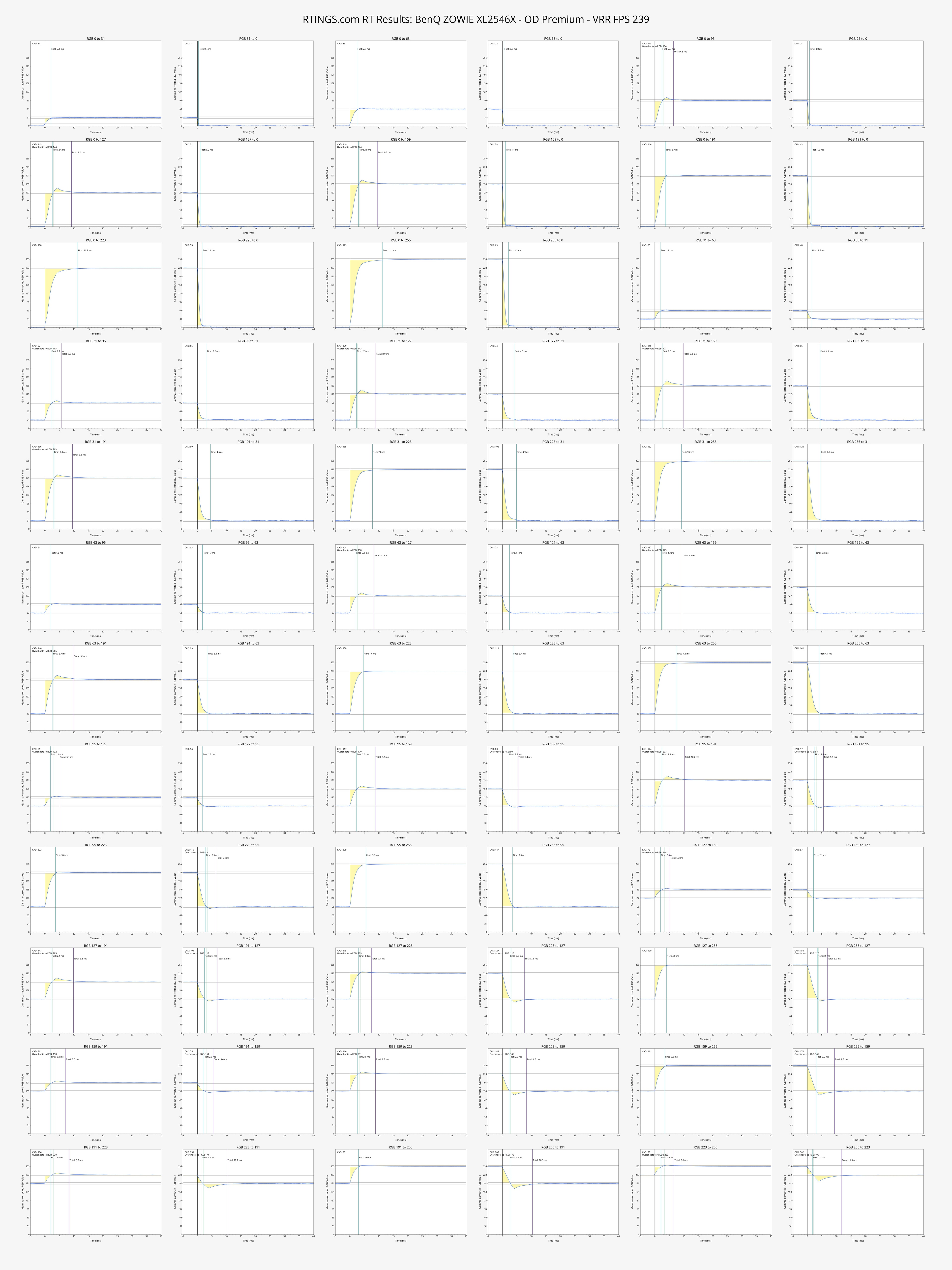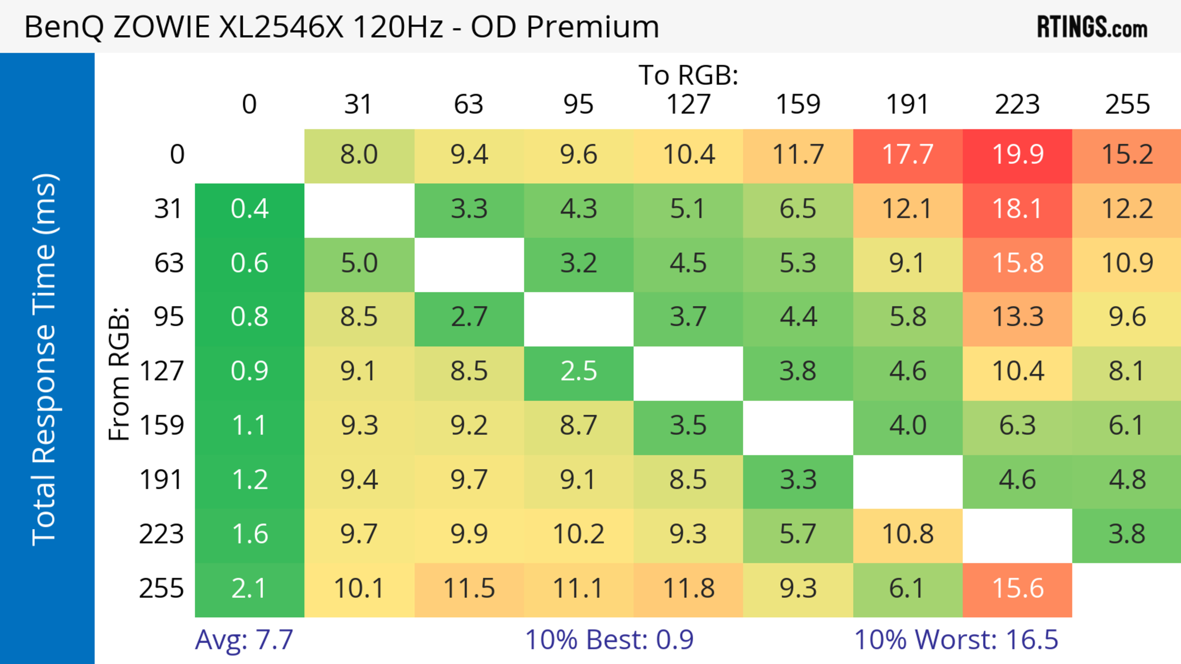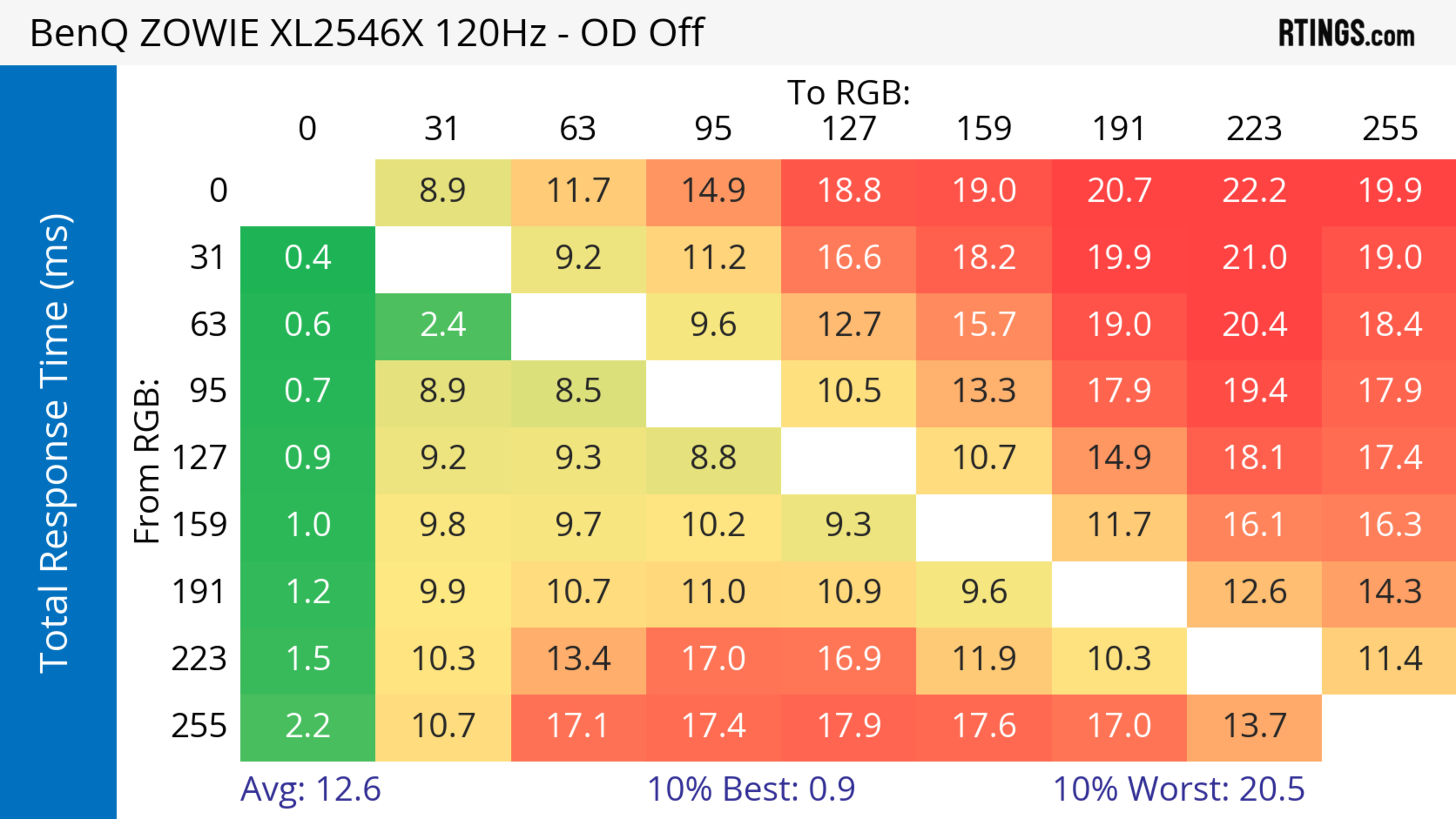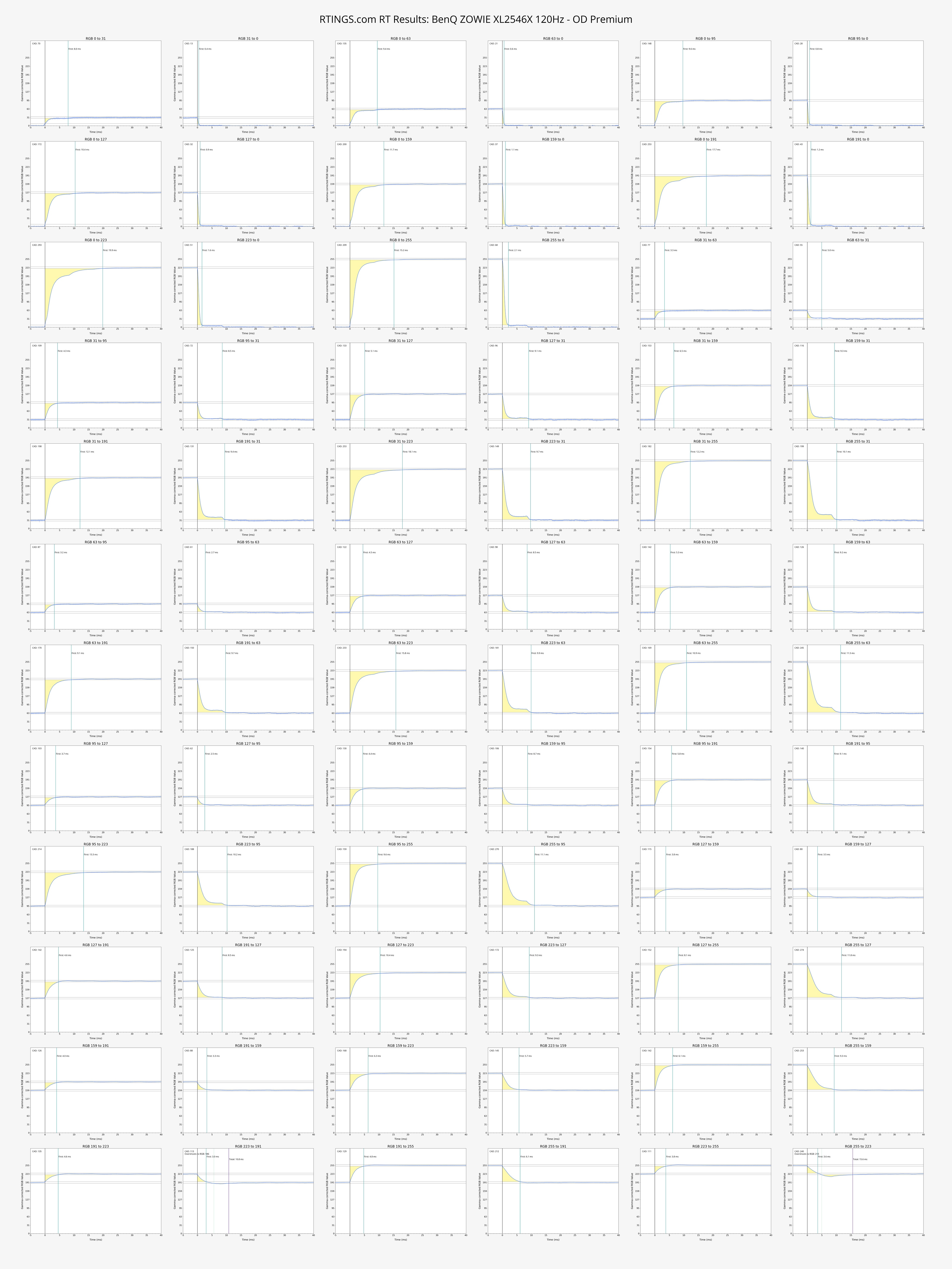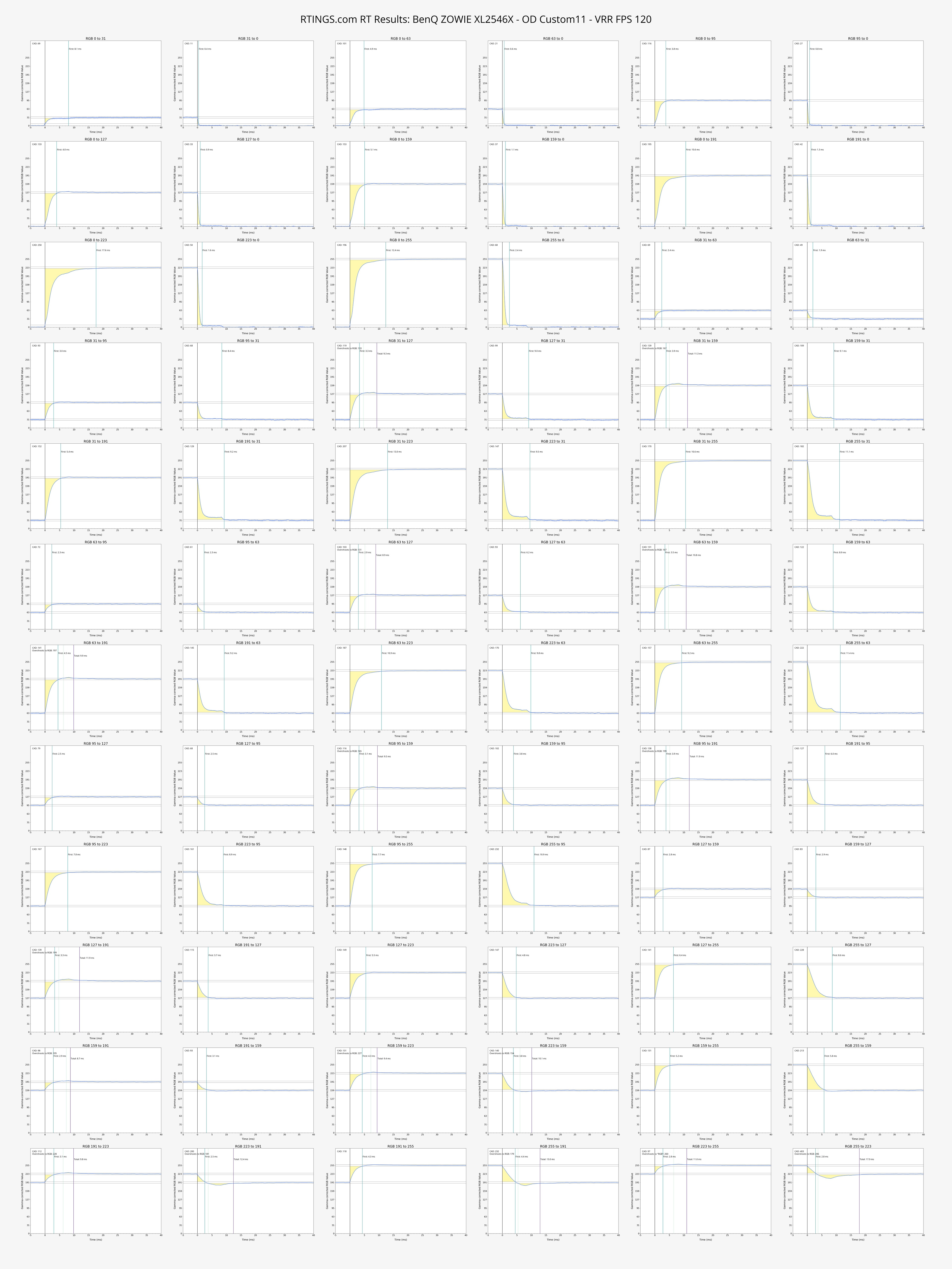 The BenQ ZOWIE XL2546X has an impressive response time. It maintains a fast response time across its VRR range, leading to sharp motion. It also has excellent refresh rate compliance, meaning its response time is fast enough to take full advantage of 120 fps and 60 fps sources.