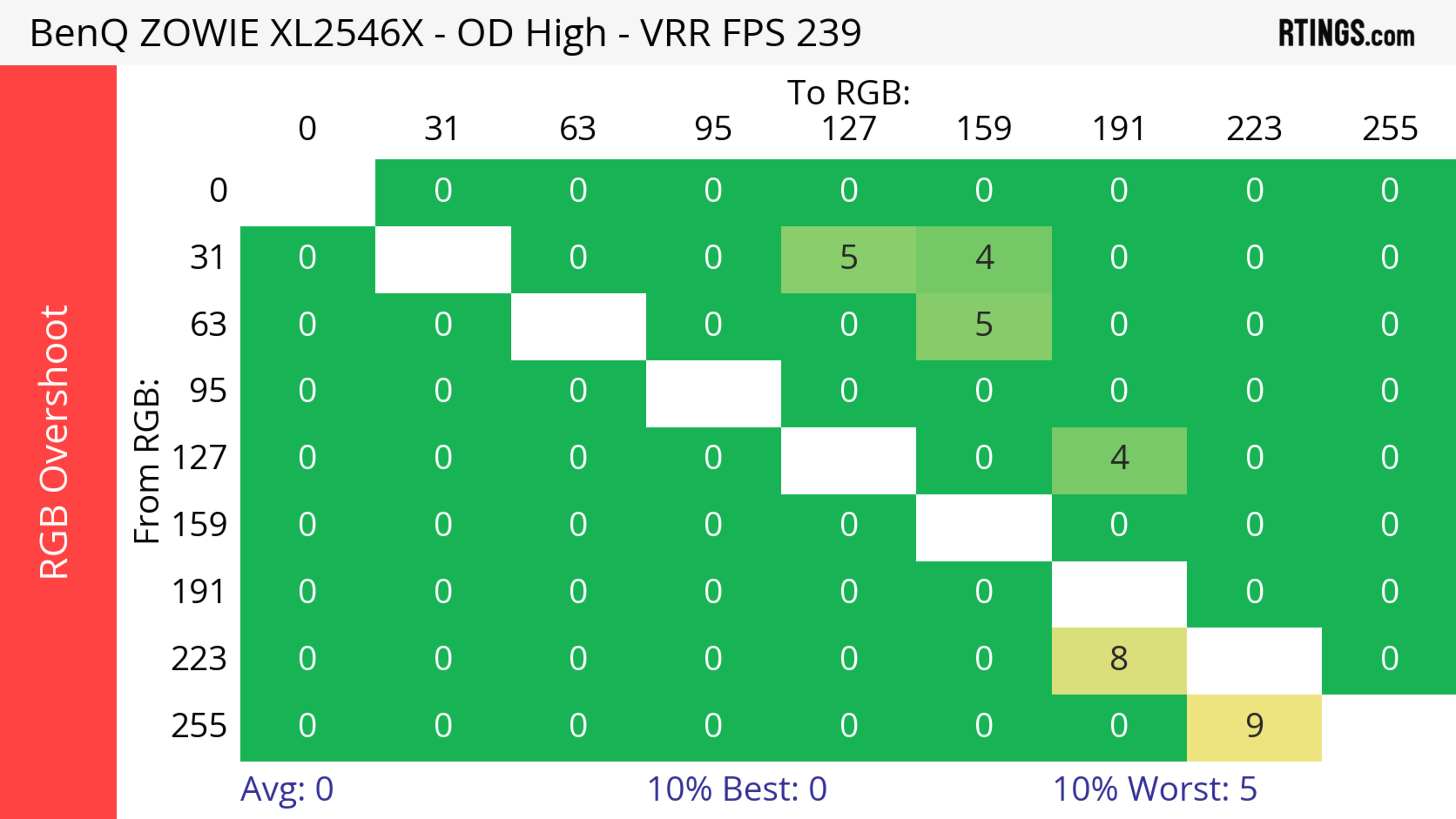 The BenQ ZOWIE XL2546X has impressive motion handling across its entire refresh rate range with VRR enabled. It has a few different overdrive settings, which are called AMA, including a 'Custom' setting that has a slider. Setting it to '11' results in the most consistent performance across the entire refresh rate range, but 'High' is a good choice if your games maintain high frame rates.